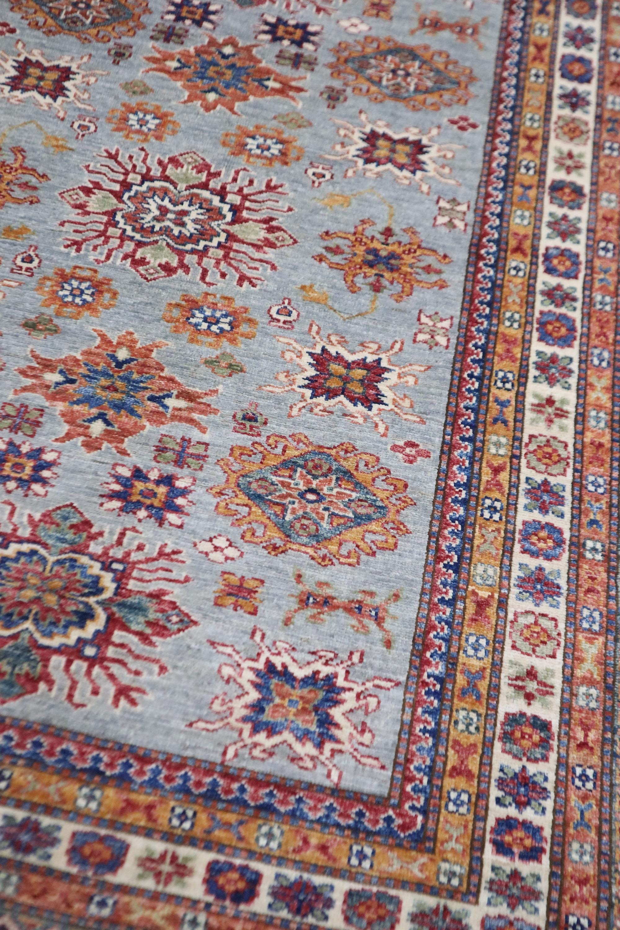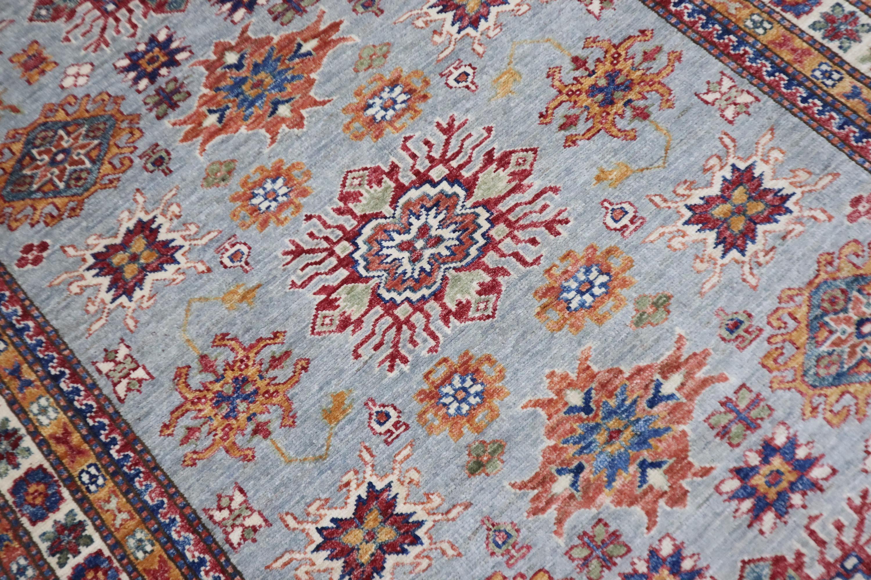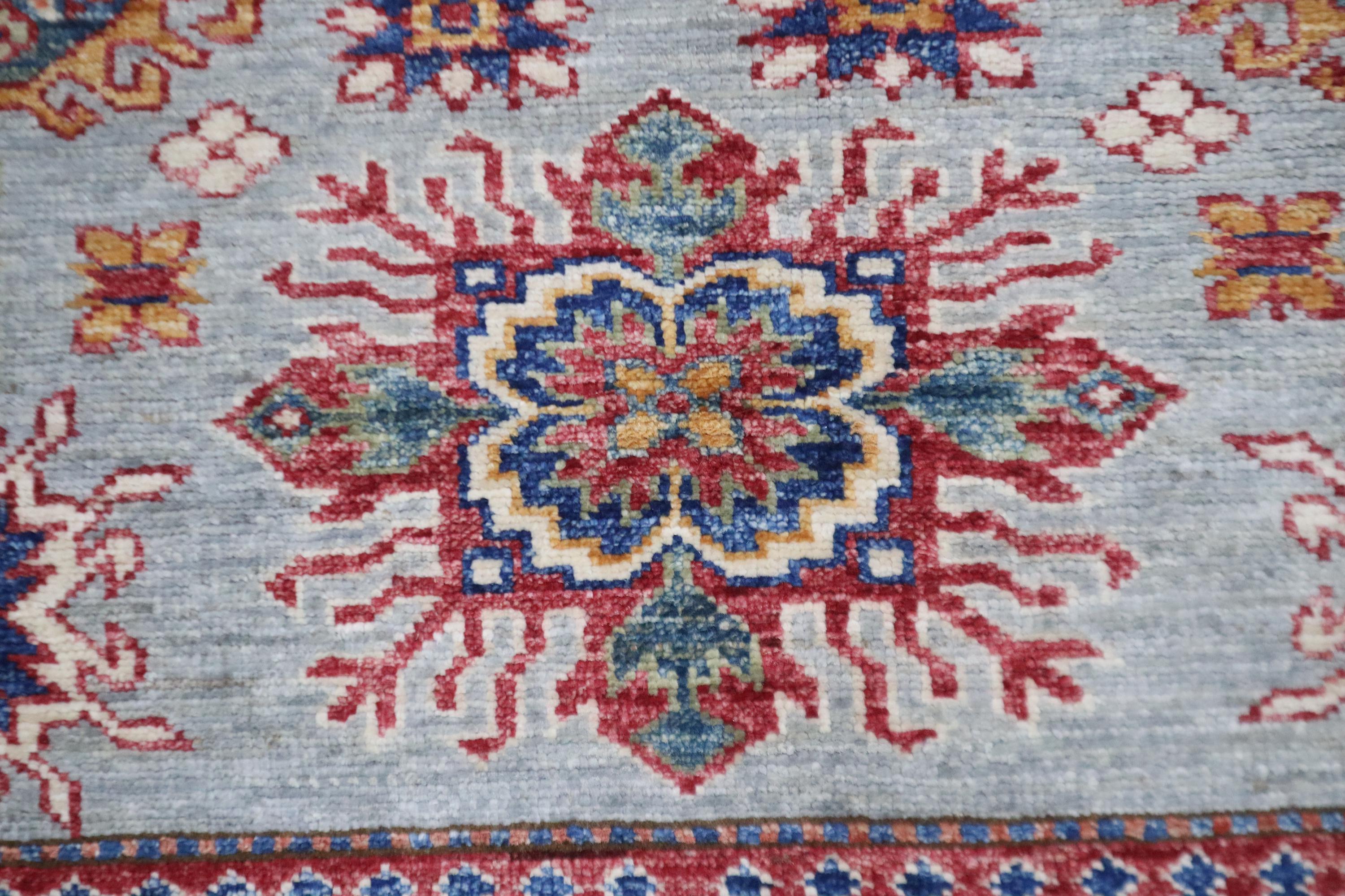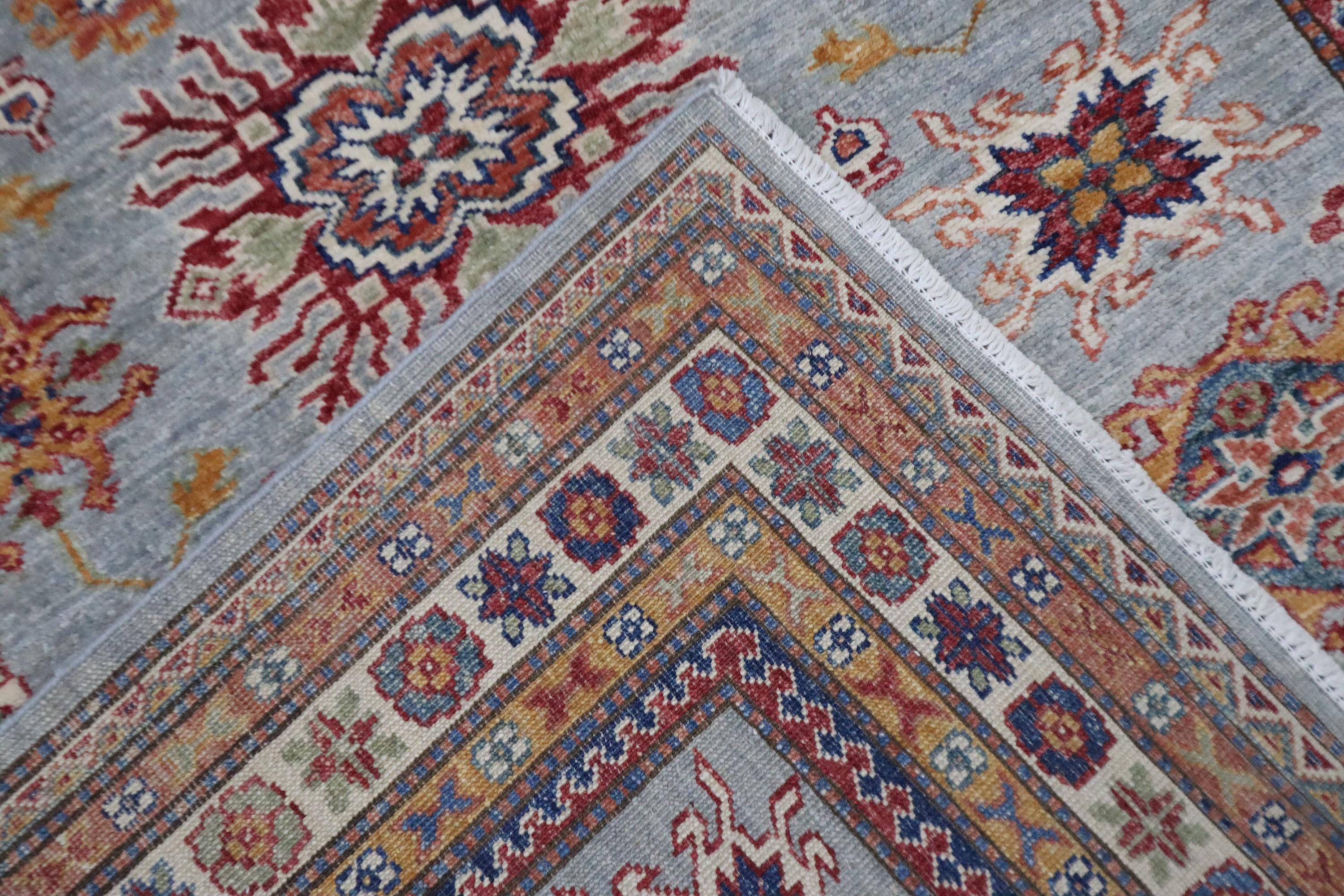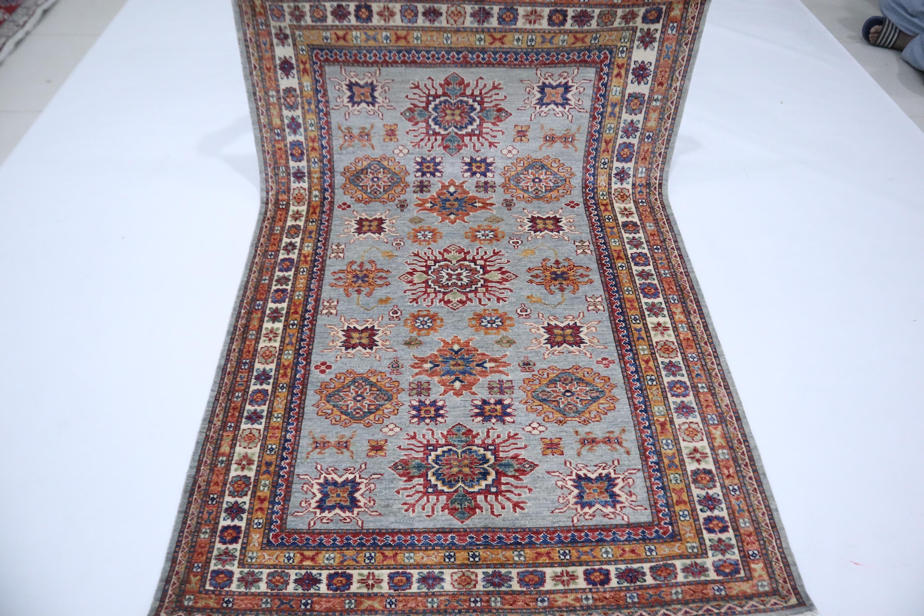 Gray 4x6 Kazak Area Rug - Afghan Hand Knotted Geometric Natural Dye Wool Rug - Traditional Rug - Kitchen Rug - Bedroom Rug - Foyer Rug