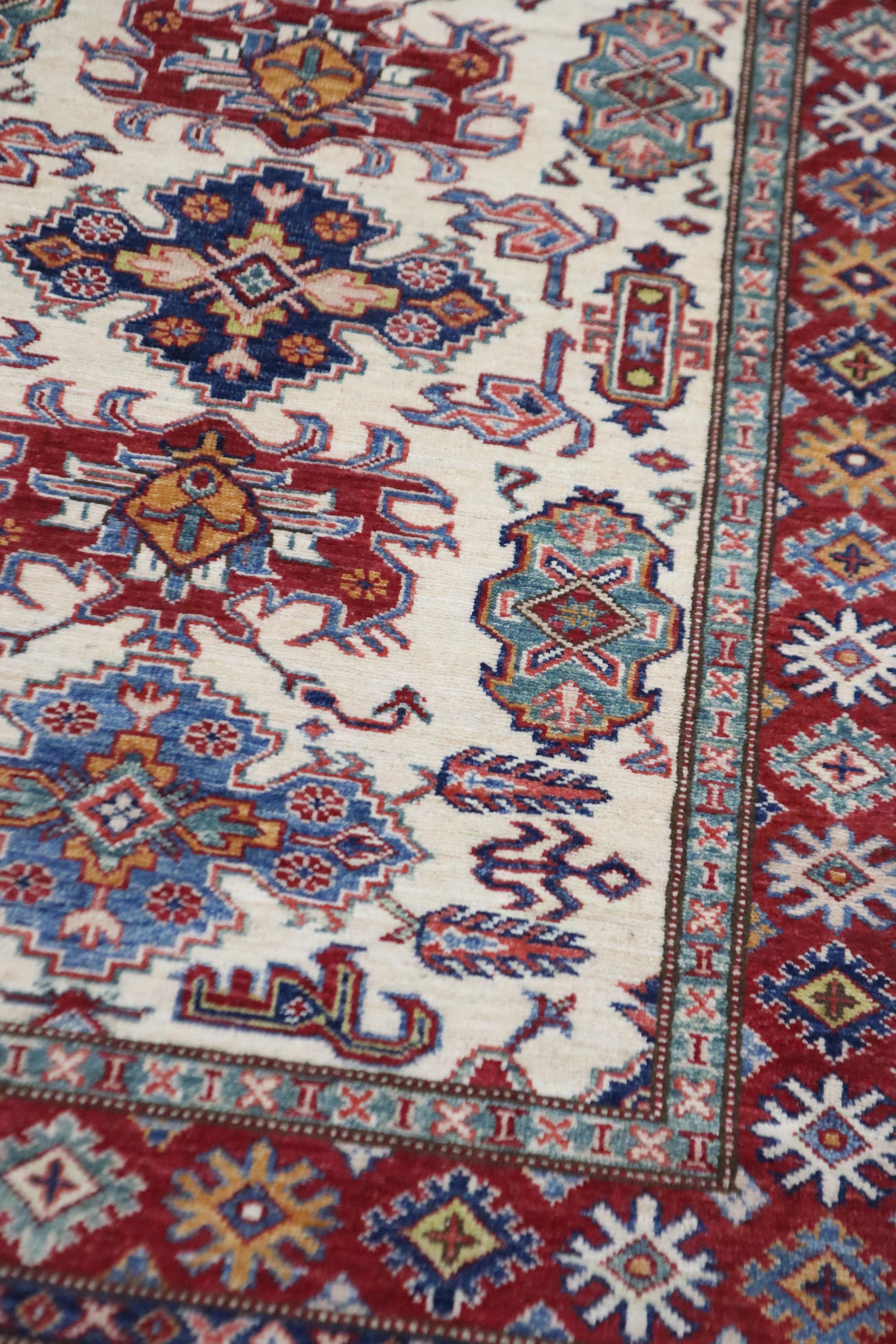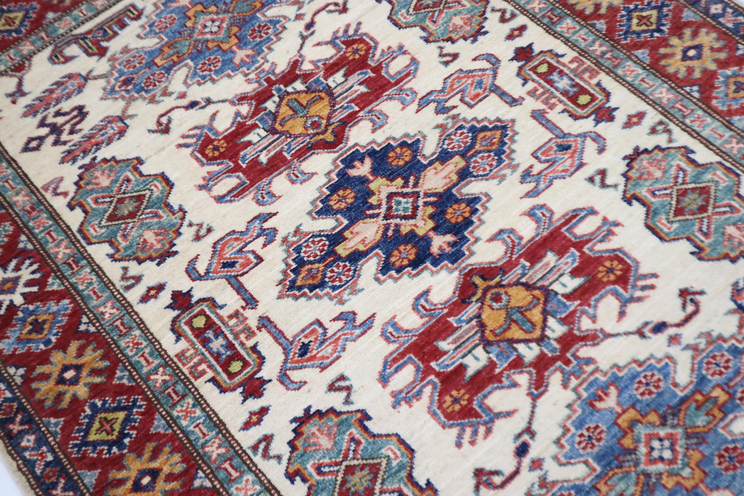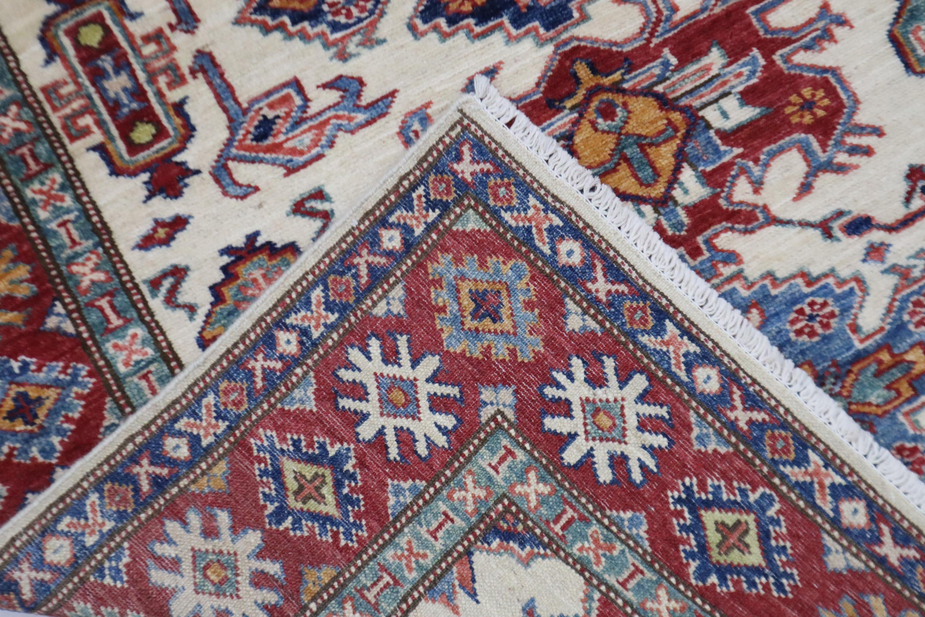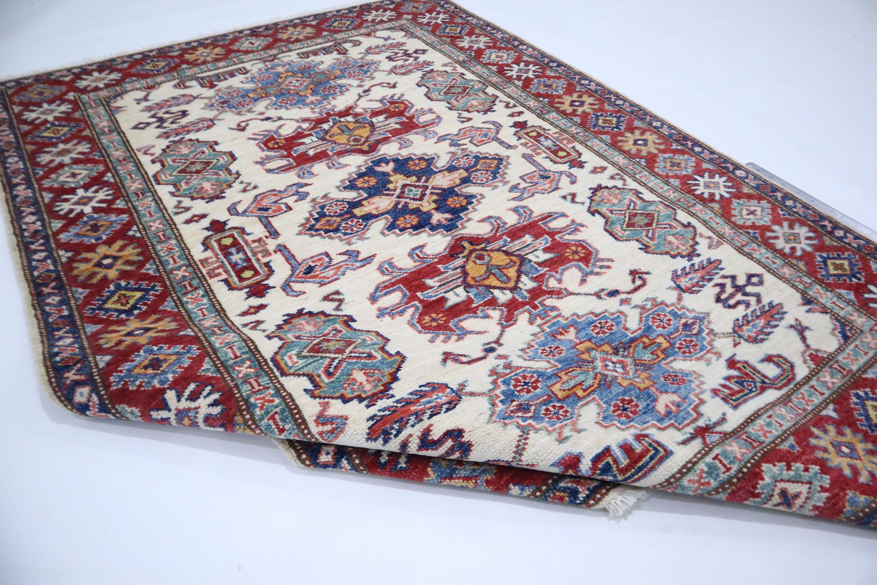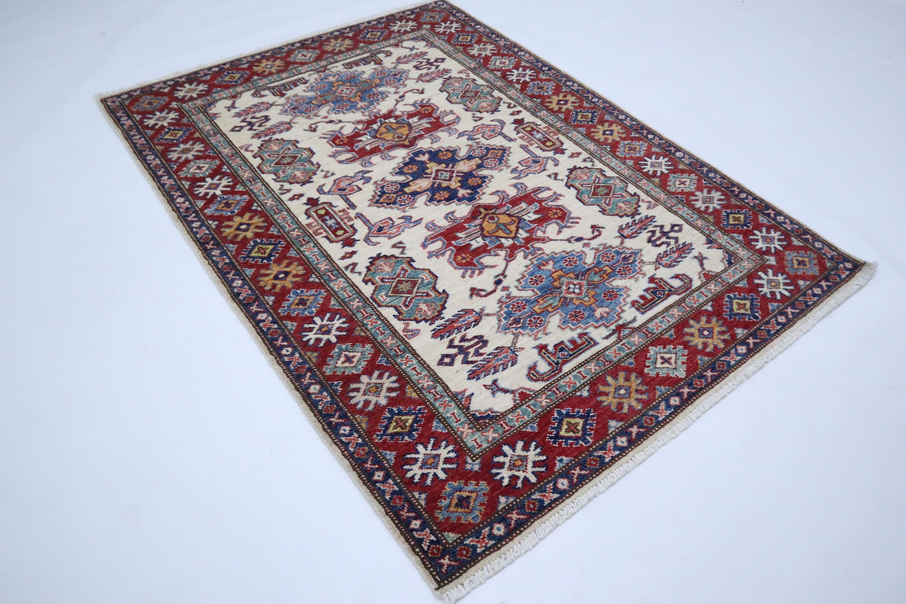 3x5 Kazak Area Rug - Fine Quality Wool Rug - Beige Red Rug - Afghan Handmade Rug - Geometric Design Rug - Foyer Rug - Kitchen Rug - Dorm Rug