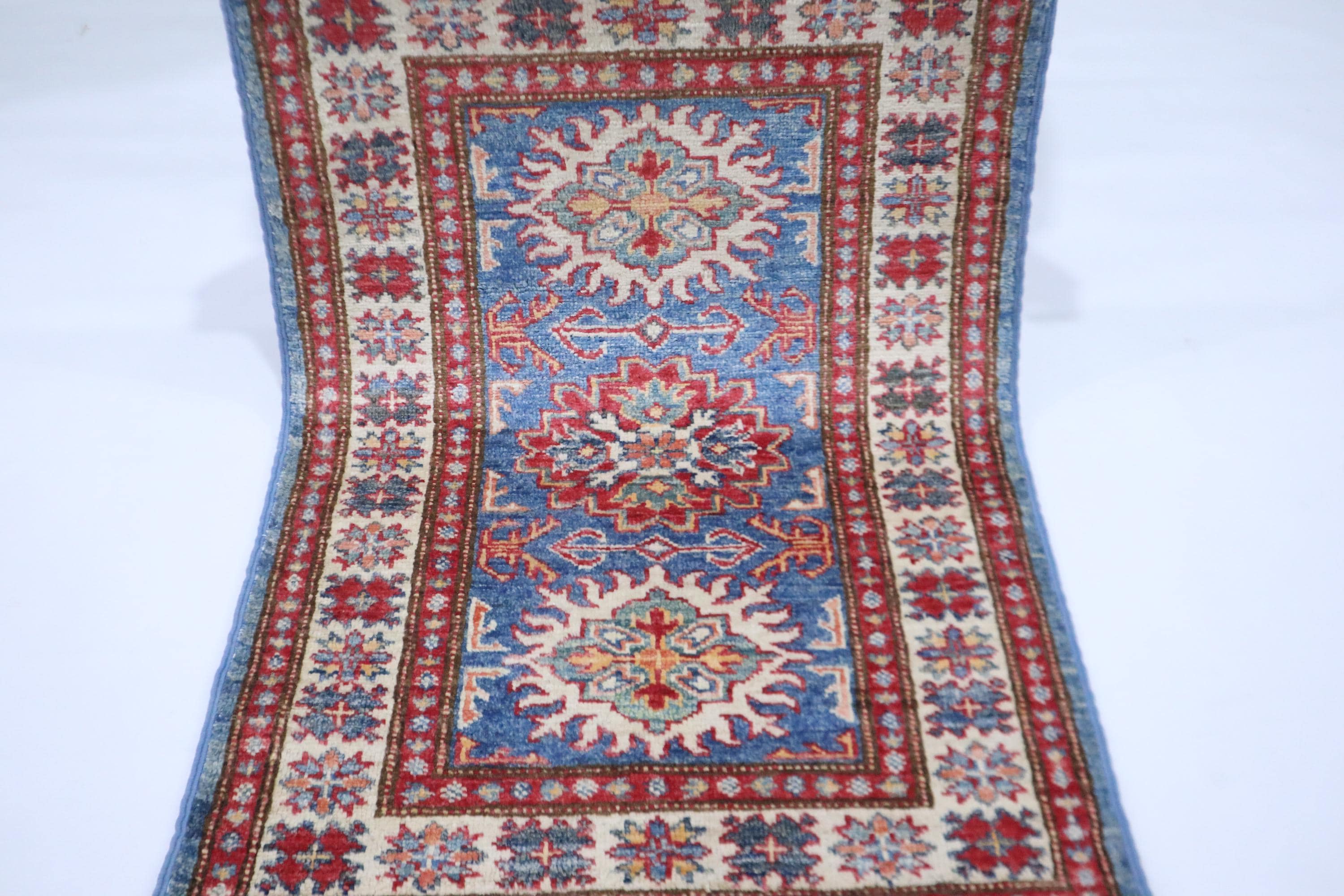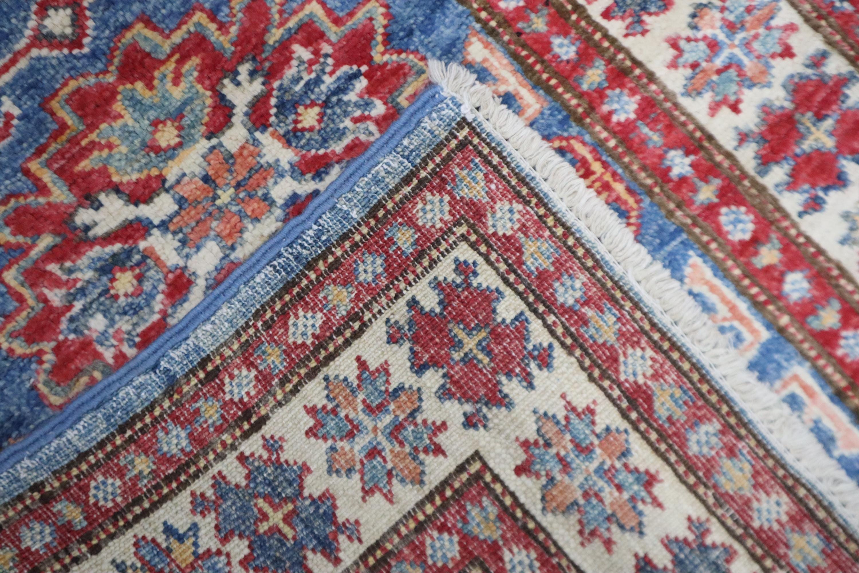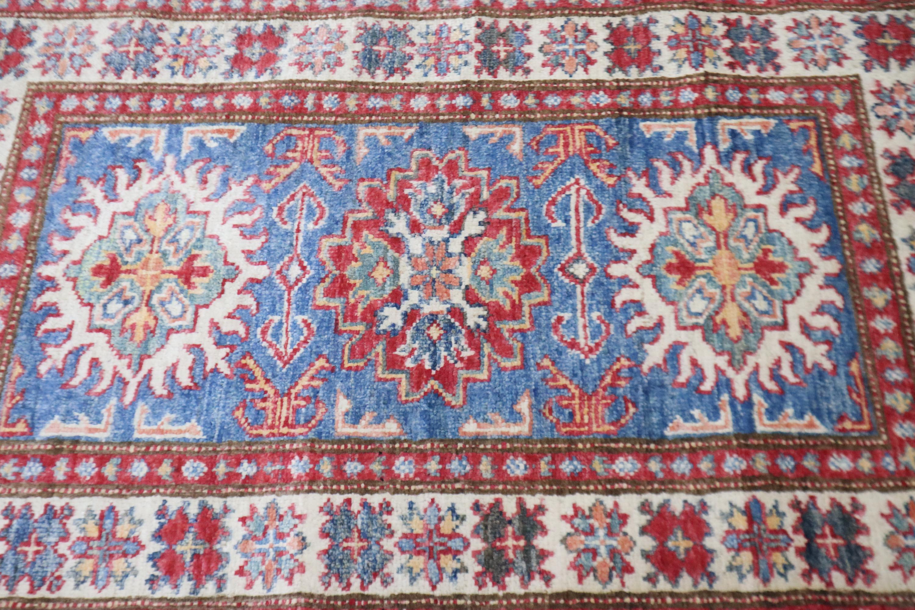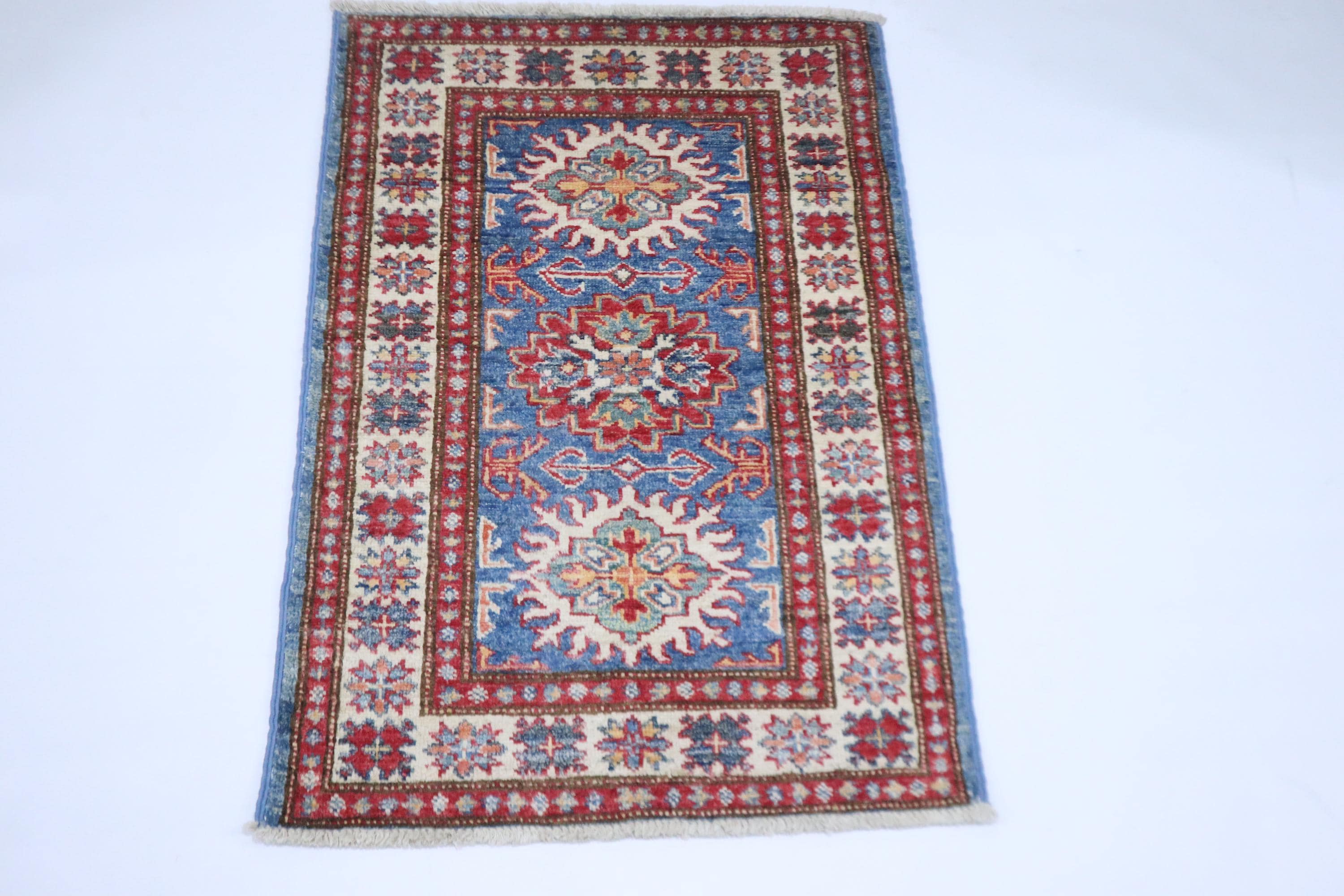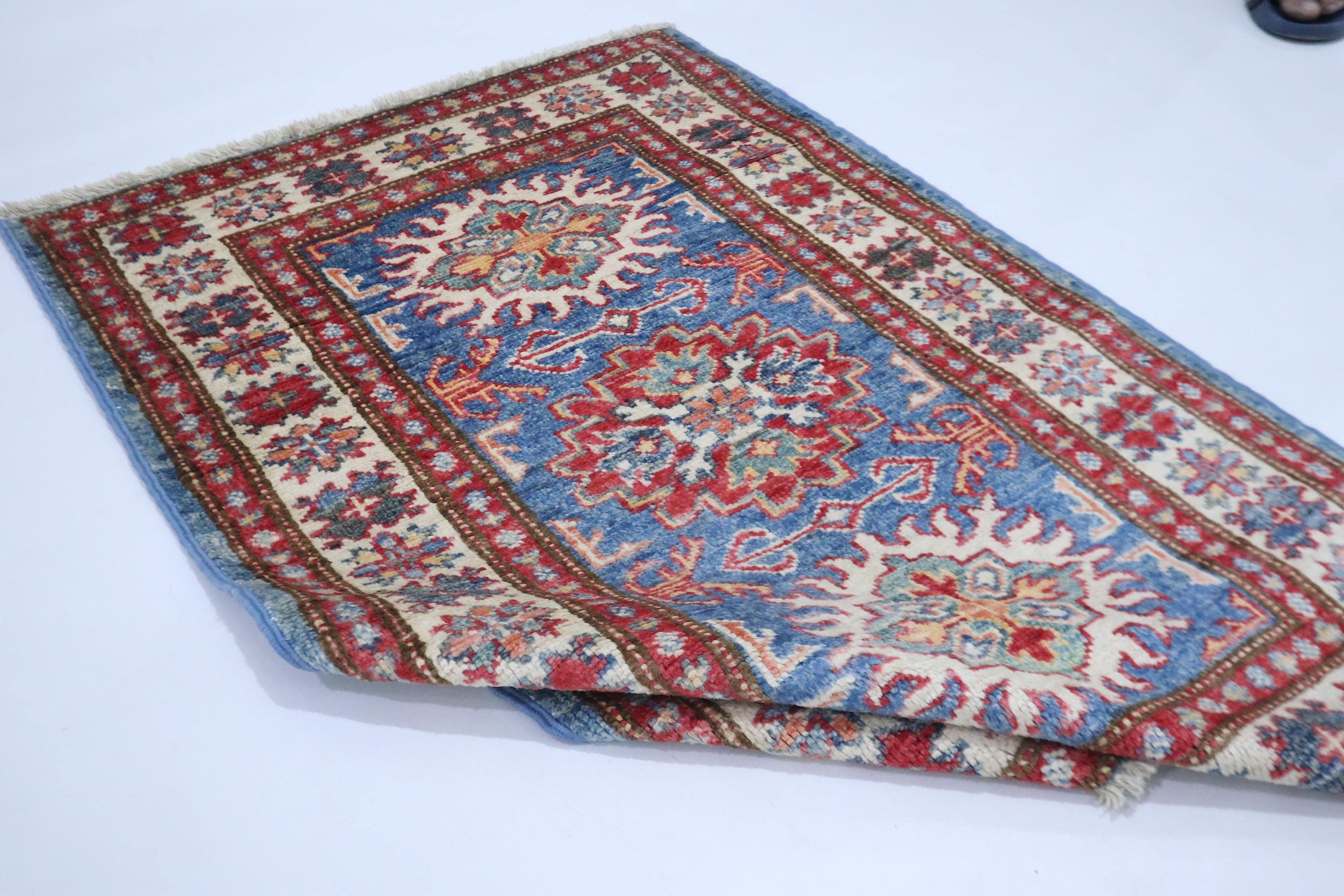 2x3 Kazak Area Rug - Blue Afghan Hand Knotted Geometric Natural Dye Wool Rug - Accent Rug - Traditional Rug - Door Mat - Foyer Rug - Rugs