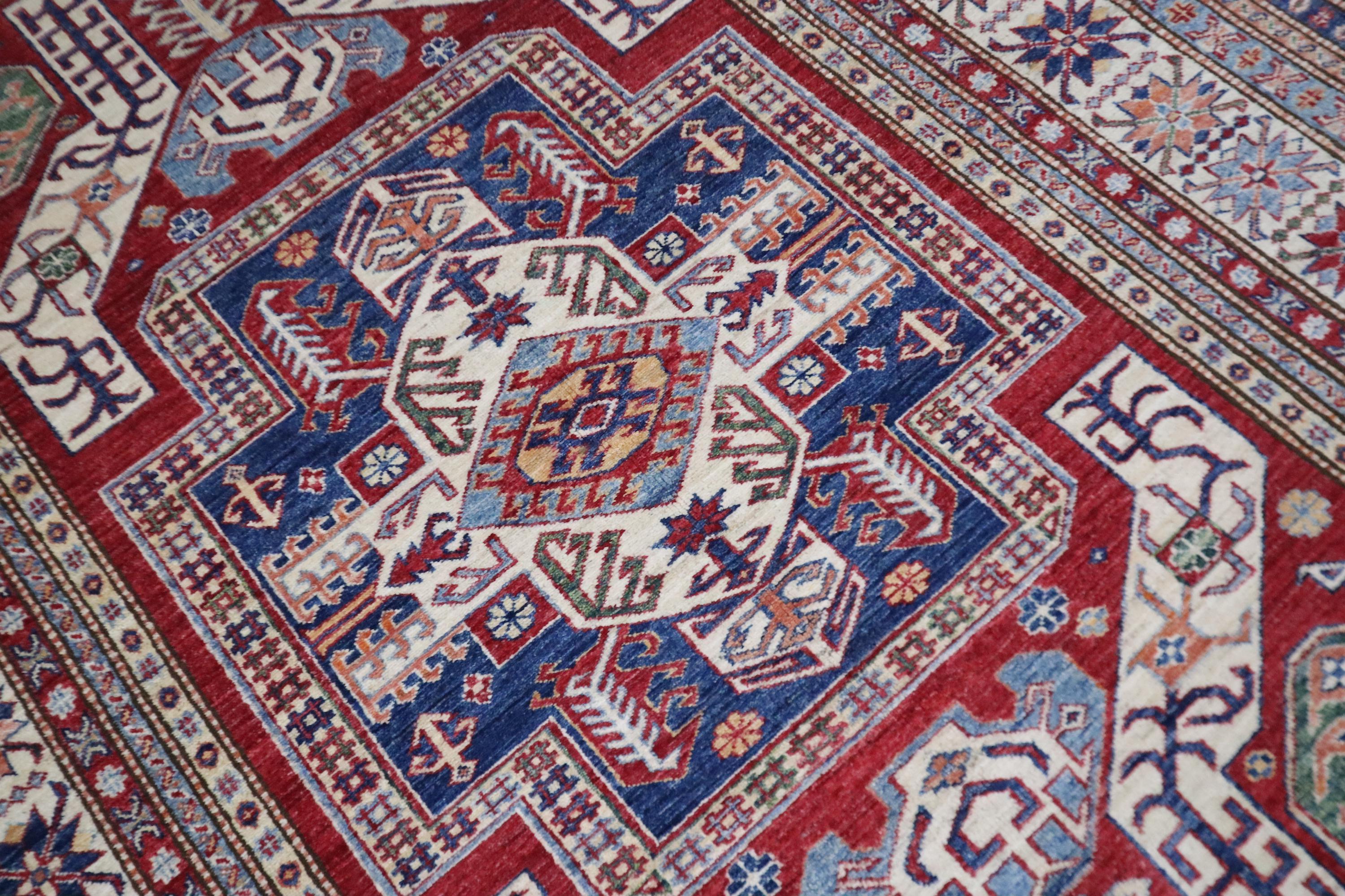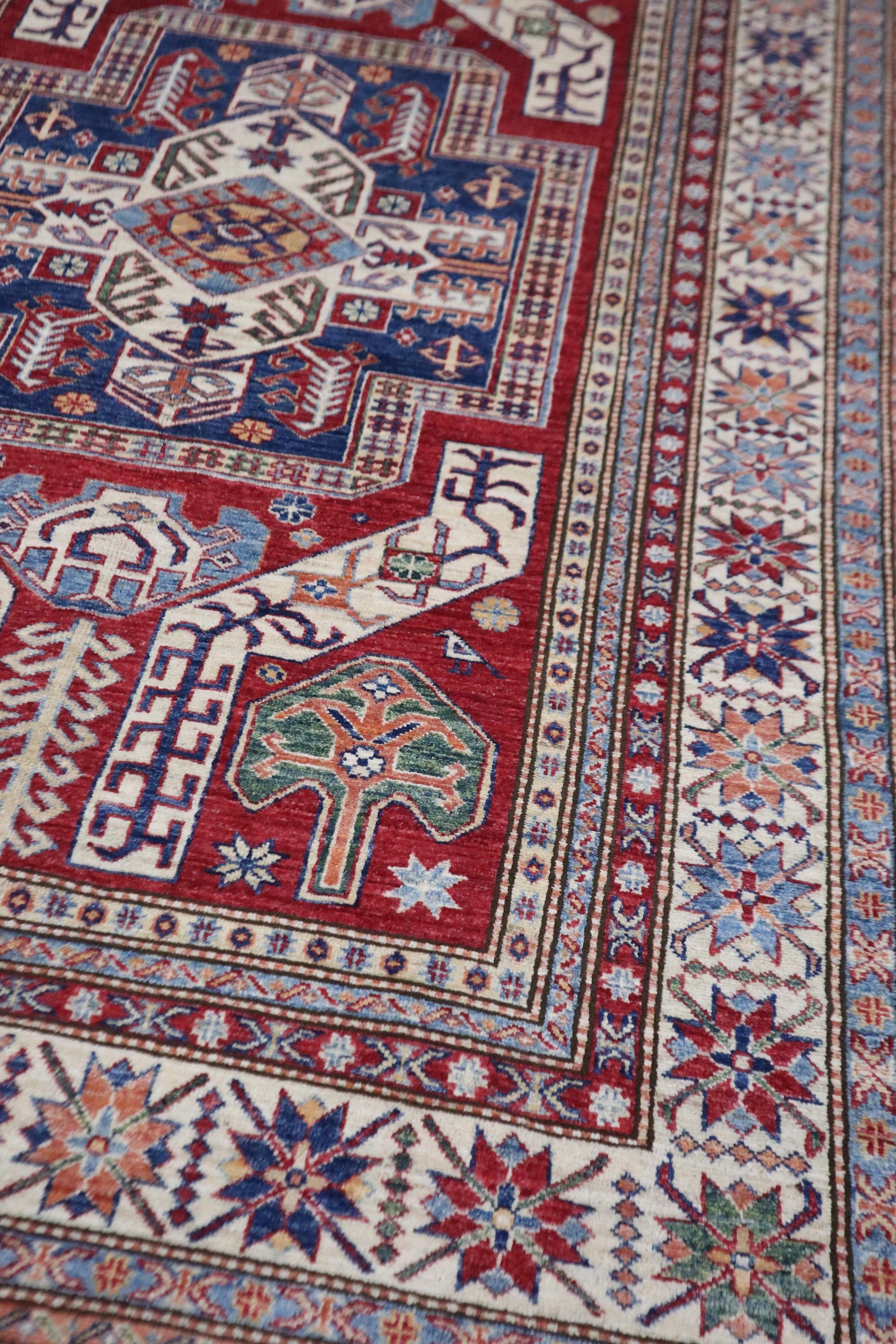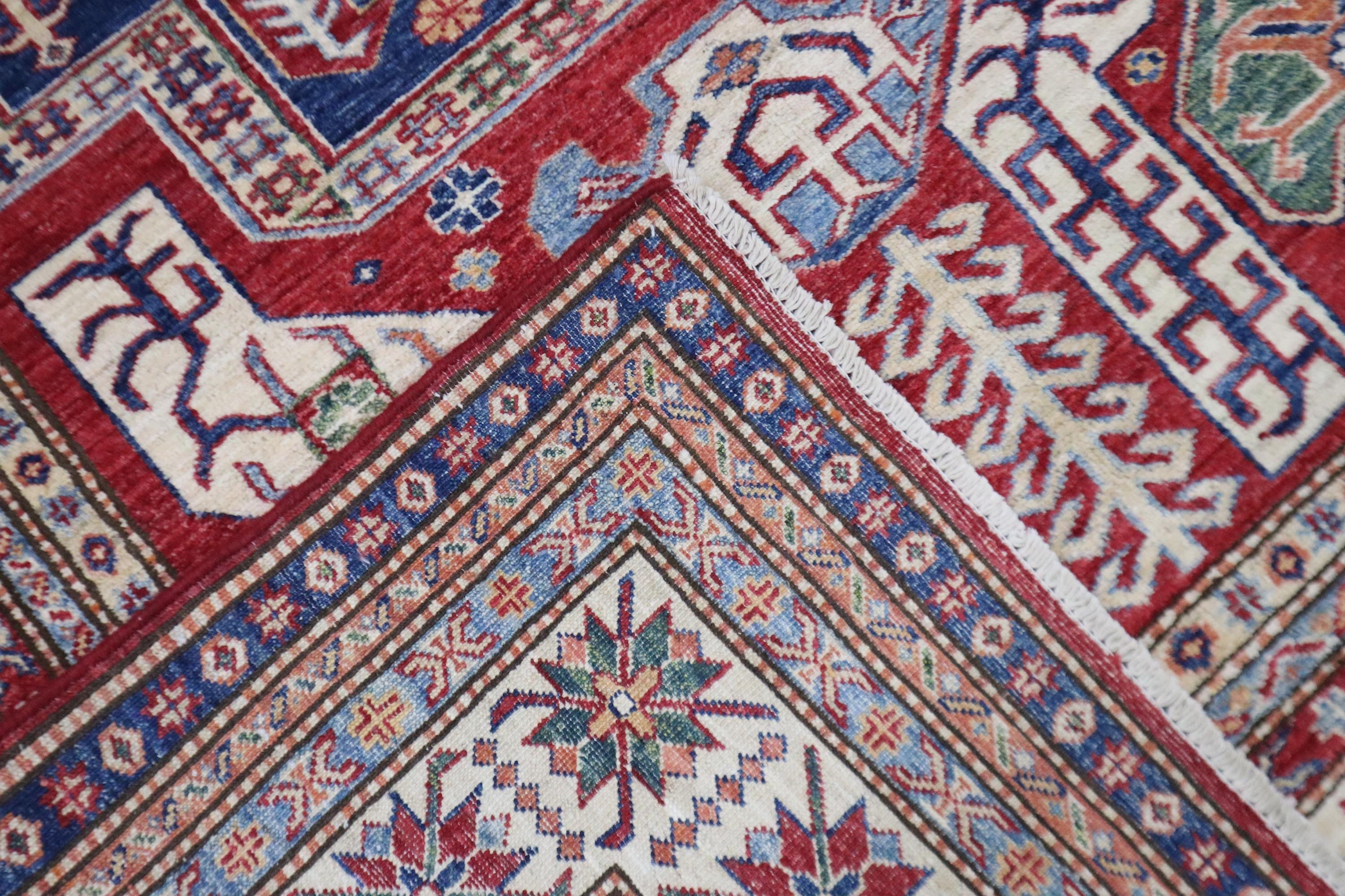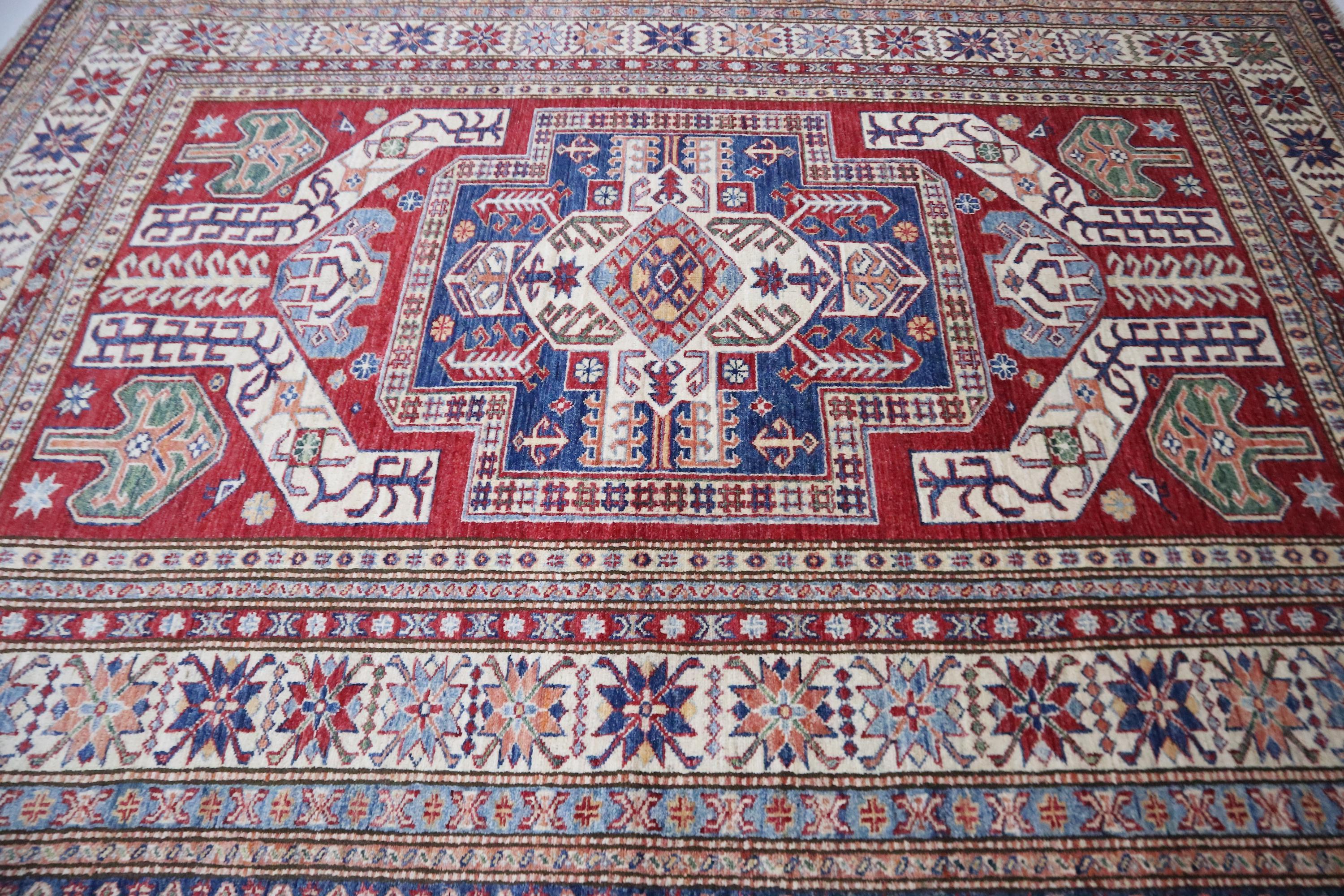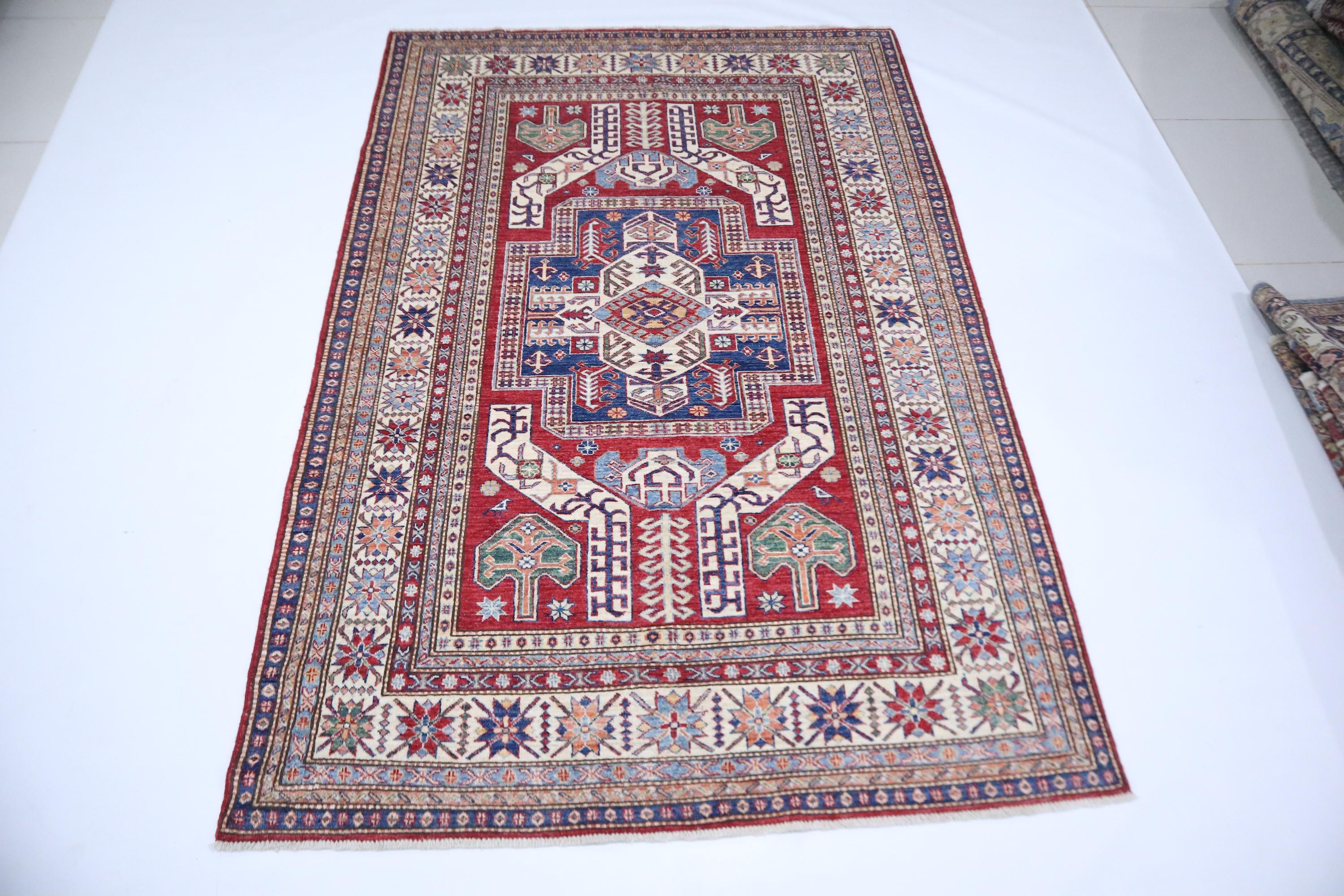 5x8 Kazak Area Rug - Red Afghan Handmade Geometric Pattern Veg Dye Wool Rug - Traditional Rug - Oriental Rug - Bedroom Rug - Living Room Rug