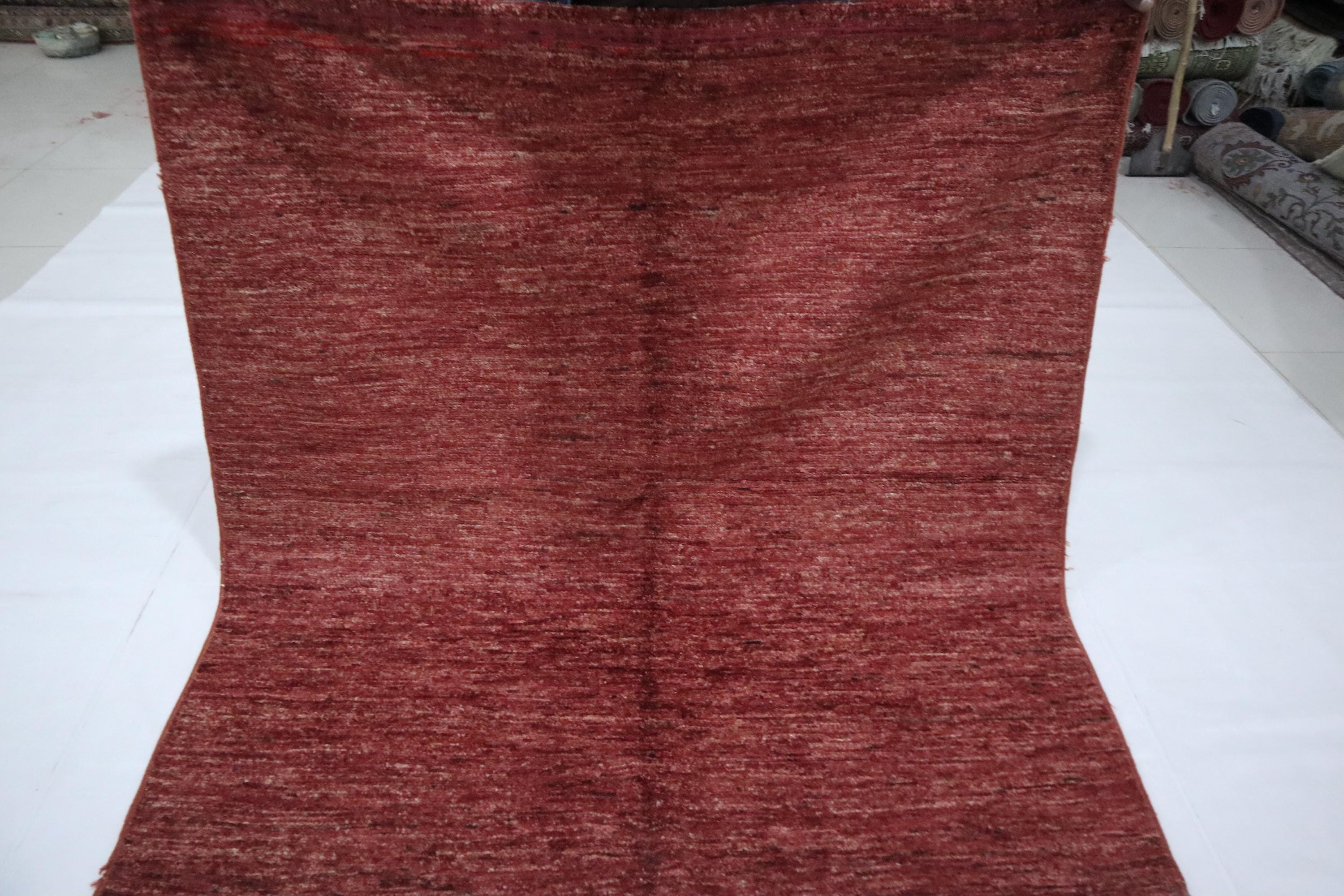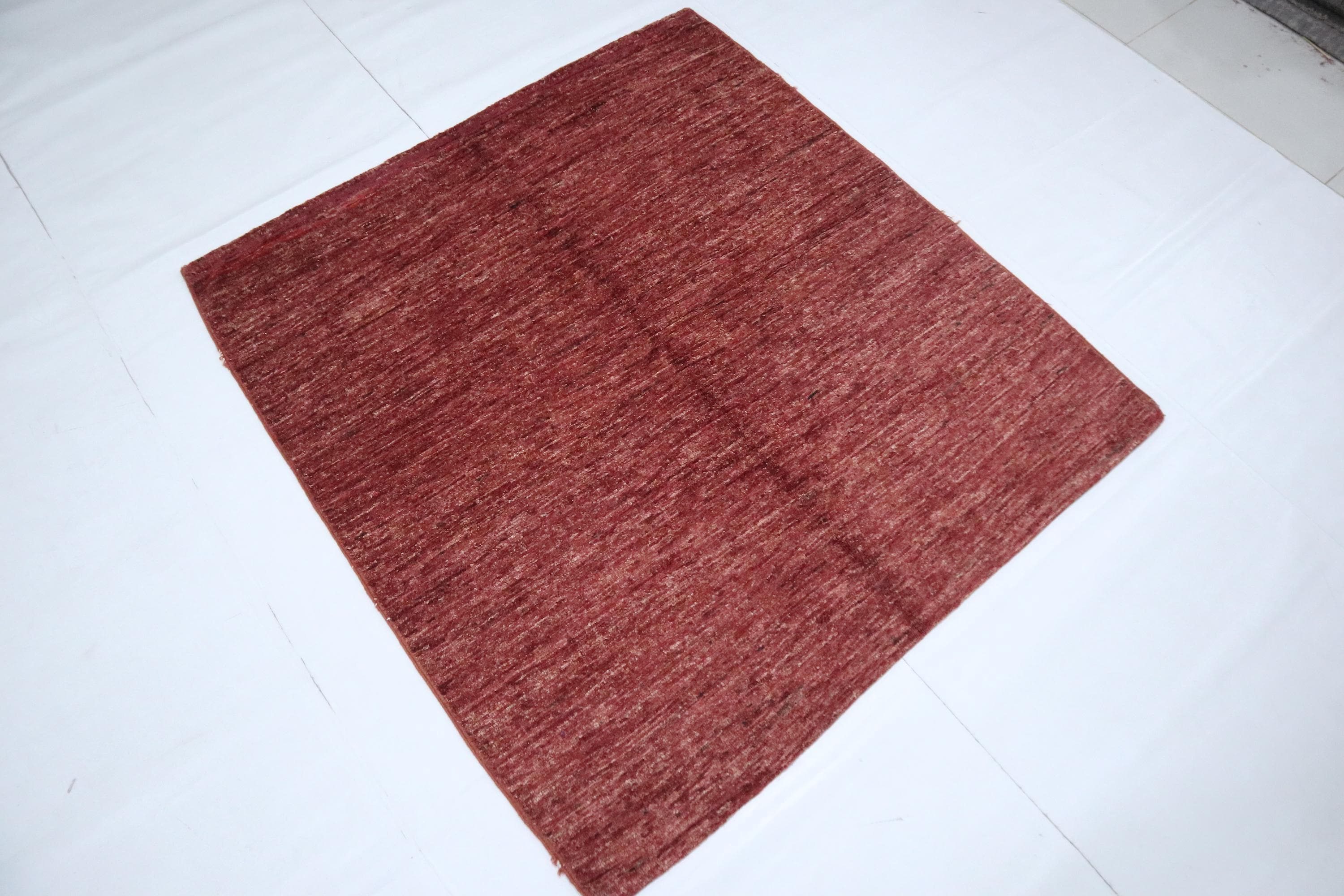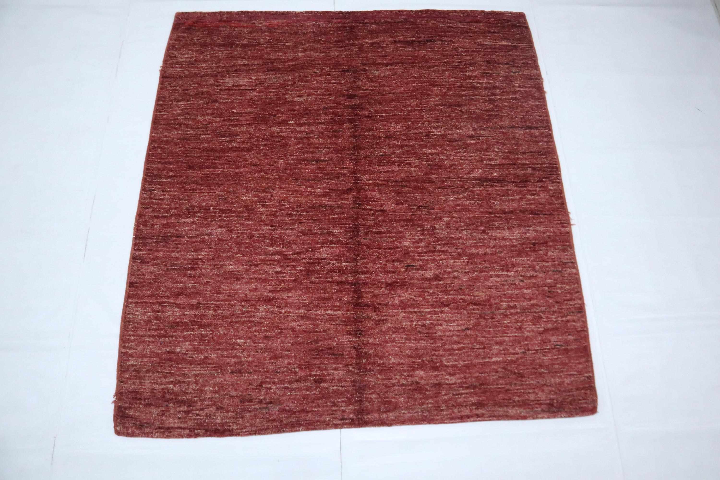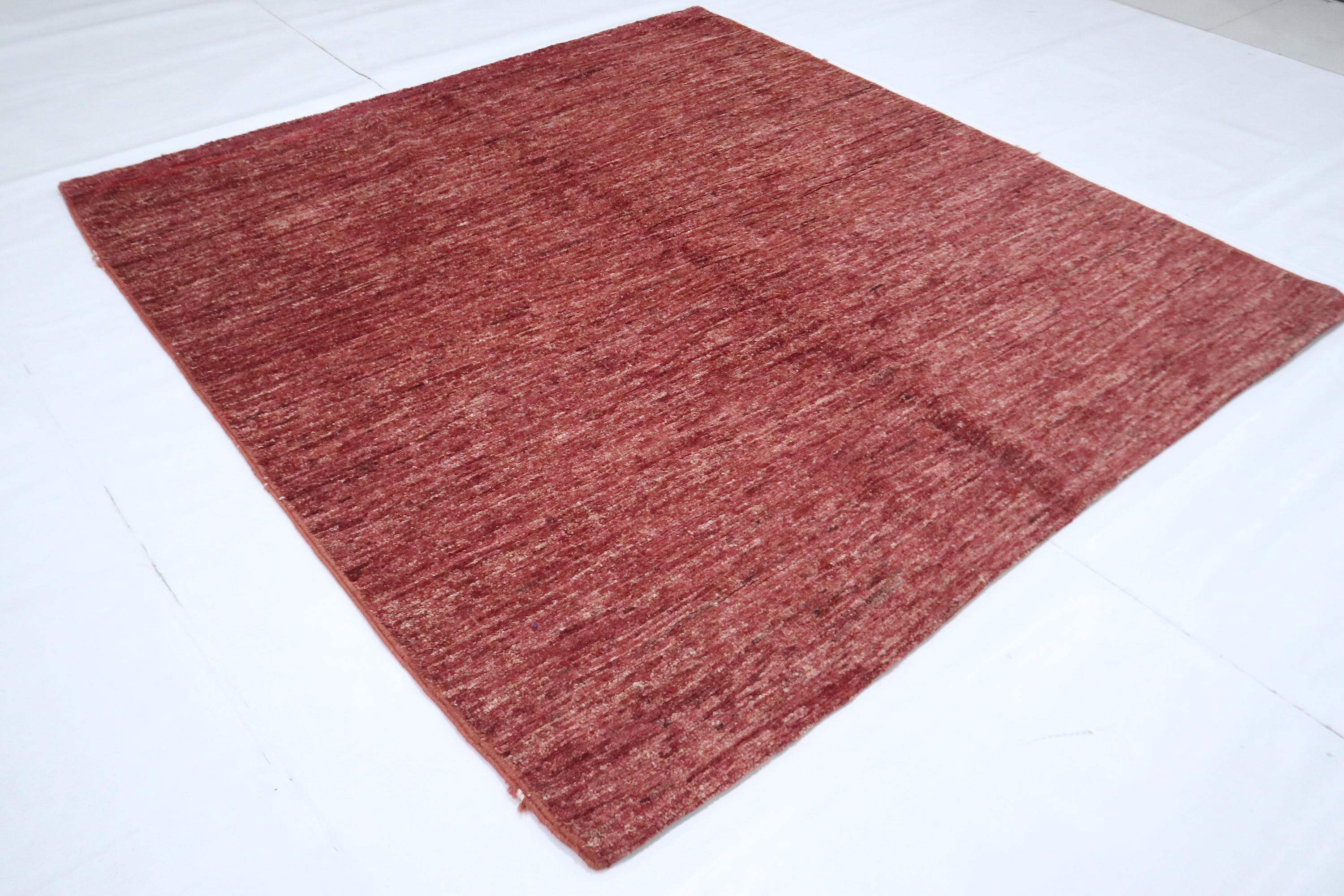 5x5 Ft Gabbeh Square Area Rug - Burgundy Afghan Hand Knotted Striped Lori Baft Wool Rug - Bedroom Rug - Living Room Rug - Entryway Rug
