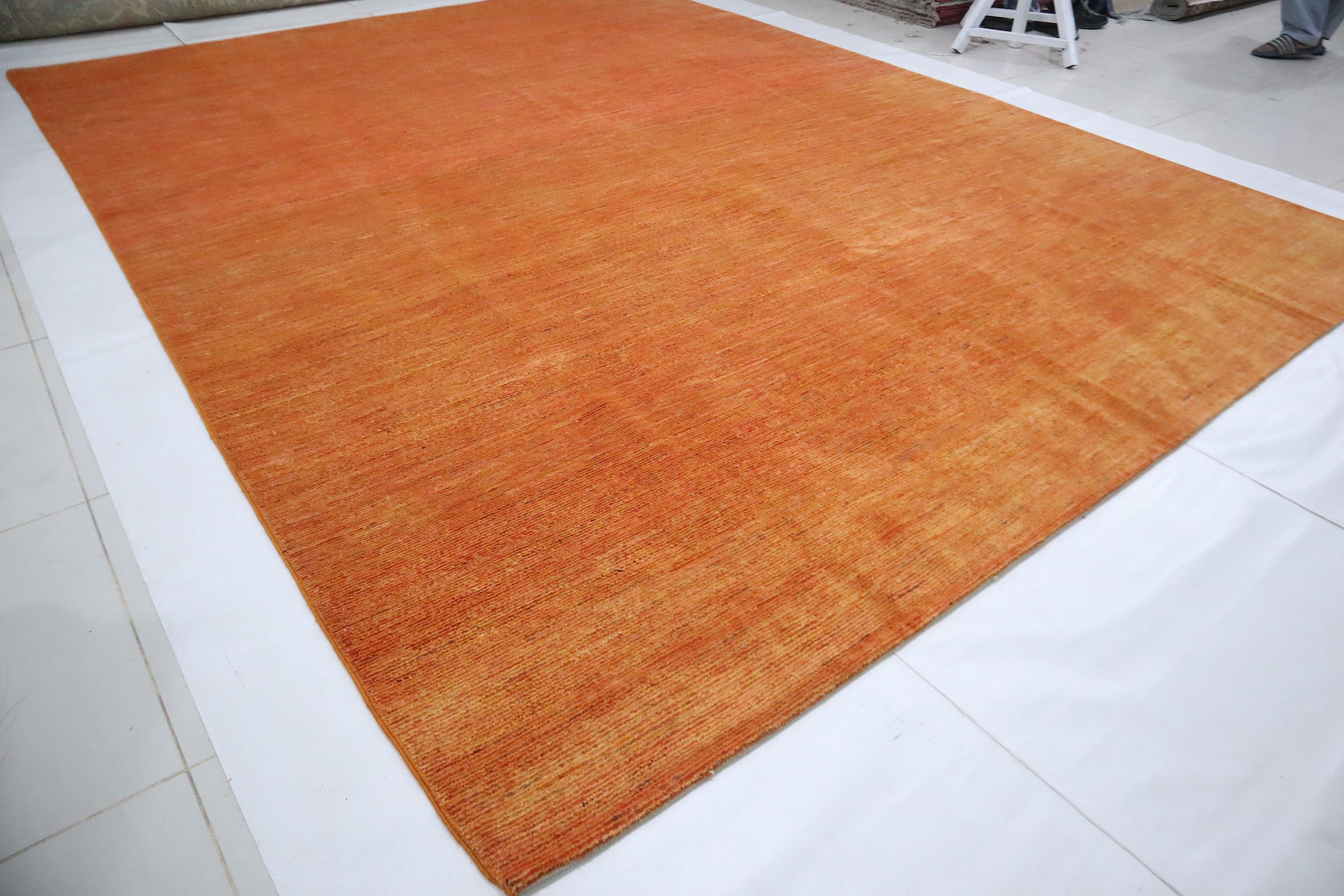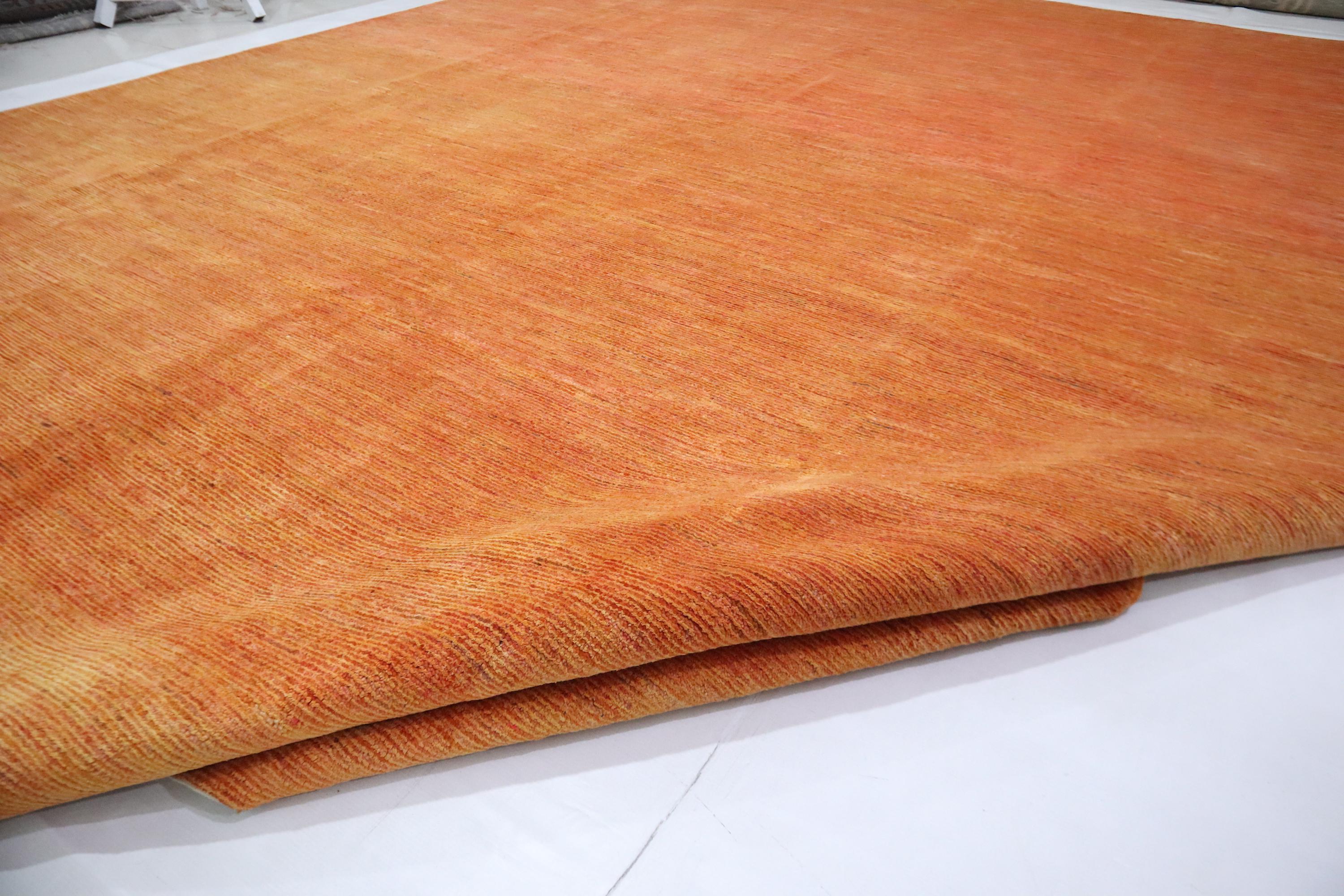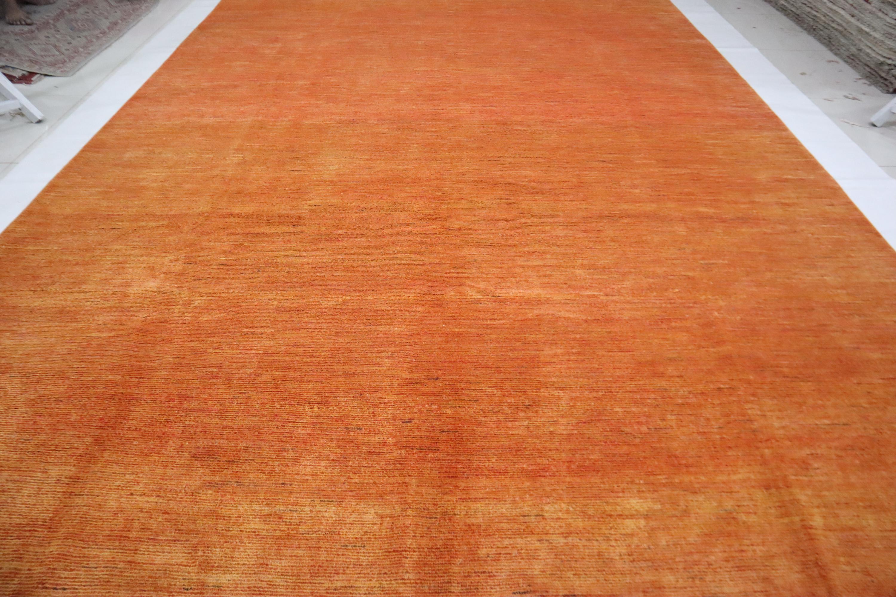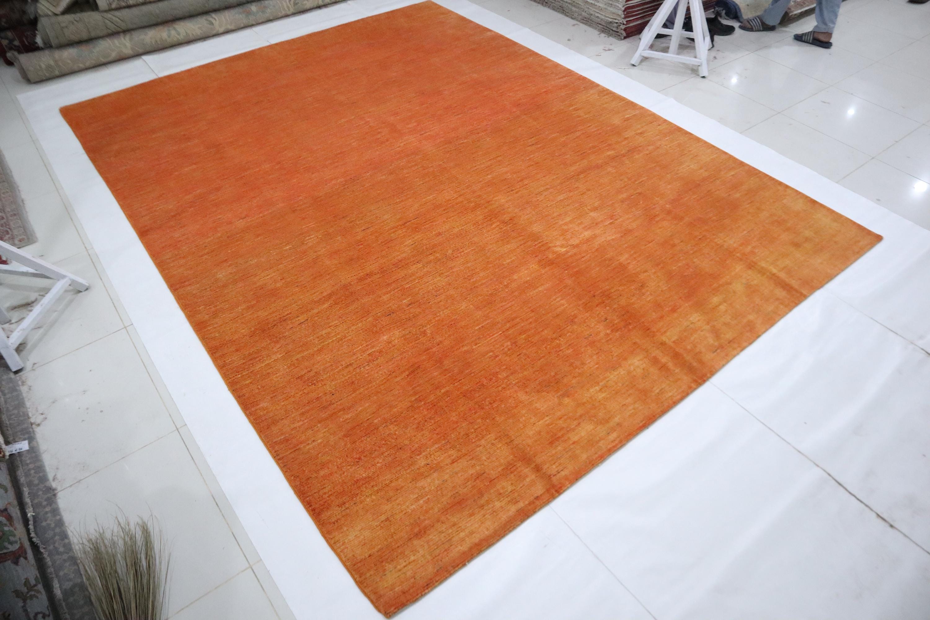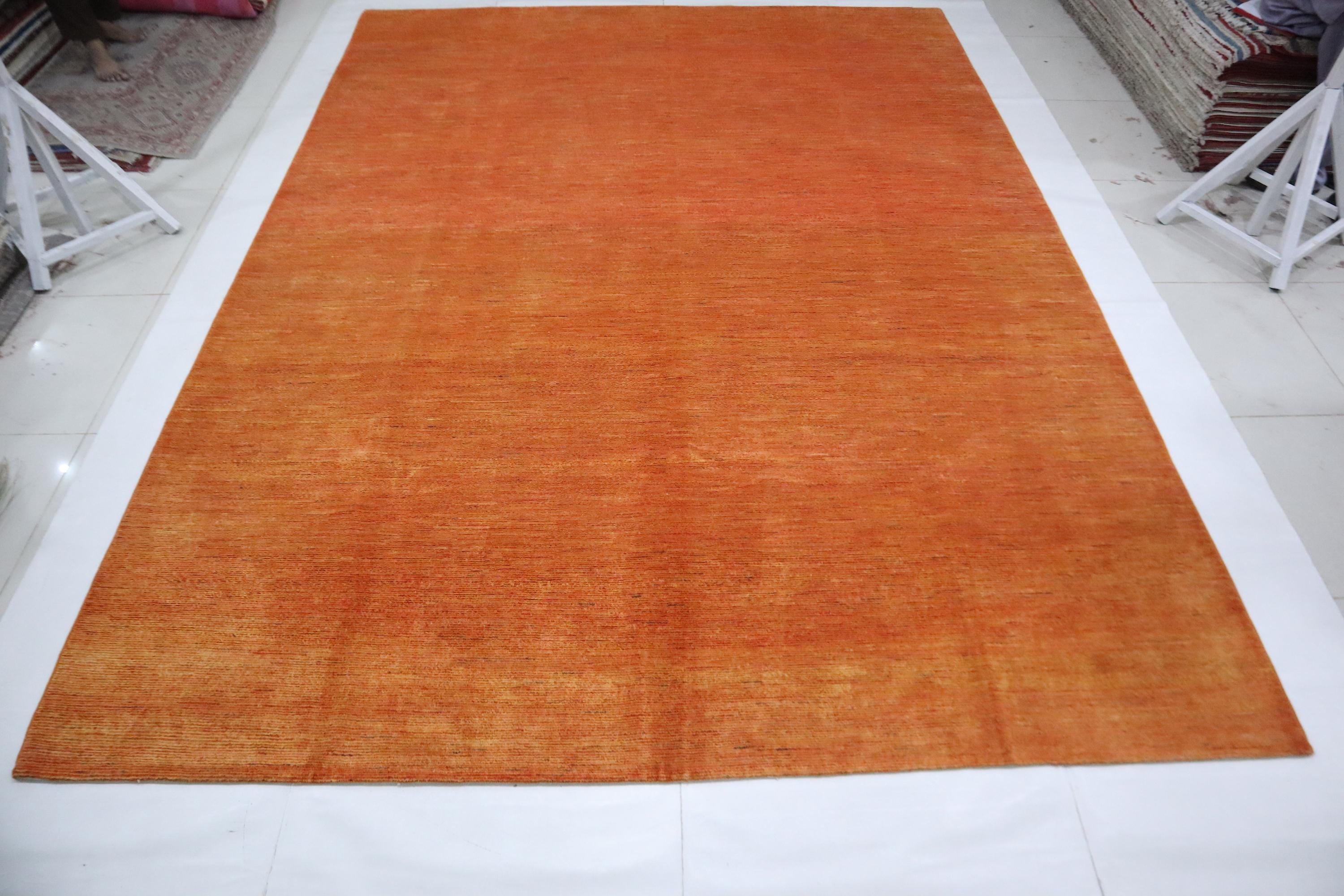 9x12 Gabbeh Area Rug - Soft Orange Afghan Handmade Striped Lori Baft Wool Rug - Plush Wool Rug - Bedroom Rug - Living Room Rug - Office Rug