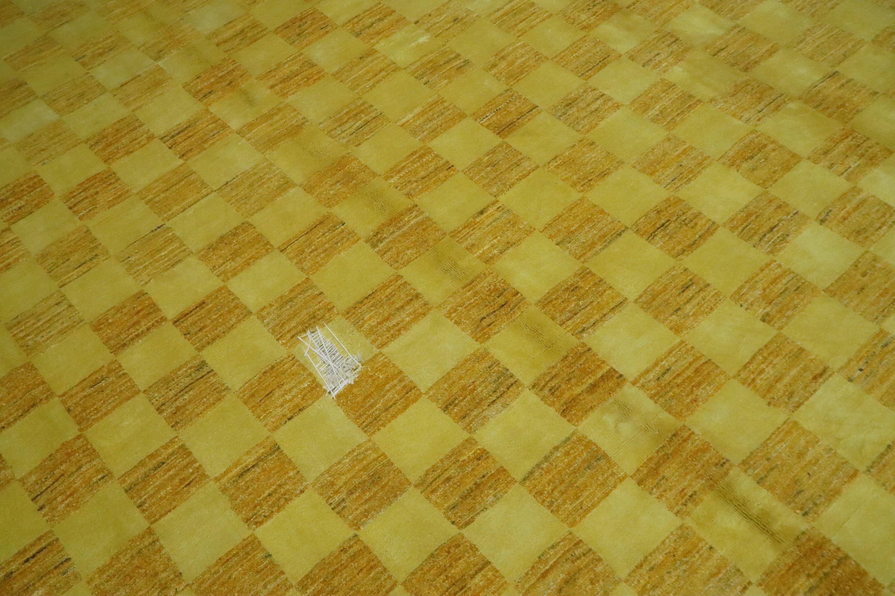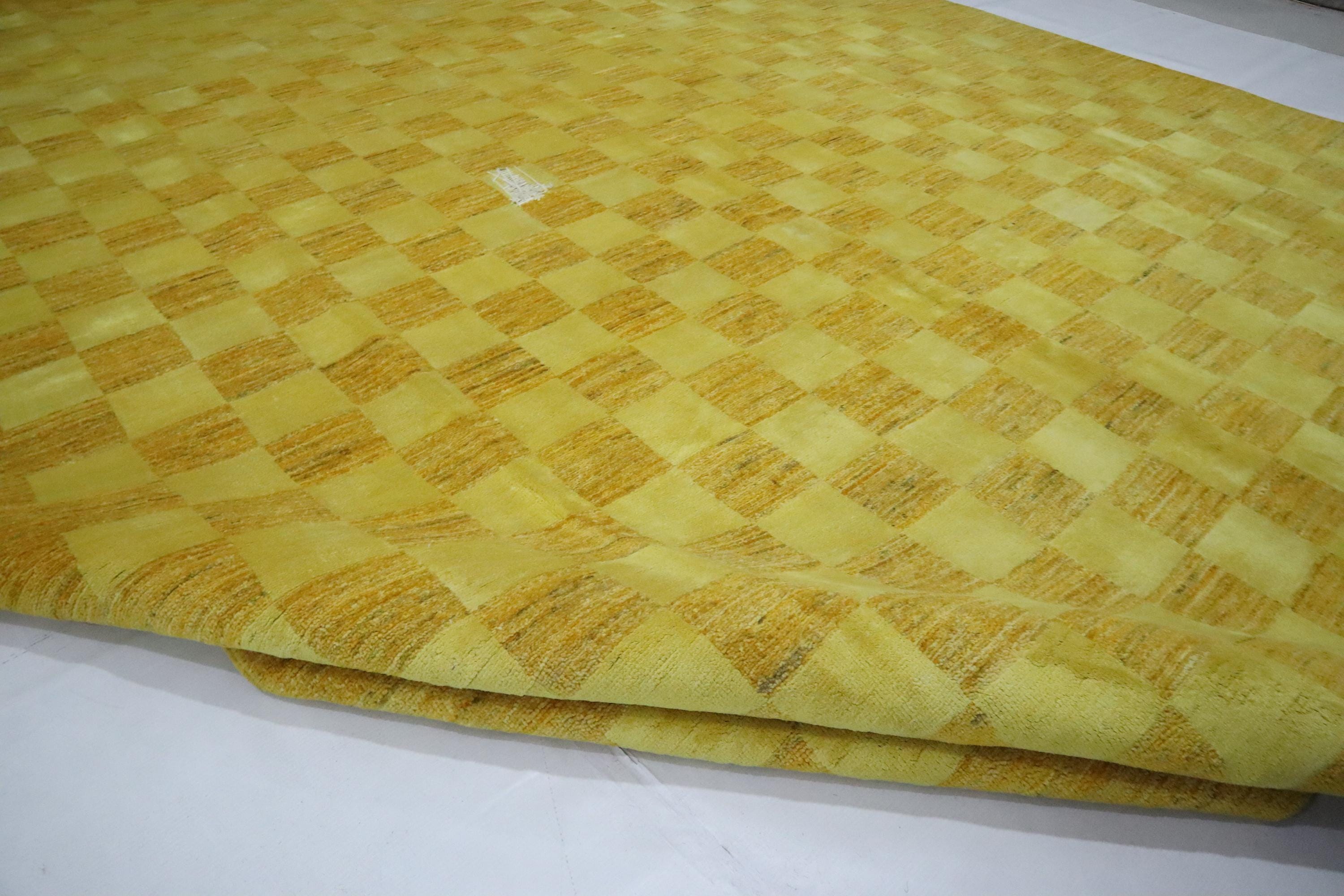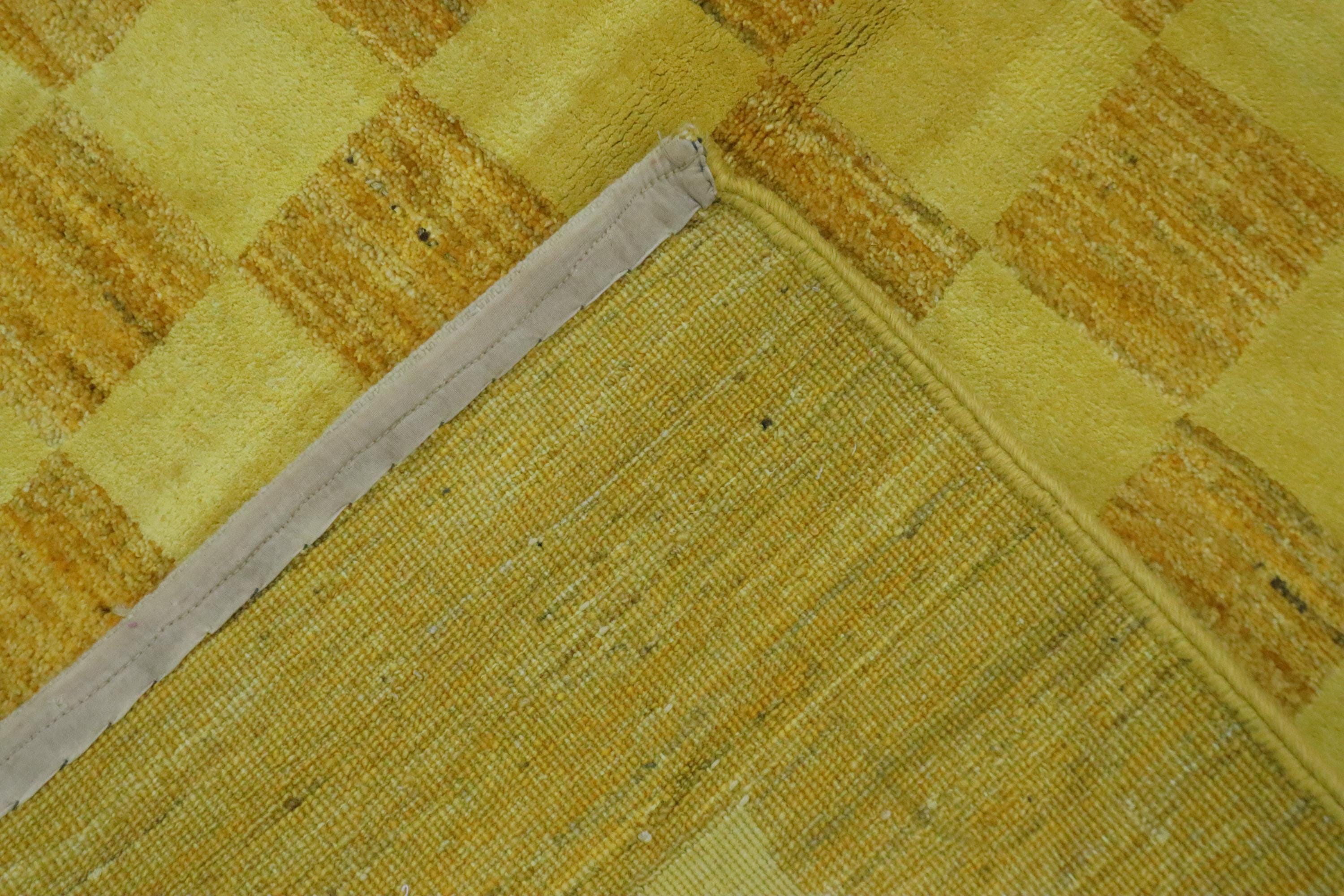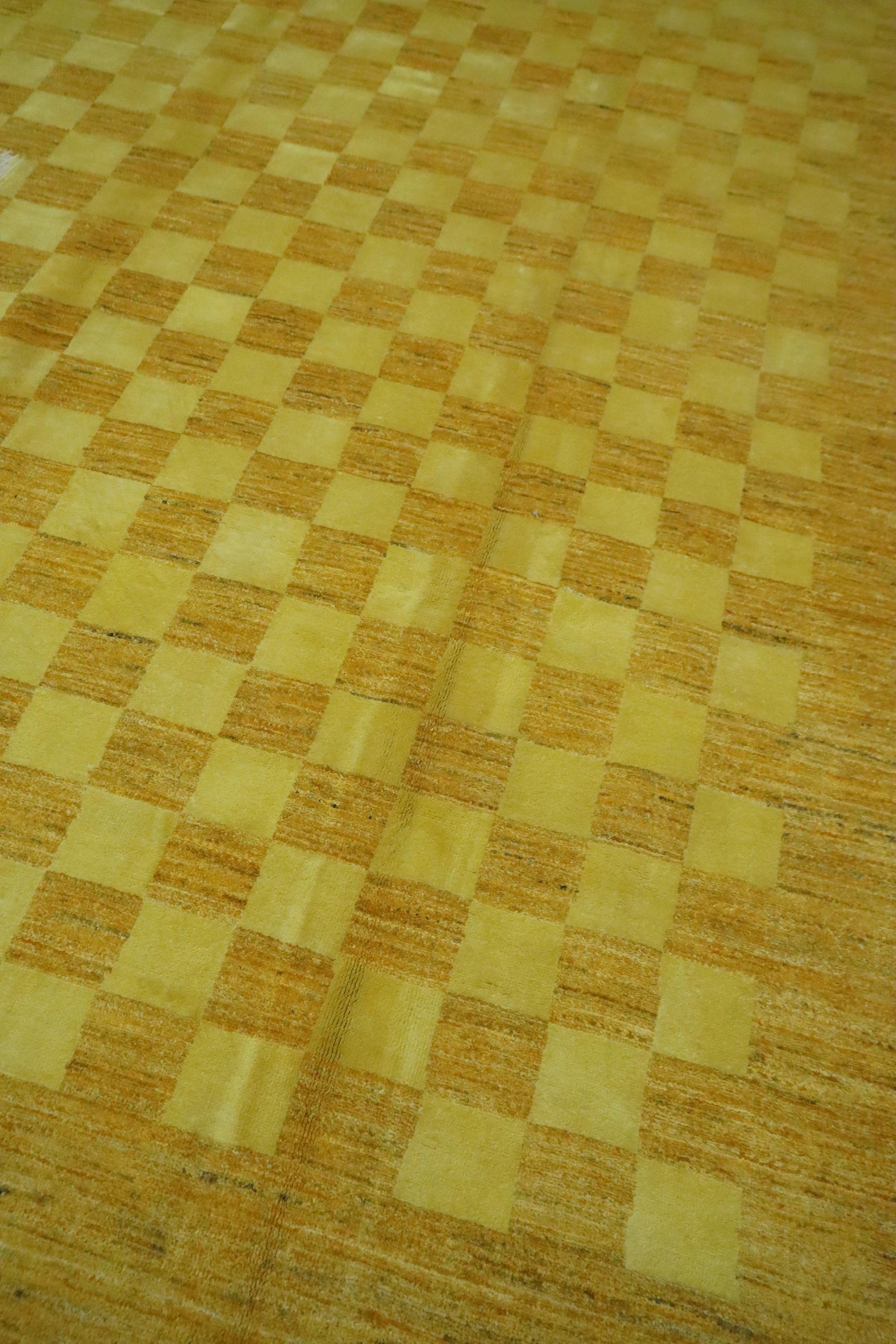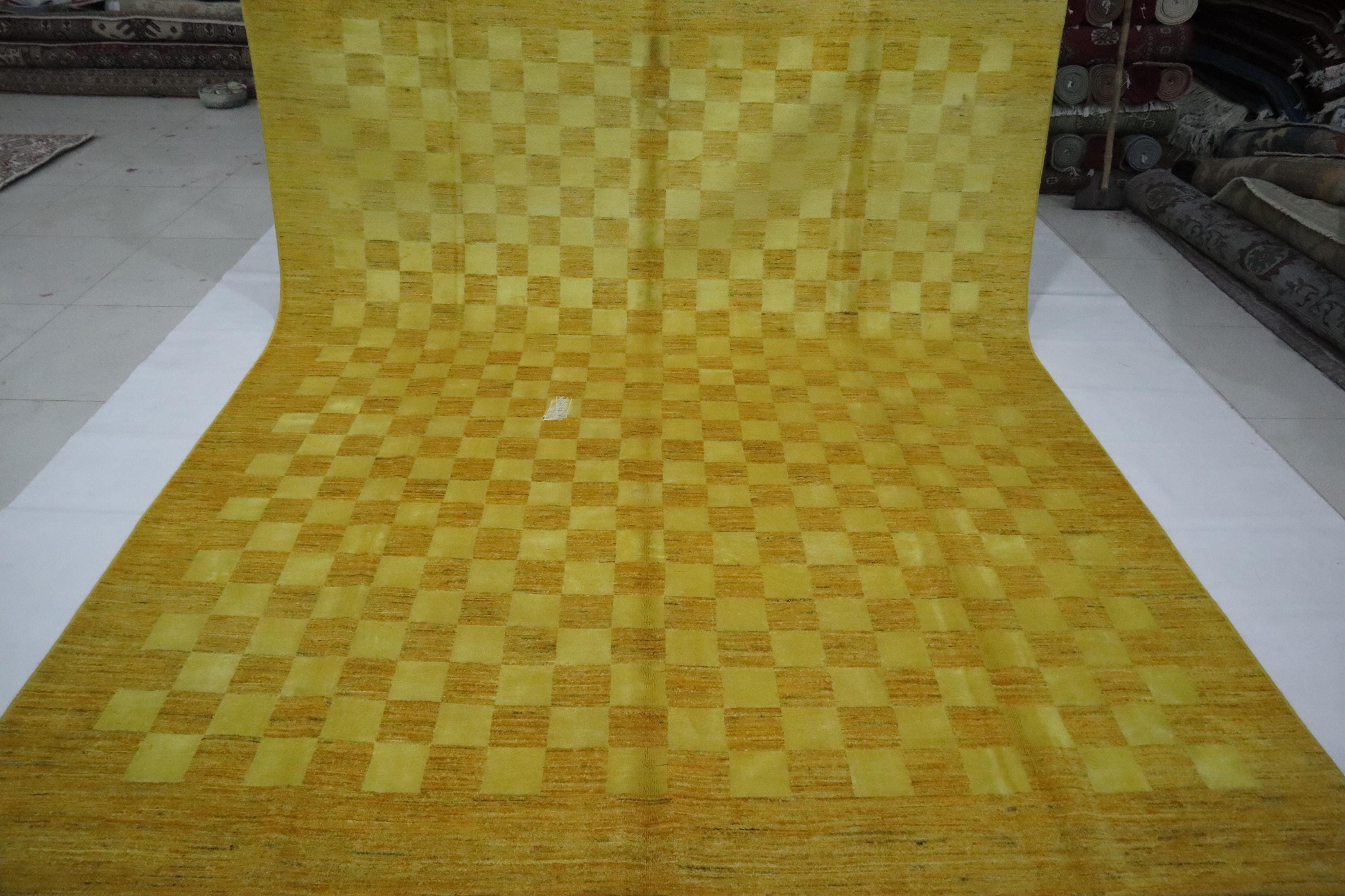 8x10 Gabbeh Area Rug - Golden Yellow Afghan Handmade Checkered Lori Baft Wool Rug - Check Design Rug - Living Room Rug - Dining Room Rug