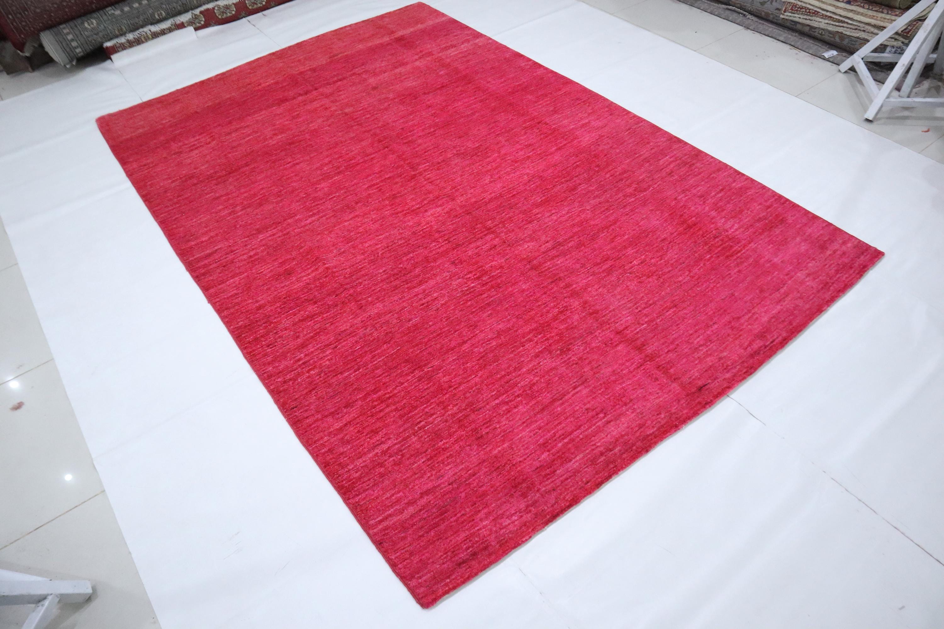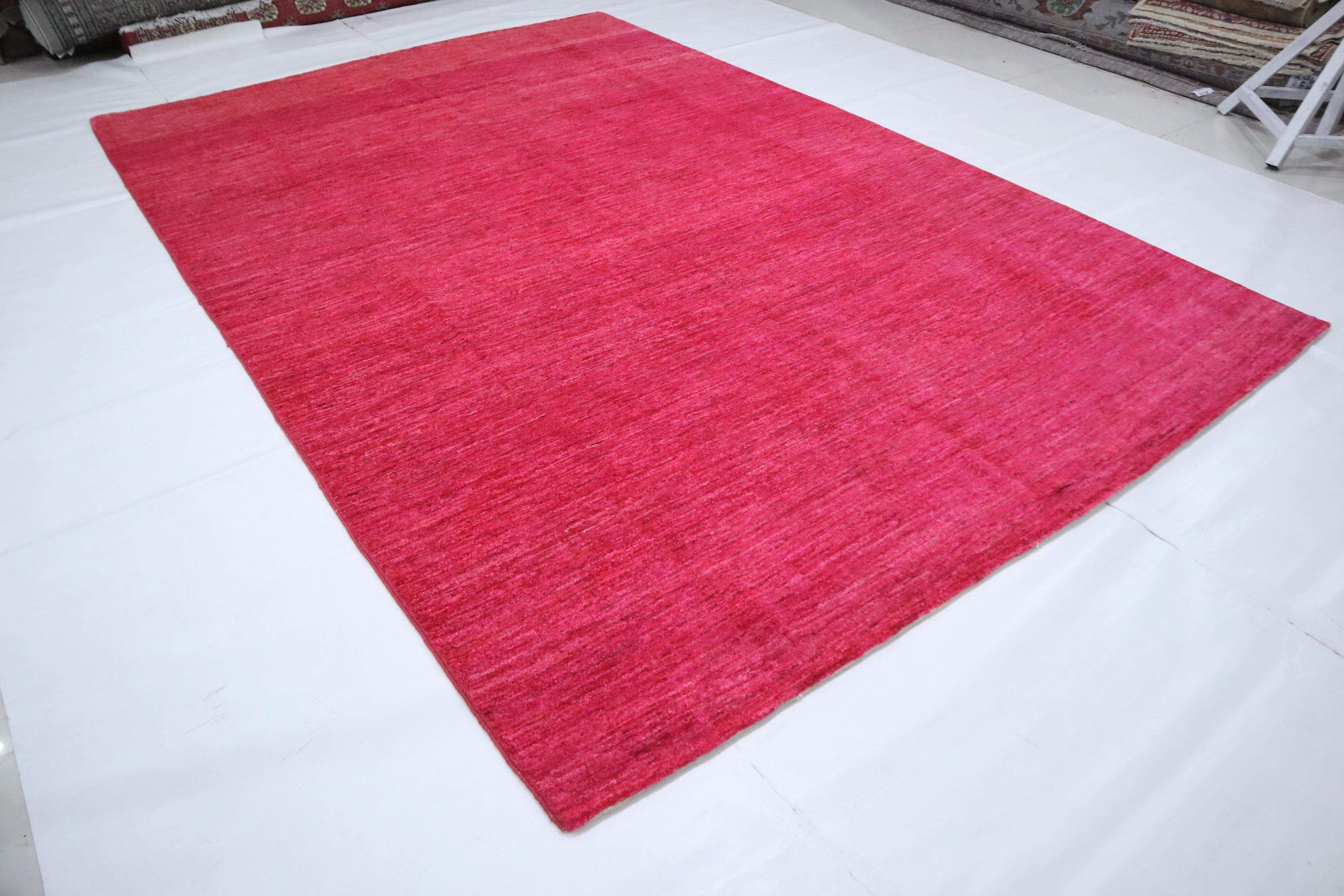 7x10 Gabbeh Area Rug - Shocking Pink Afghan Handmade Solid Design Lori Baft Wool Rug - Vibrant Pink Rug - Living Room Rug - Dining Room Rug