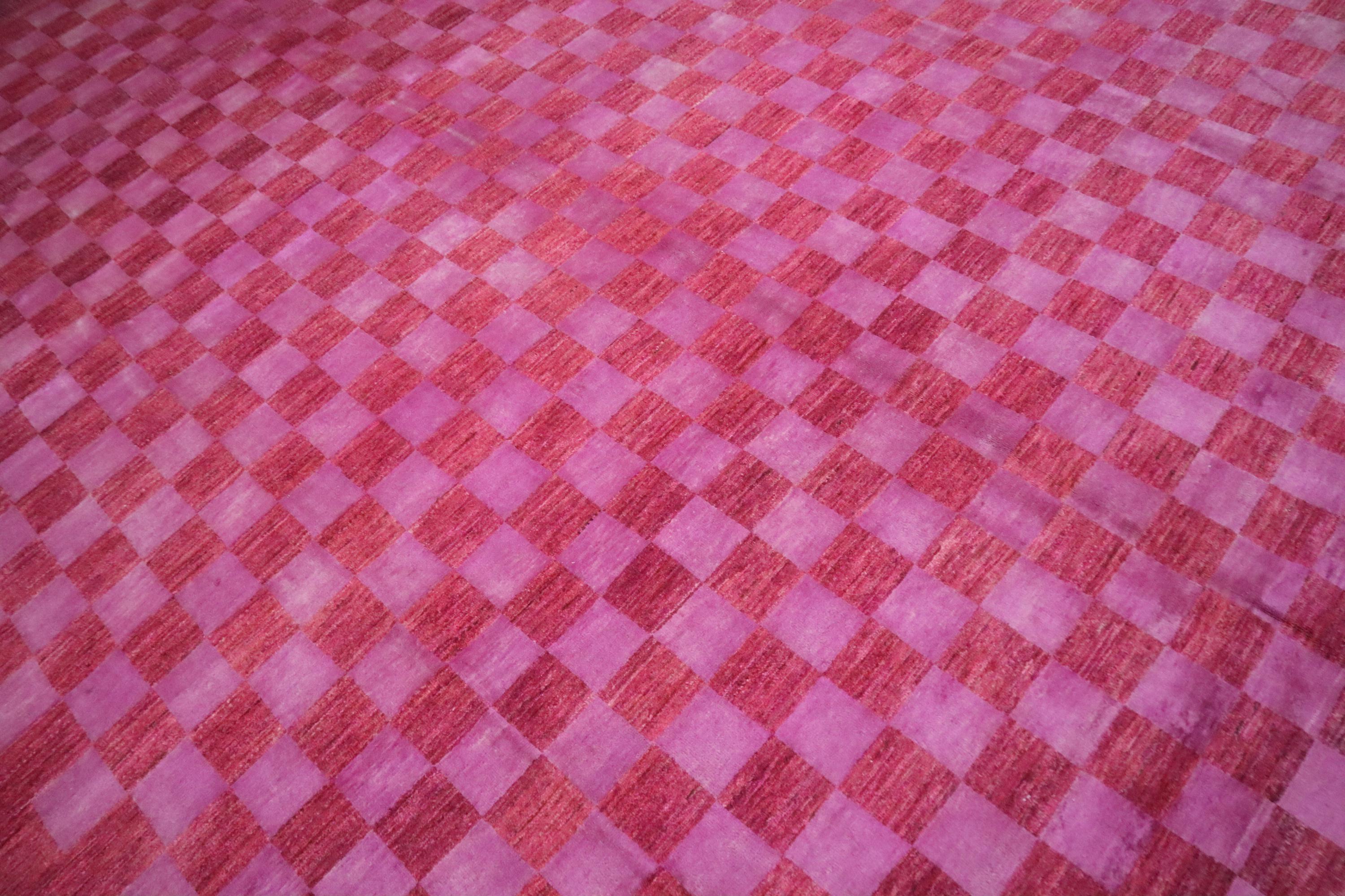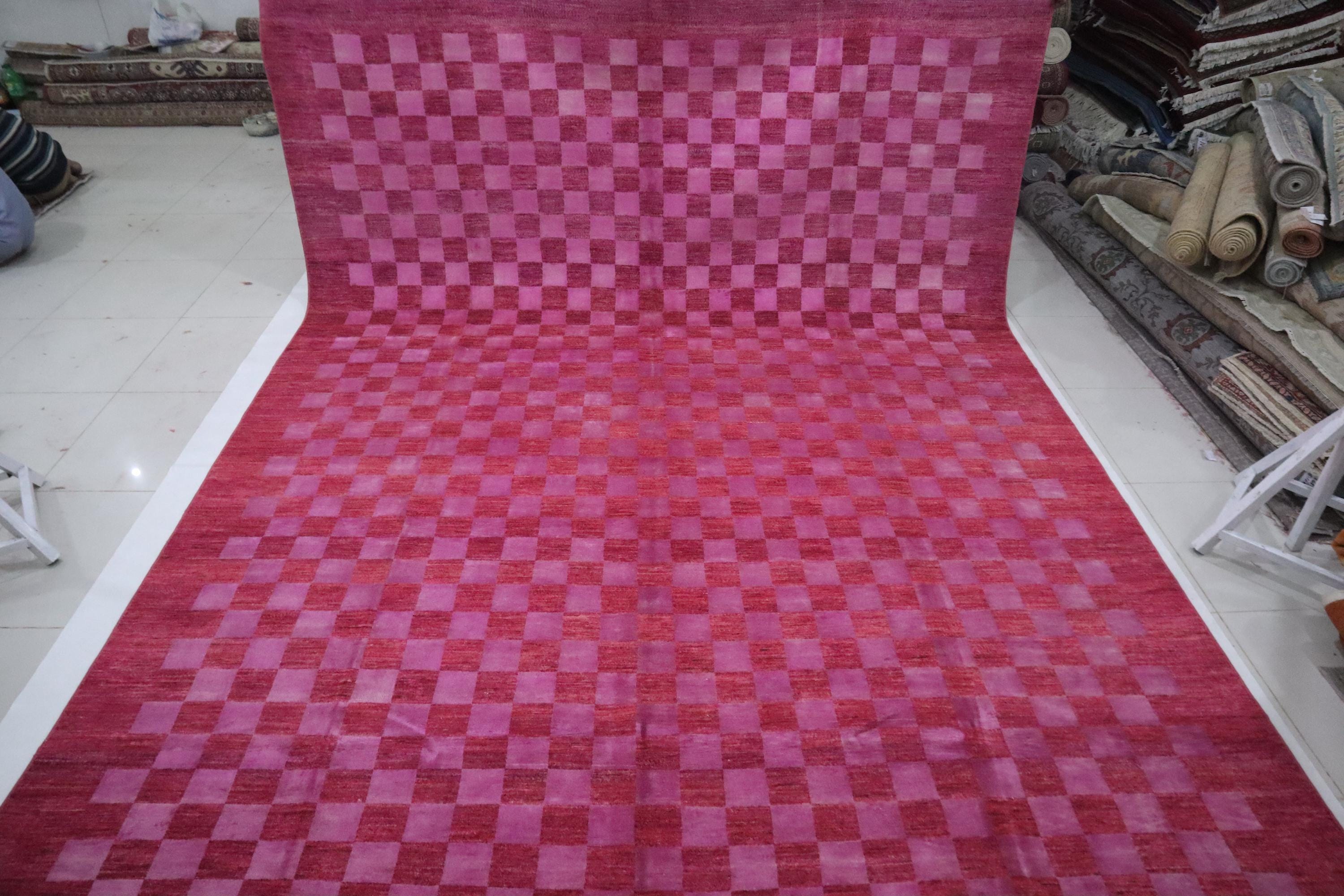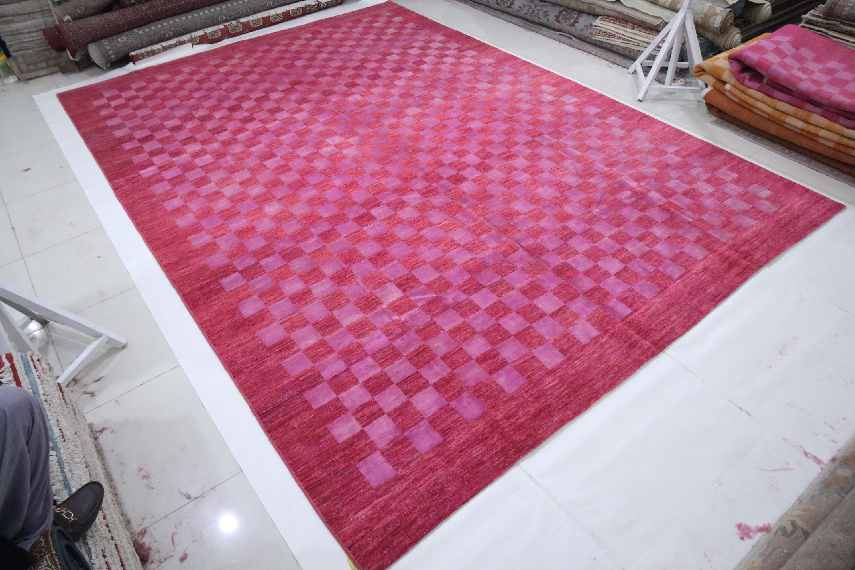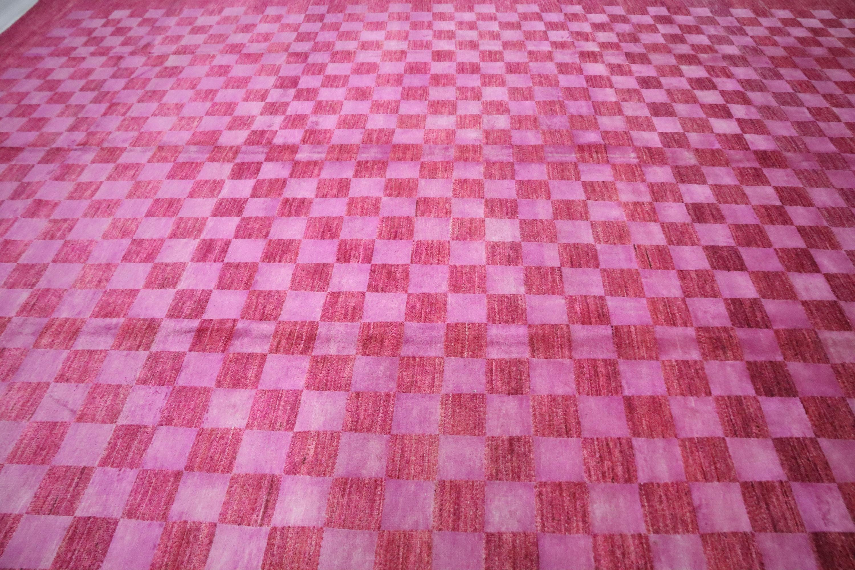 10x14 Gabbeh Area Rug - Pink Afghan Hand Knotted Checkered Thick Pile Wool Rug - Contemporary Rug - Boho Rug - Dining Room Rug - Bedroom Rug