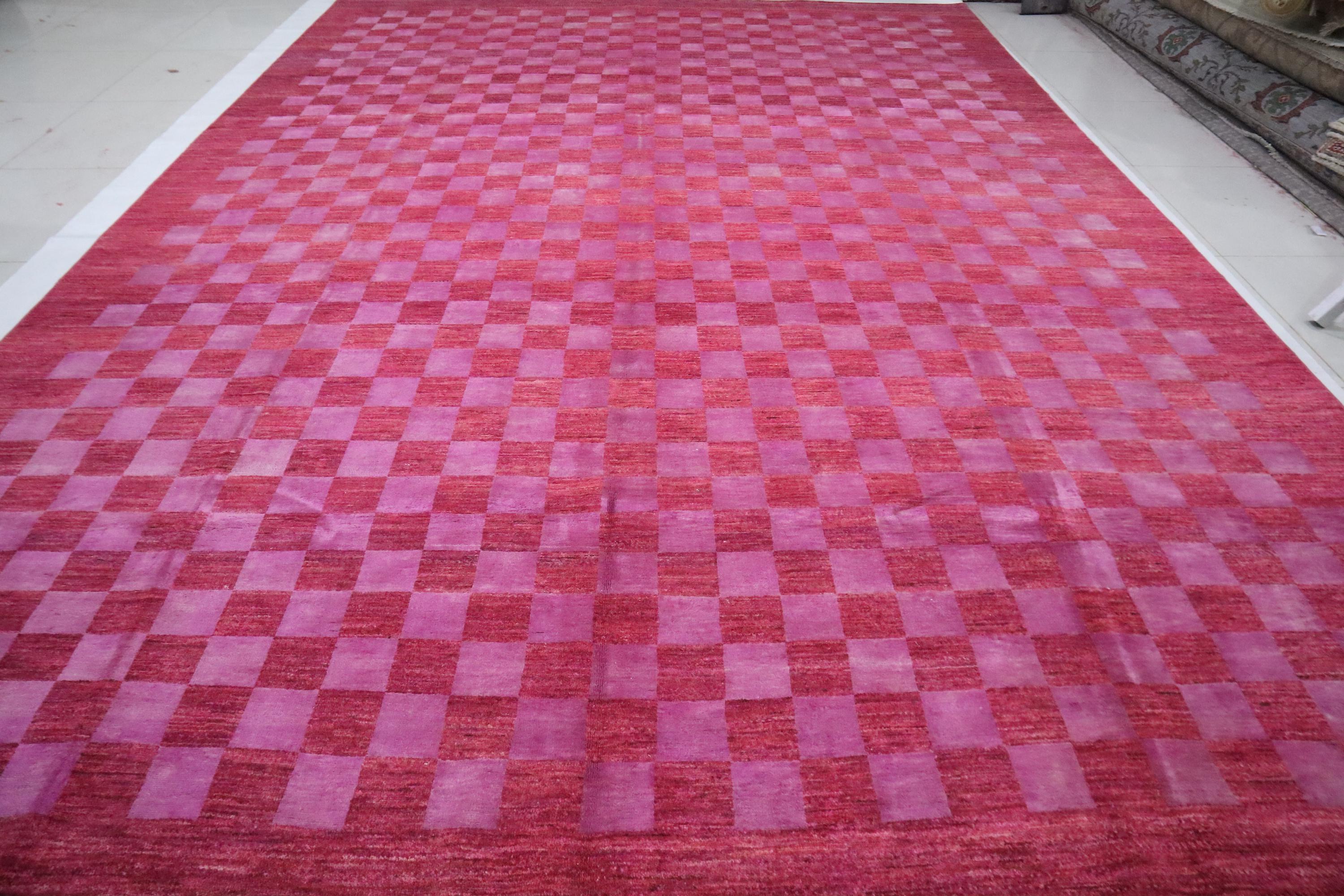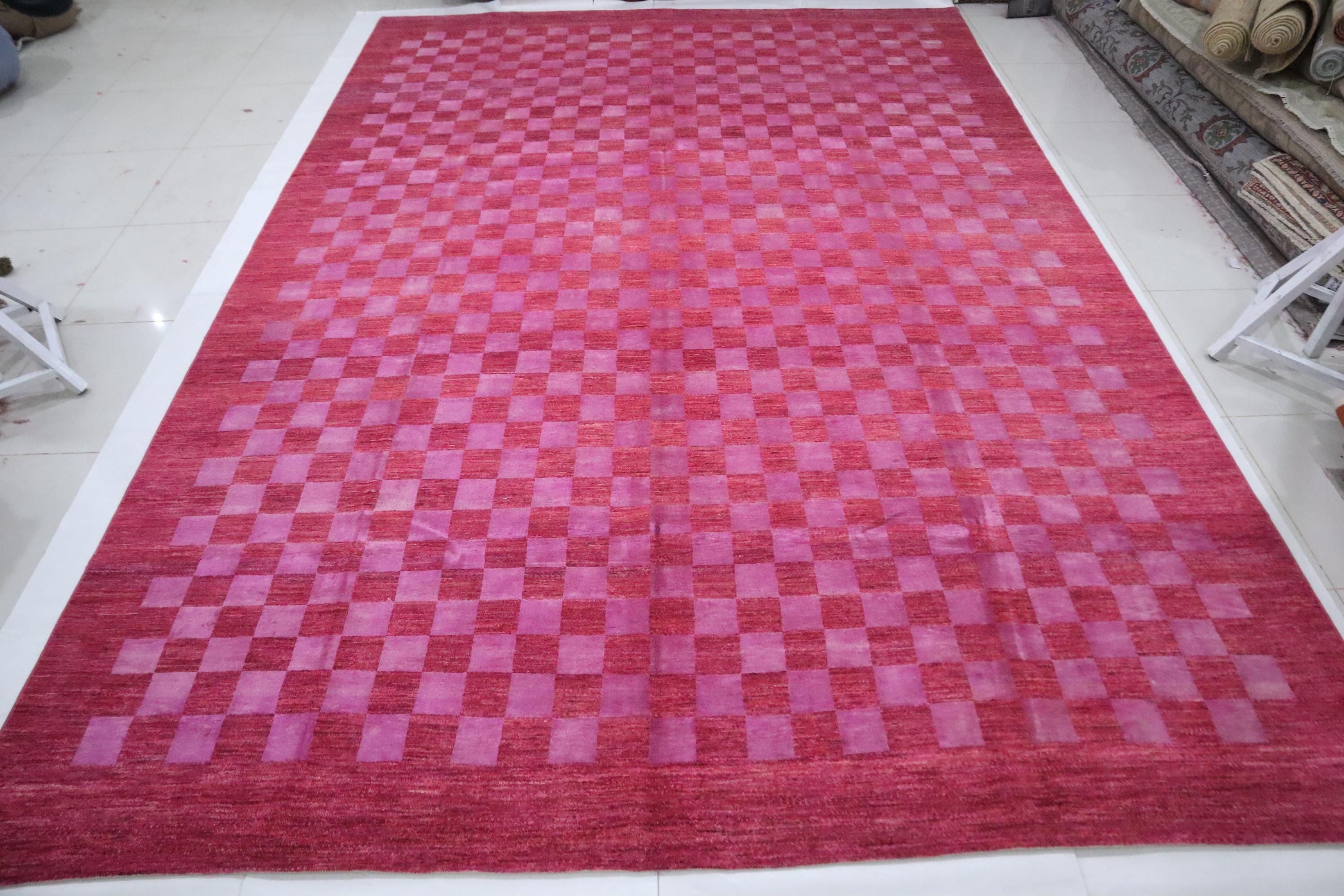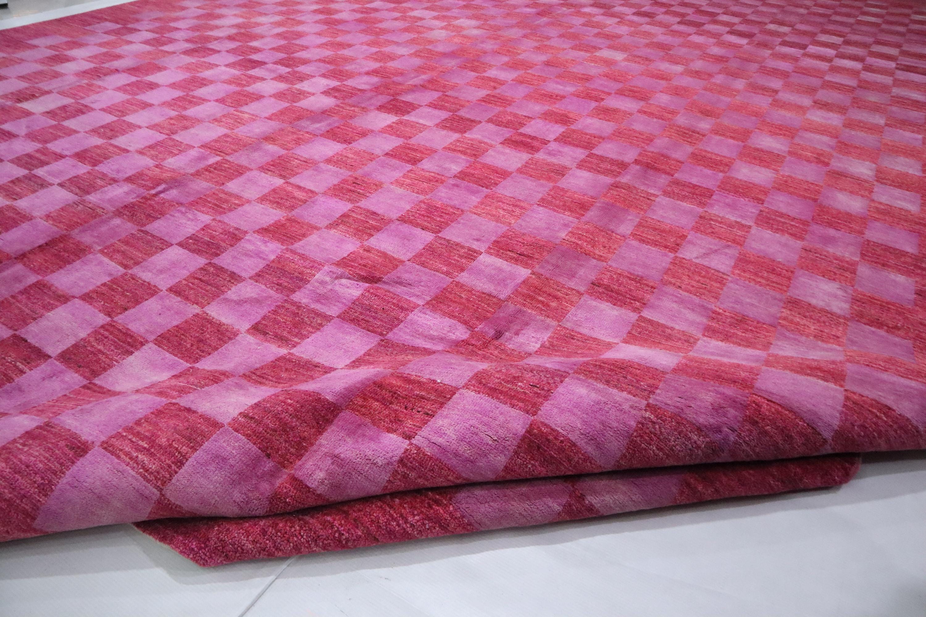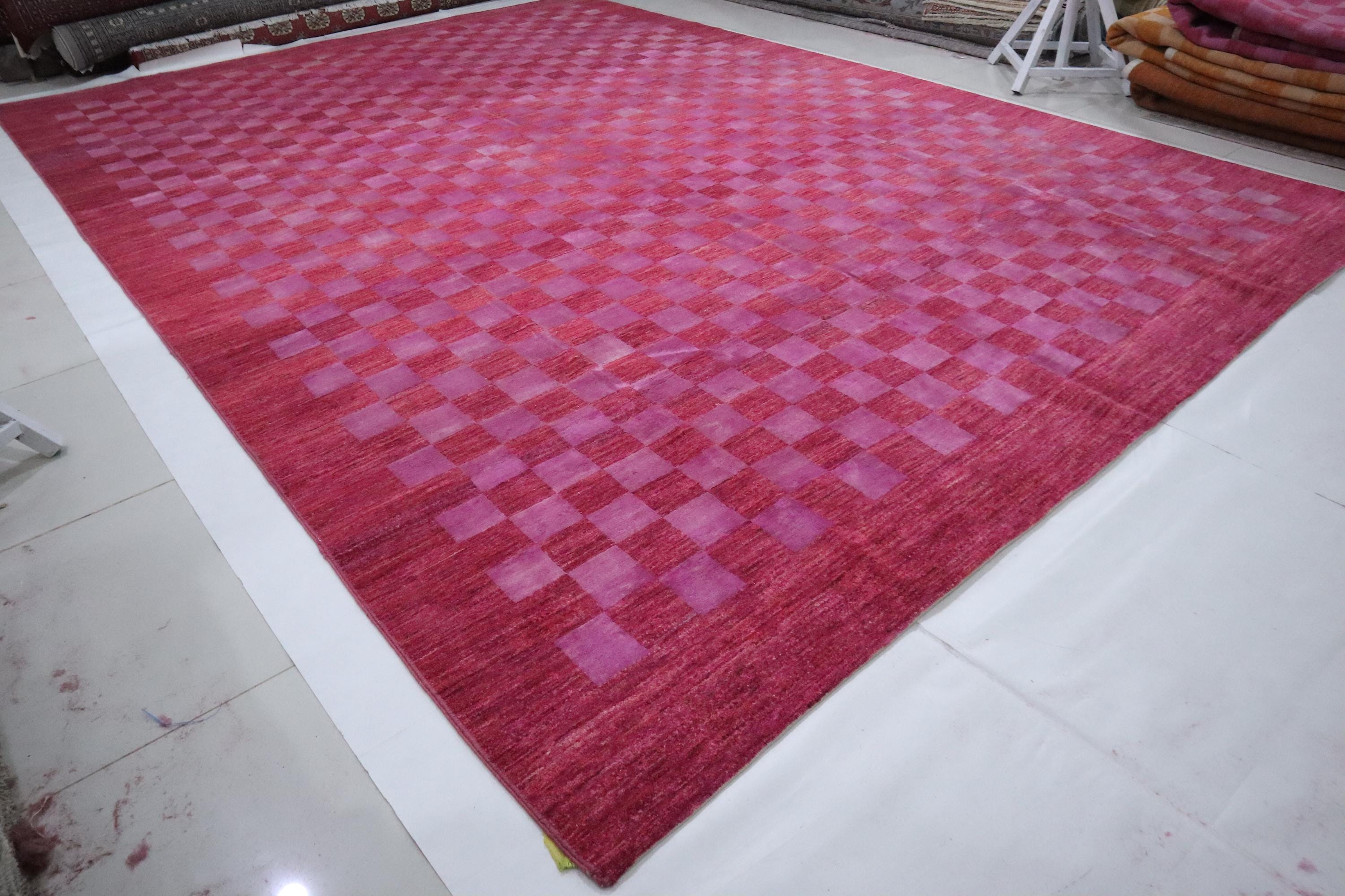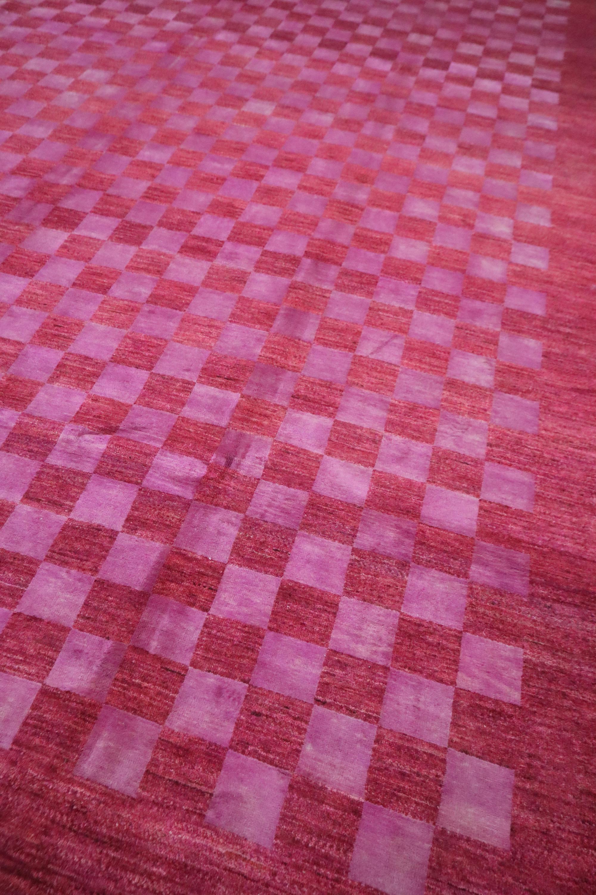 10x14 Gabbeh Area Rug - Pink Afghan Hand Knotted Checkered Thick Pile Wool Rug - Contemporary Rug - Boho Rug - Dining Room Rug - Bedroom Rug