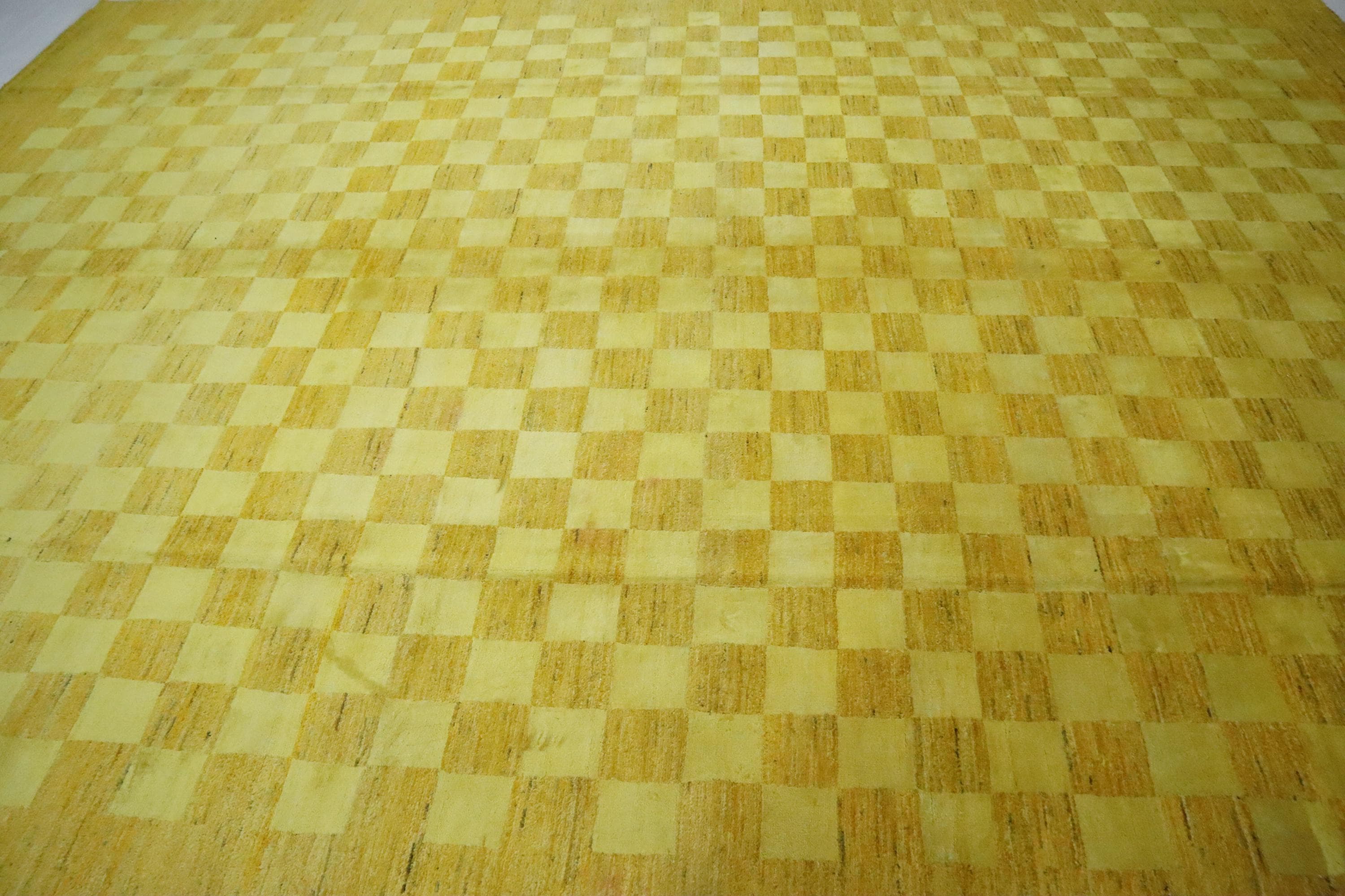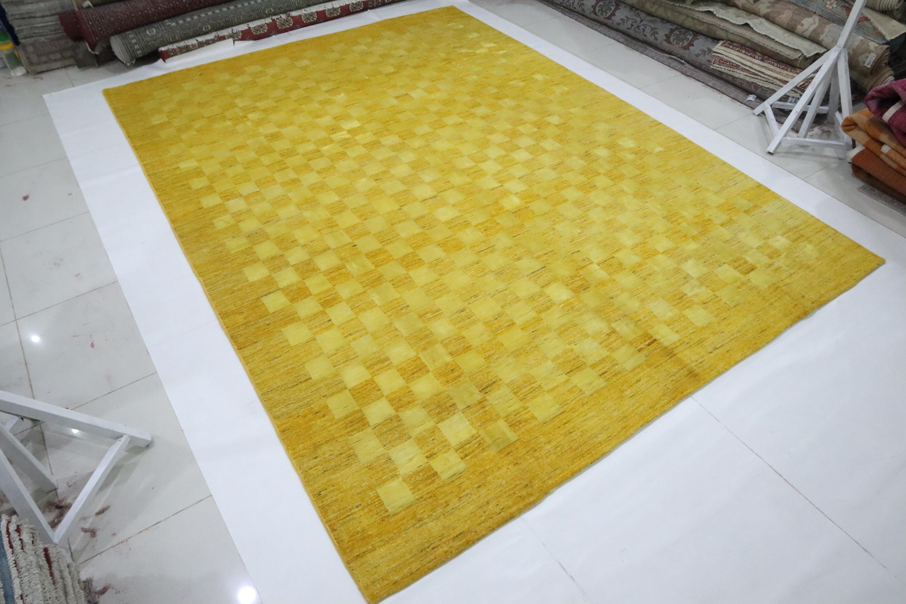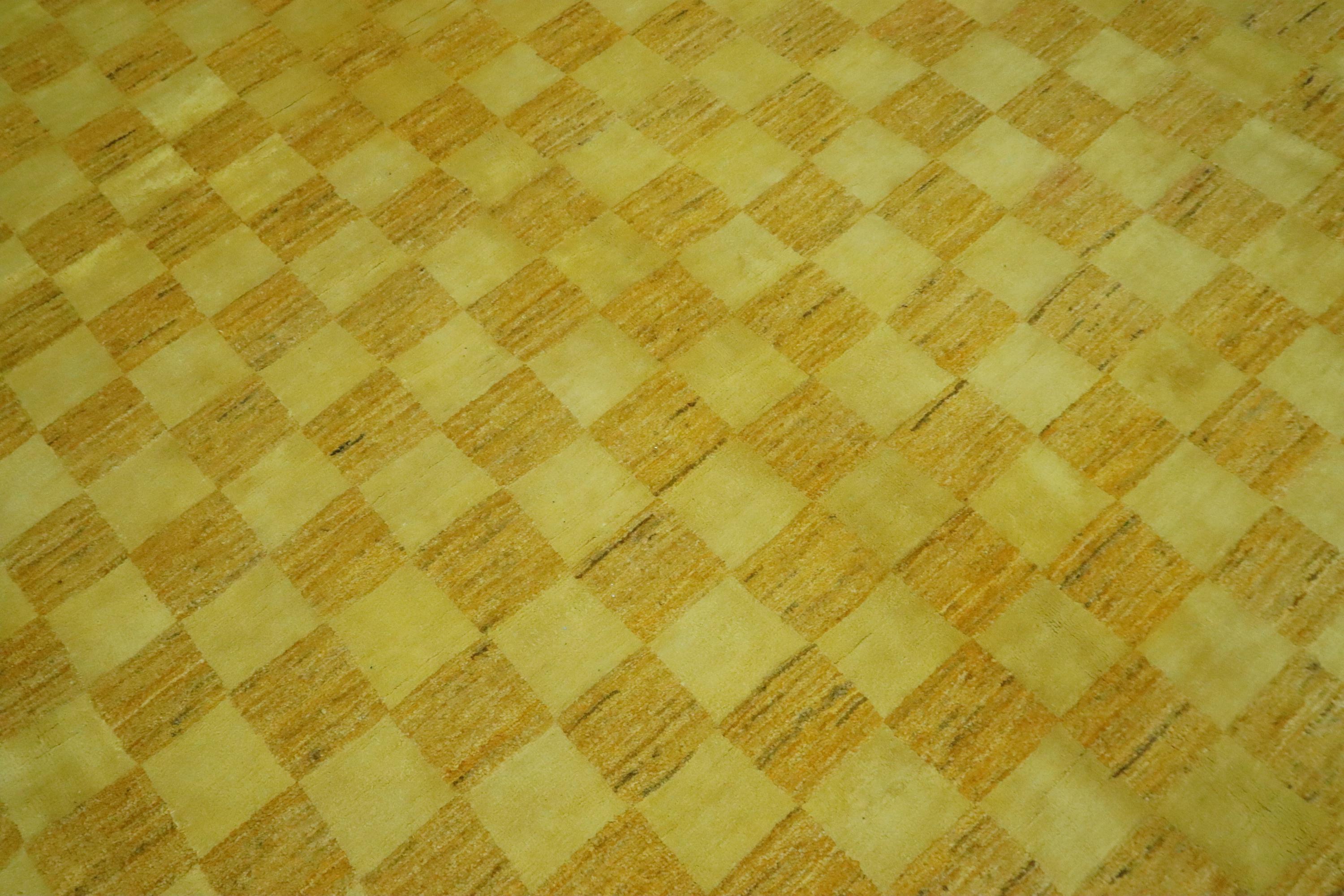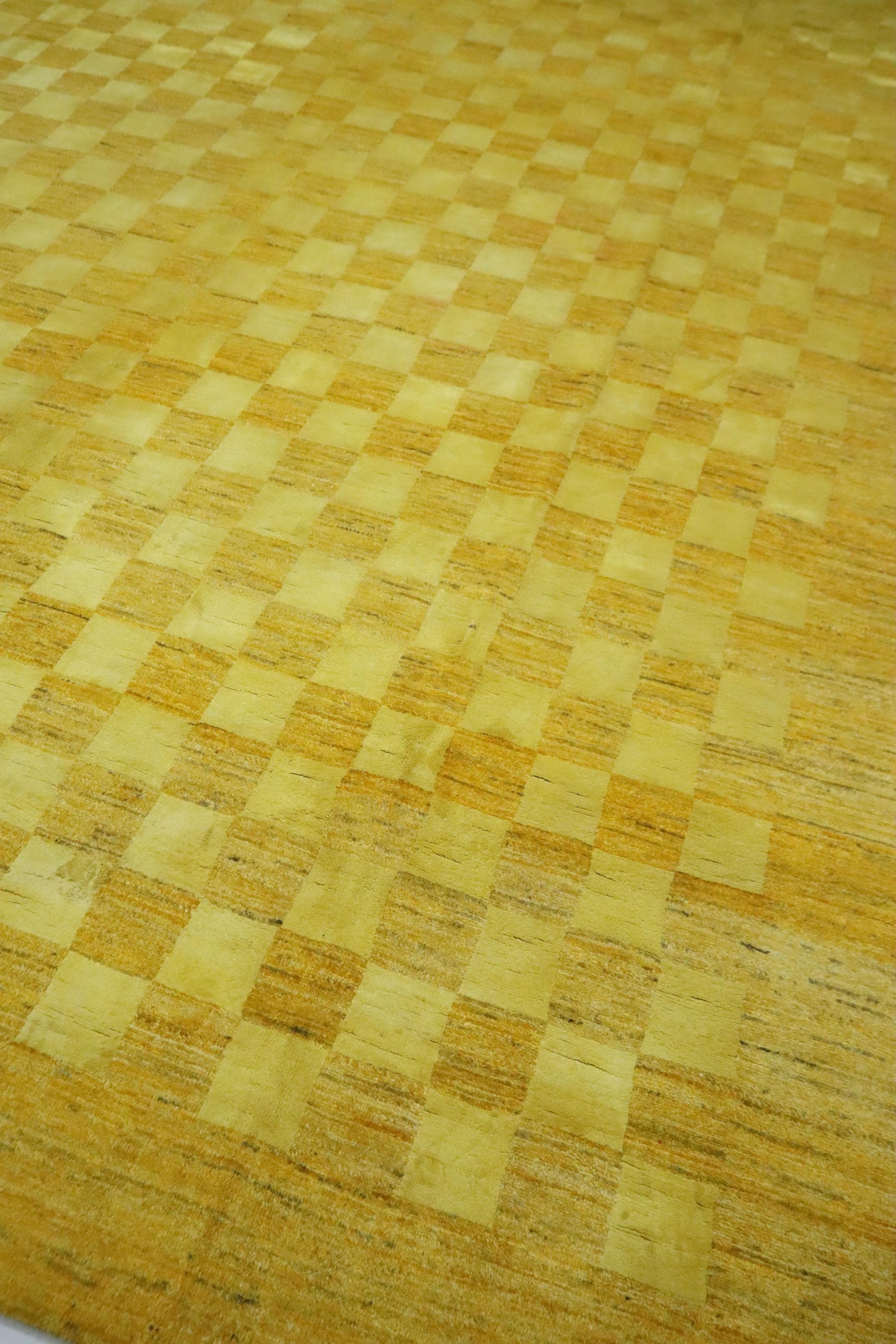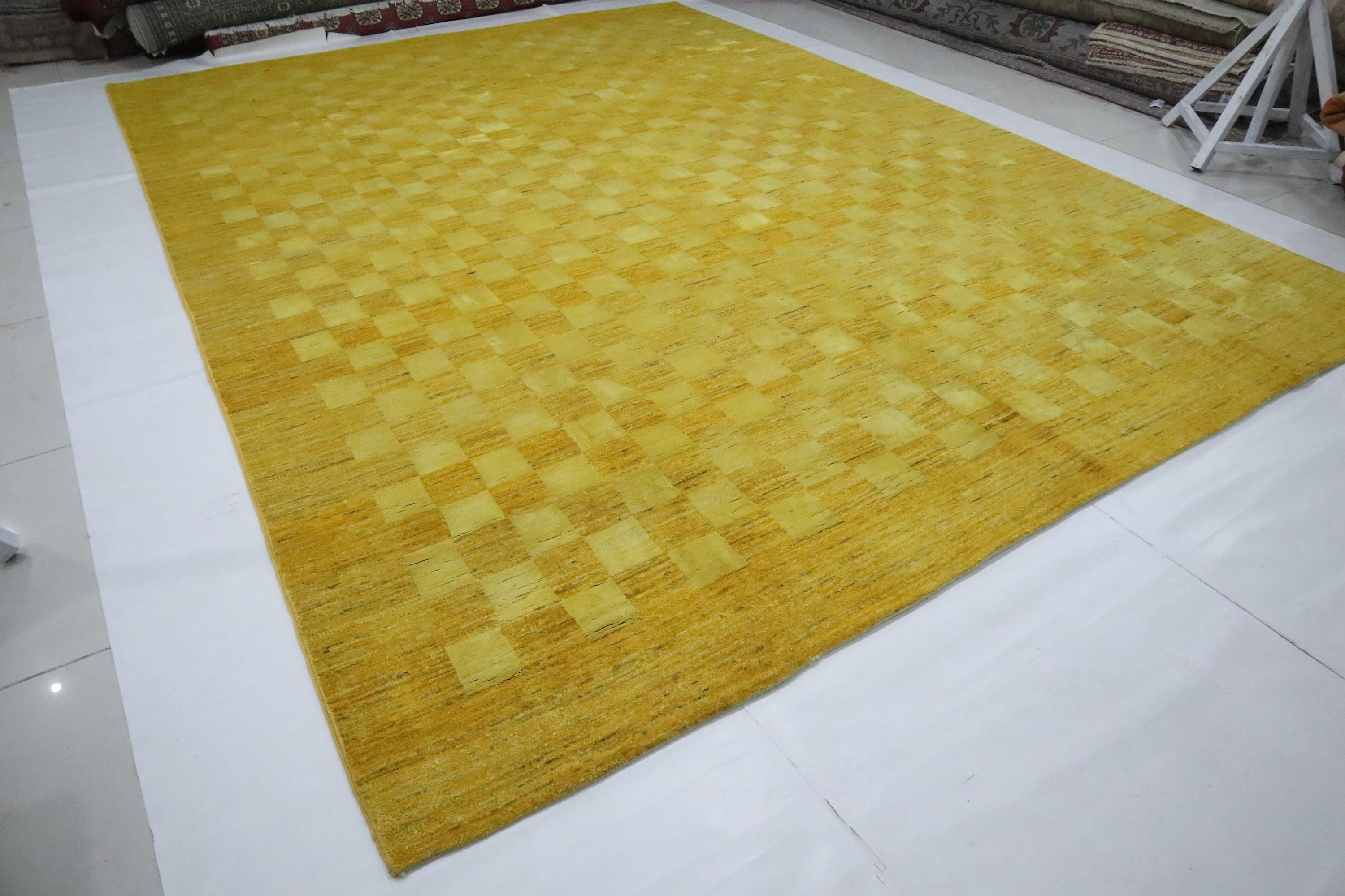 9x12 Ft Gabbeh Area Rug - Golden Yellow Afghan Hand Knotted Check Design Lori Baft Wool Rug - Checkered Rug - Contemporary Rugs - Office Rug