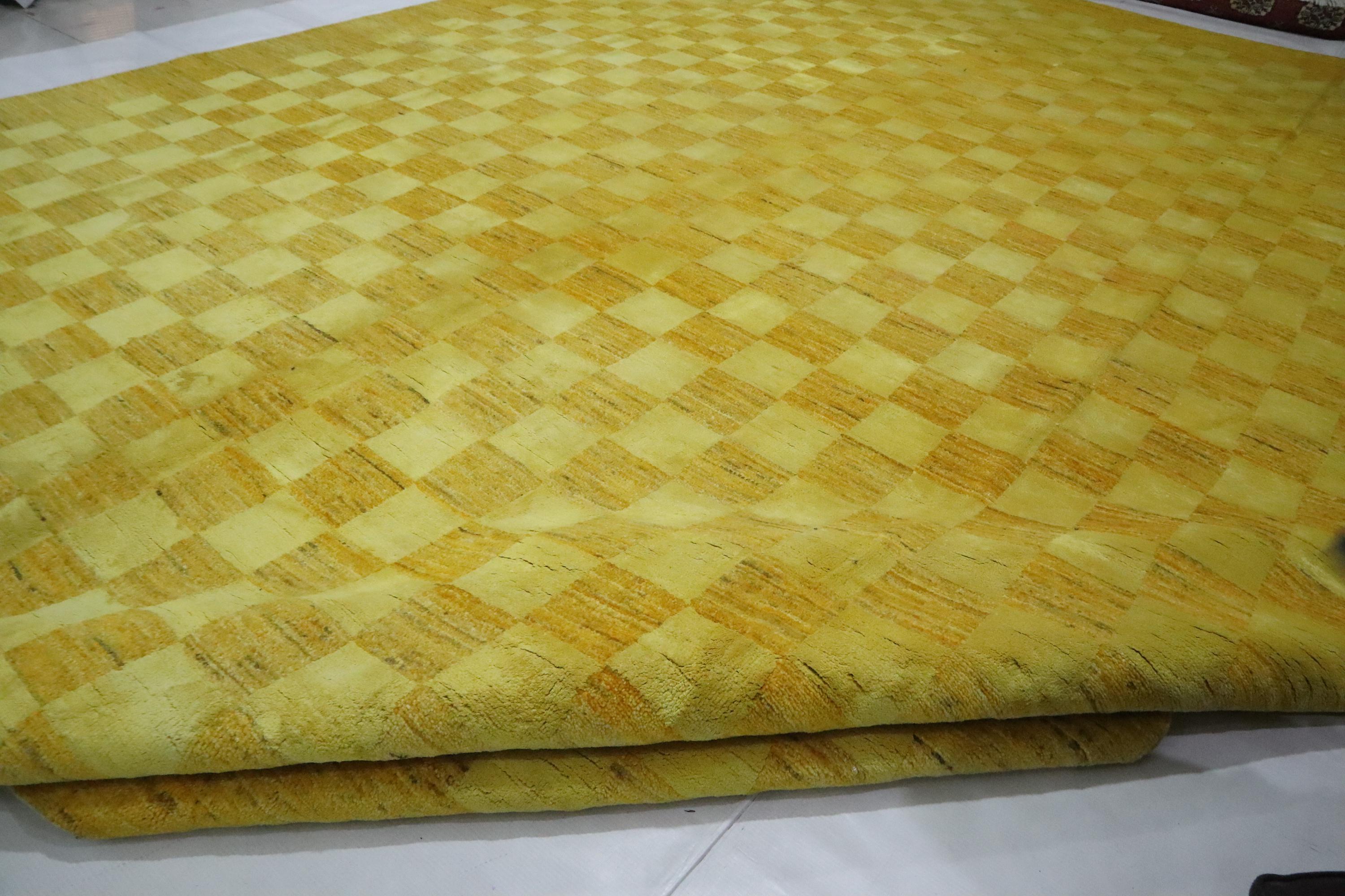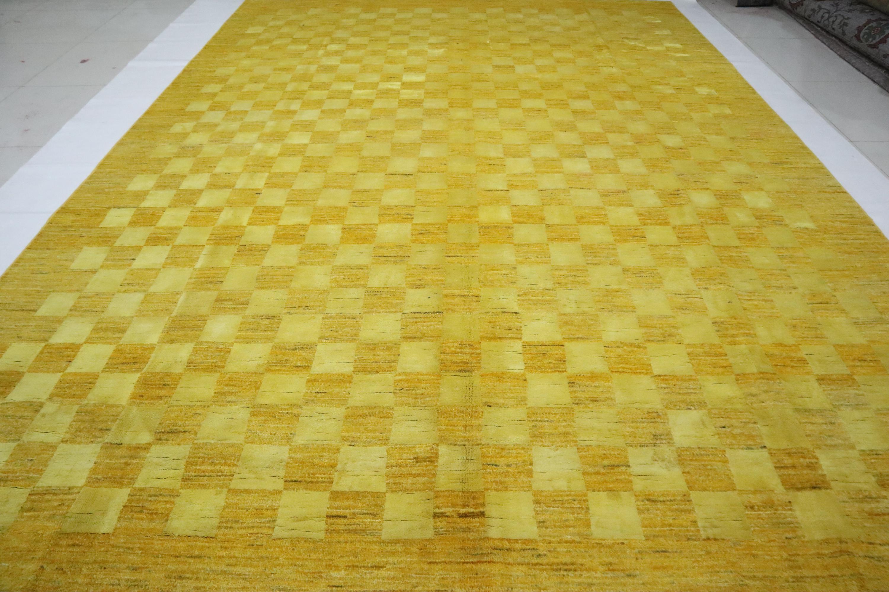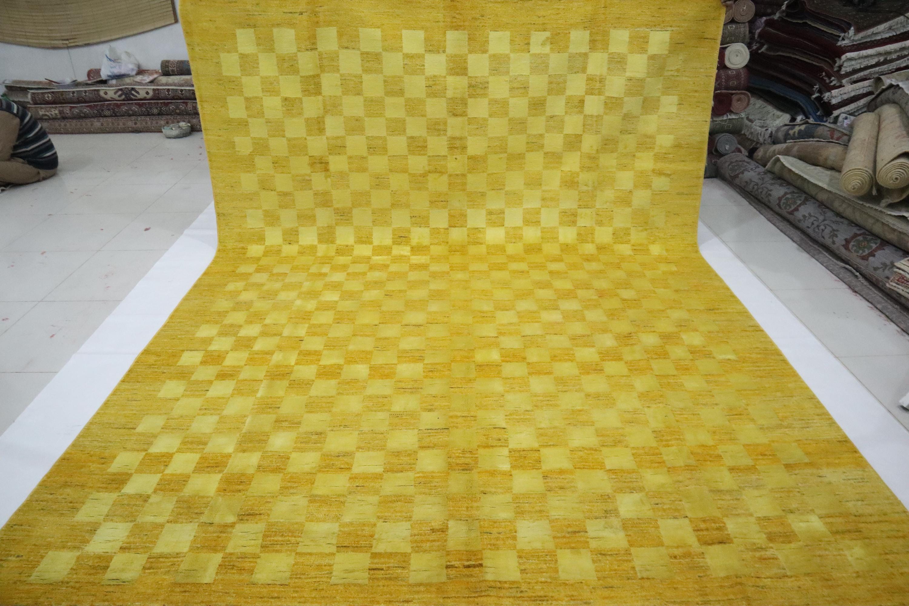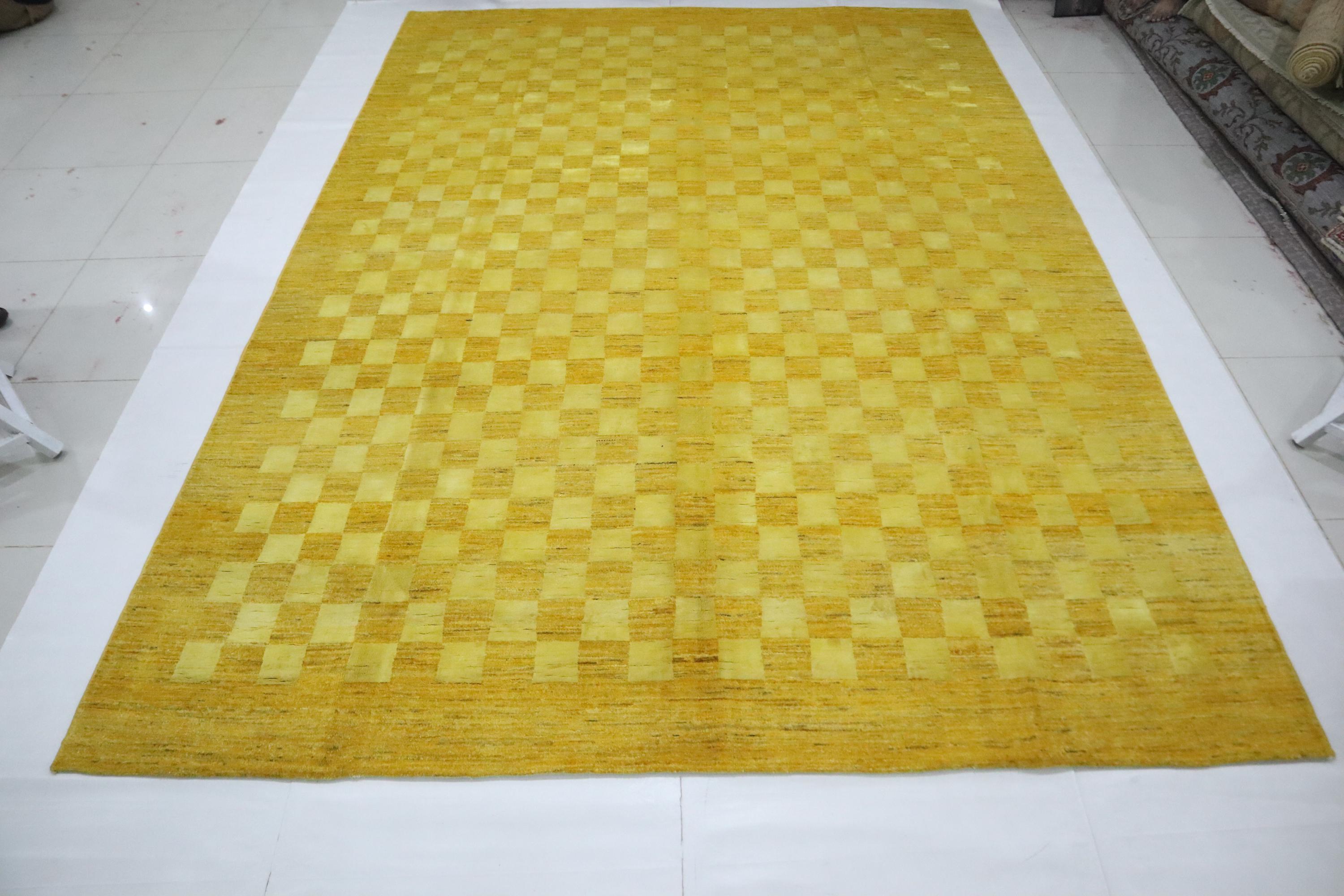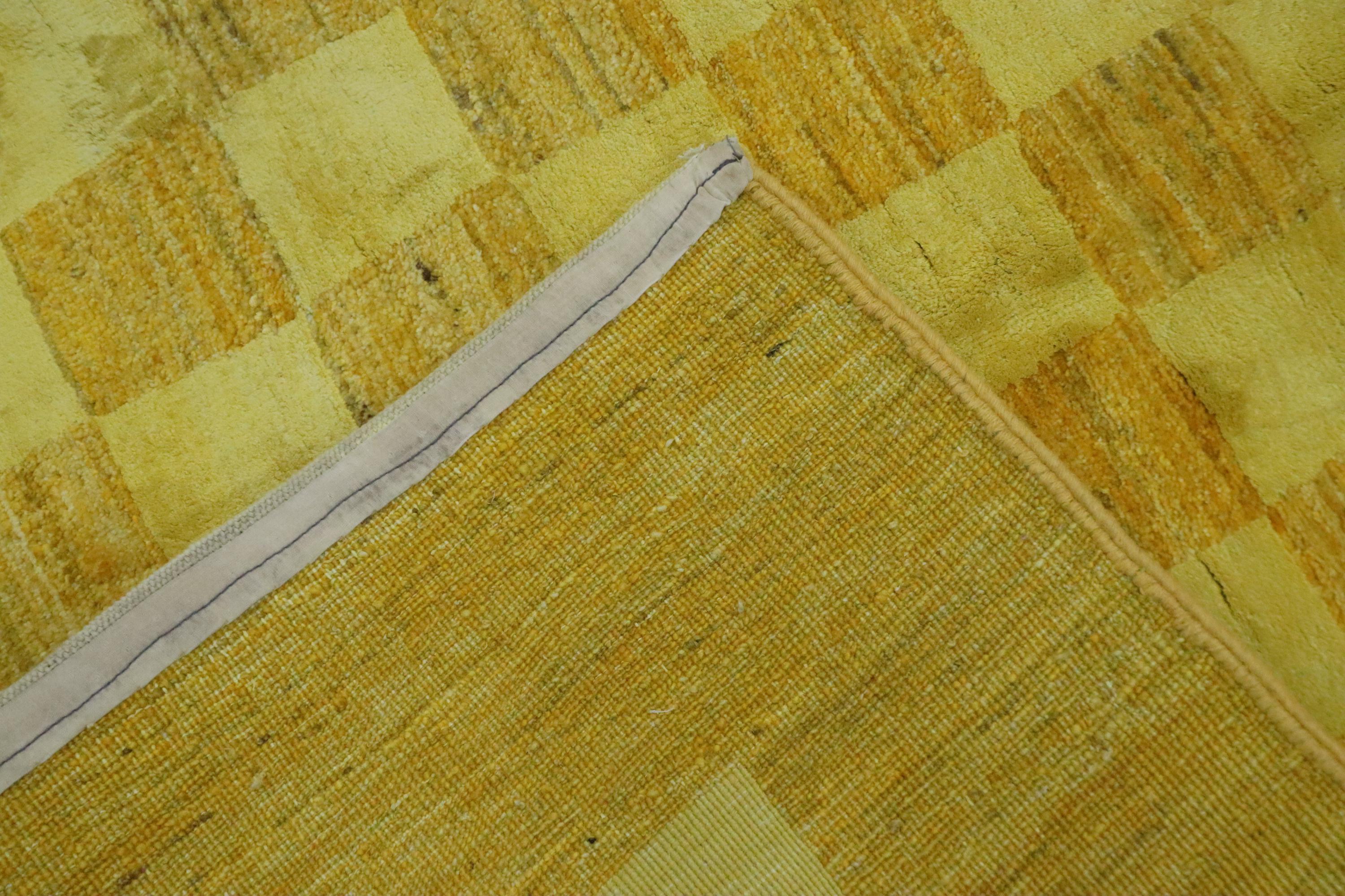 9x12 Ft Gabbeh Area Rug - Golden Yellow Afghan Hand Knotted Check Design Lori Baft Wool Rug - Checkered Rug - Contemporary Rugs - Office Rug