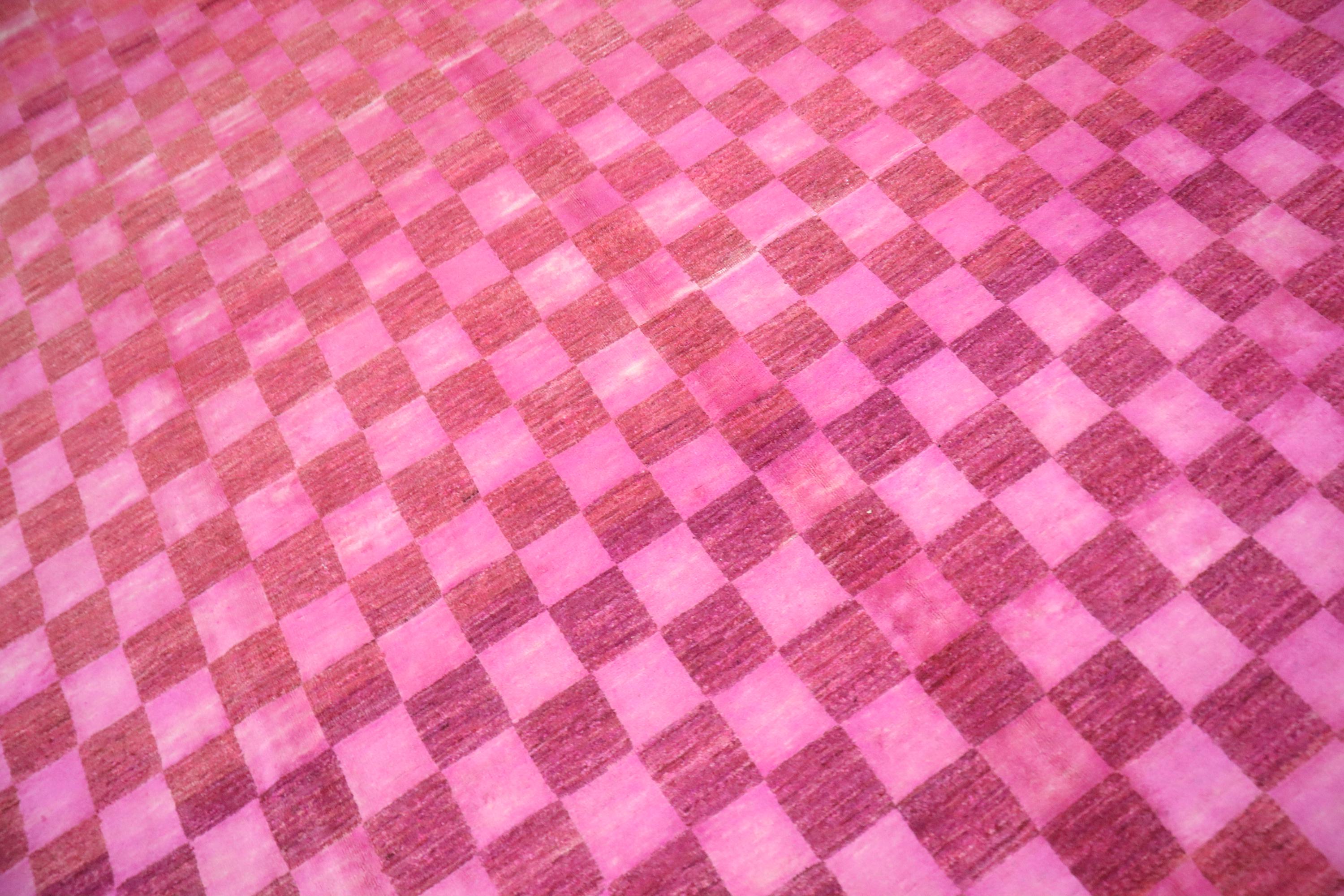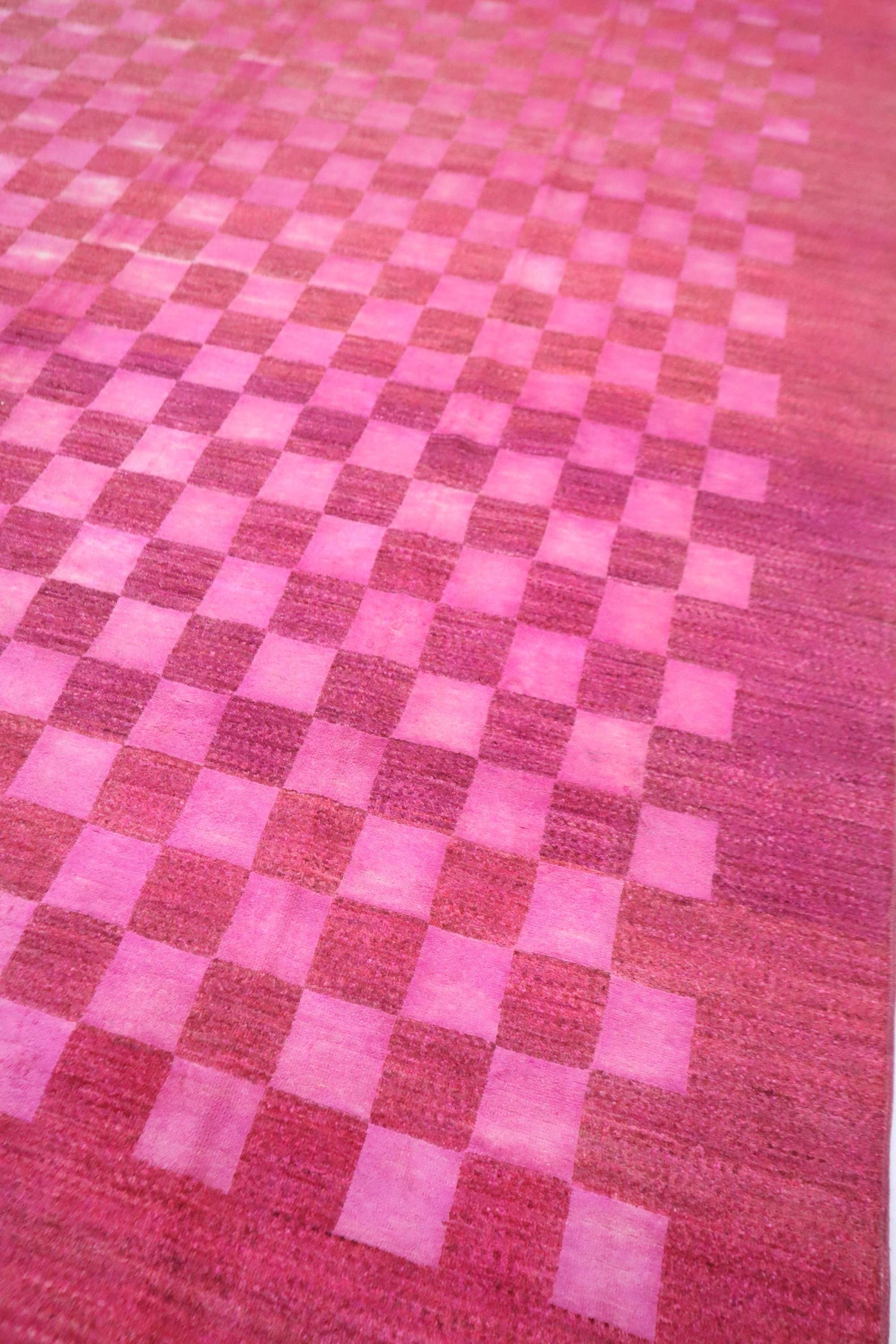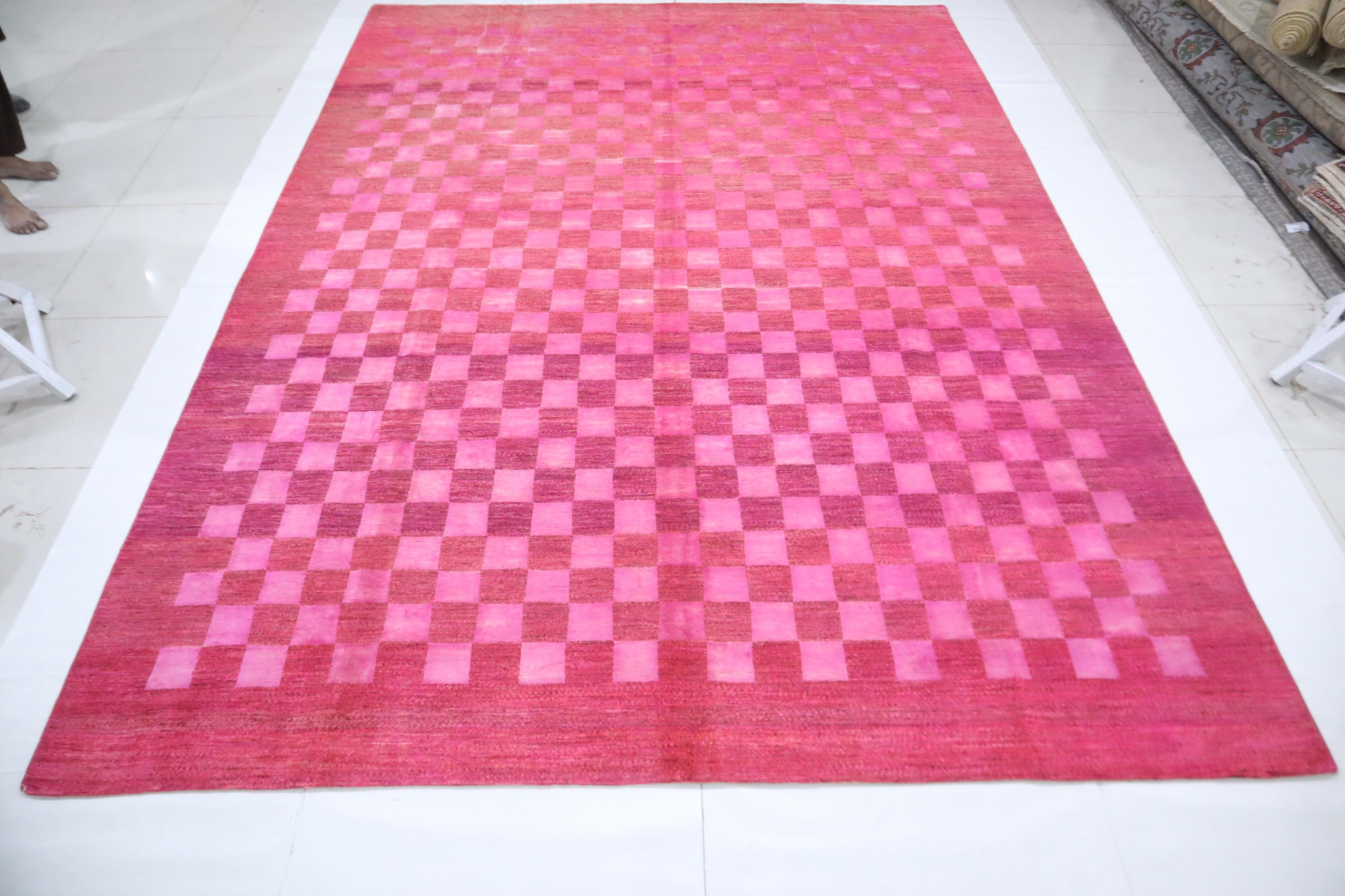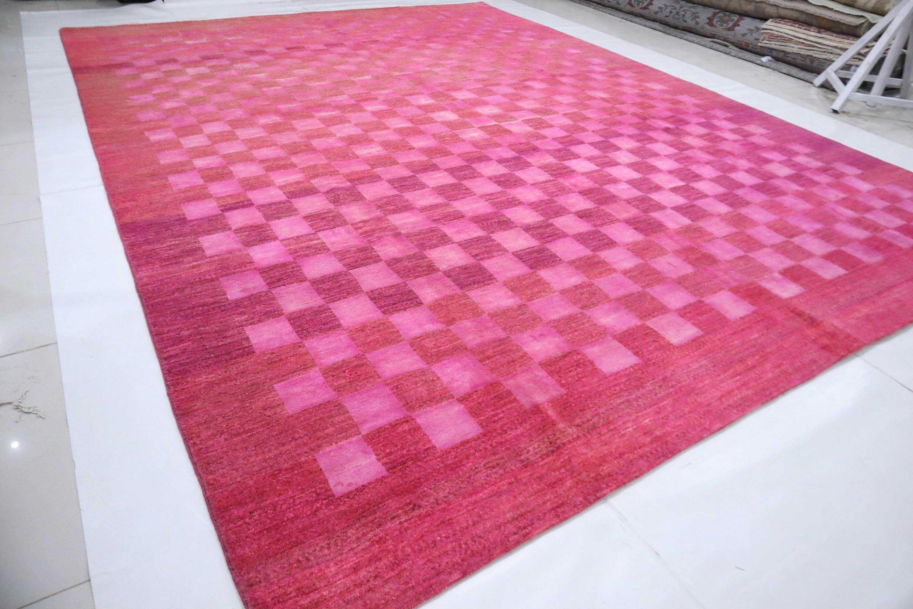 9x12 Gabbeh Area Rug - Pink Afghan Handmade Check Design Lori Baft Wool Rug - Checkered Rug - Contemporary Rug - Living Room Rug - Foyer Rug