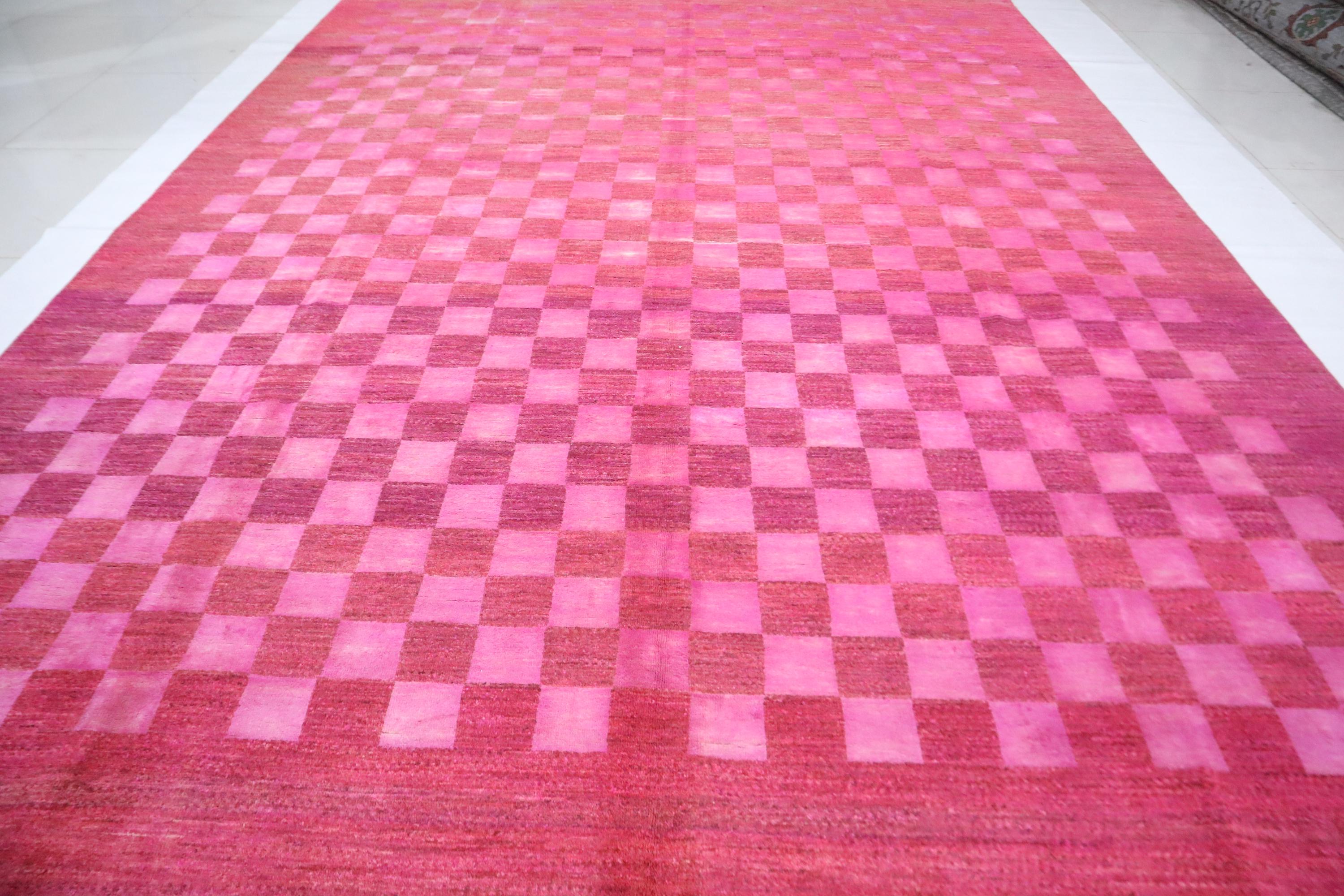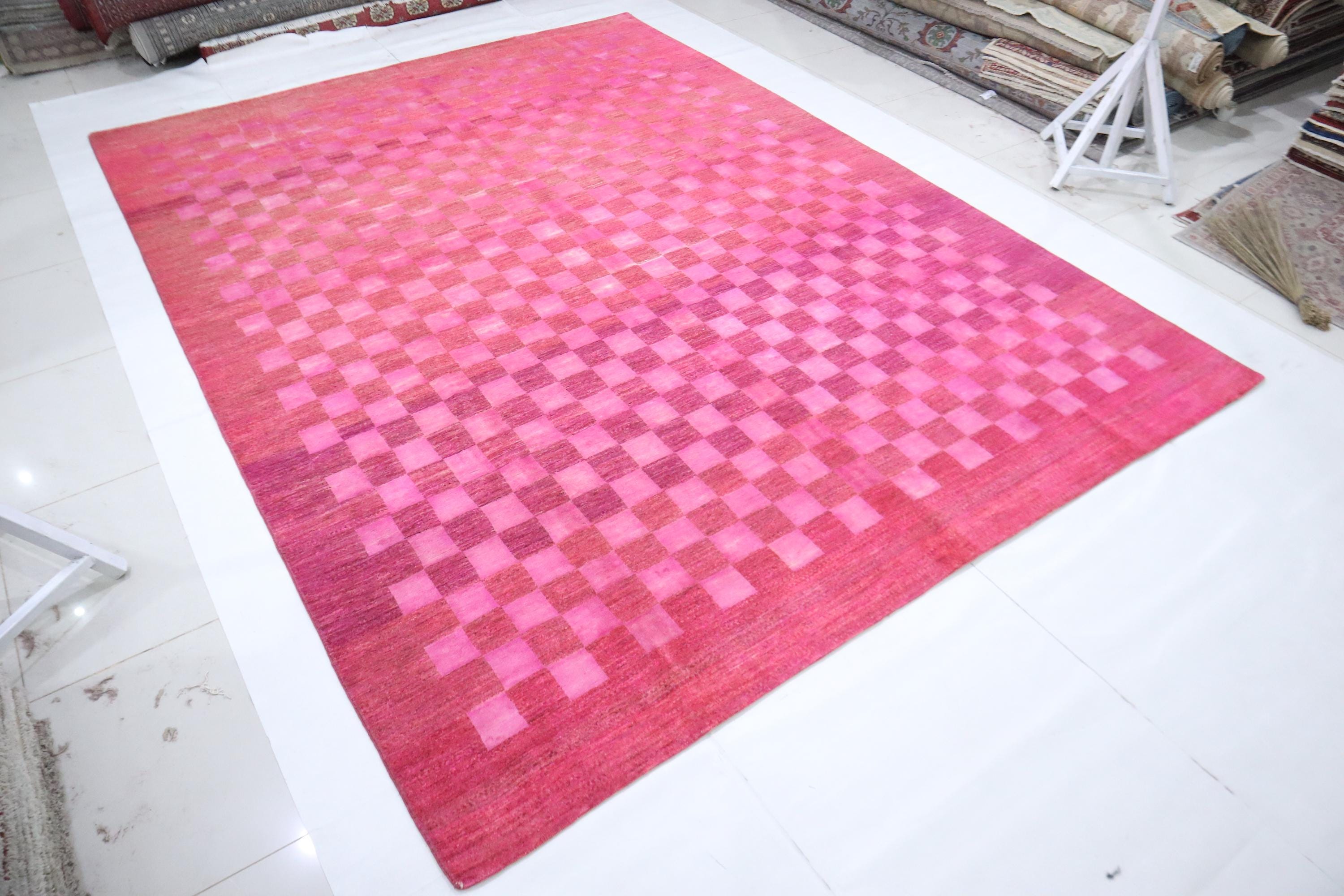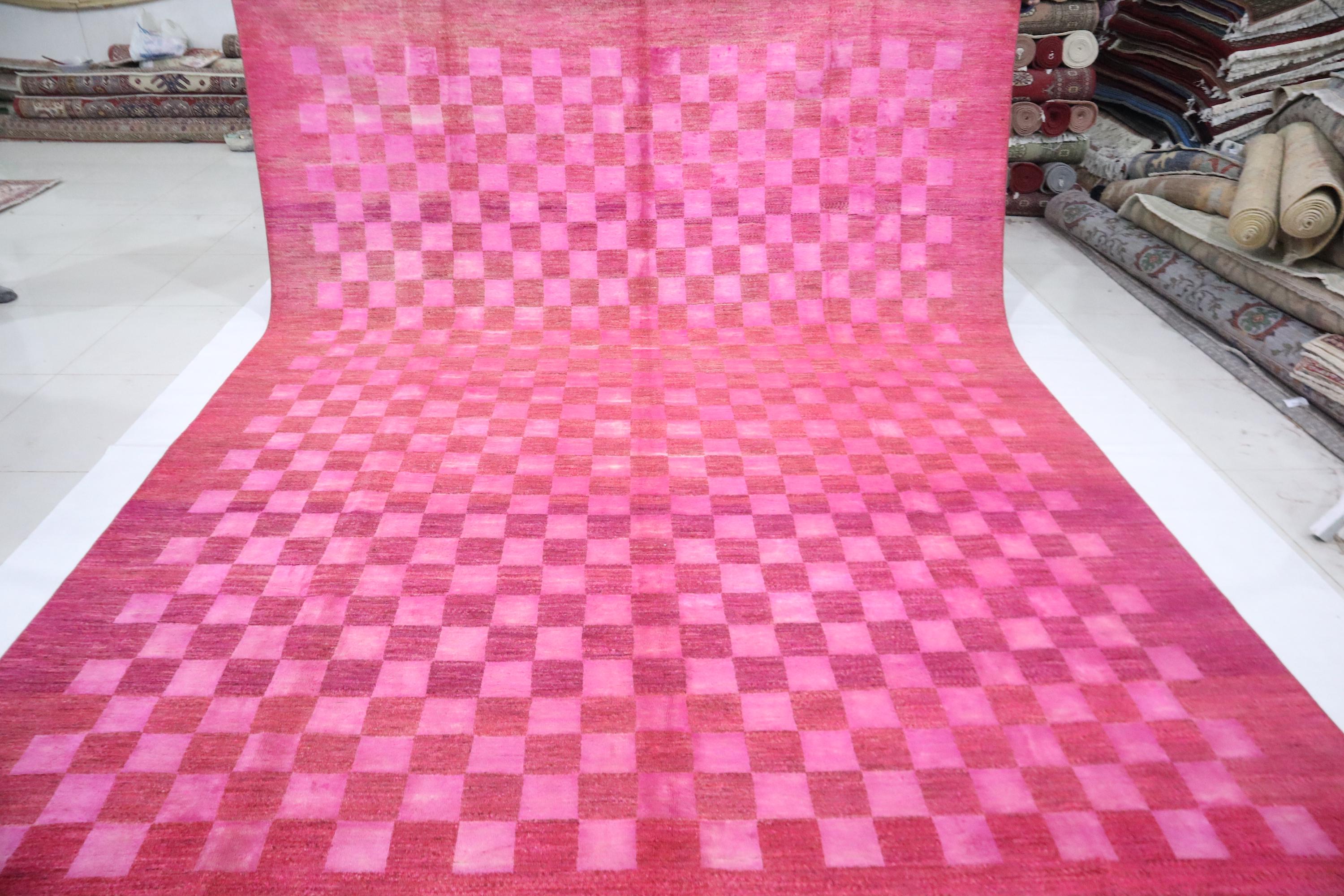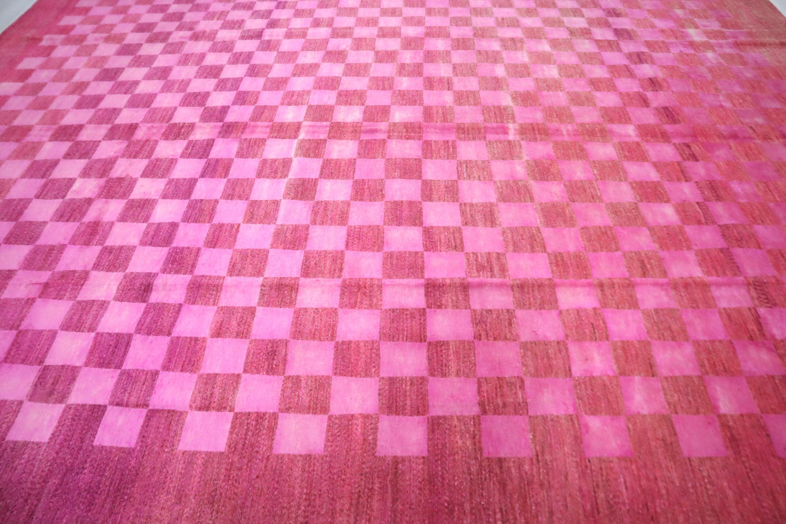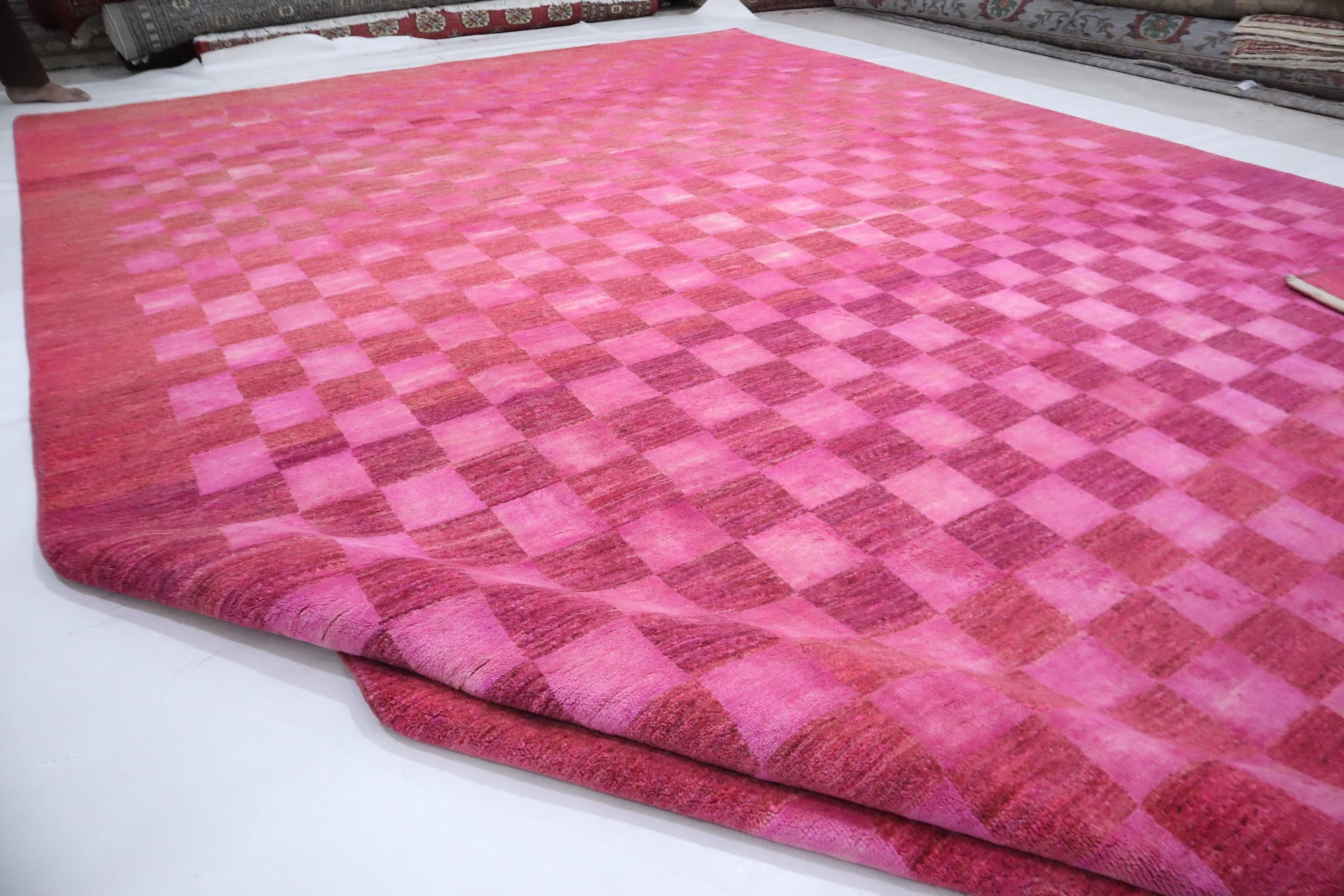 9x12 Gabbeh Area Rug - Pink Afghan Handmade Check Design Lori Baft Wool Rug - Checkered Rug - Contemporary Rug - Living Room Rug - Foyer Rug