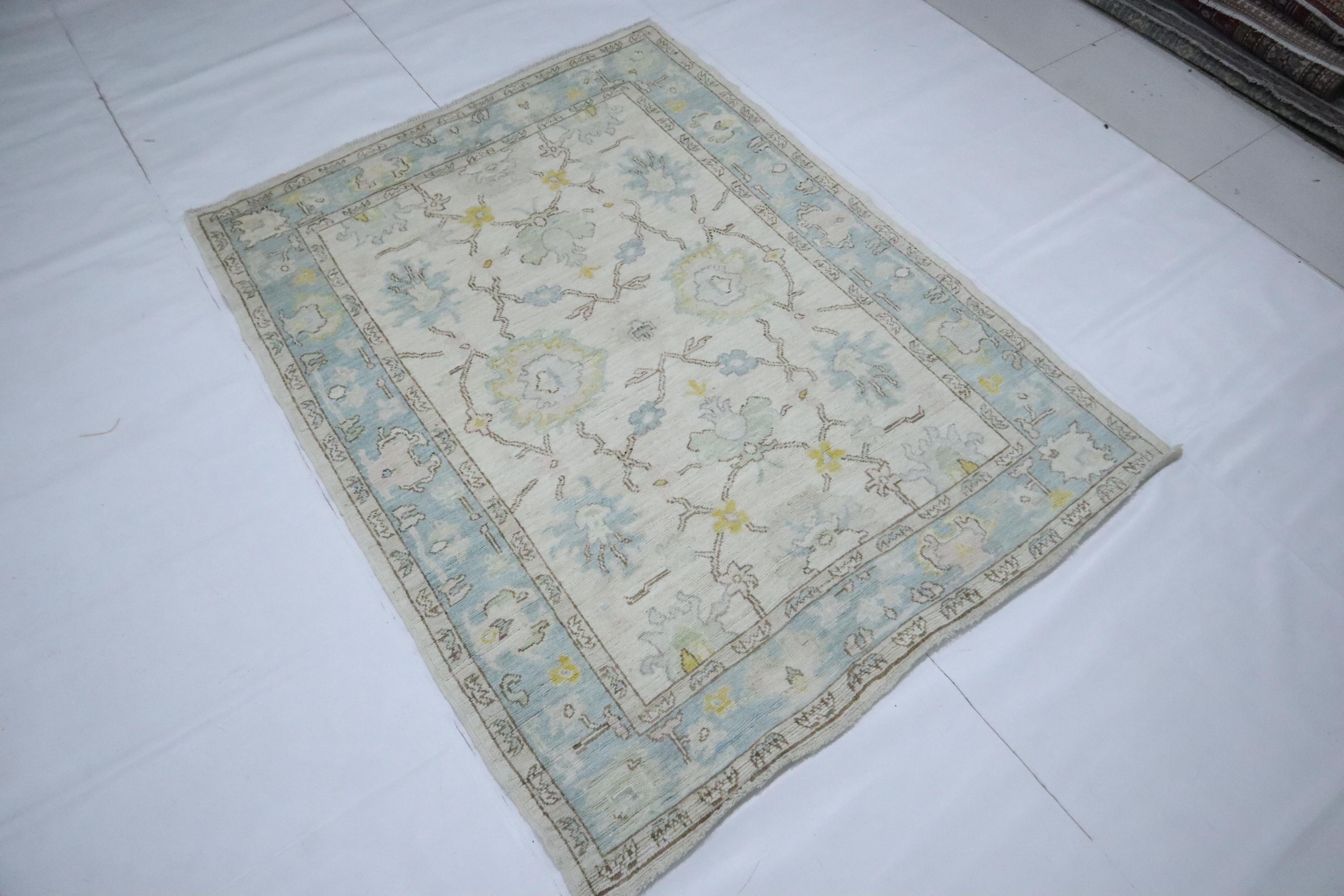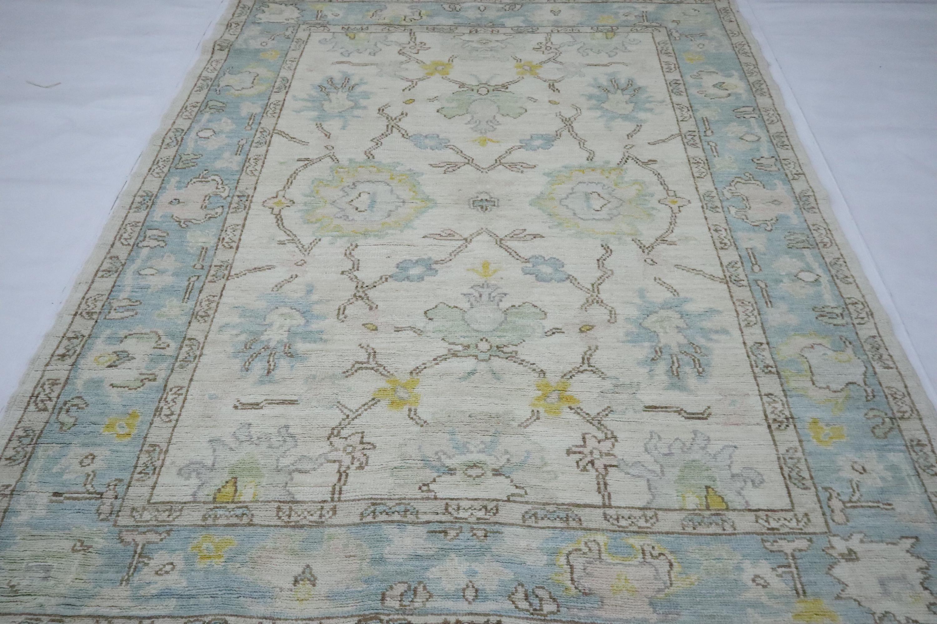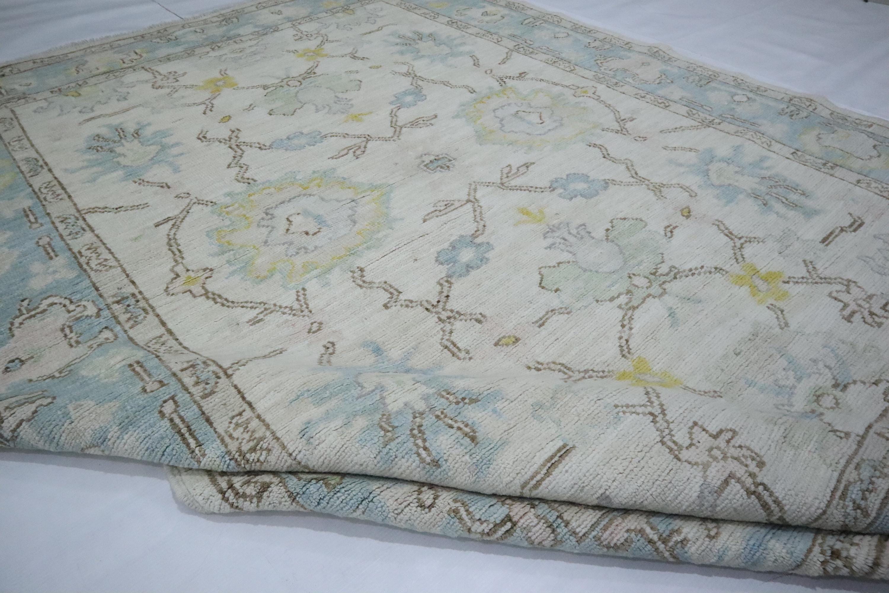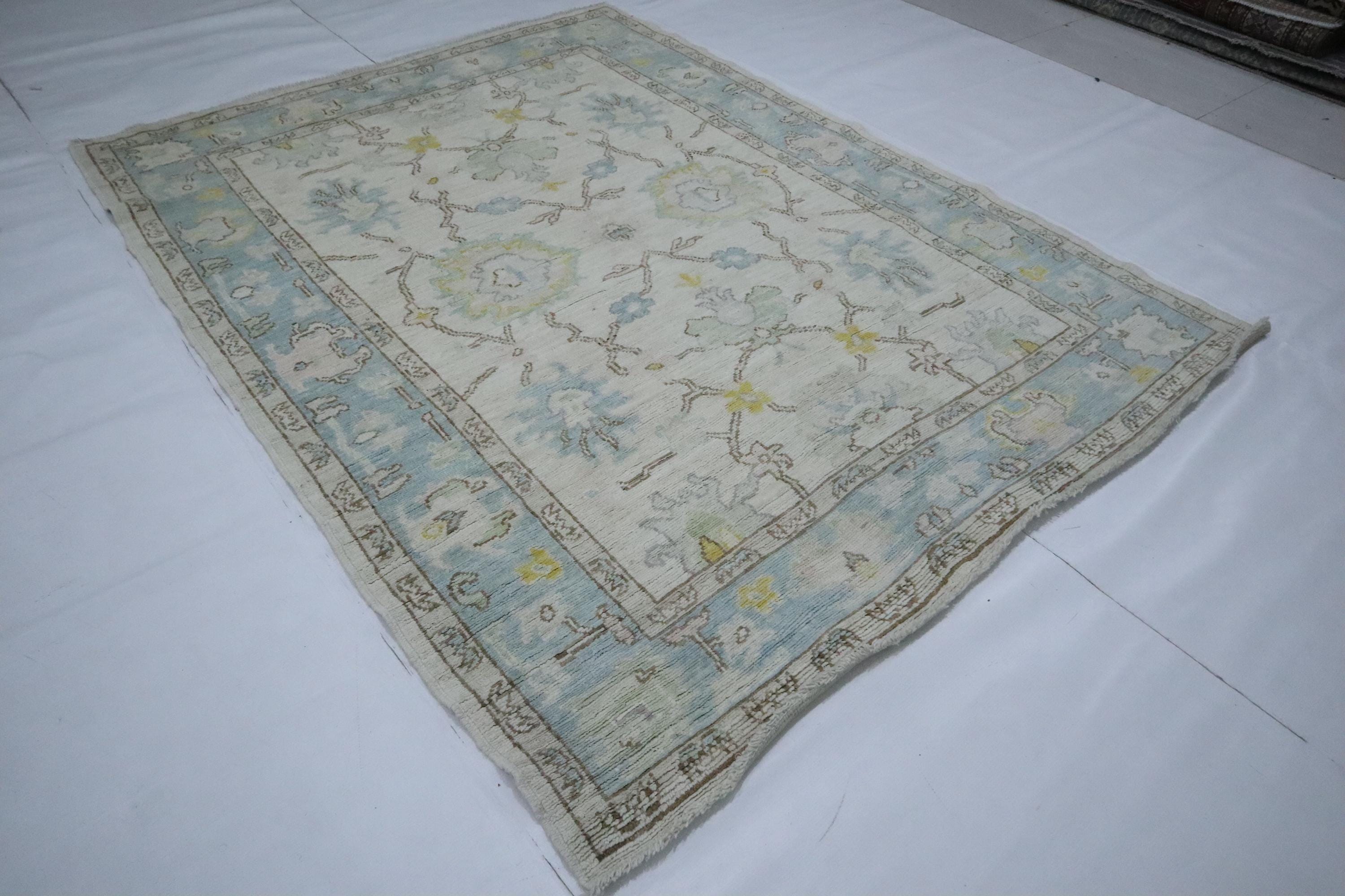 6x9 Ft Oushak Area Rug - Beige Blue Turkish Hand Knotted Traditional Soft Wool Rug - Muted Rug - Oriental Rug - Bedroom Rug - Office Rug