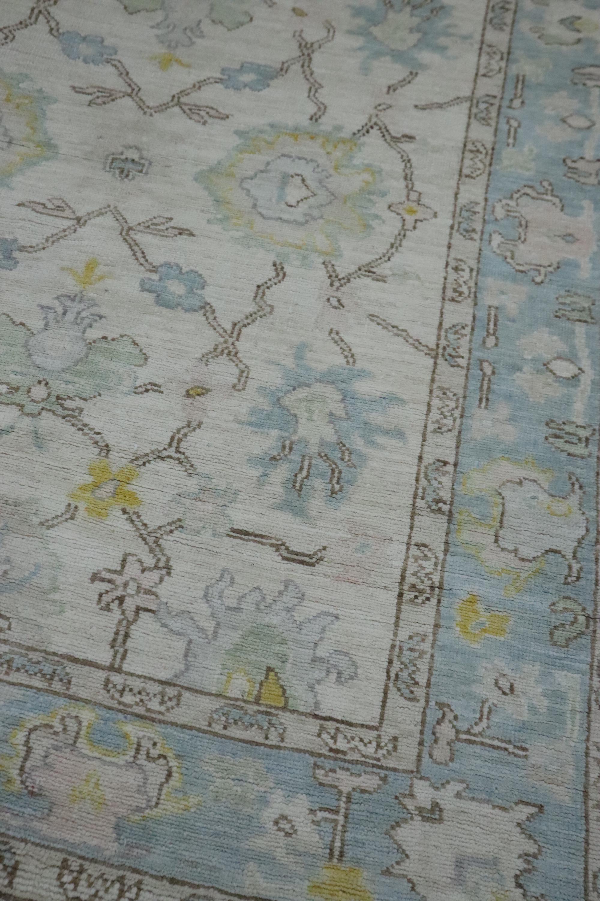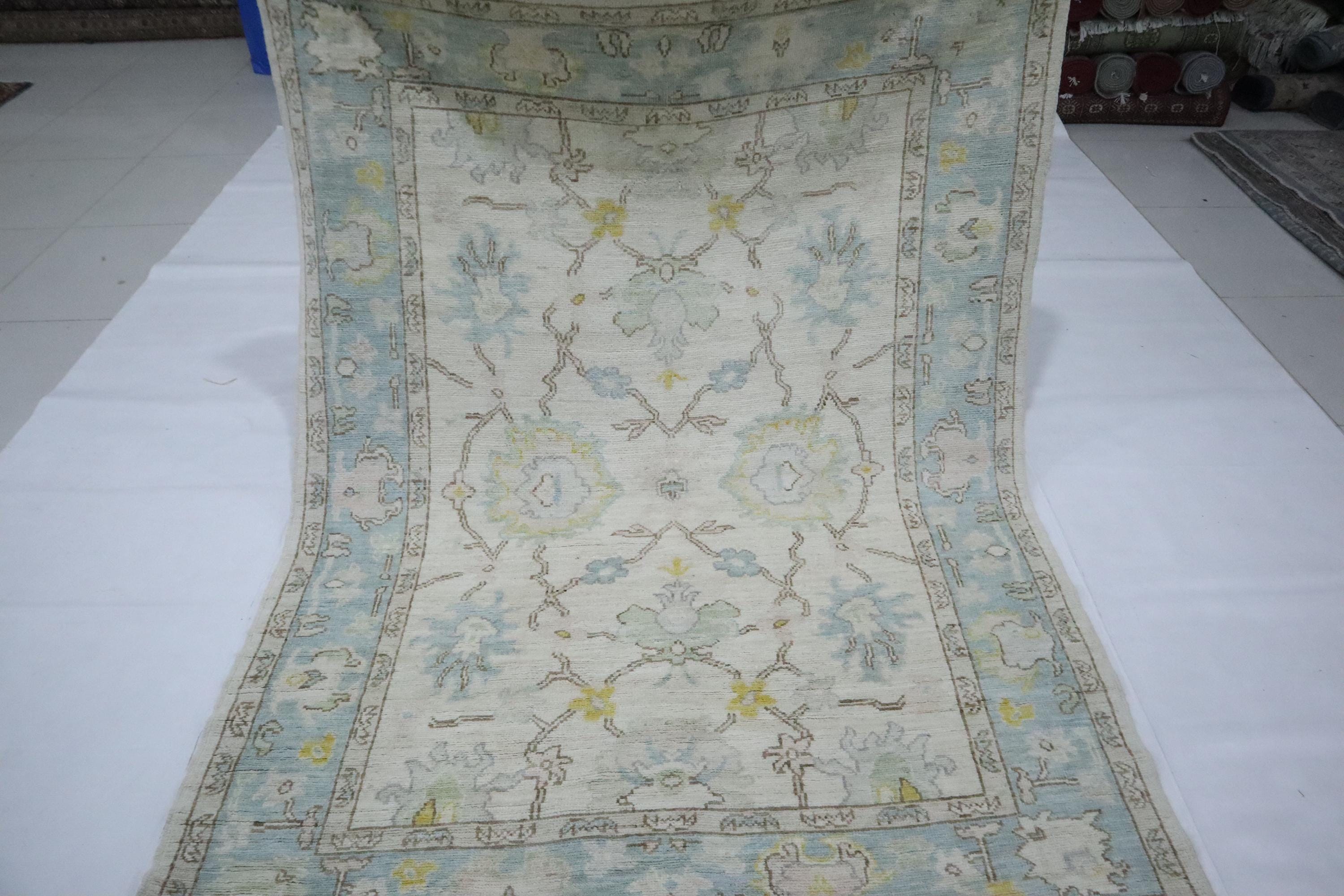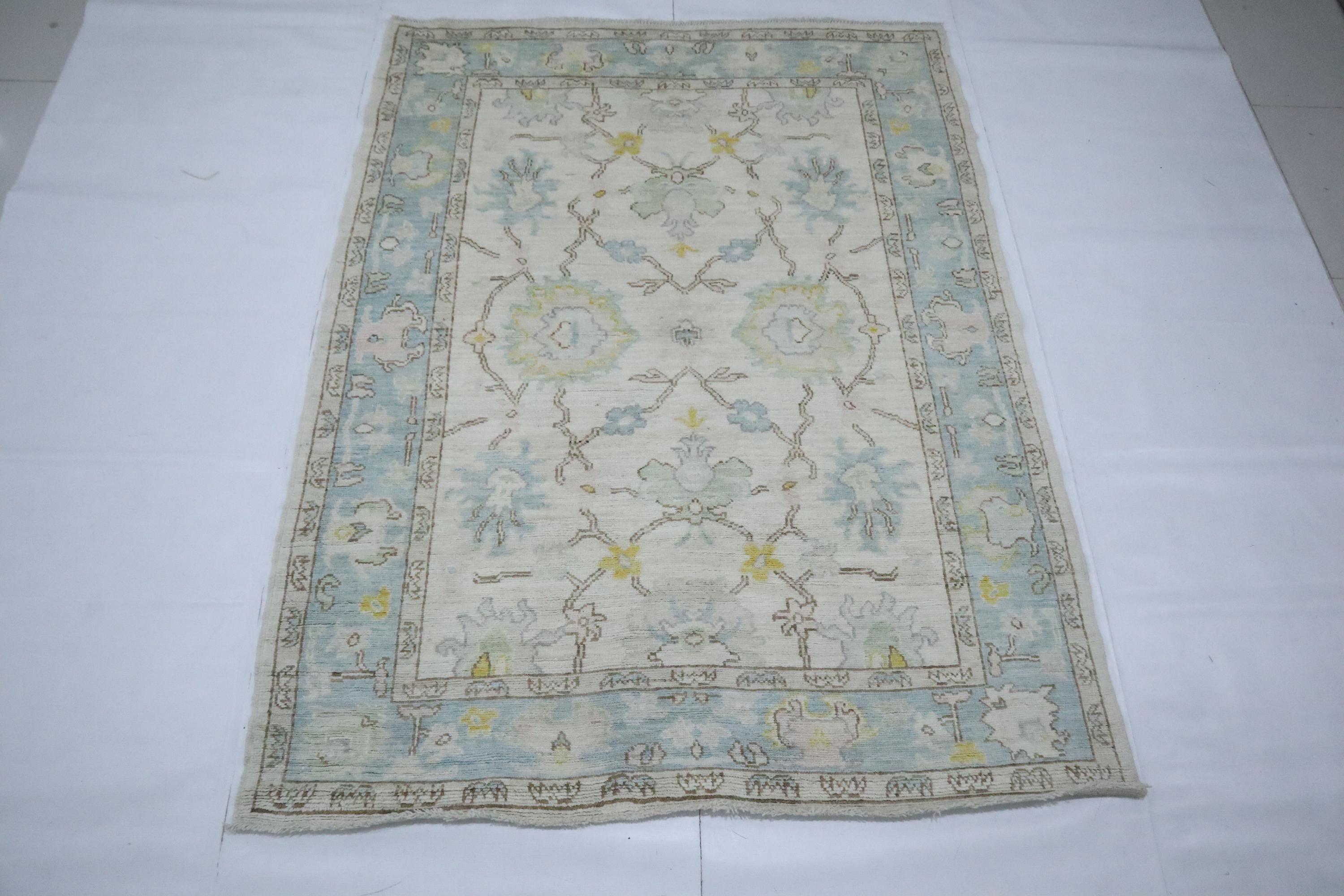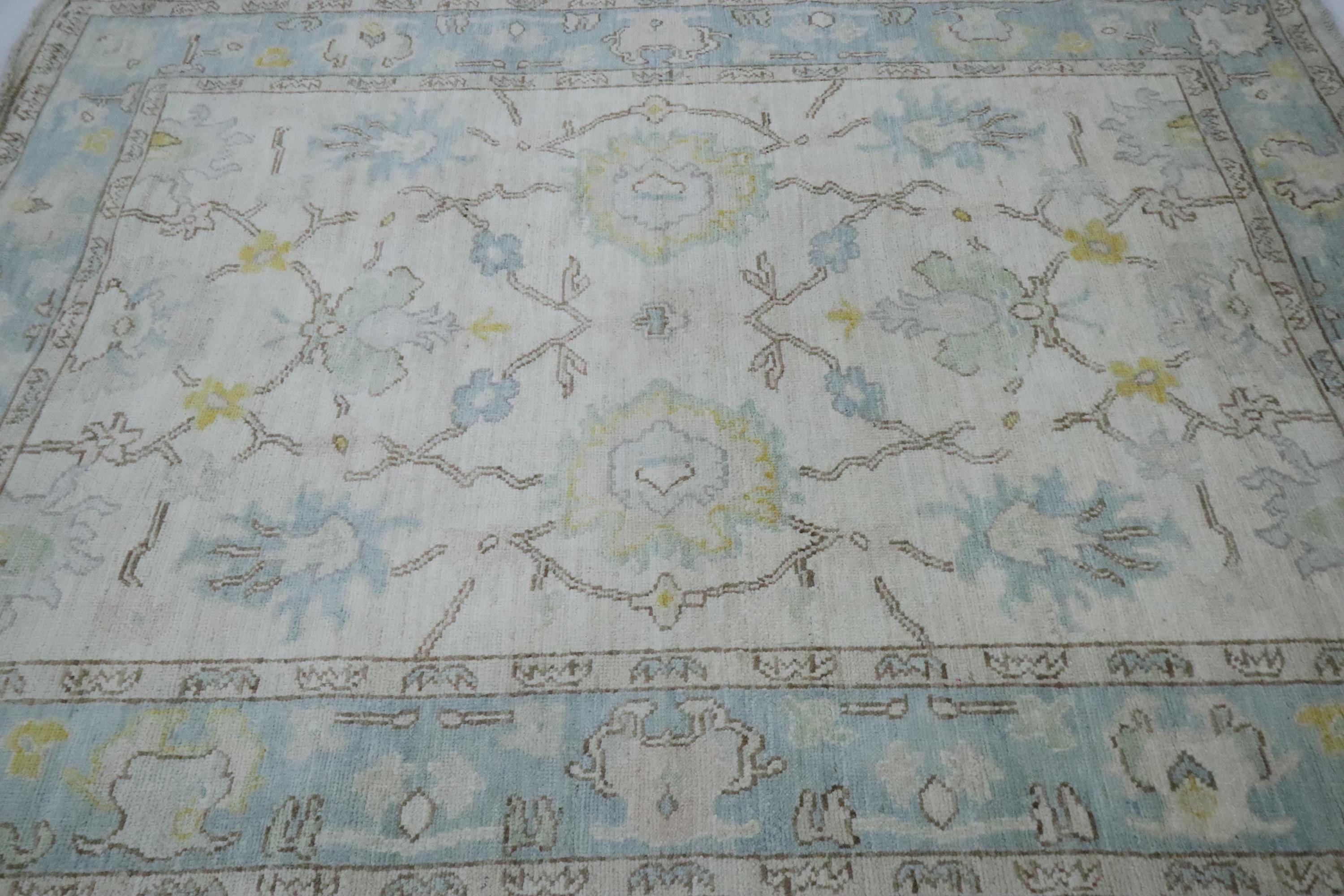 6x9 Ft Oushak Area Rug - Beige Blue Turkish Hand Knotted Traditional Soft Wool Rug - Muted Rug - Oriental Rug - Bedroom Rug - Office Rug