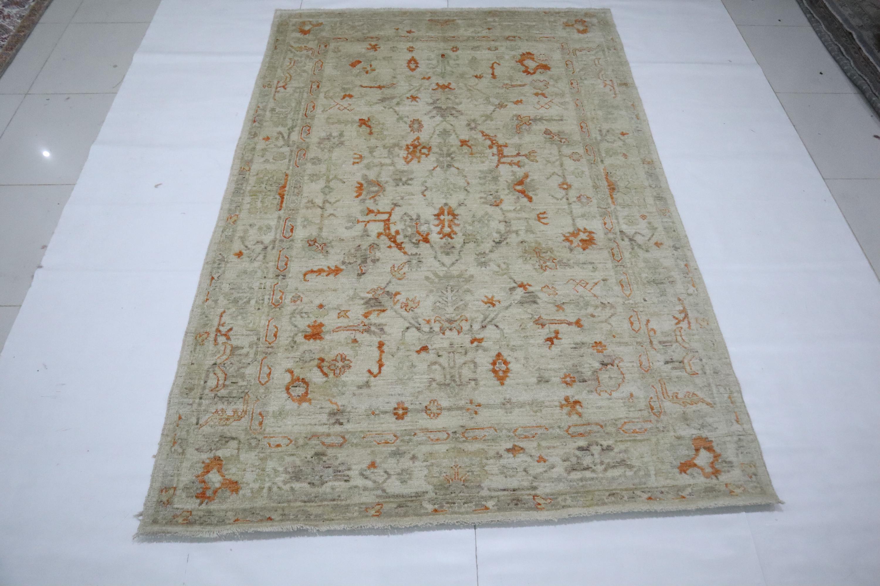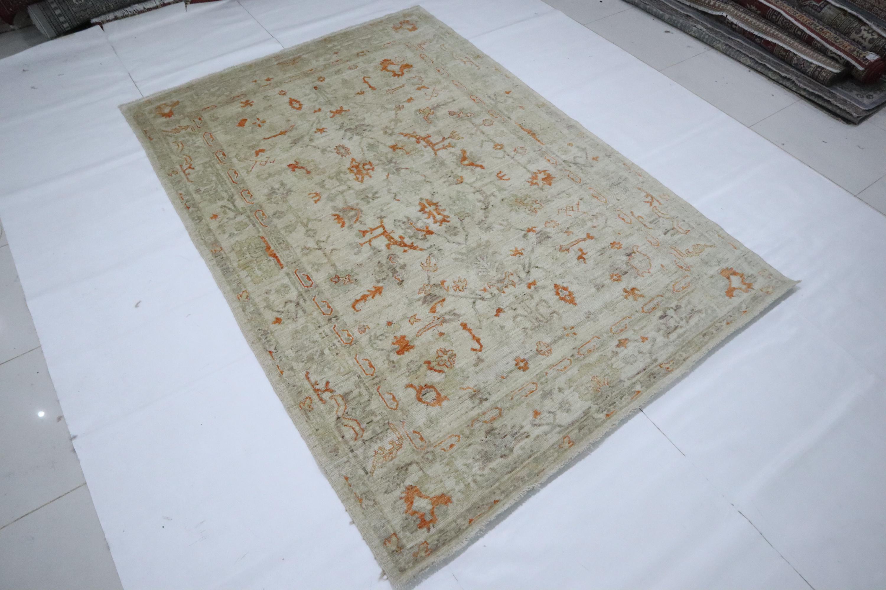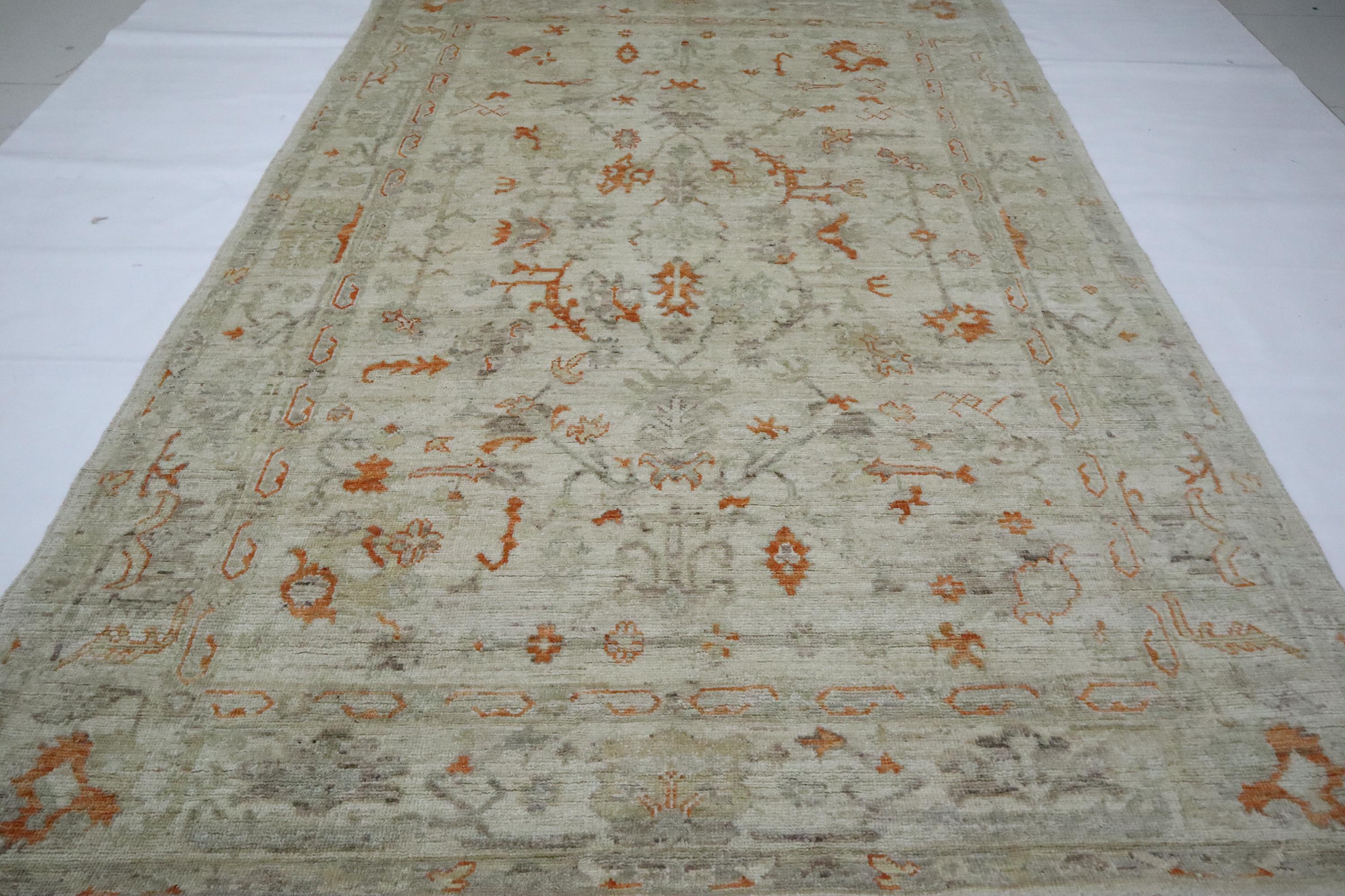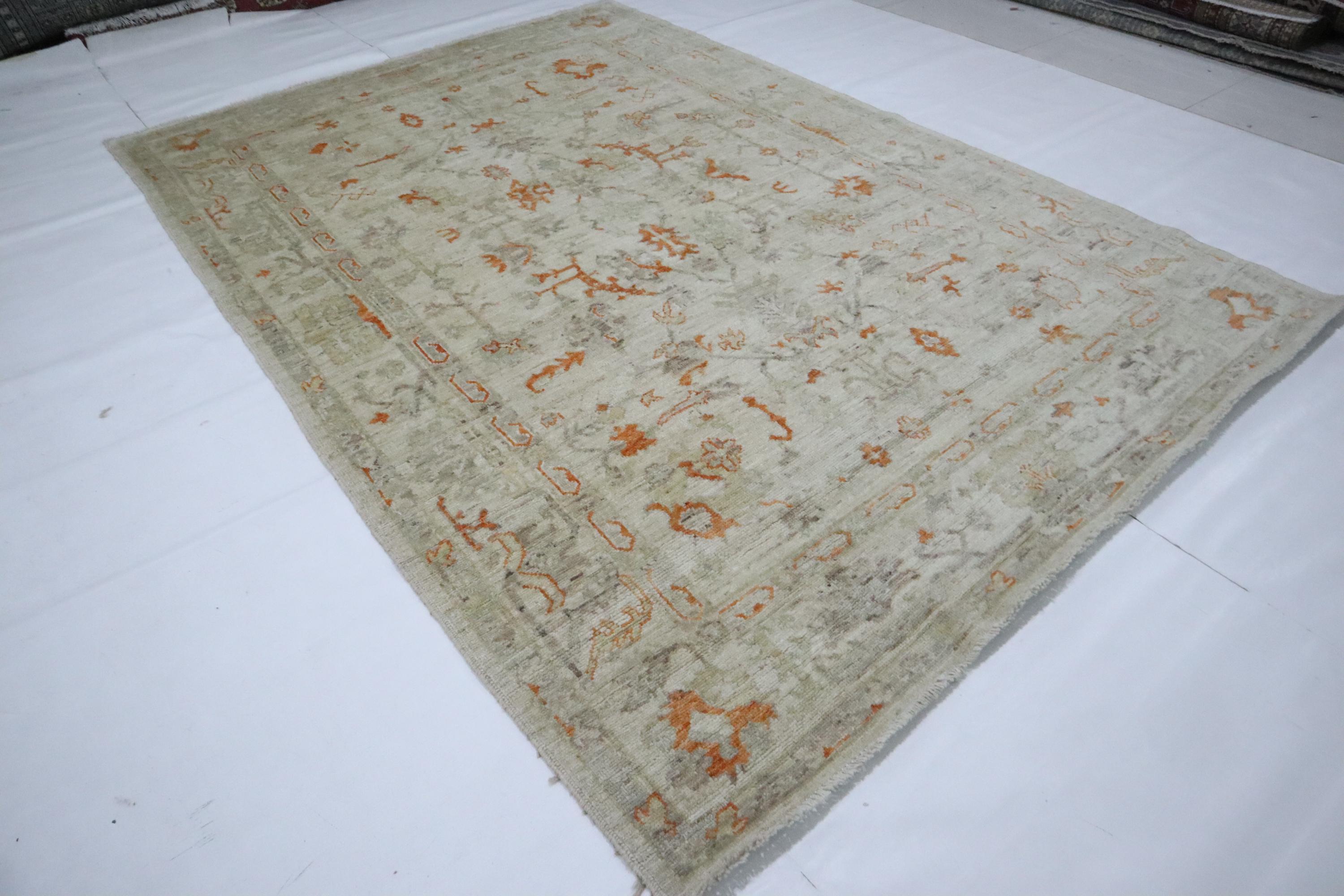 6x9 Ft Oushak Area Rug - Muted Beige Turkish Hand Knotted Floral Motif Soft Wool Rug - Traditional Rug - Bedroom Rug - Living Room Rug - Rug
