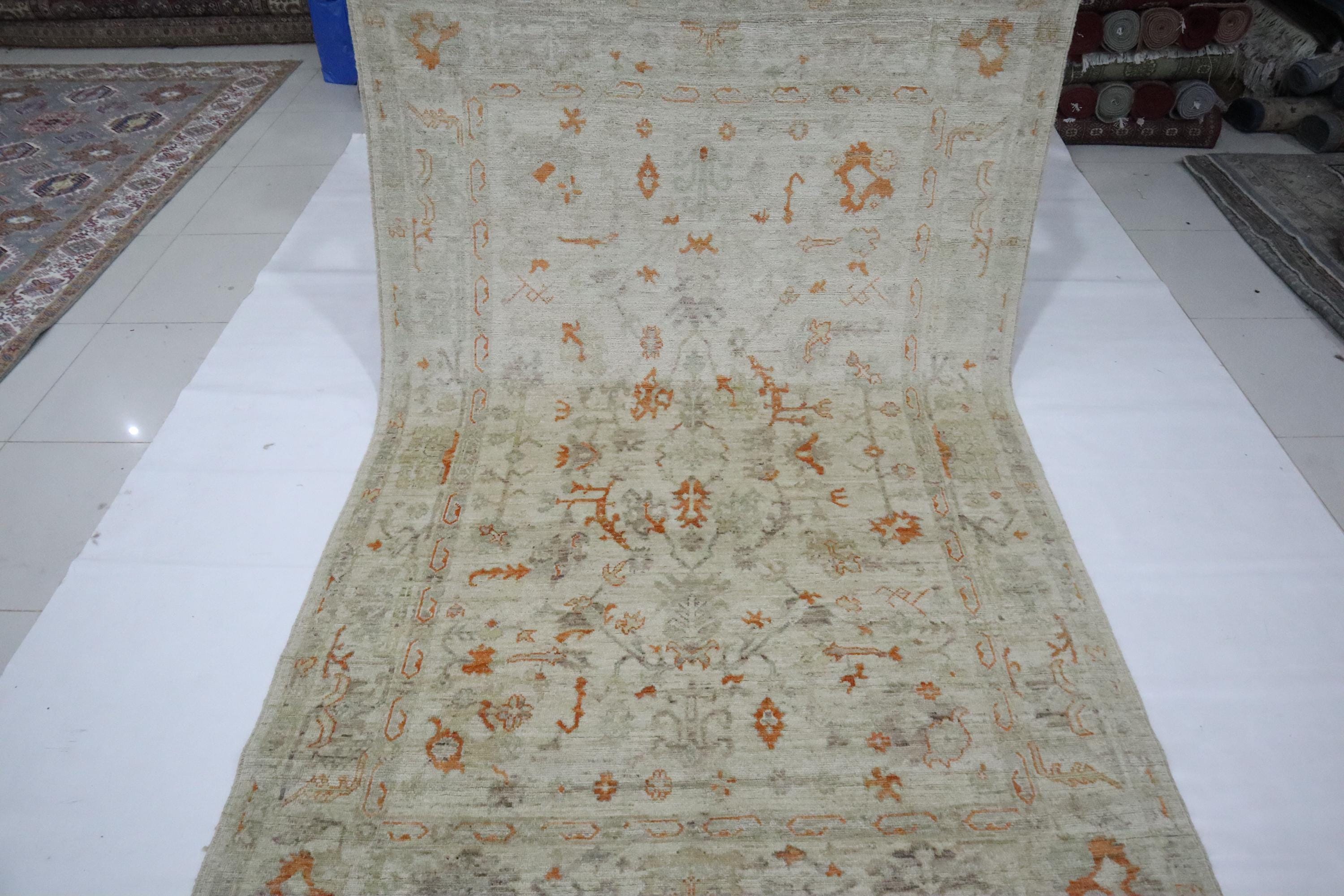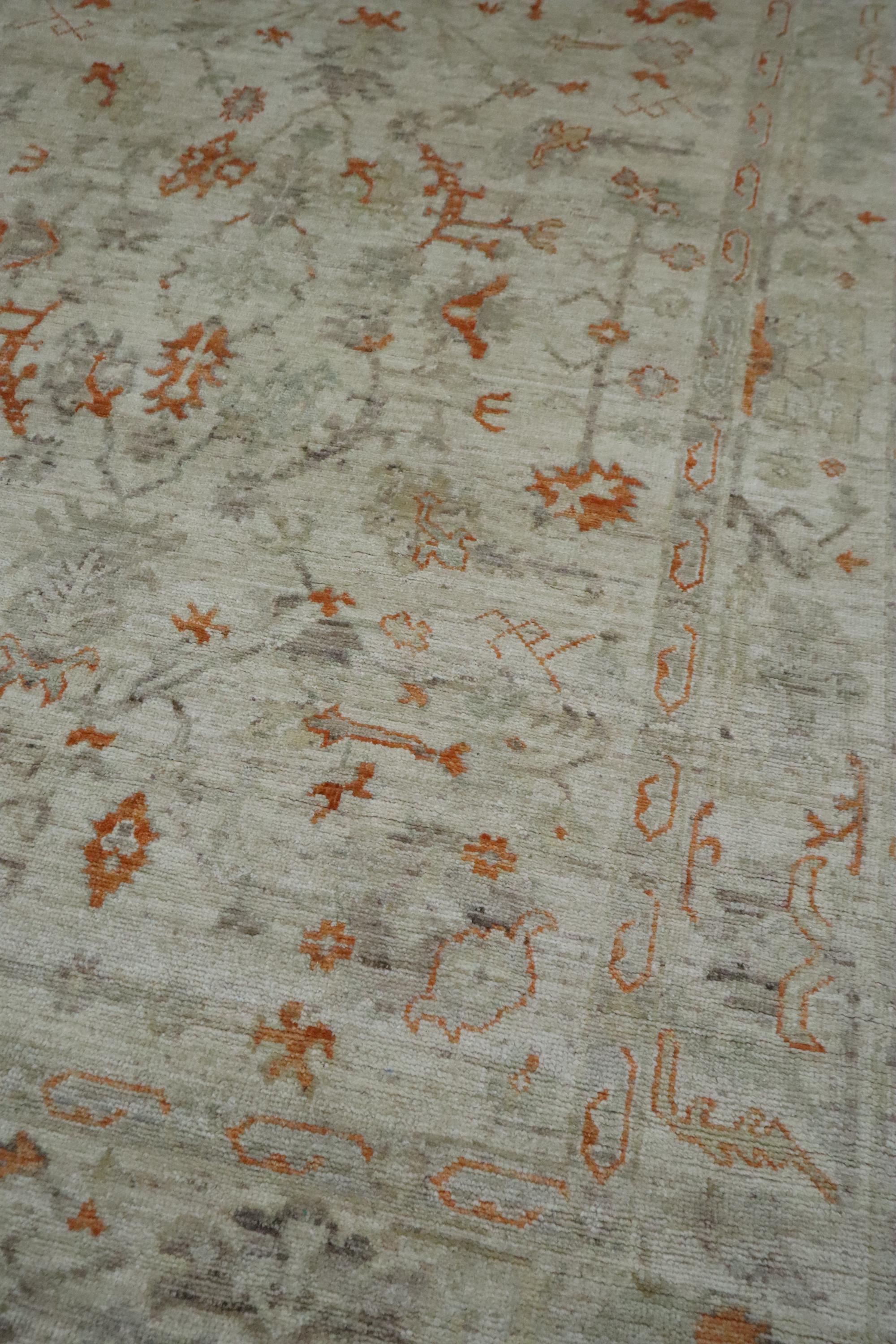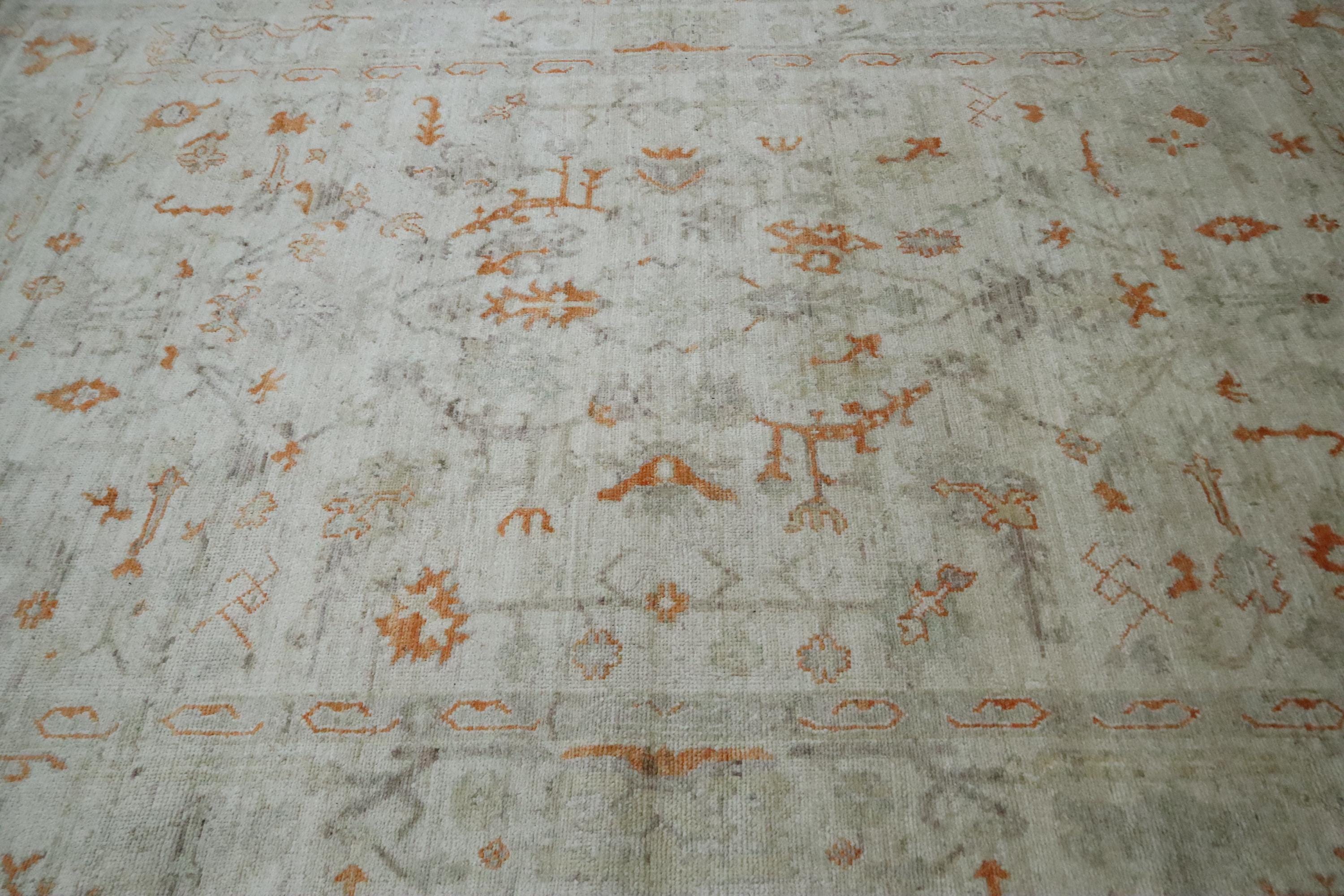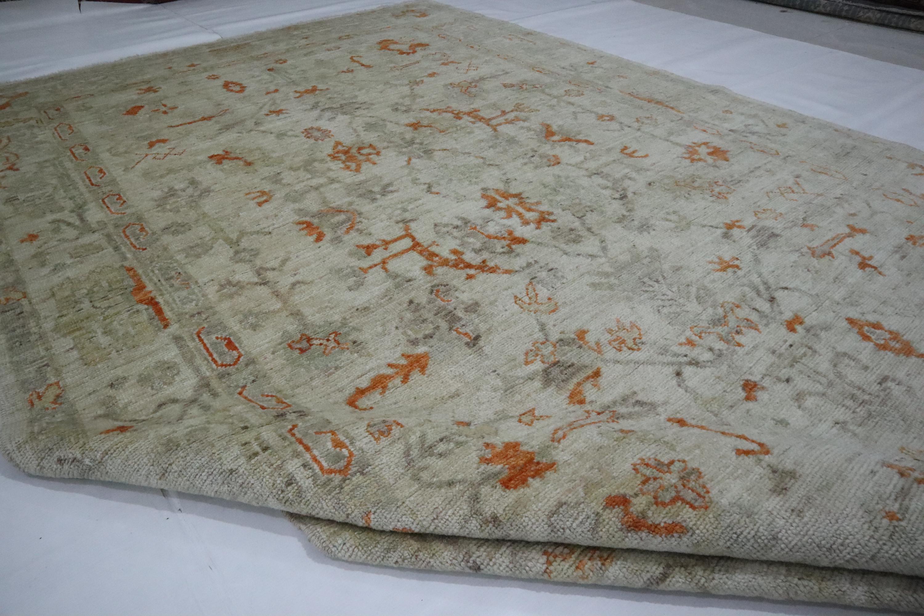 6x9 Ft Oushak Area Rug - Muted Beige Turkish Hand Knotted Floral Motif Soft Wool Rug - Traditional Rug - Bedroom Rug - Living Room Rug - Rug