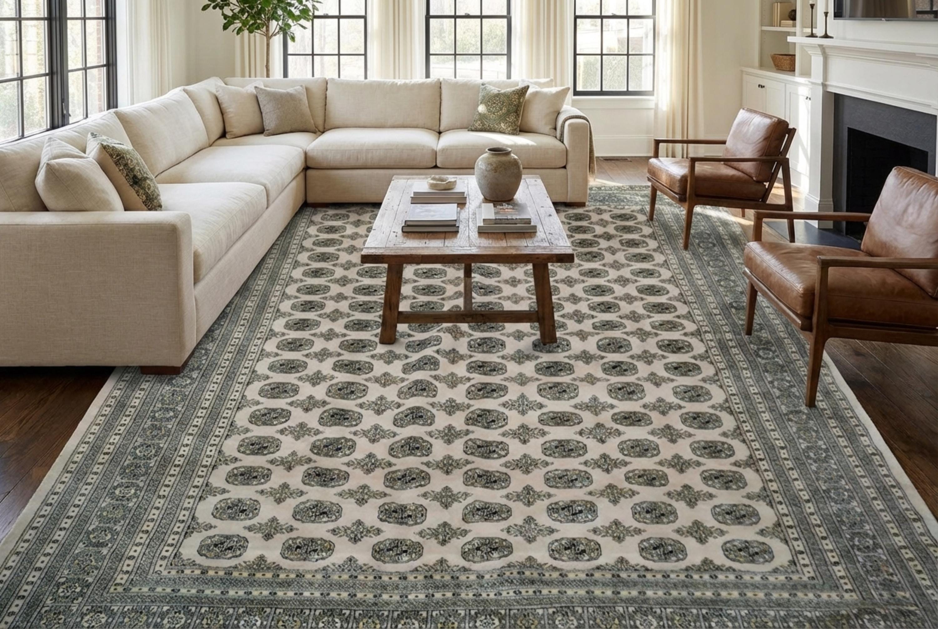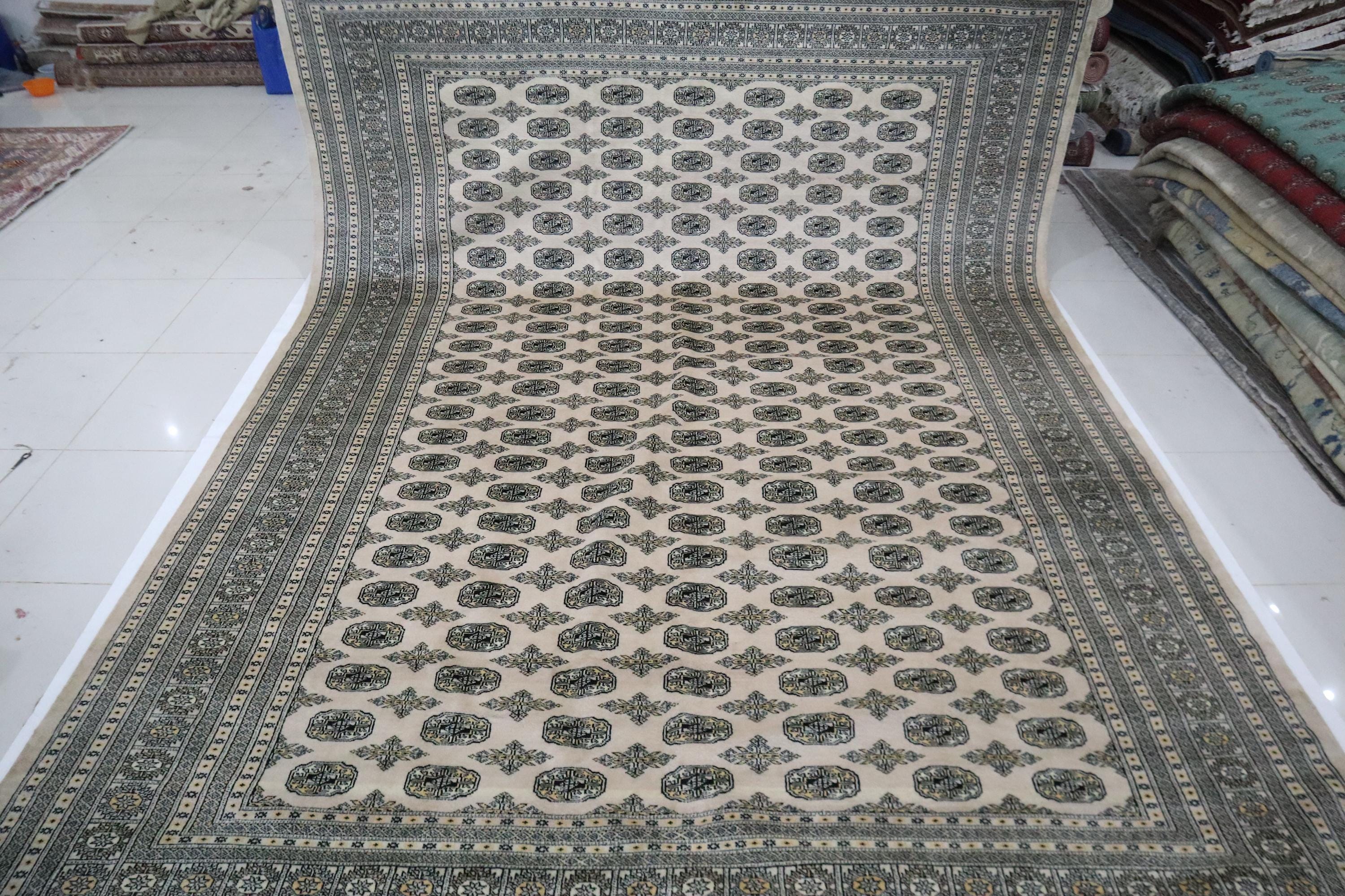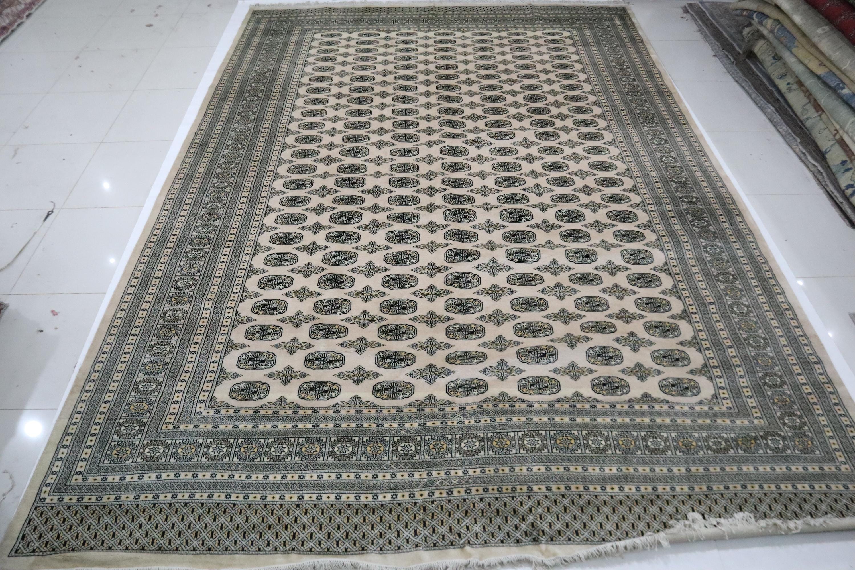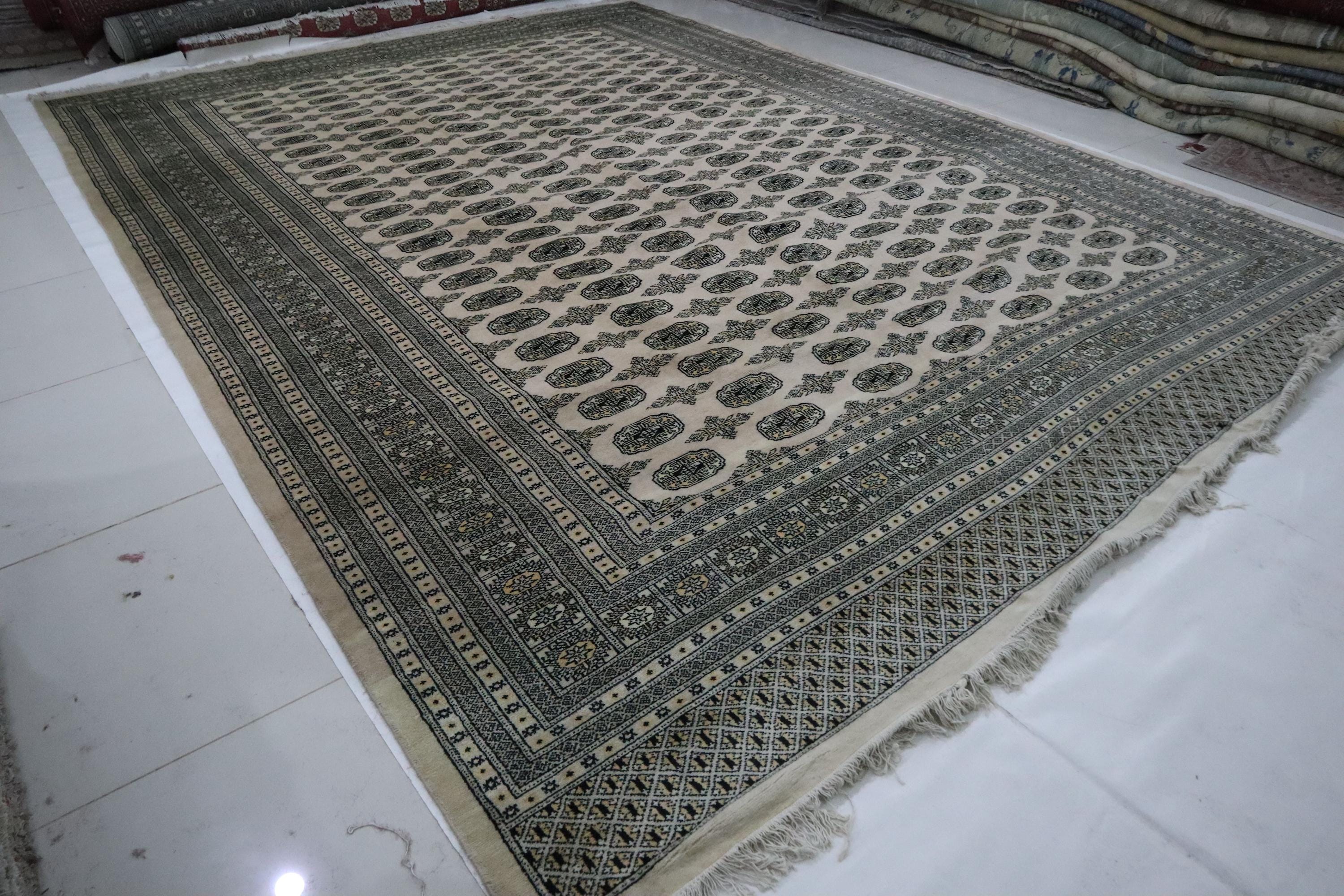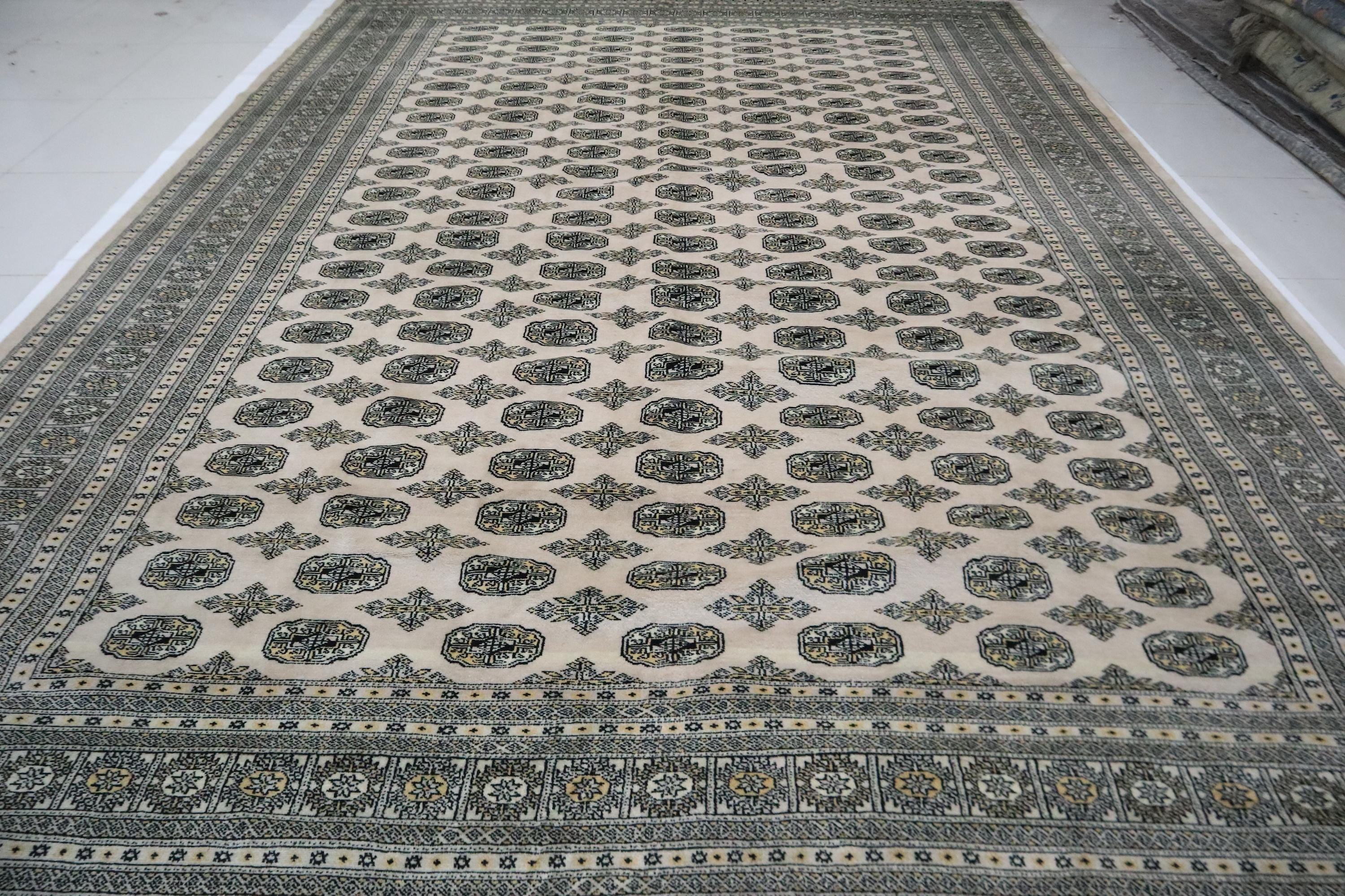 10x14 Mori Bokhara Area Rug - Beige Wool Rug - Turkmen Rug - Handmade Rug - Gul Pattern Rug - Geometric Rug - Bedroom Rug - Living Room Rug