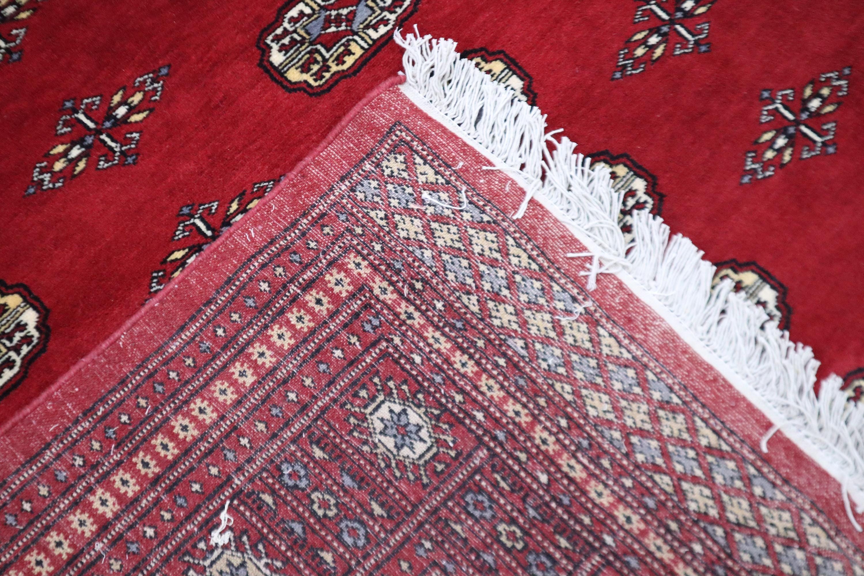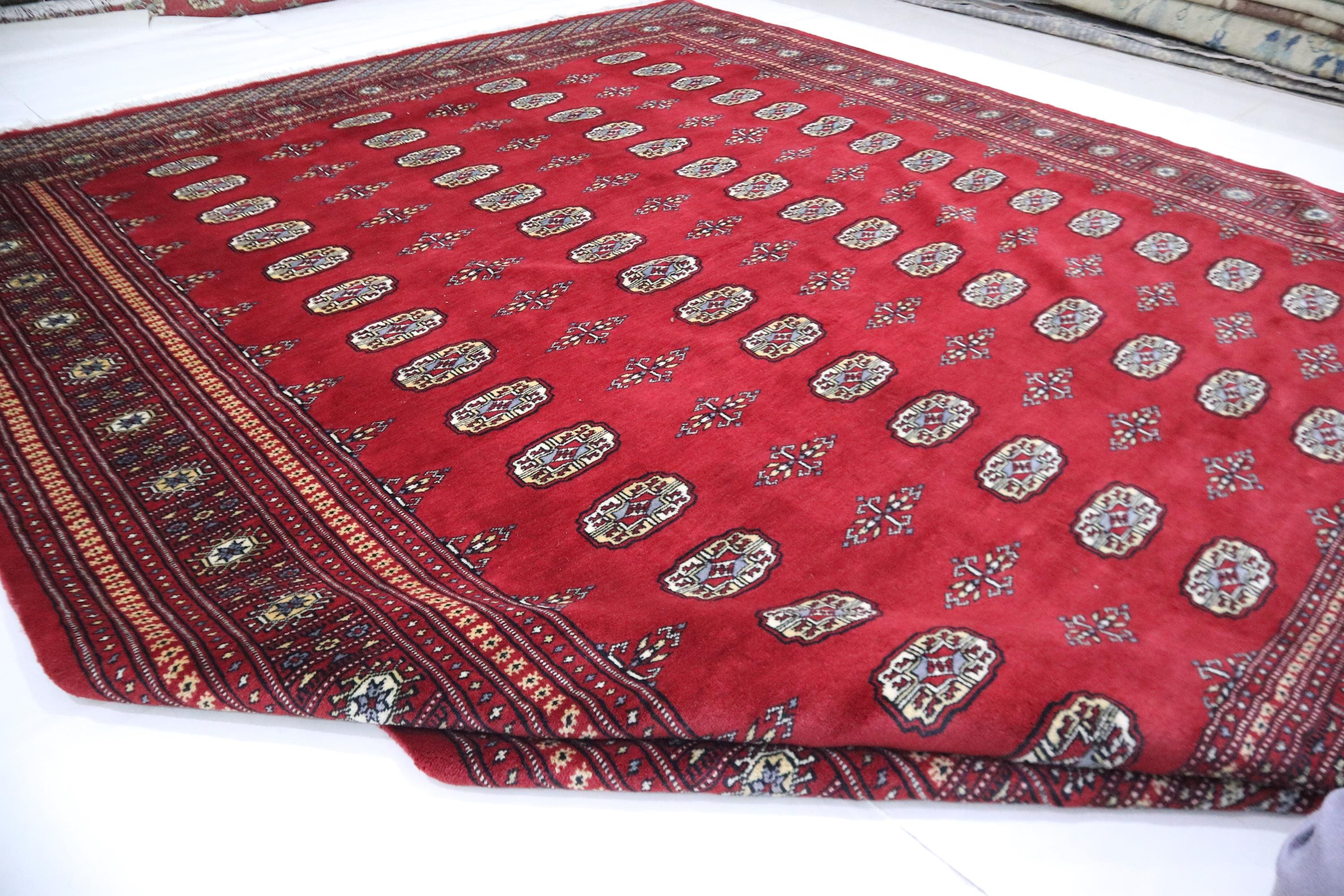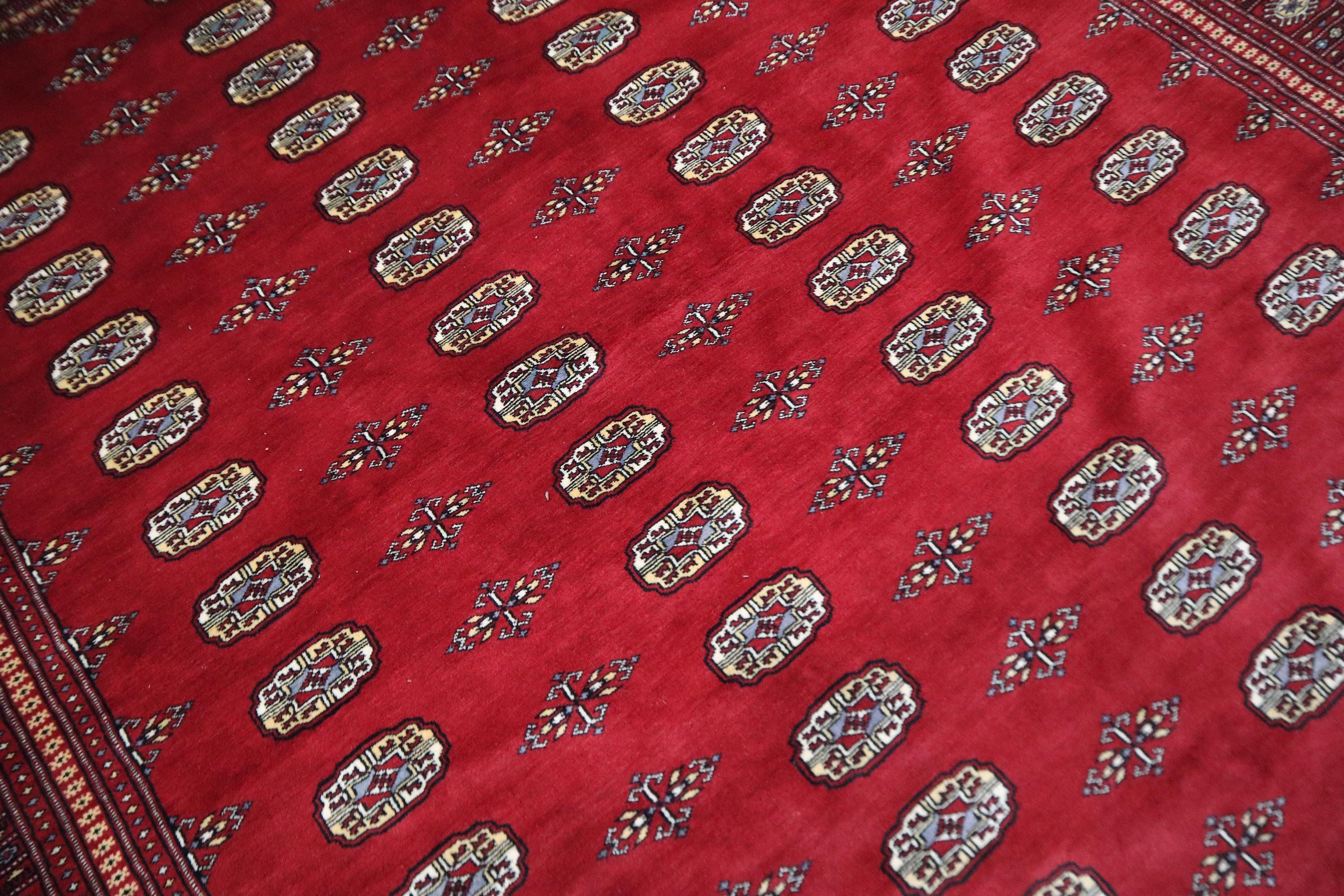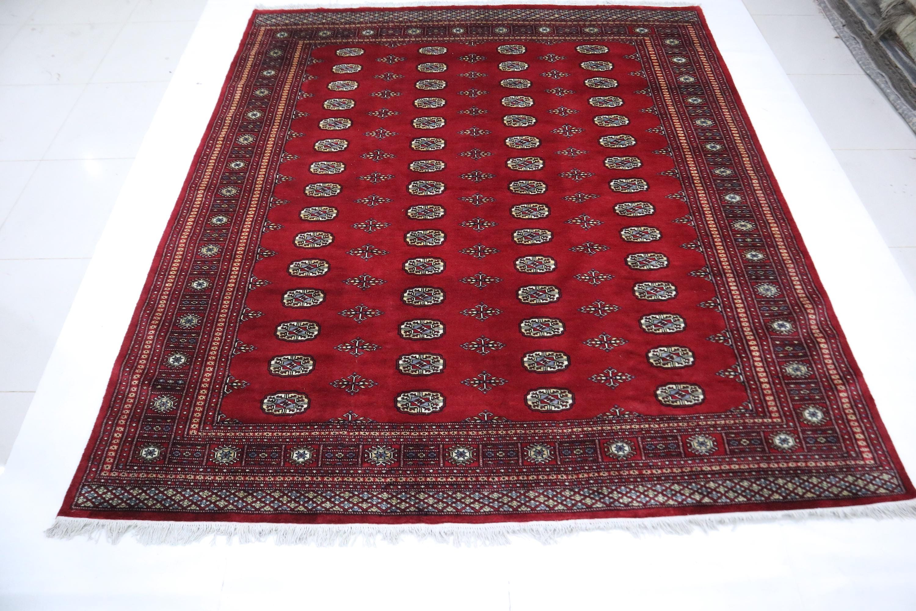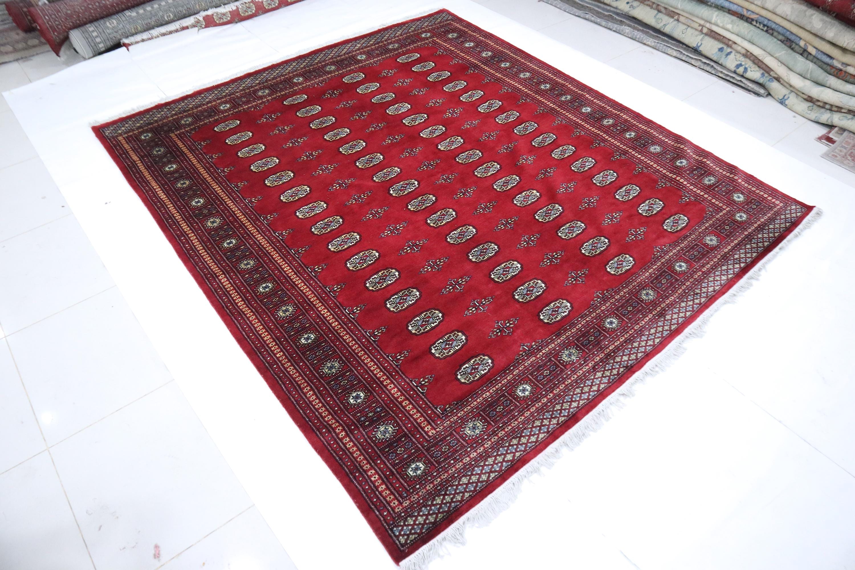 8x10 Ft Mori Bokhara Area Rug - Red Wool Rug - Turkmen Rug - Hand Knotted Rug - Geometric Rug - Traditional Rug - Living Room Rug - Wool Rug
