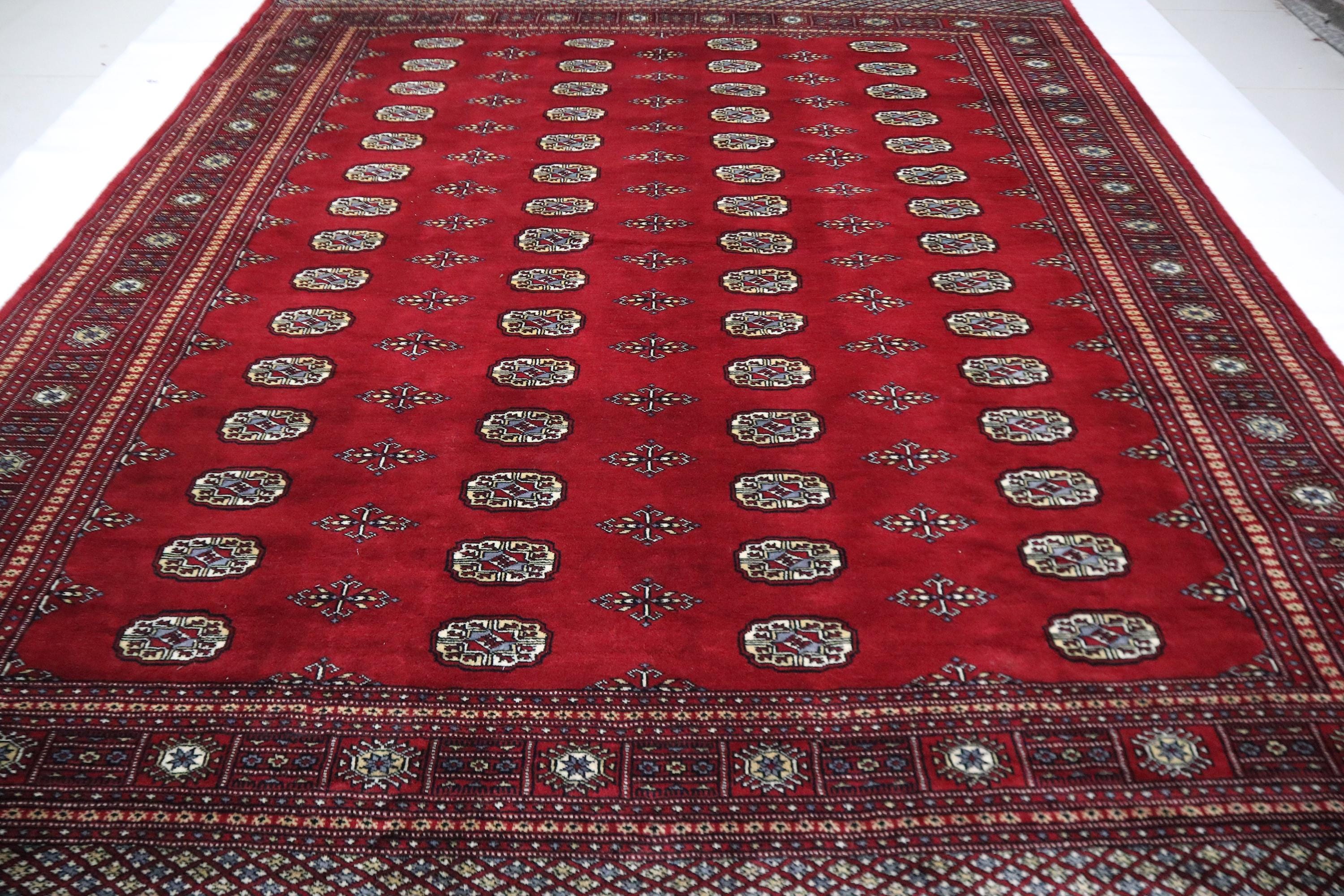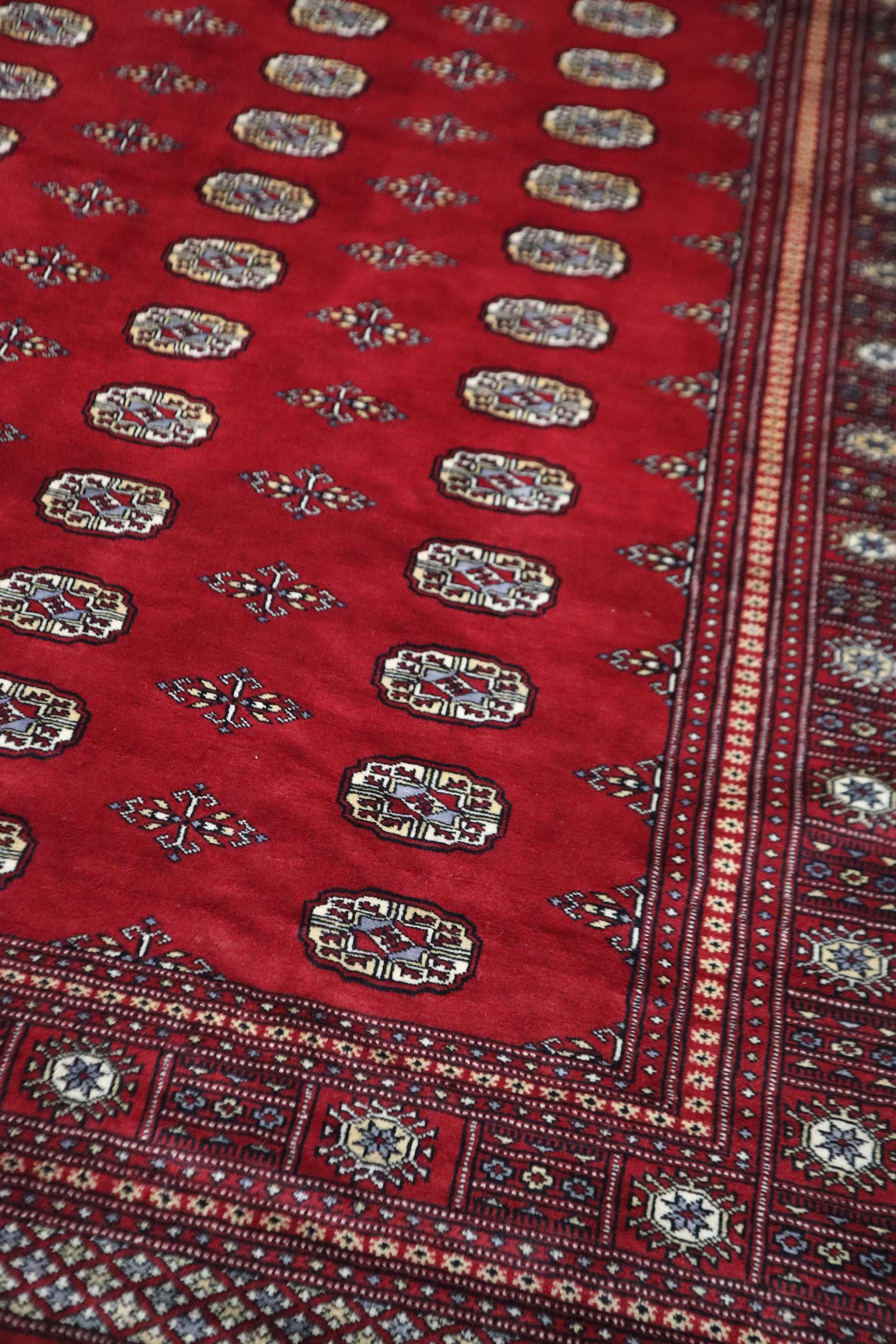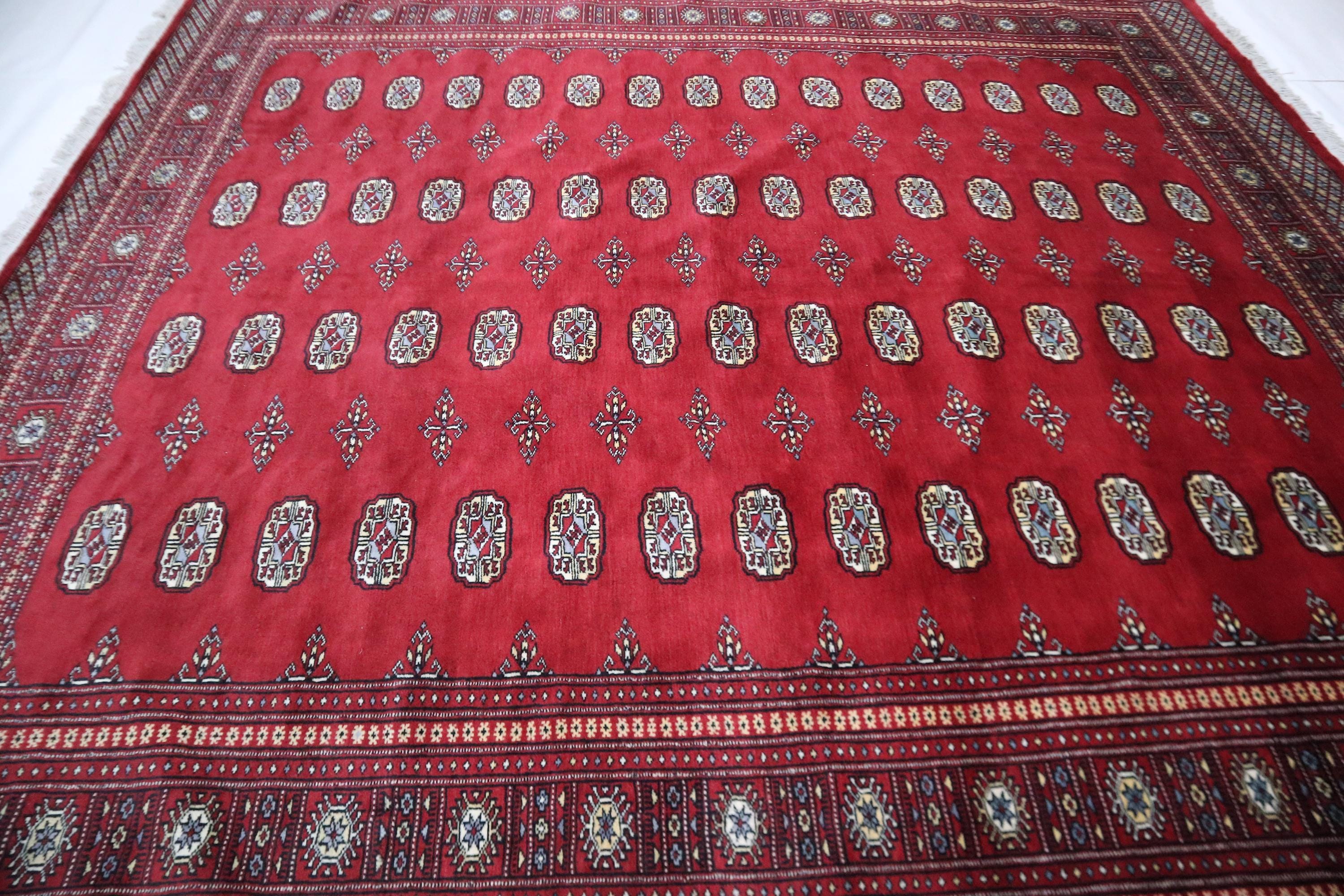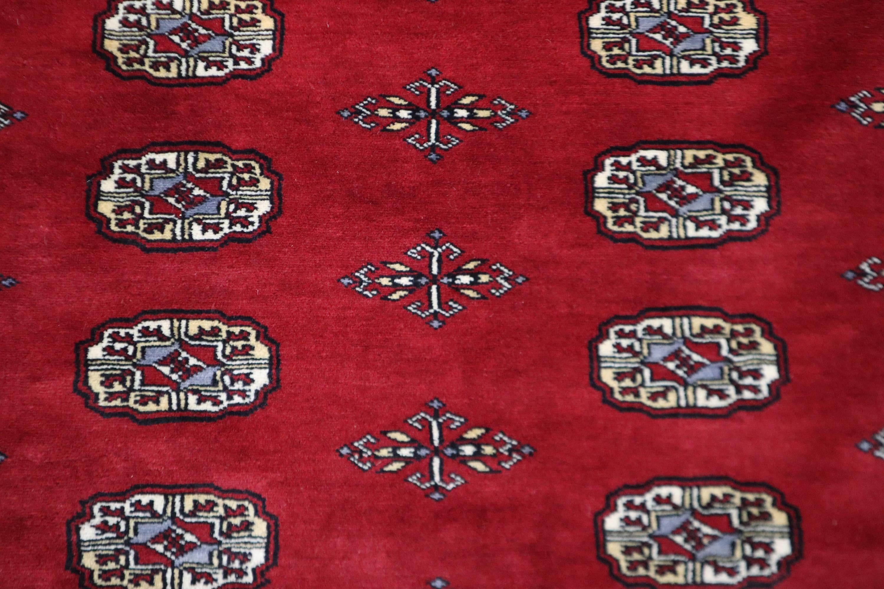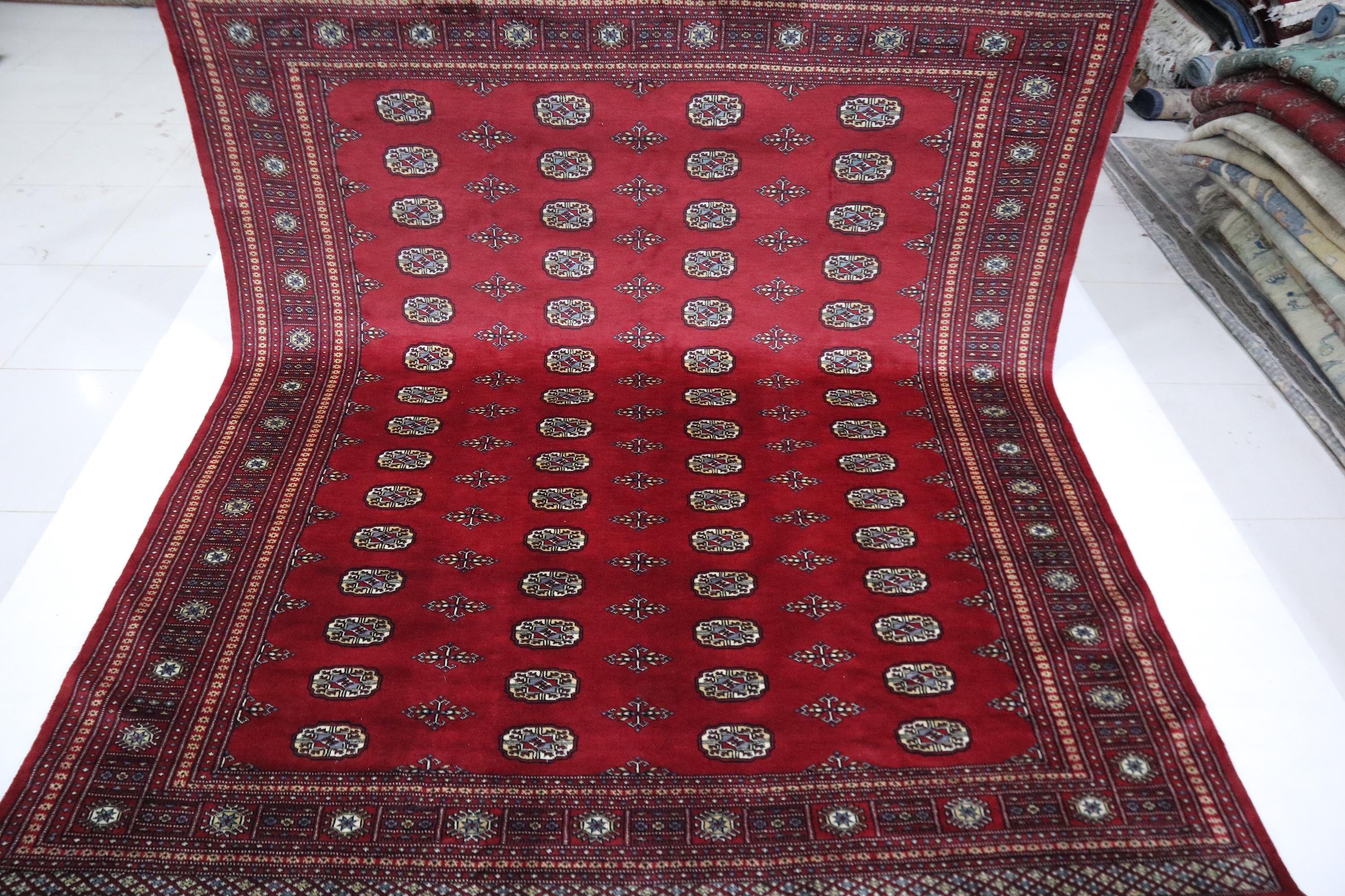 8x10 Ft Mori Bokhara Area Rug - Red Wool Rug - Turkmen Rug - Hand Knotted Rug - Geometric Rug - Traditional Rug - Living Room Rug - Wool Rug