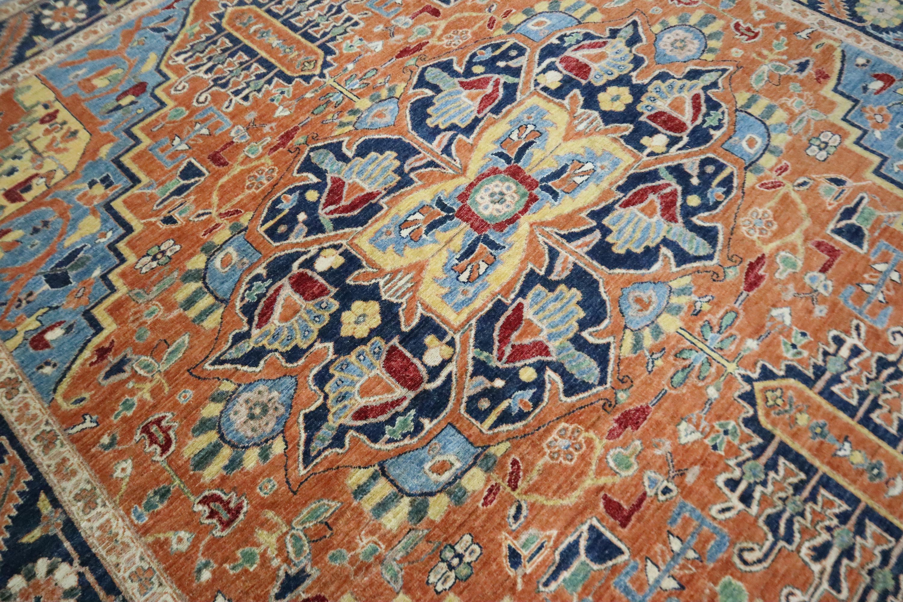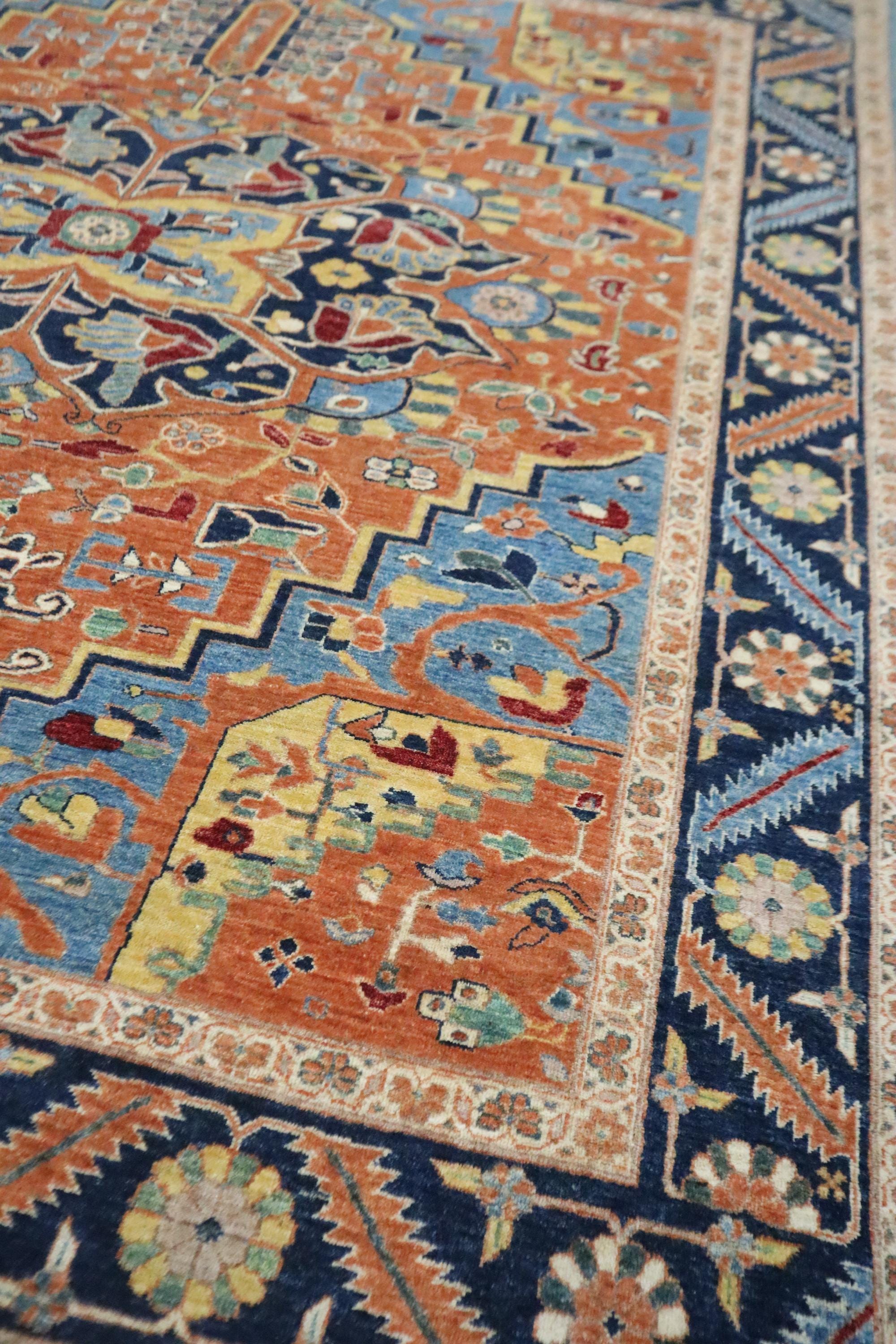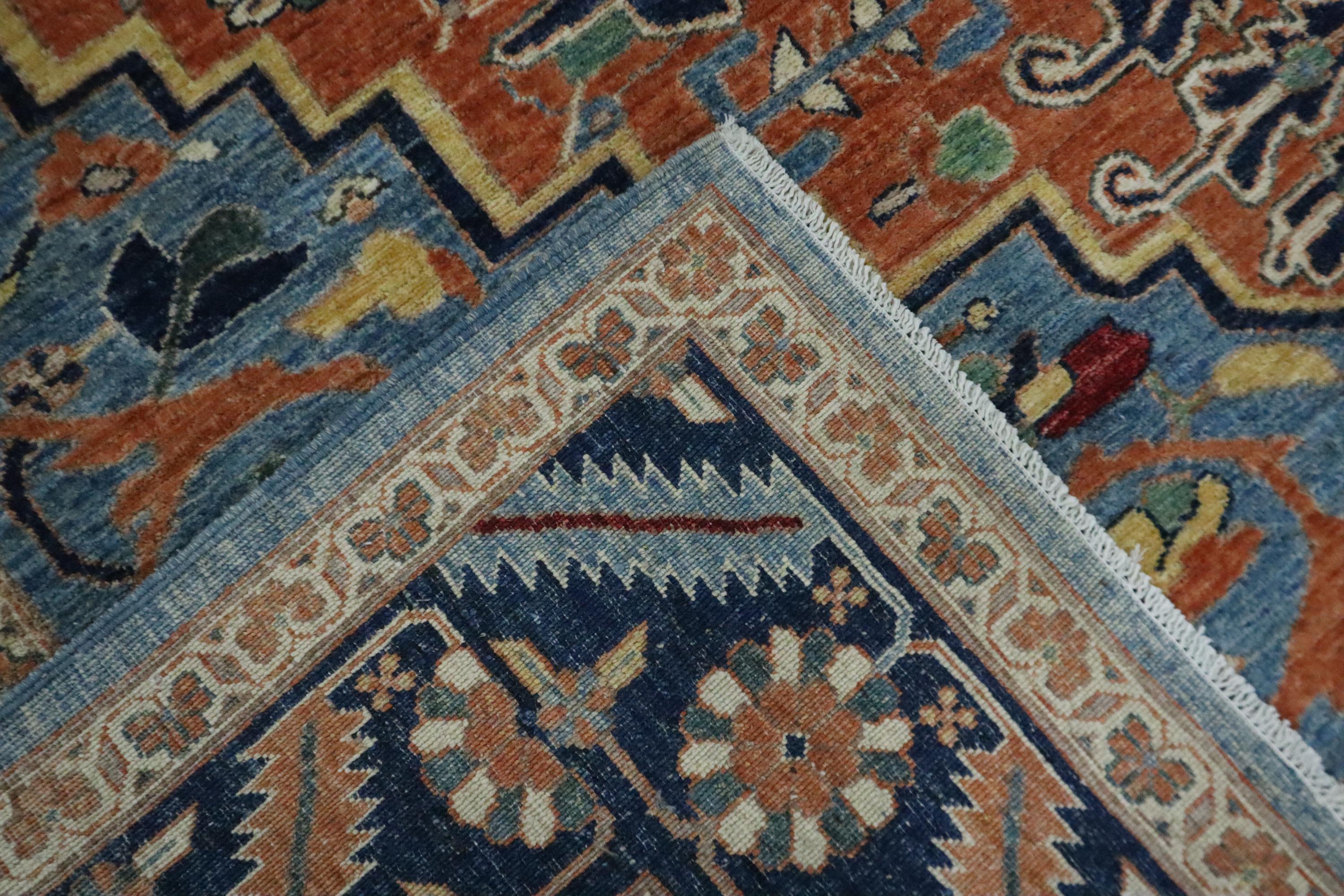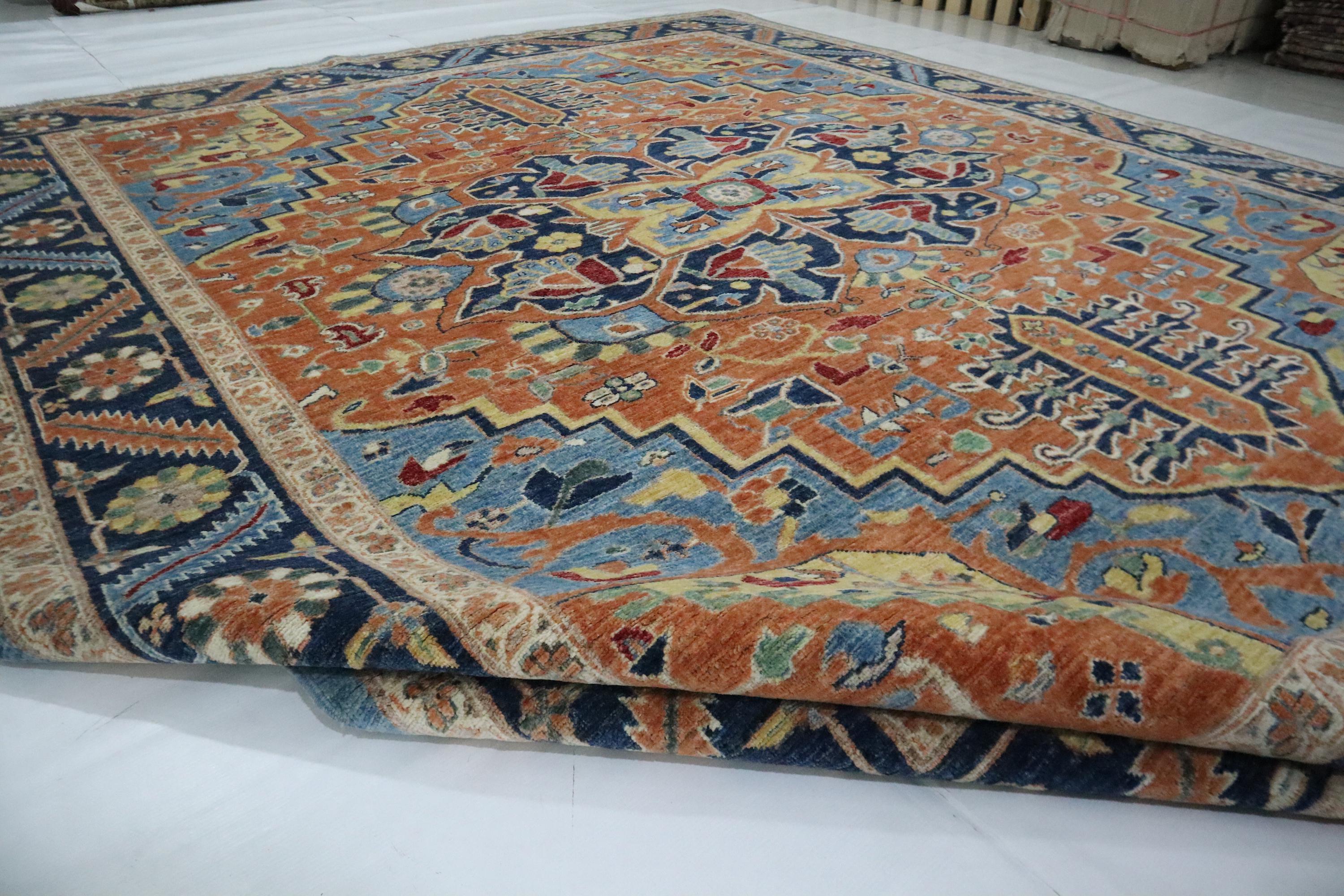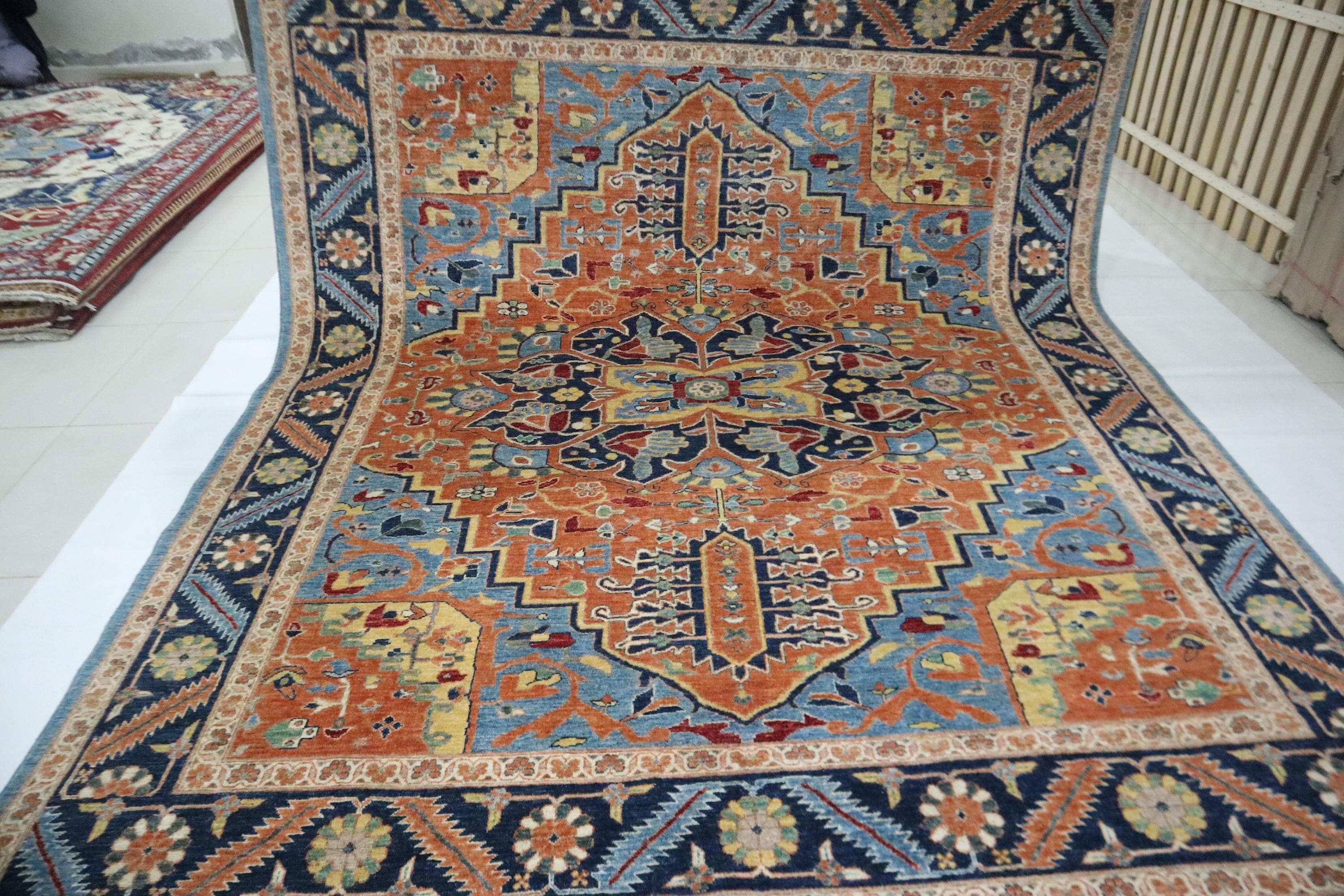 8x10 Ft Heriz Area Rug - Rust Blue Persian Style Afghan Hand Knotted Geometric Veg Dye Wool Rug - Traditional Rug - Bedroom Rug - Office Rug