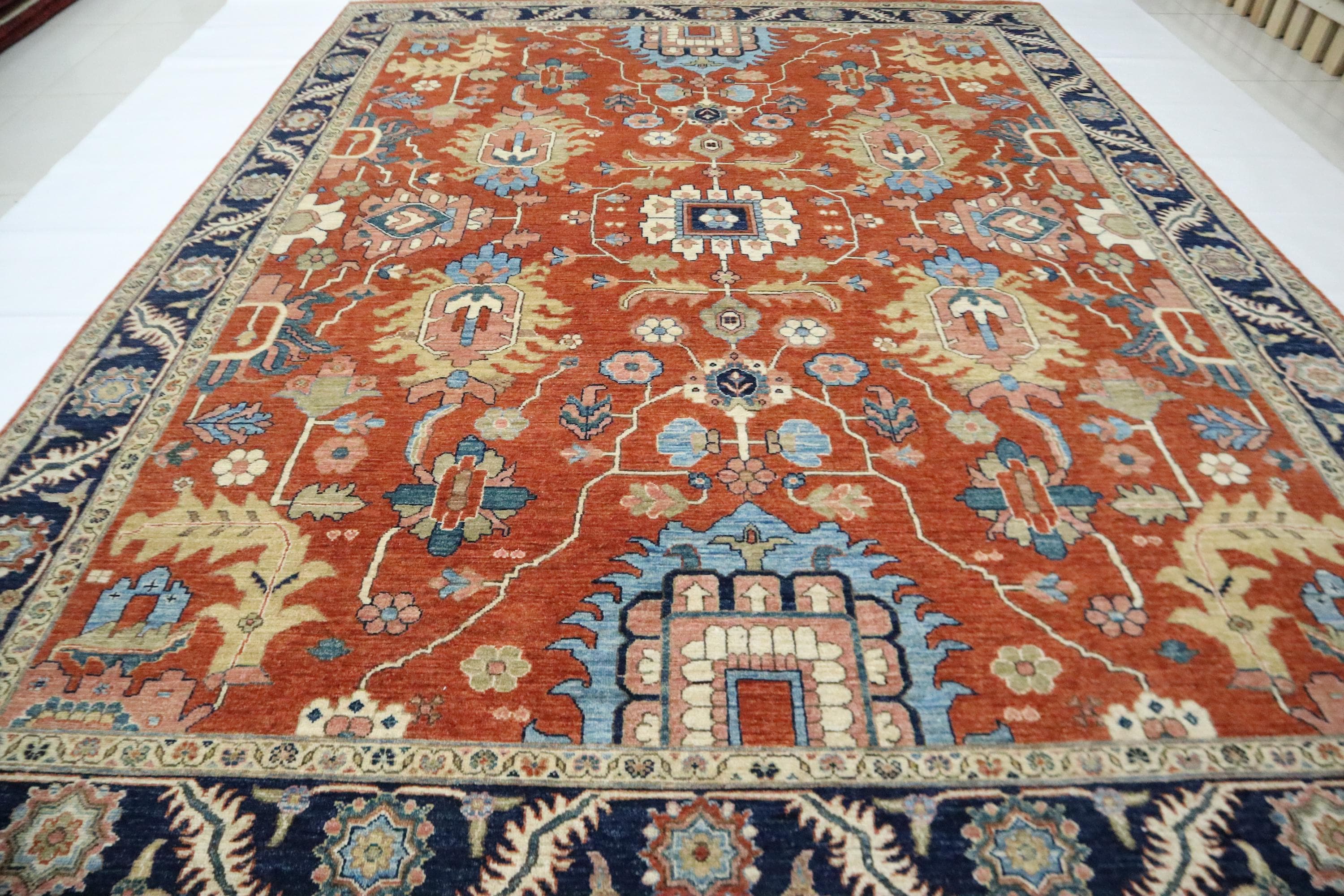 8x10 Chobi Area Rug - Rust Blue Afghan Hand Knotted Traditional Veg Dye Wool Rug - Oriental Rug - Living Room Rug - Dining Room Rug - Rugs