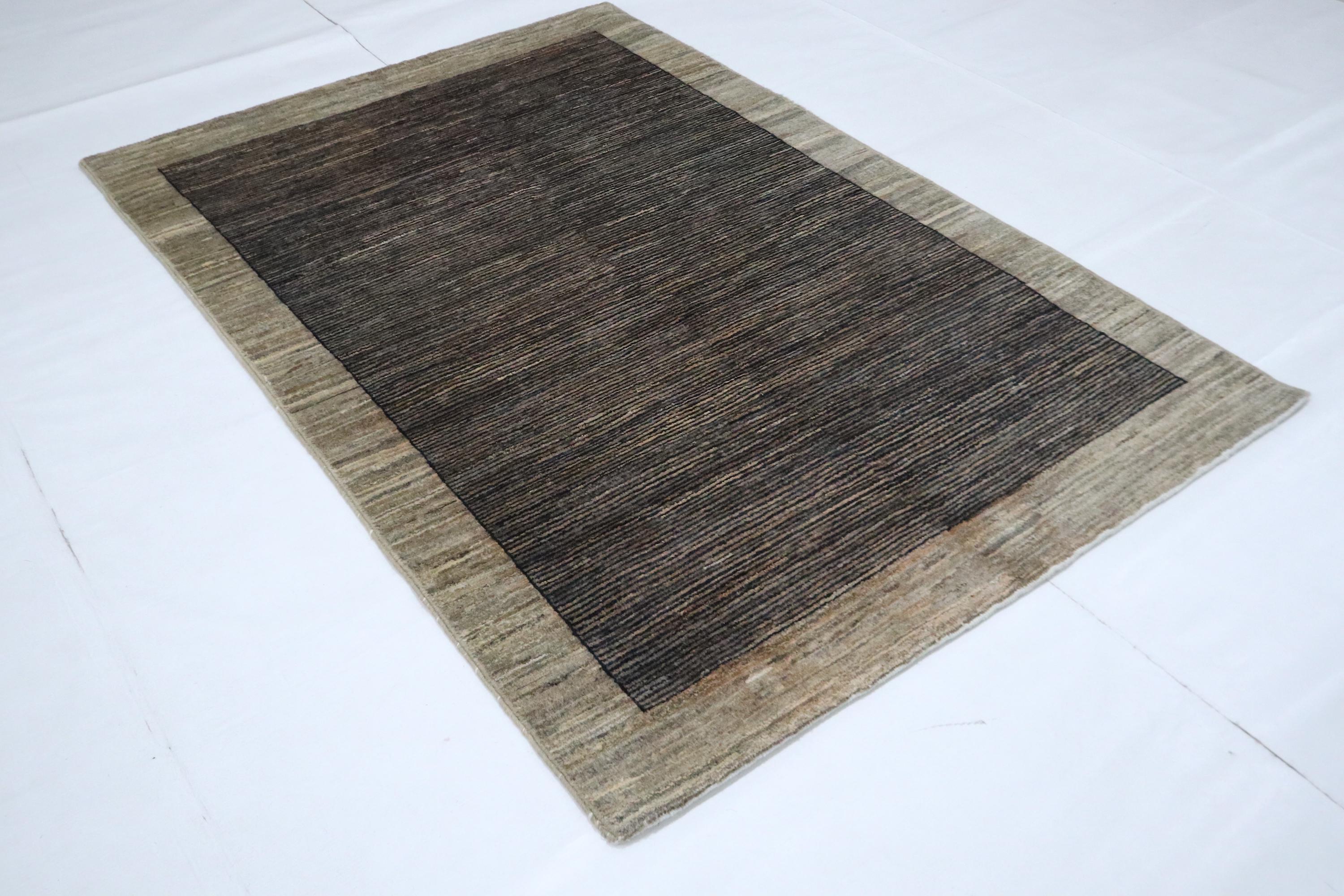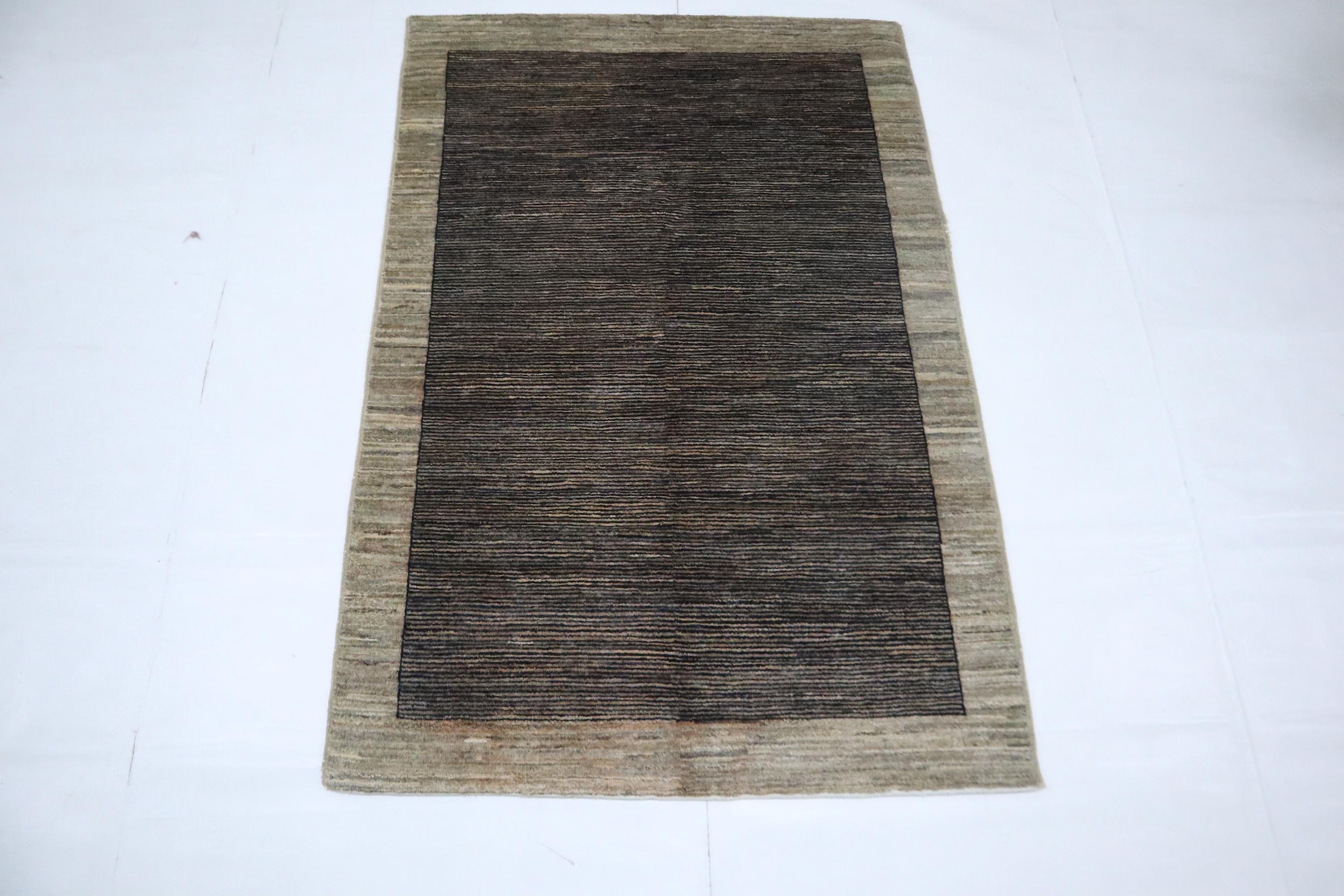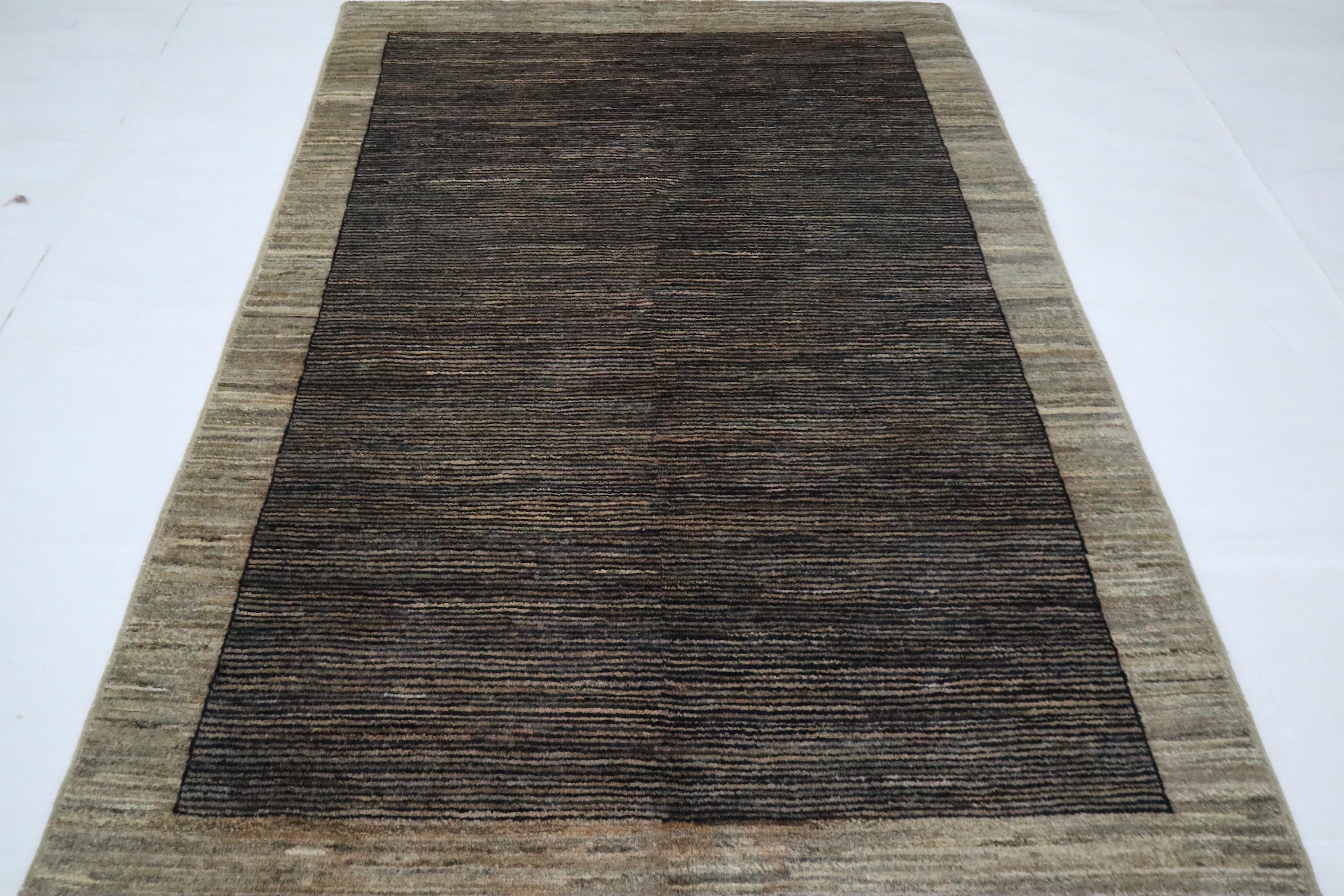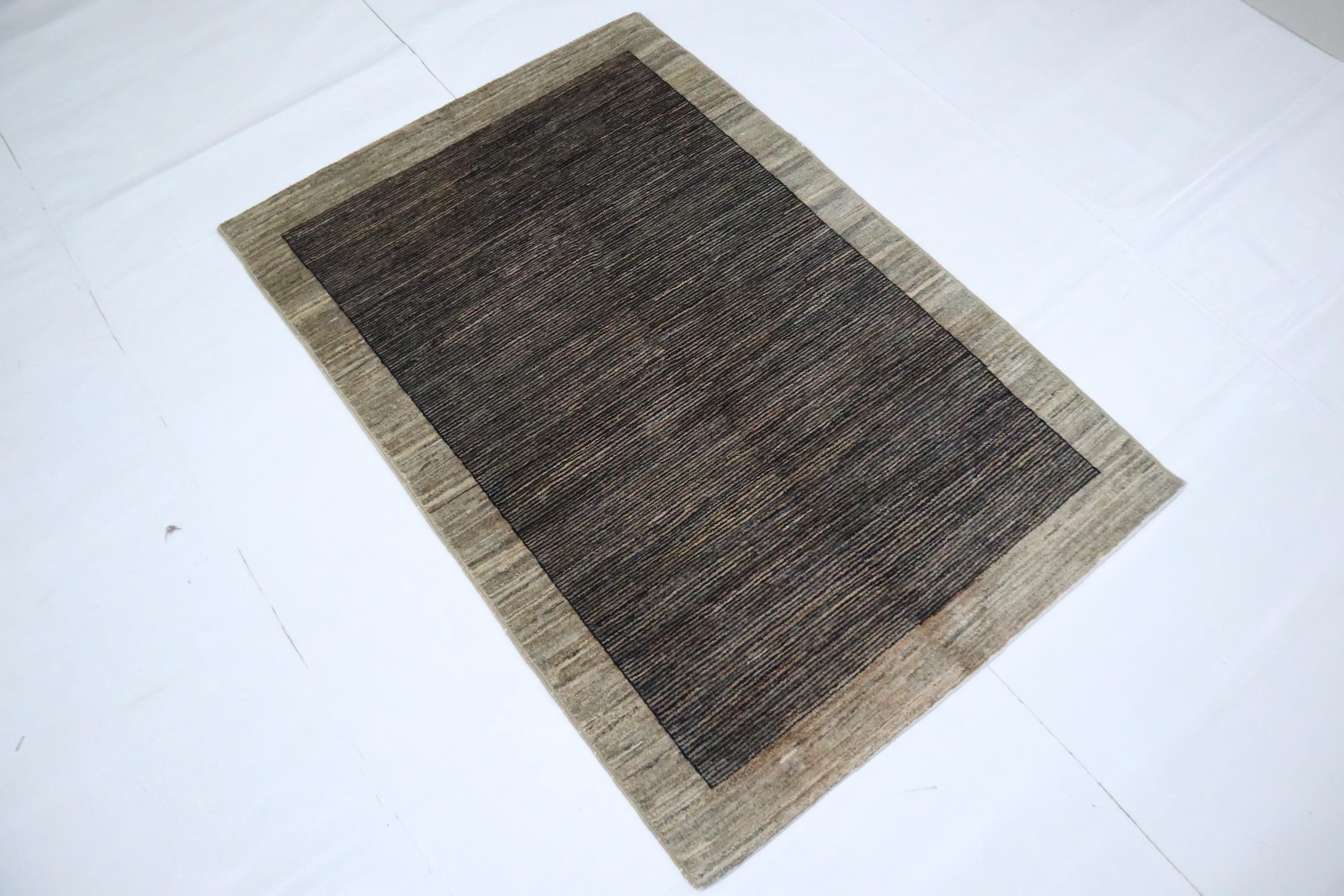 3x5 Ft Gabbeh Area Rug - Brown Gray Afghan Handmade Striped Plush Wool Rug - Tribal Rug - Kitchen Rug - Foyer Rug - Dorm Rug - Office Rug