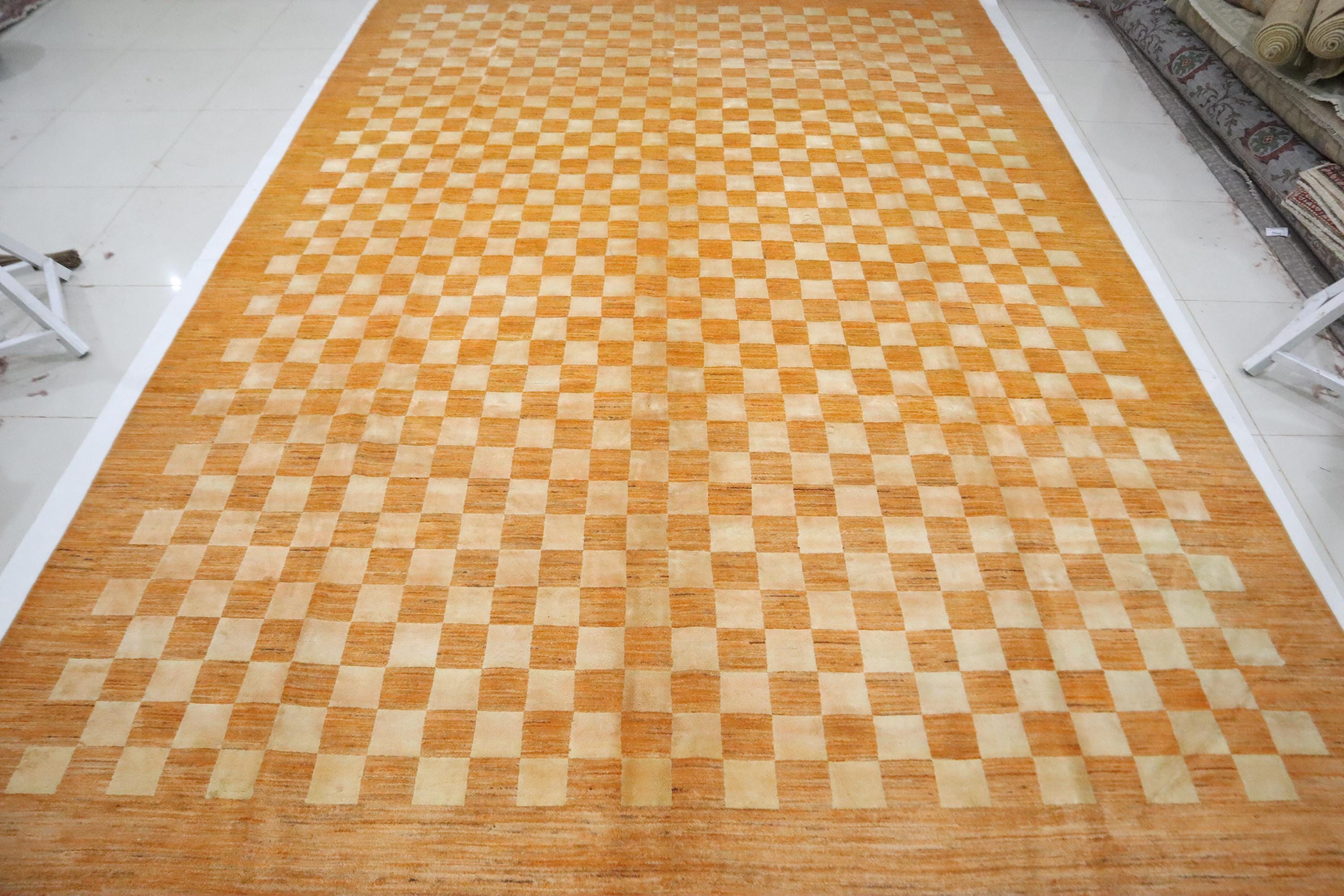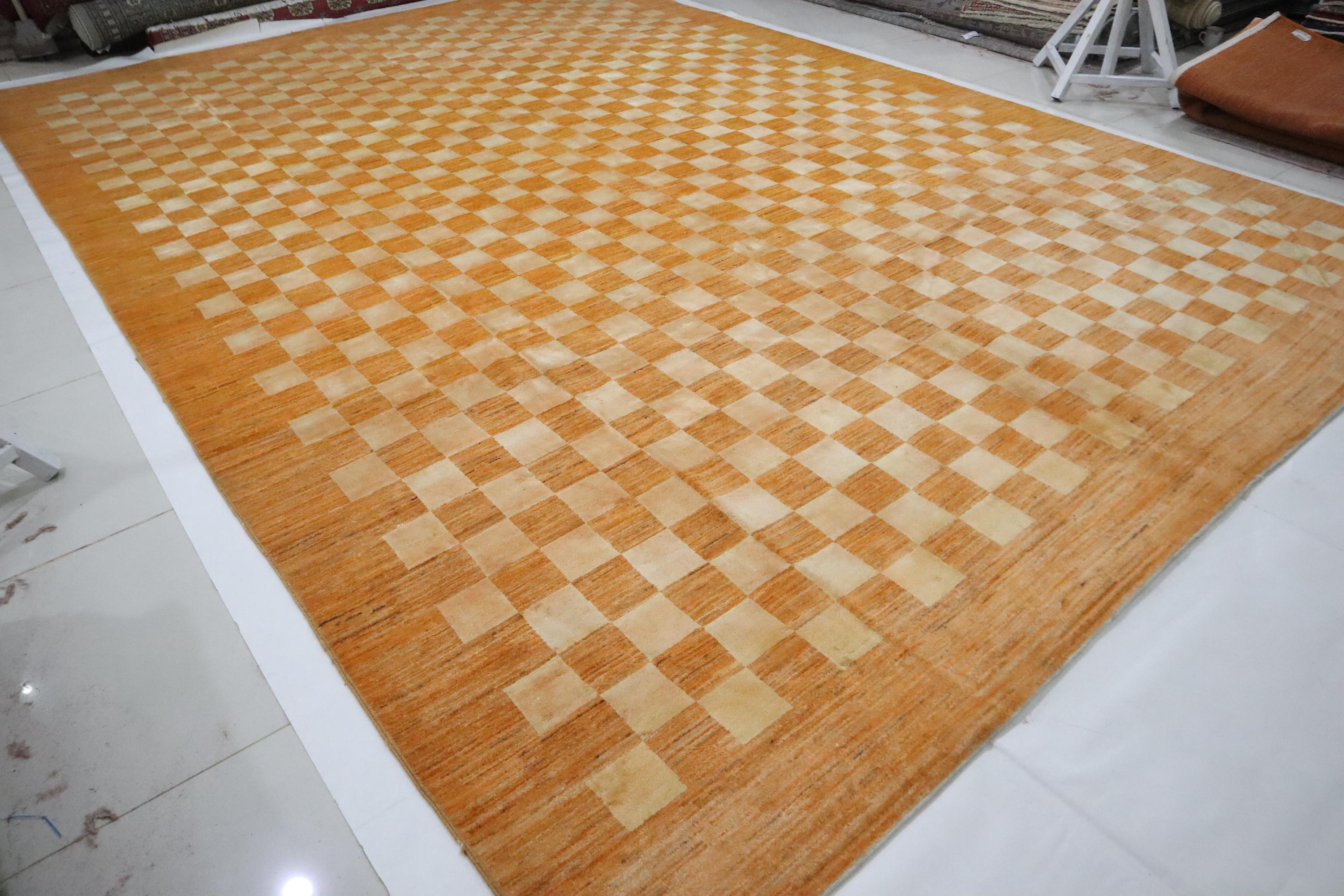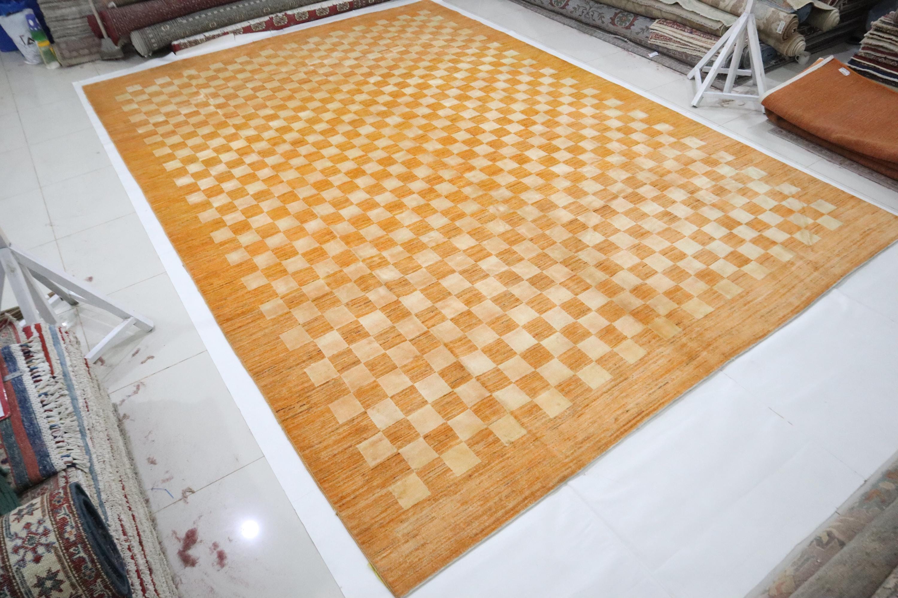 10x15 Gabbeh Area Rug - Golden Yellow Afghan Hand Knotted Check Design Plush Wool Area Rug - Oversize Rug - Living Room Rug - Bedroom Rug