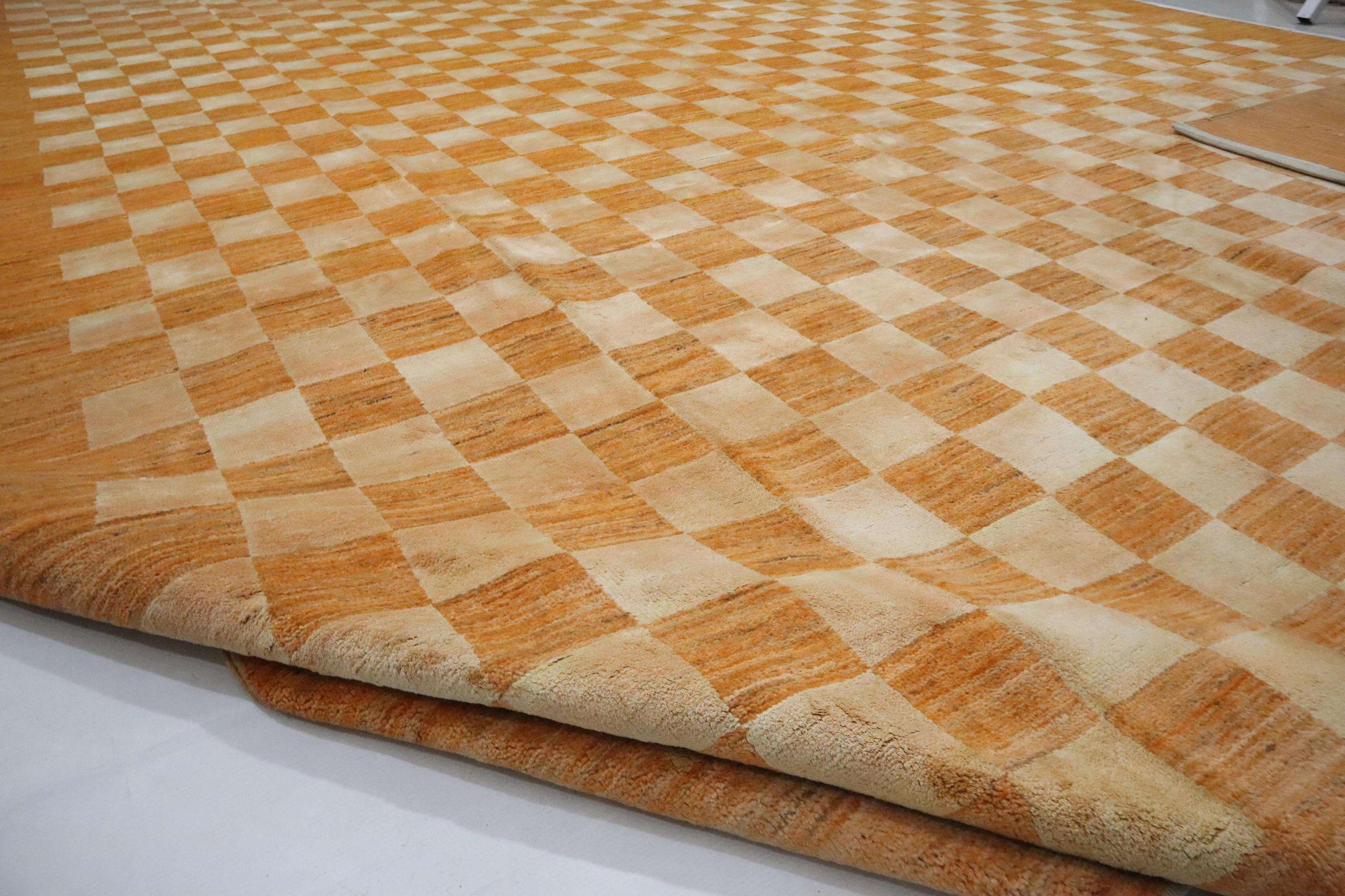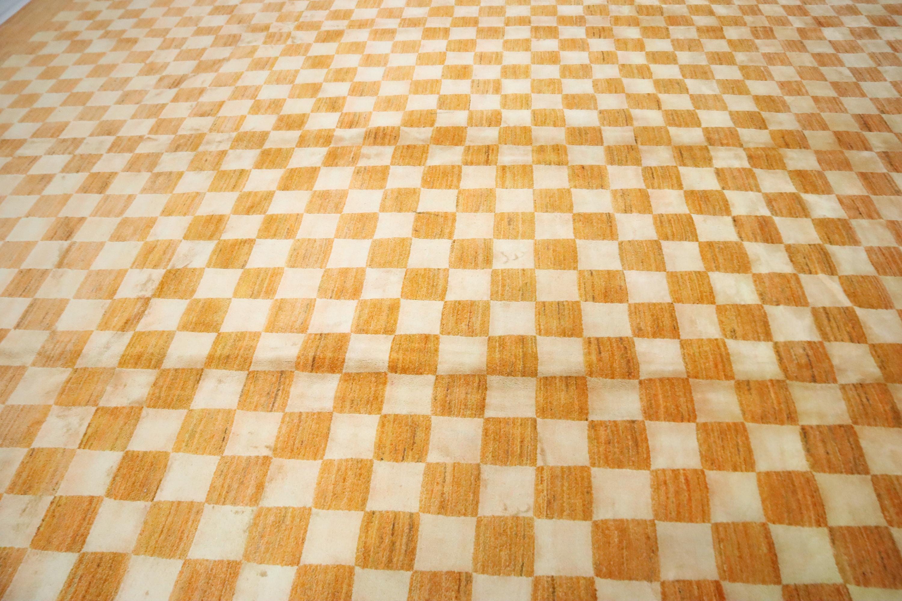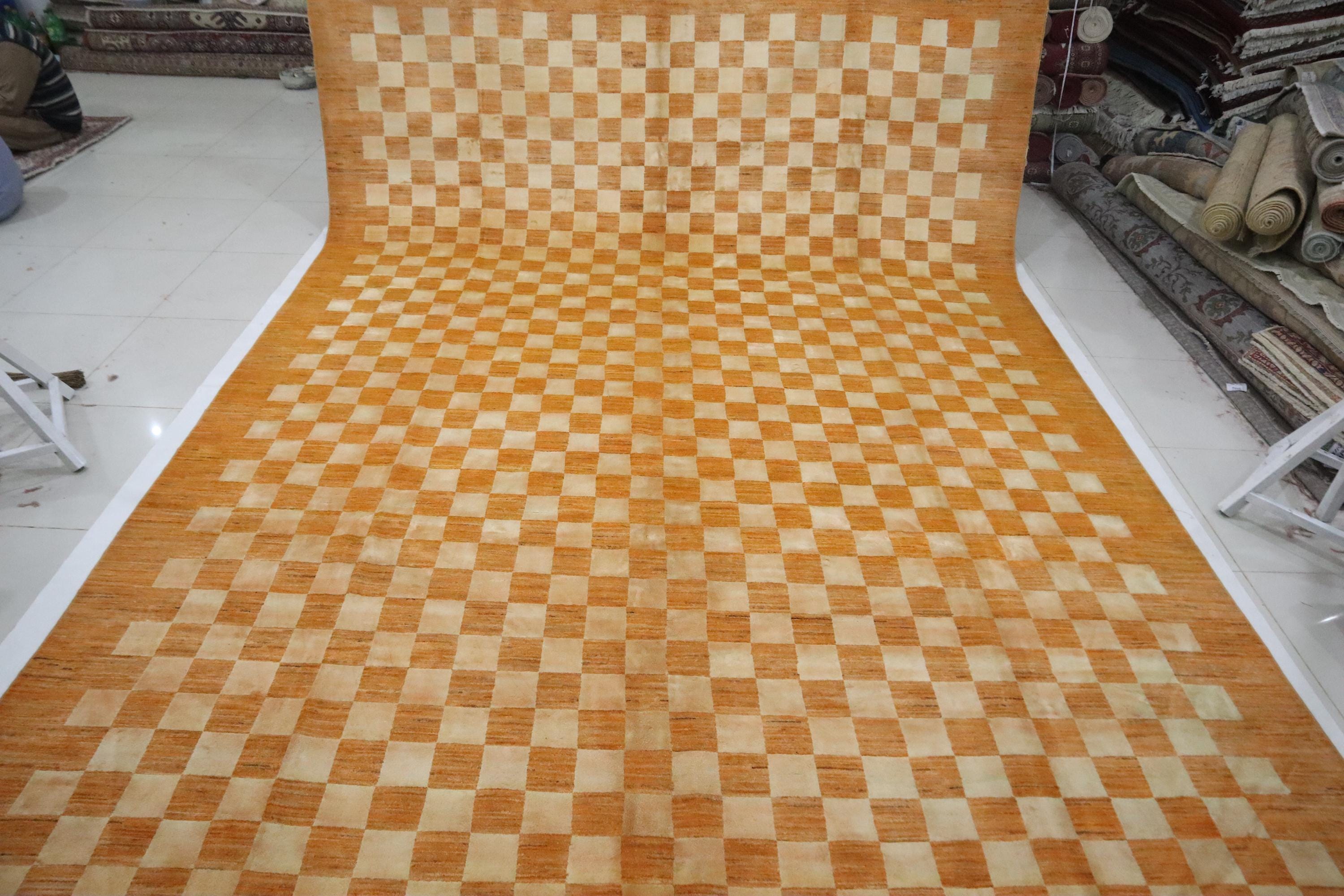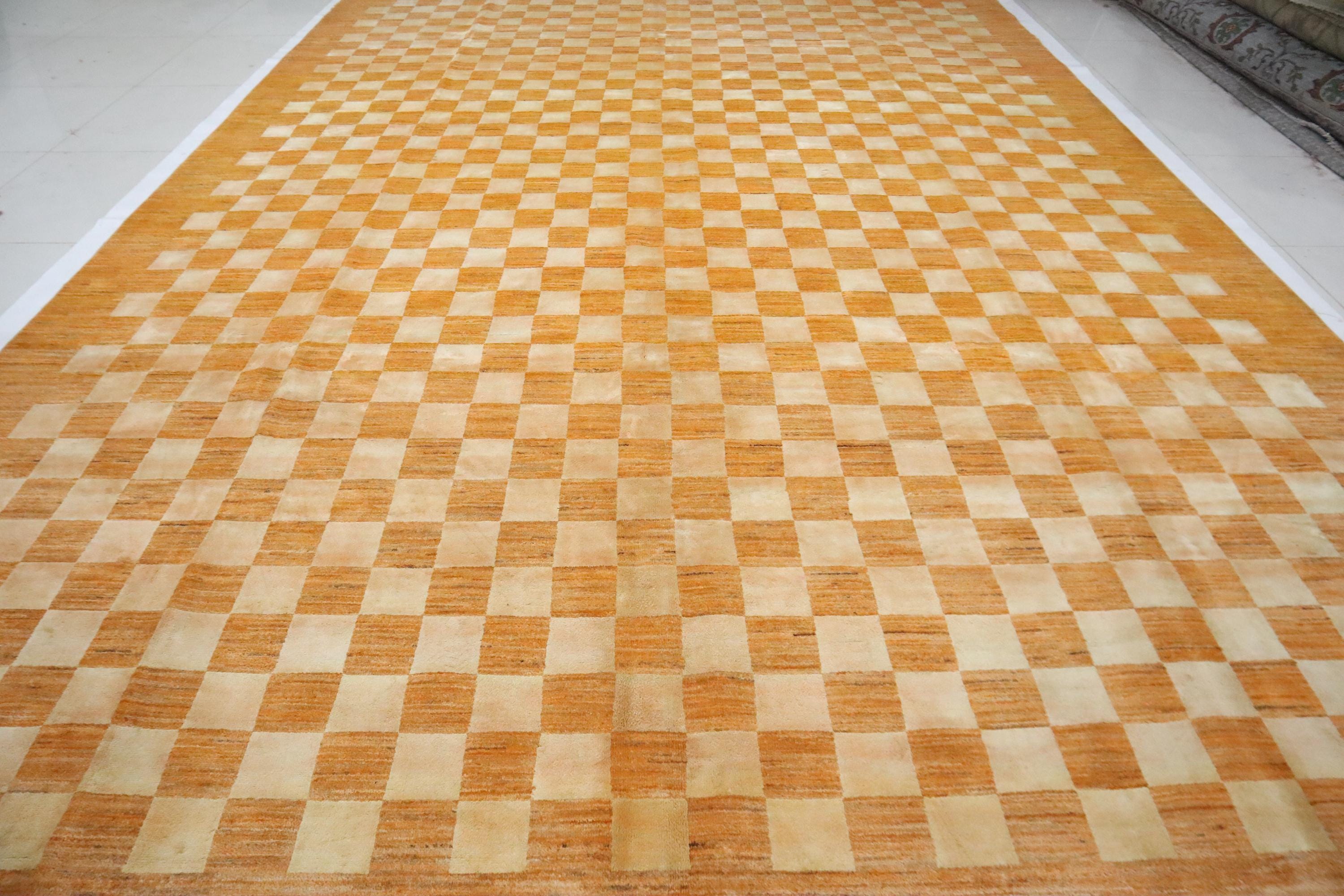 10x15 Gabbeh Area Rug - Golden Yellow Afghan Hand Knotted Check Design Plush Wool Area Rug - Oversize Rug - Living Room Rug - Bedroom Rug