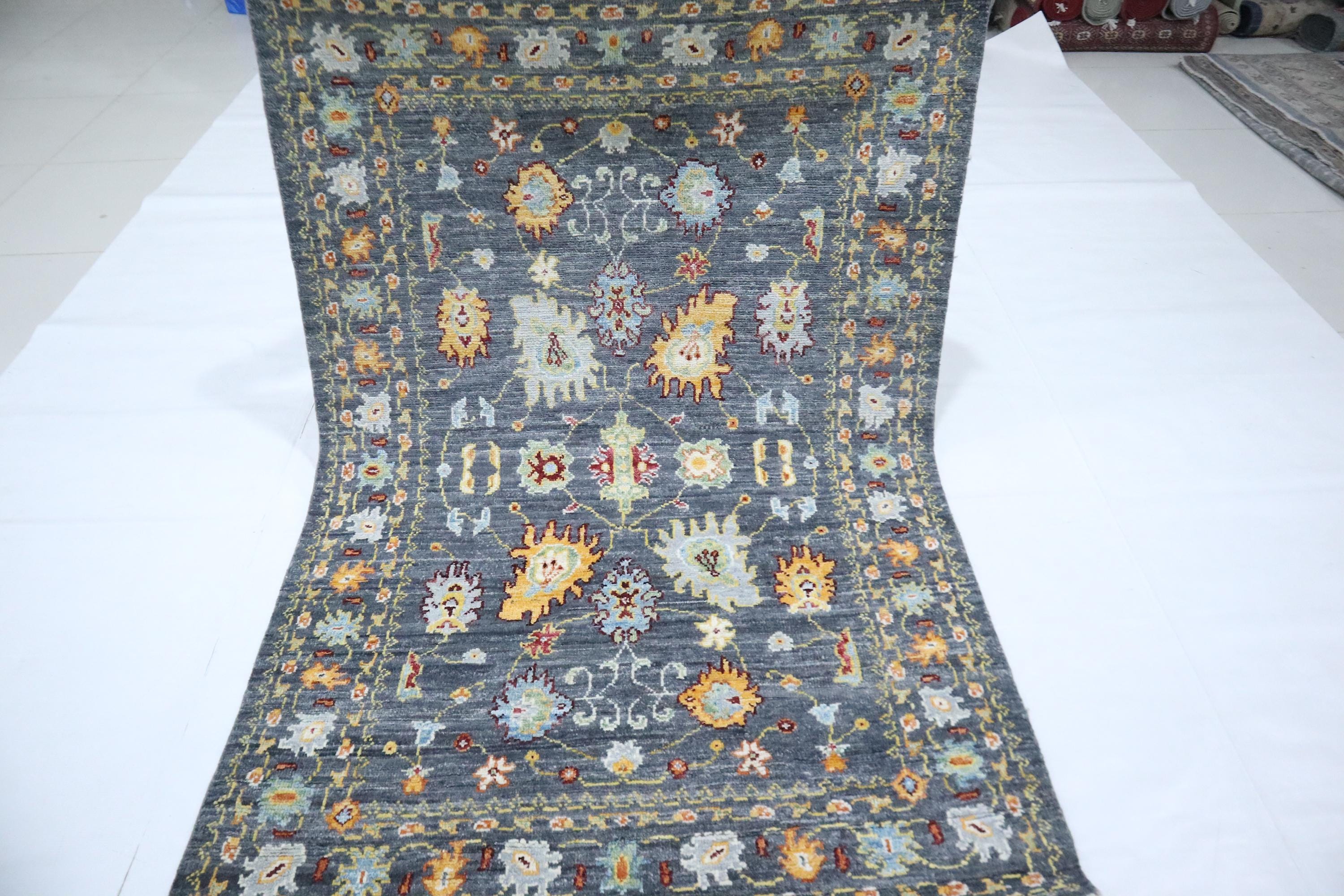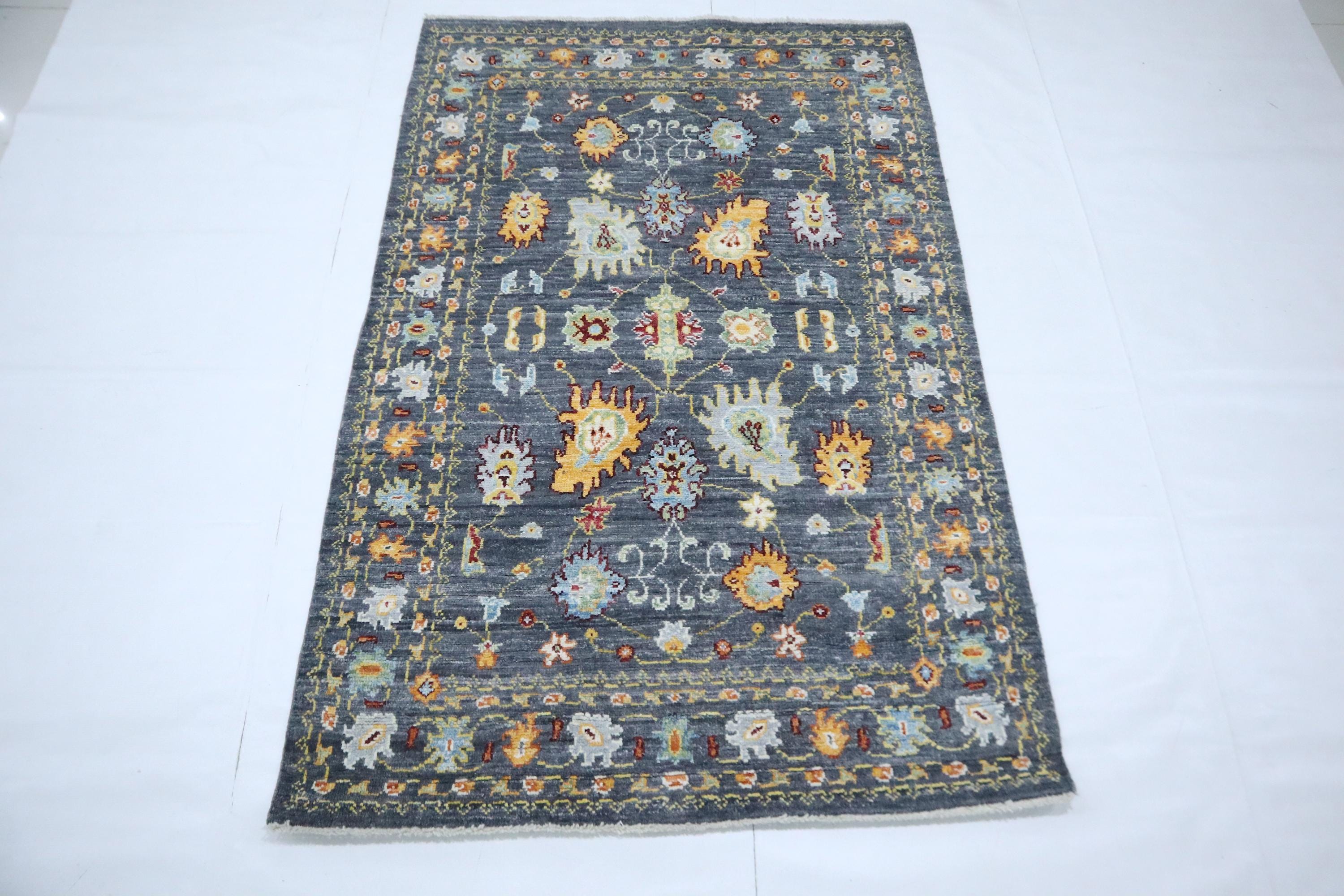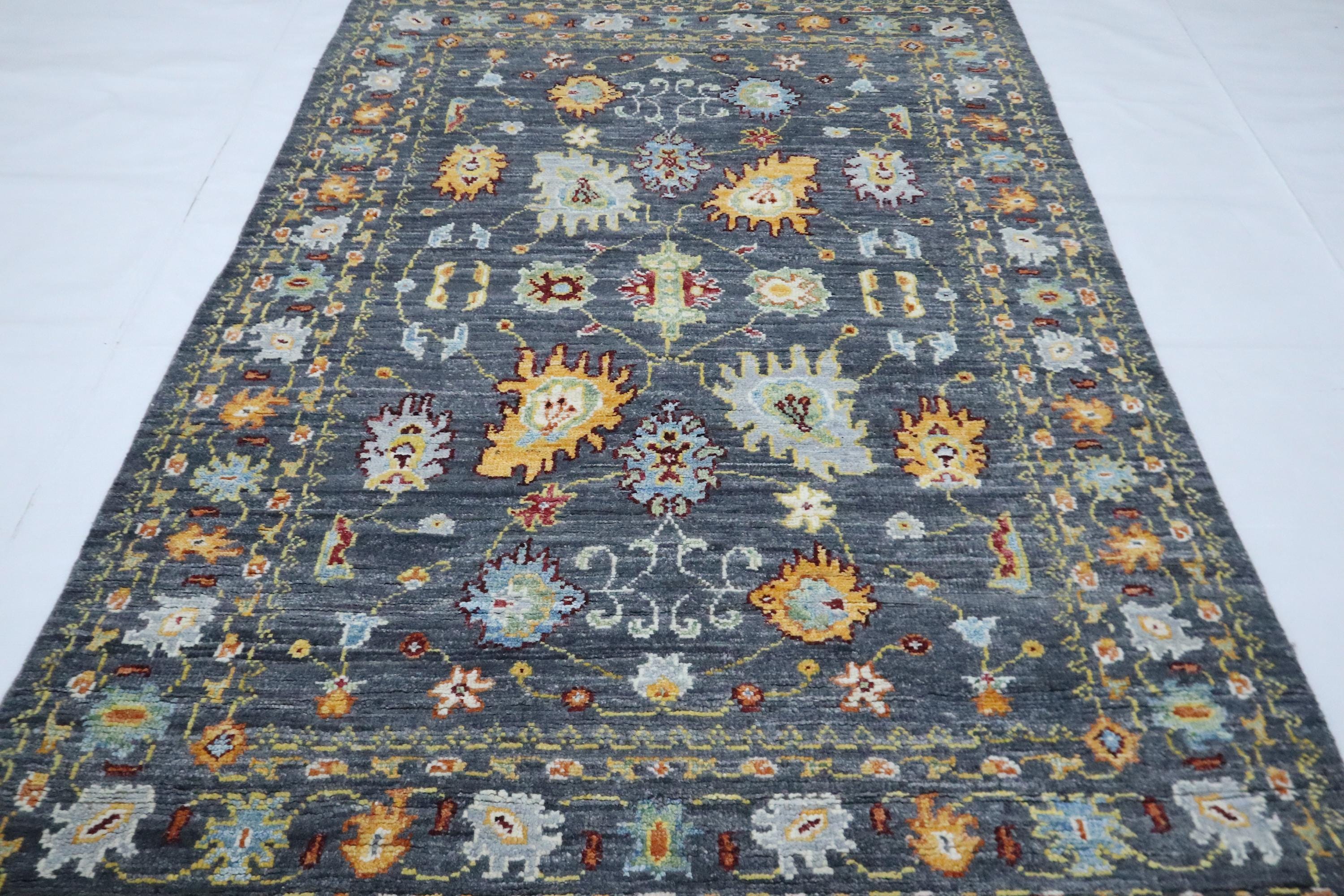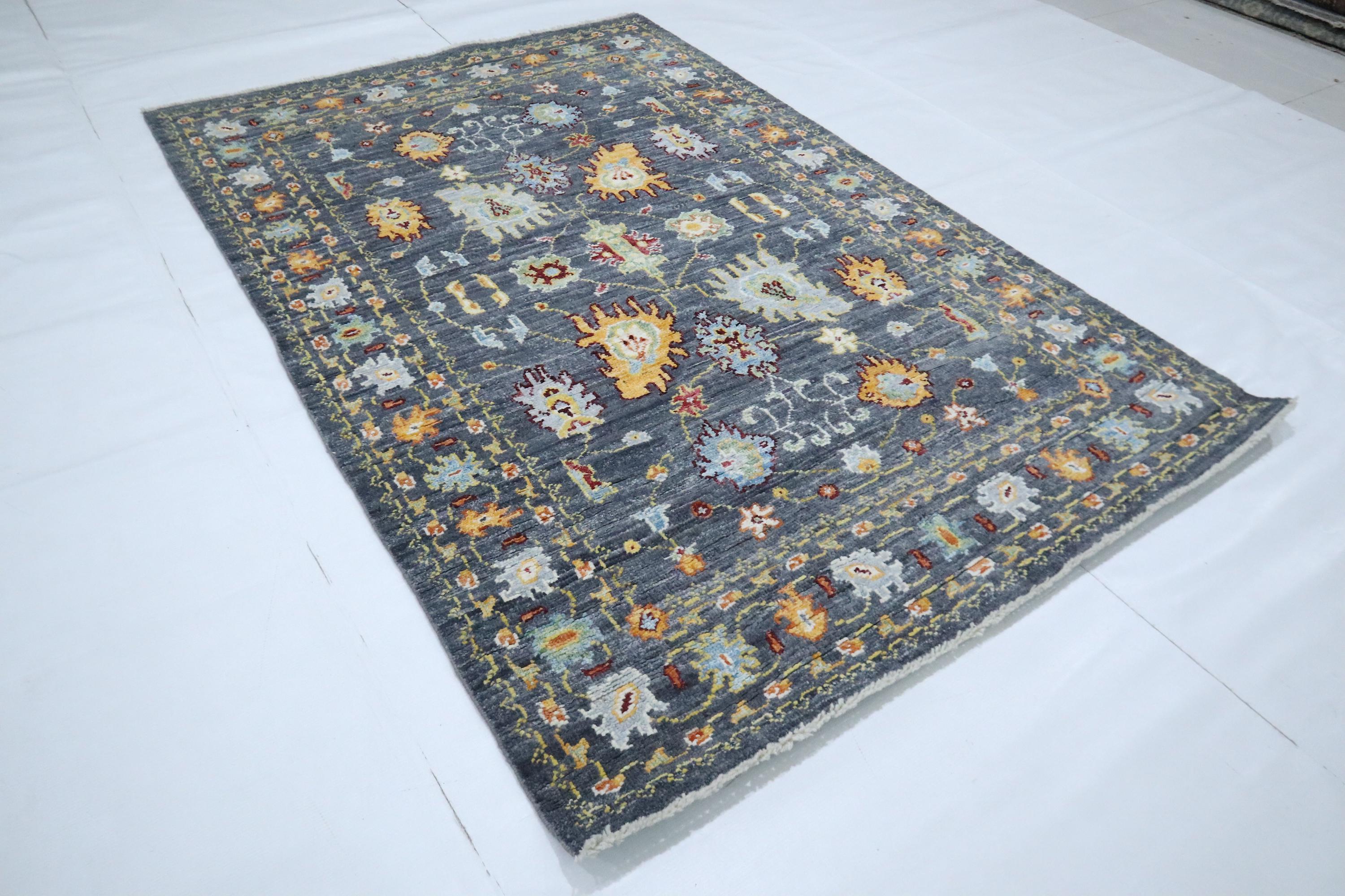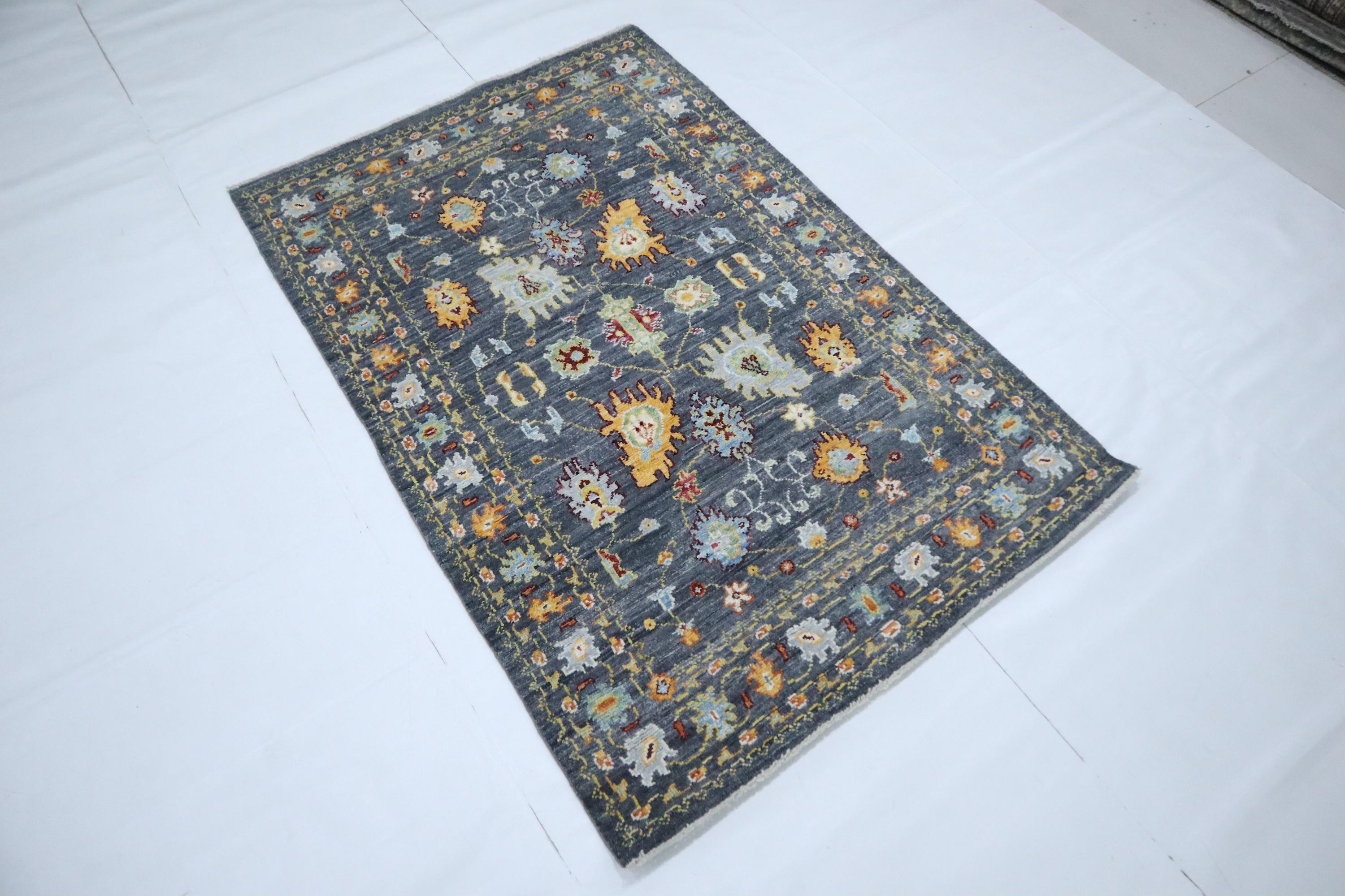 4x6 Ft Oushak Area Rug - Charcoal Gray Turkish Hand Knotted Oriental Soft Wool Rug - Traditional Rug - Kitchen Rug - Foyer Rug - Dorm Rug