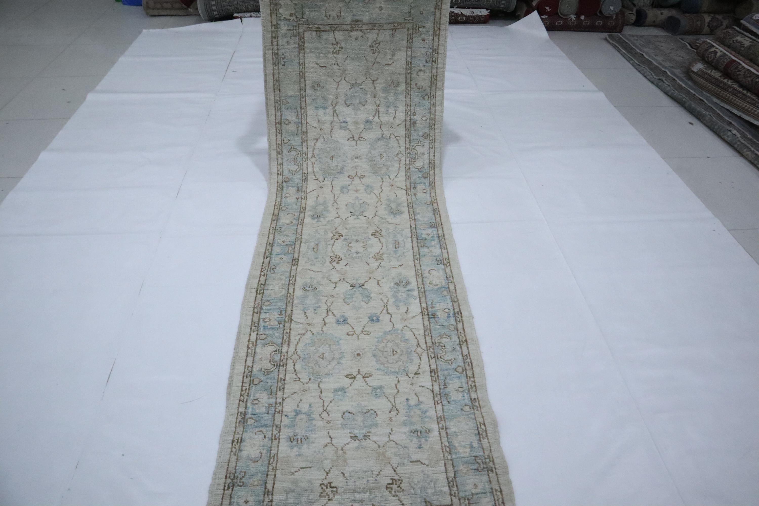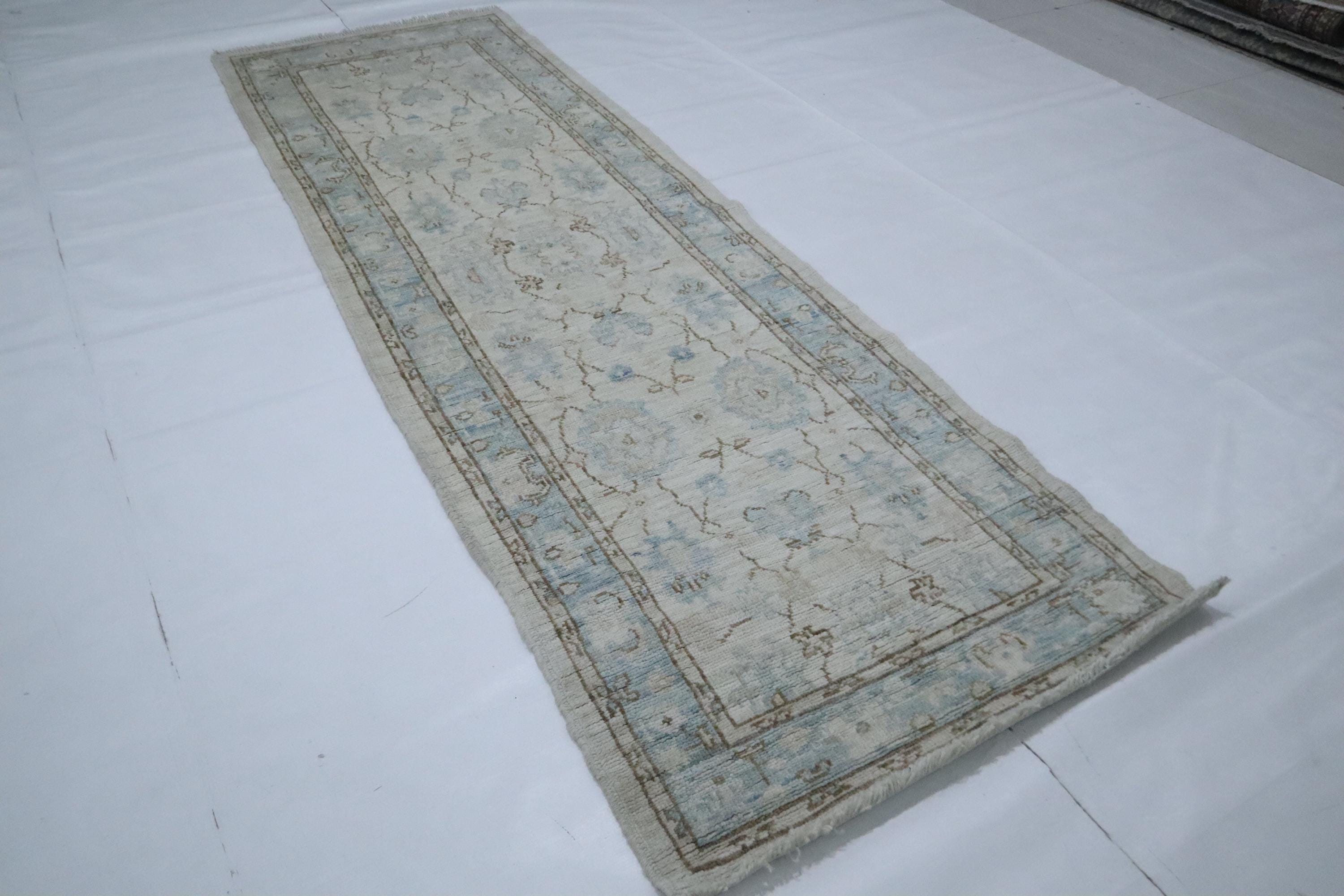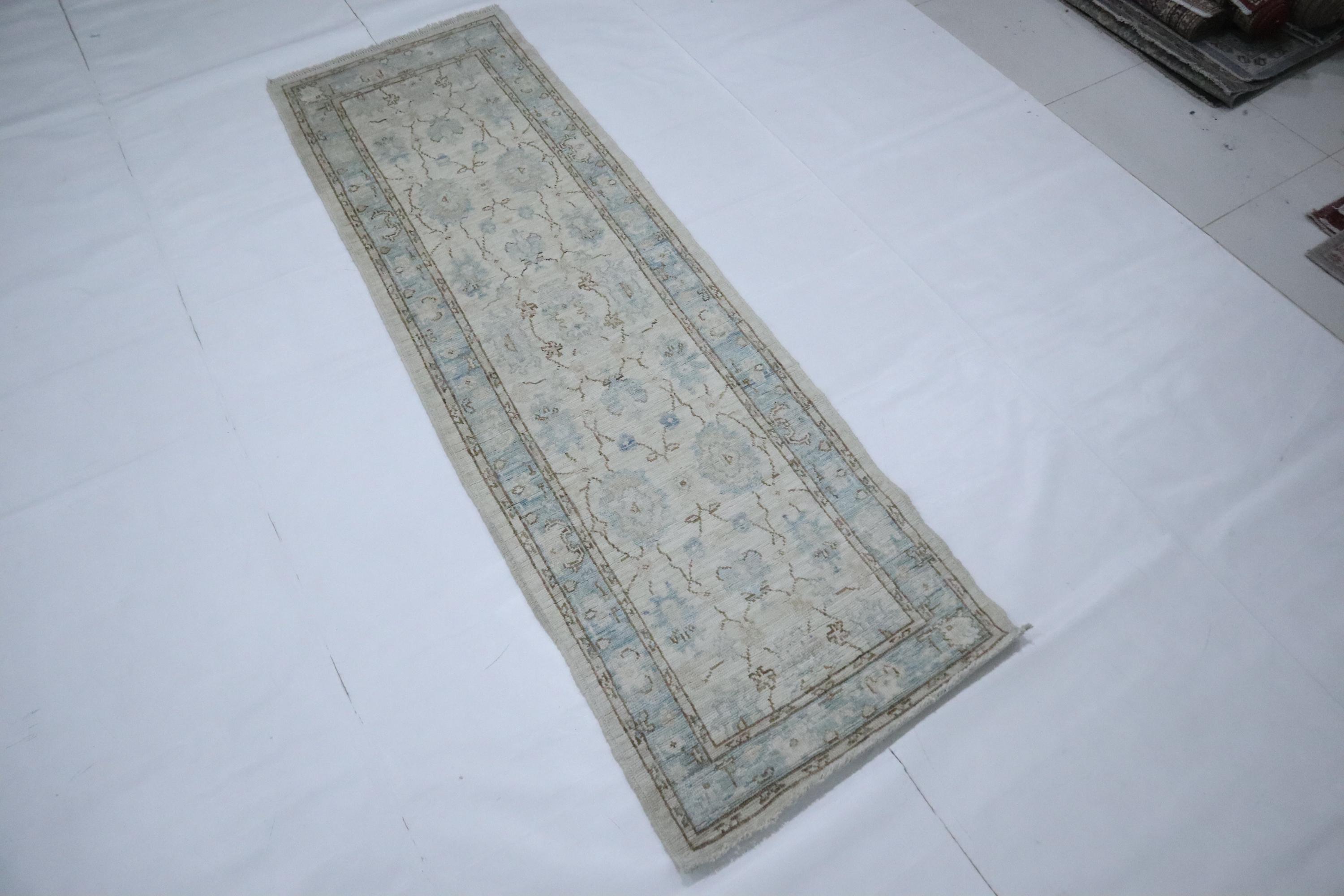 8 Ft Oushak Runner Rug - Beige Turkish Hand Knotted Traditional Soft Wool Runner - Oriental Runner - Entryway Runner - Bedroom Runner