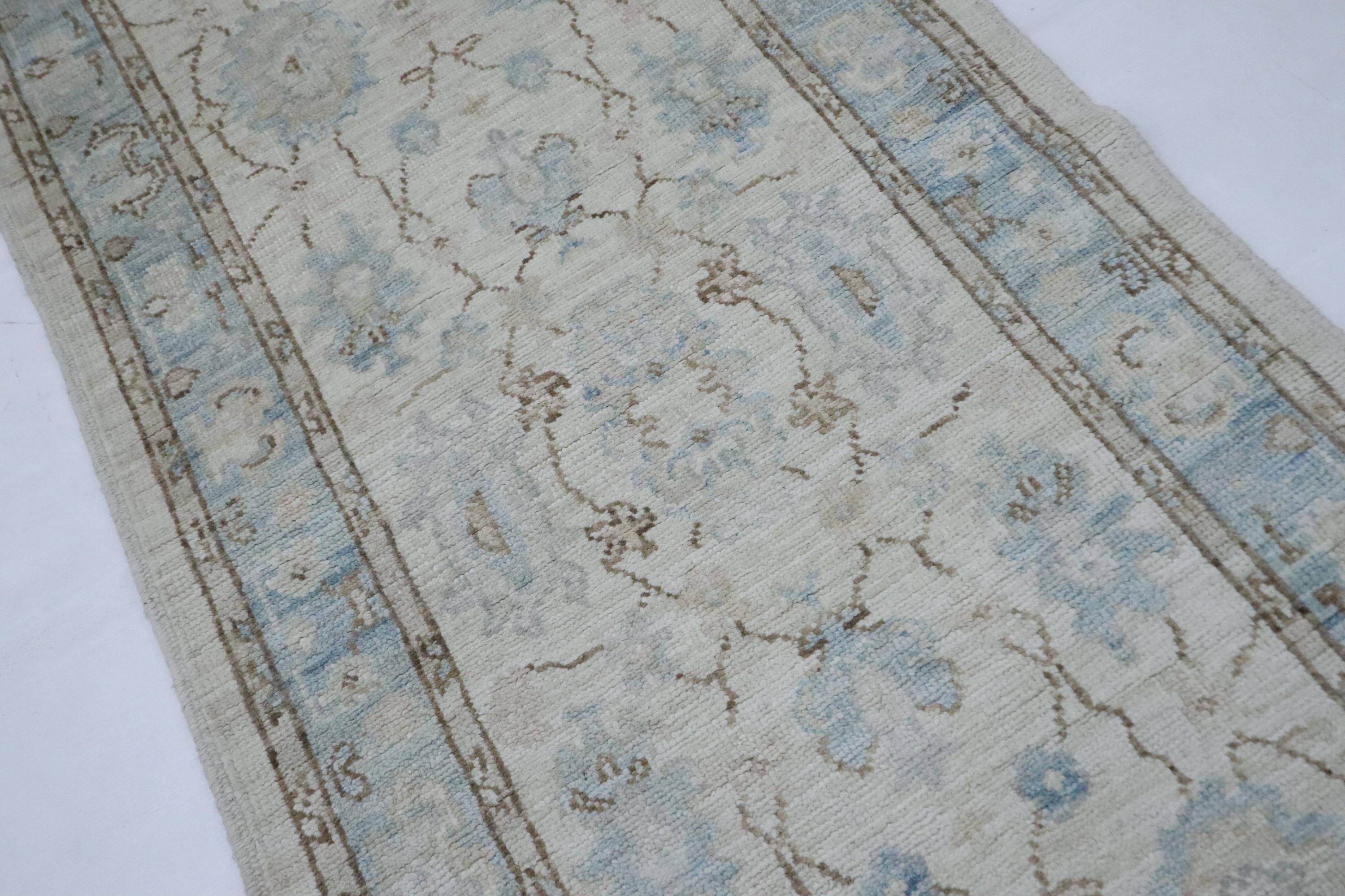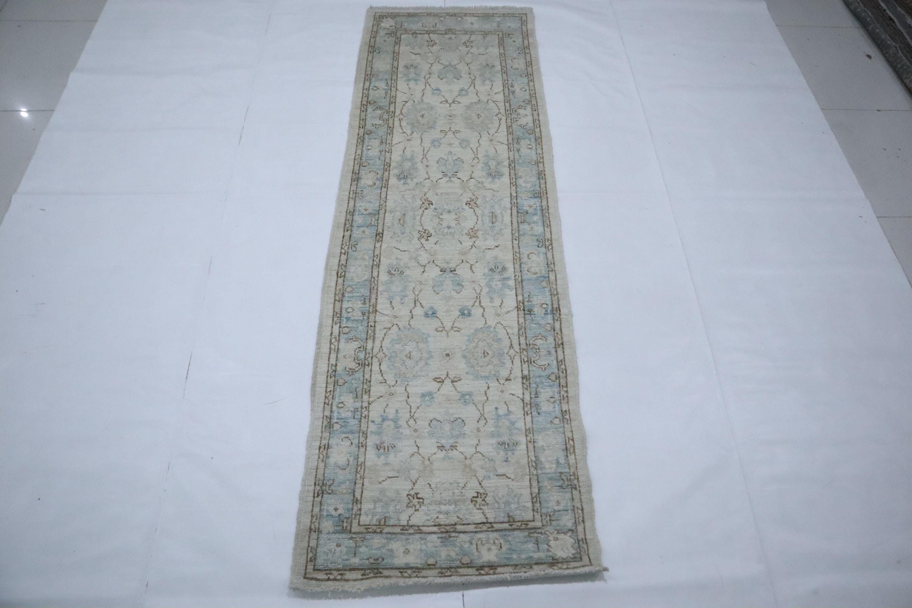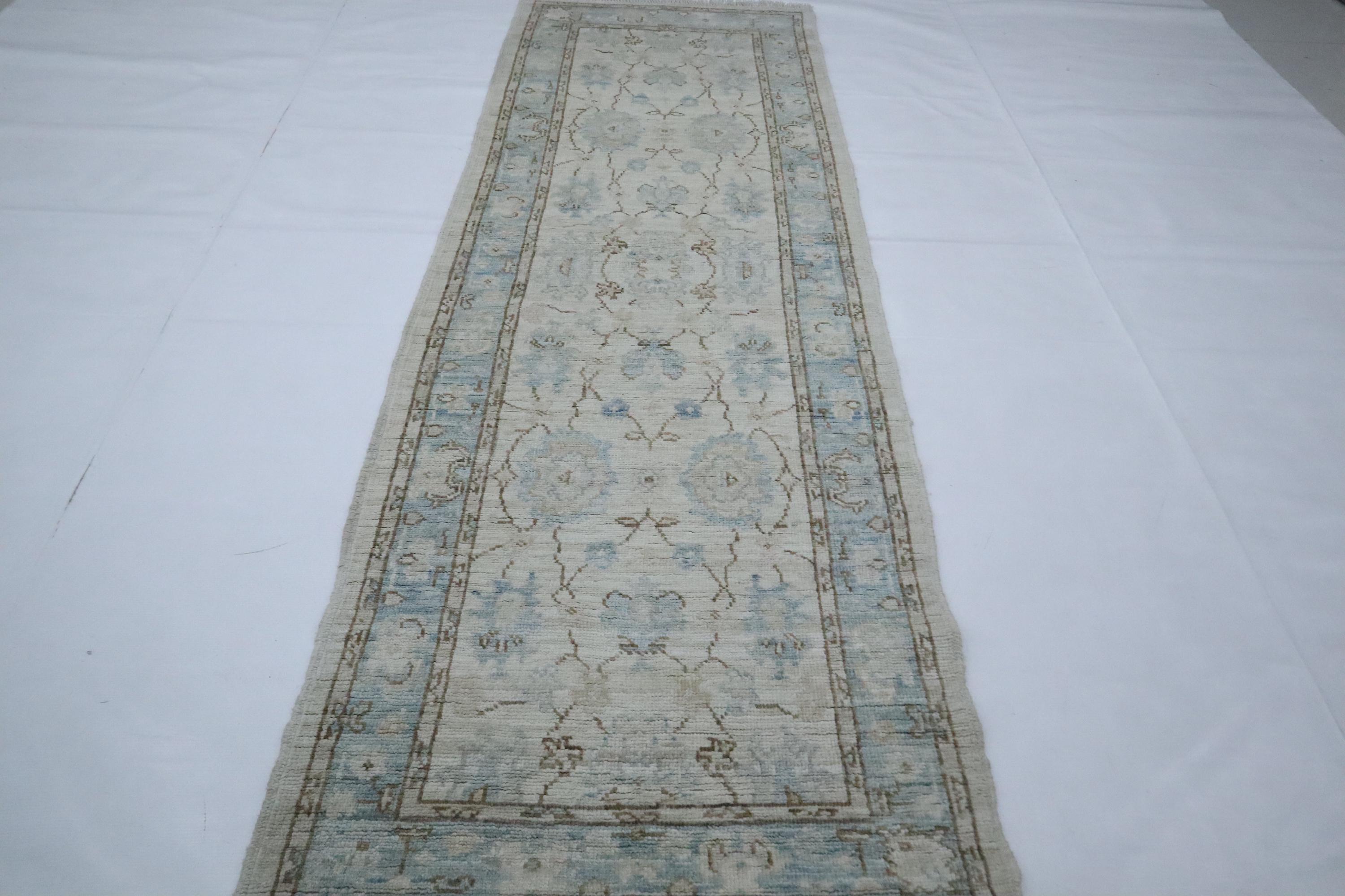 8 Ft Oushak Runner Rug - Beige Turkish Hand Knotted Traditional Soft Wool Runner - Oriental Runner - Entryway Runner - Bedroom Runner