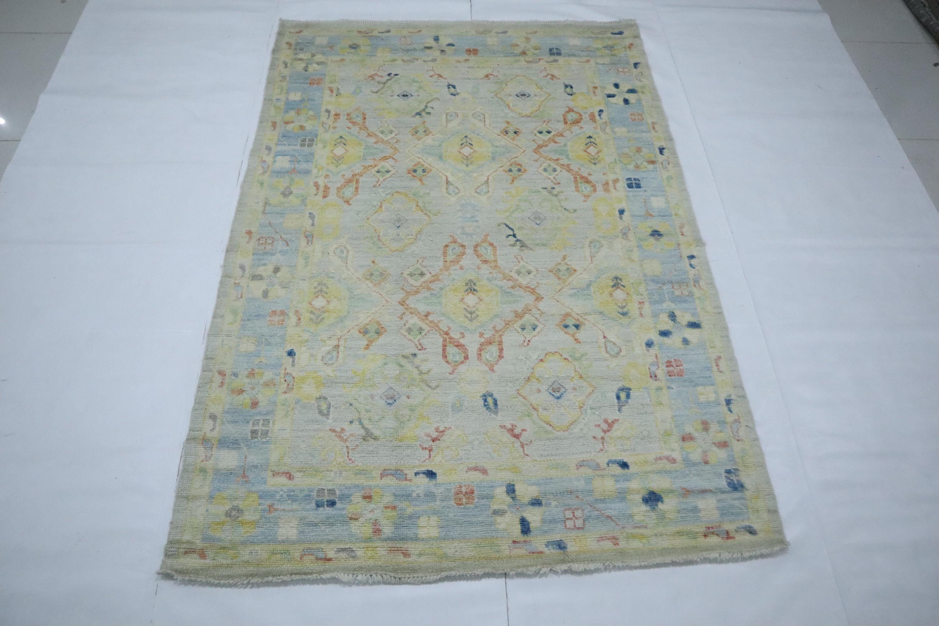 Oushak 5x7 Area Rug - Gray Turkish Hand Knotted Floral Soft Wool Rug - Traditional Rug - Oriental Rug - Bedroom Rug - Kitchen Rug - Wool Rug