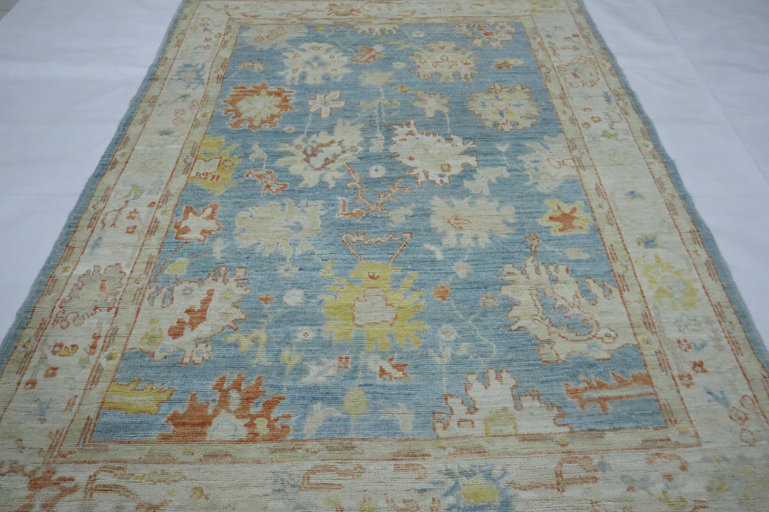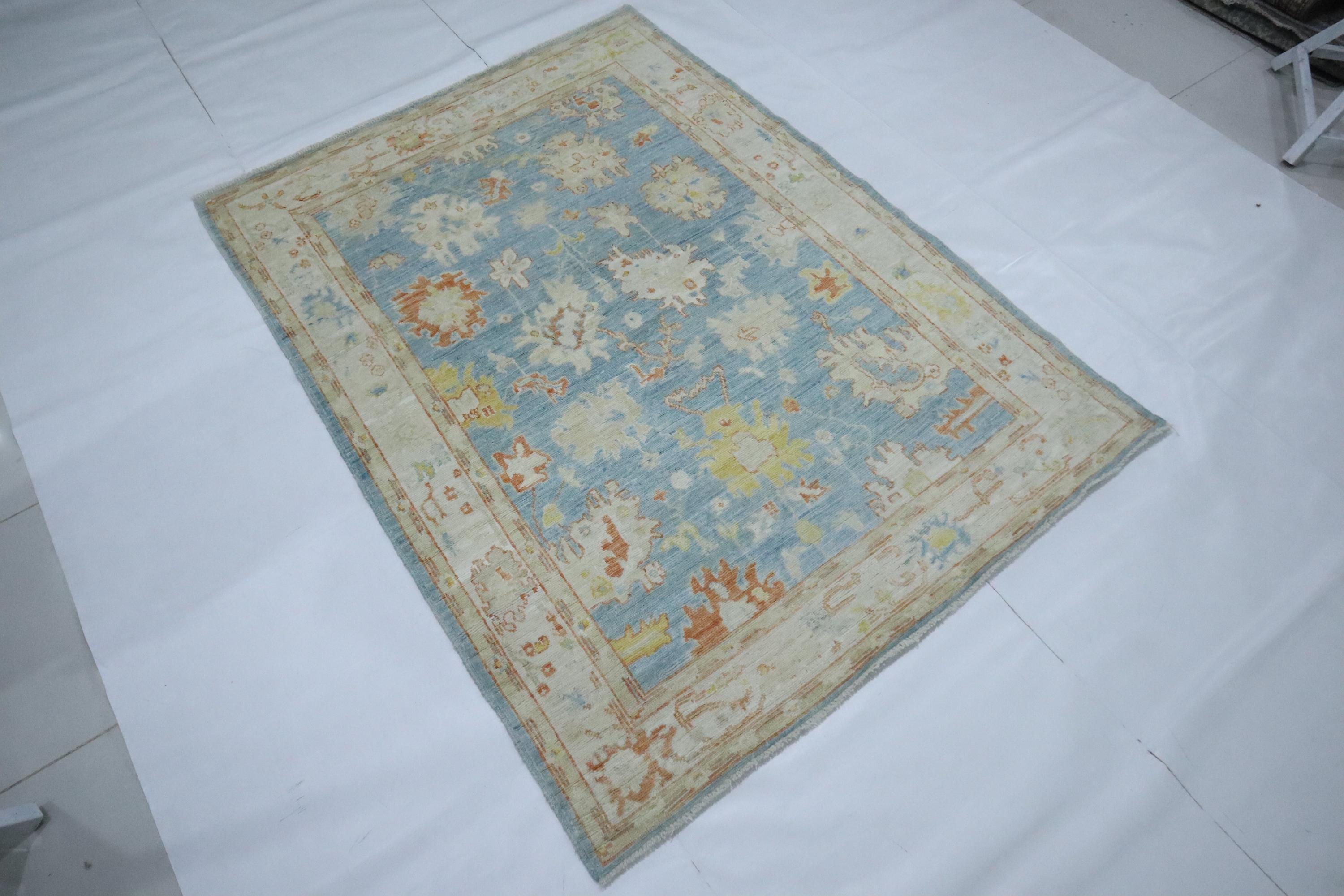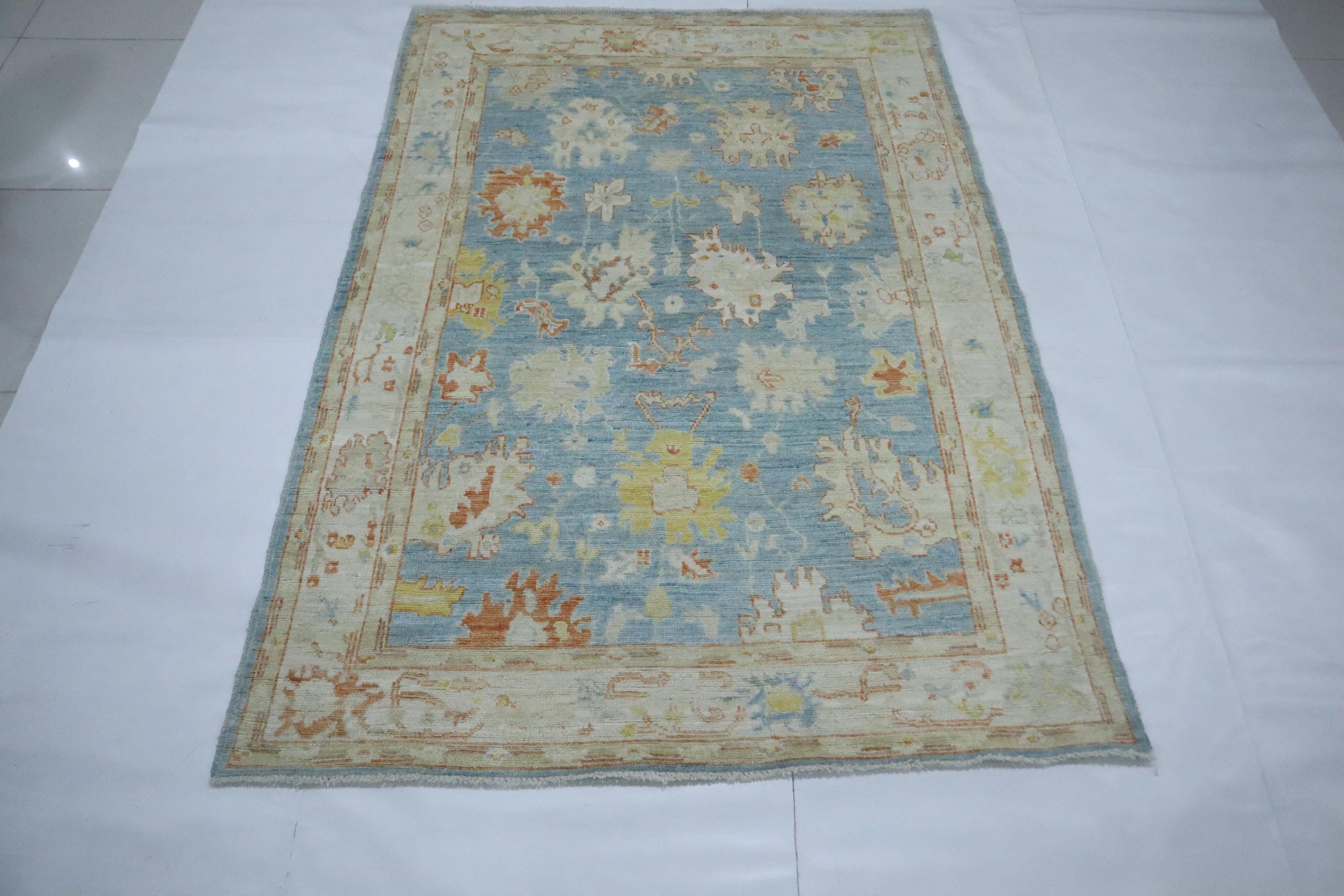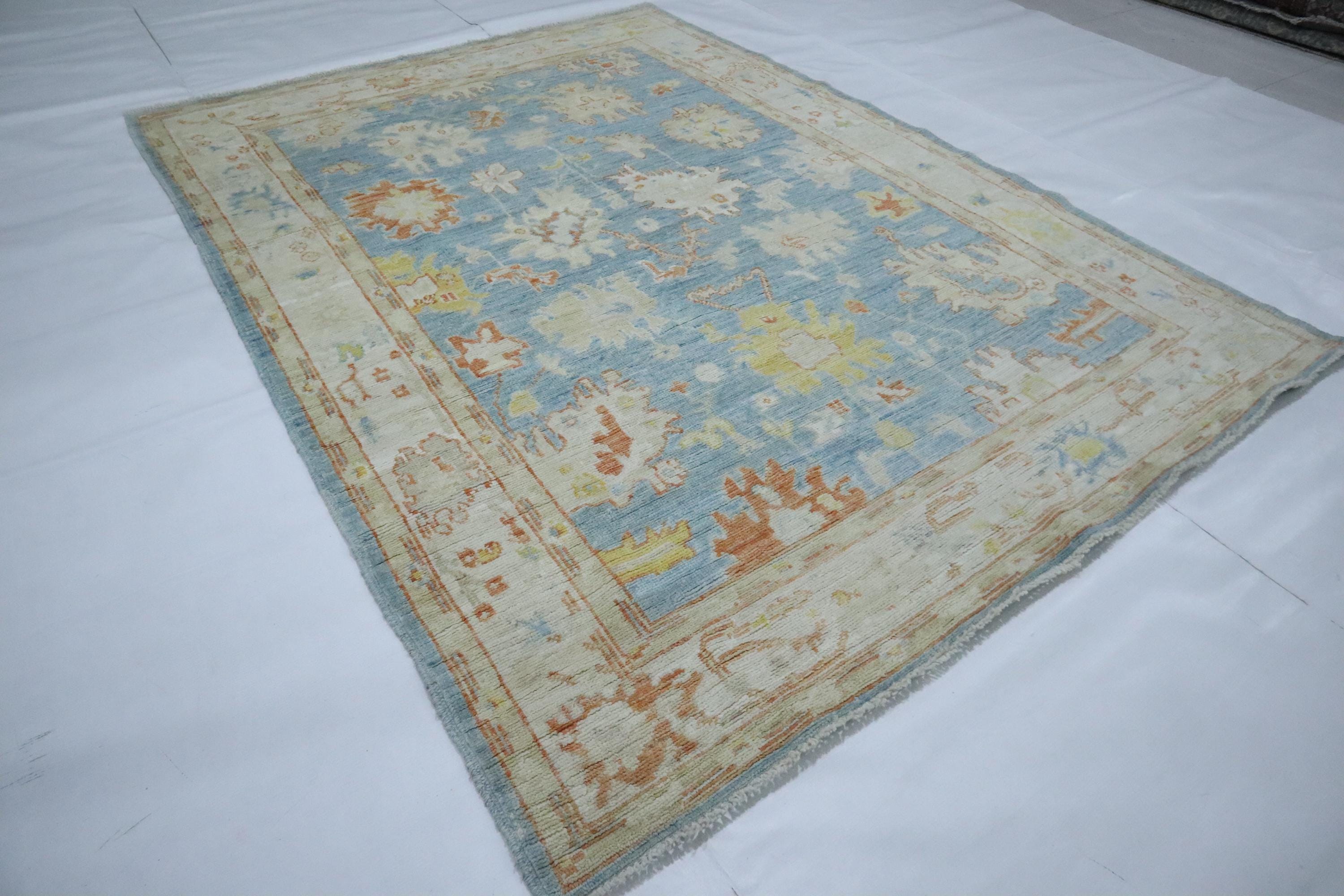 5x7 Oushak Area Rug - Soft Blue Turkish Handmade Floral Soft Wool Rug - Oriental Rug - Traditional Rug - Pastel Color Rug - Kitchen Rug
