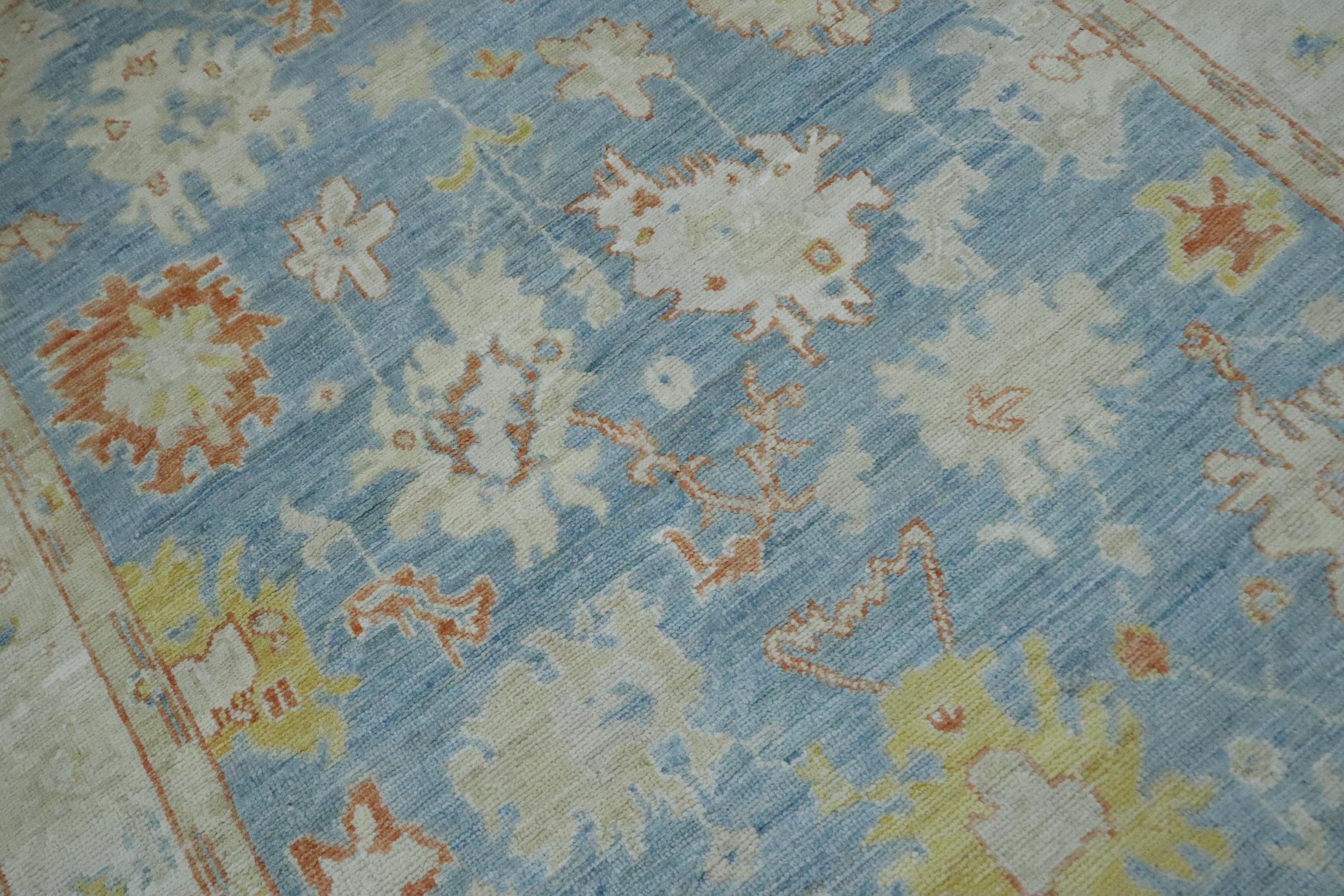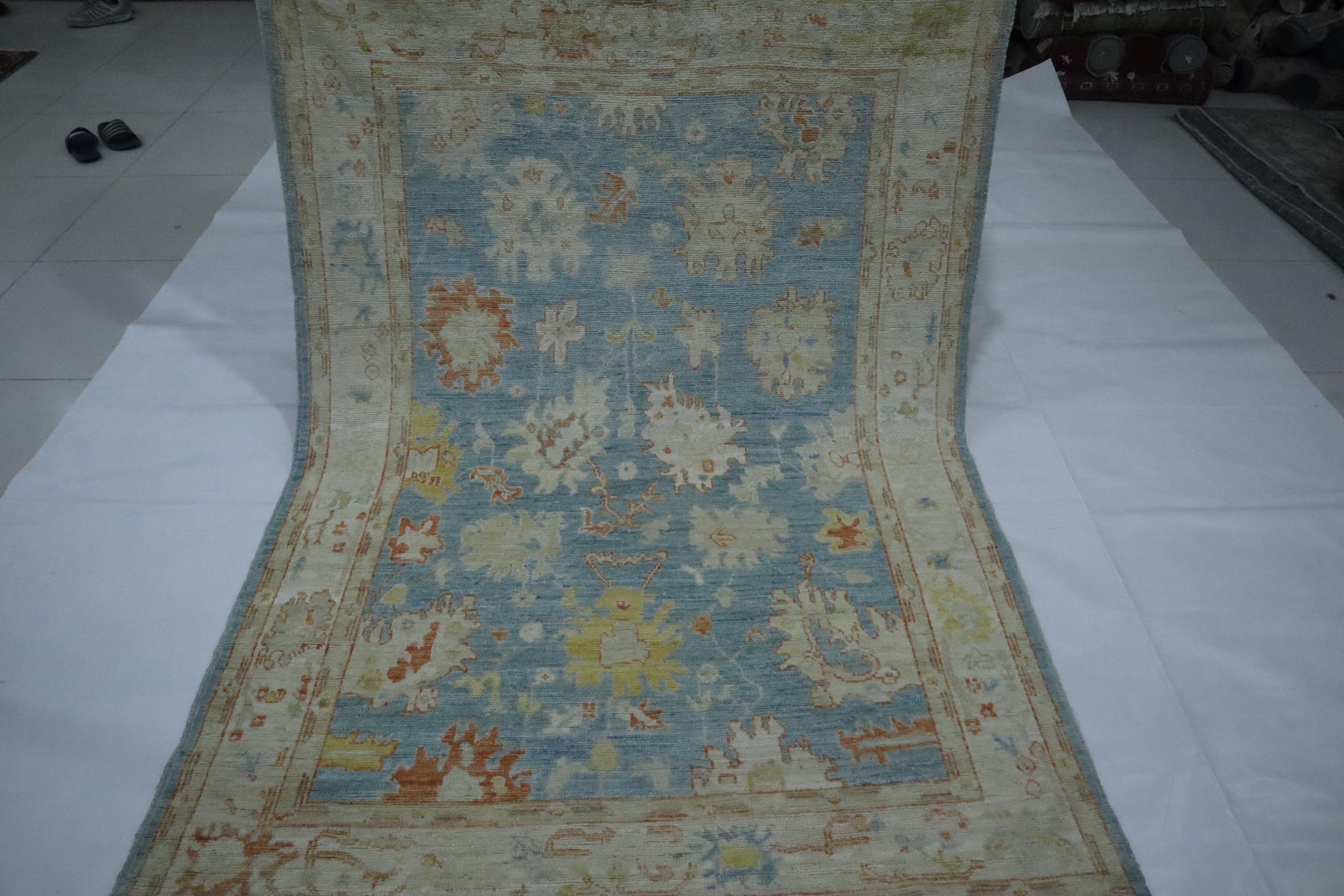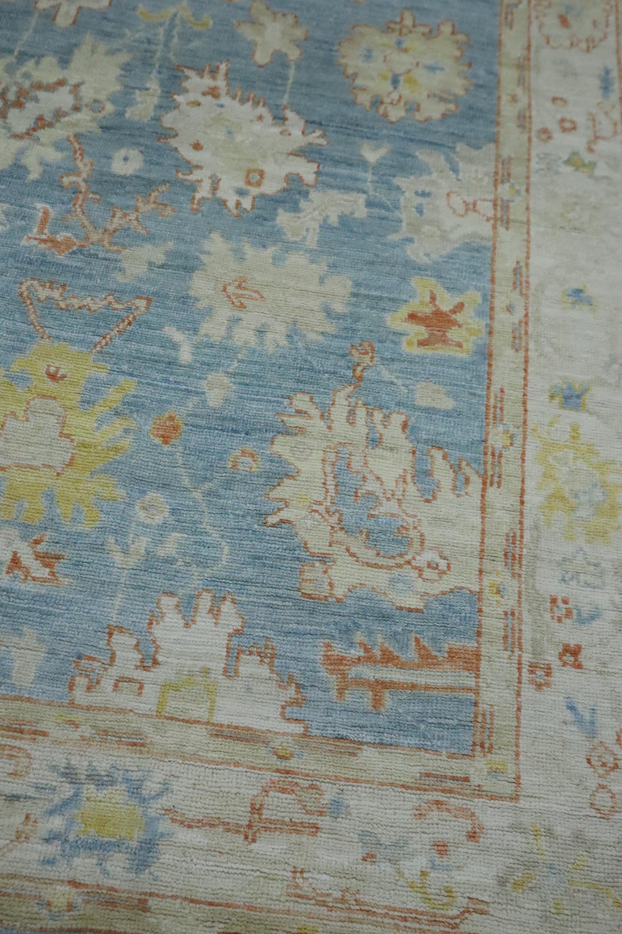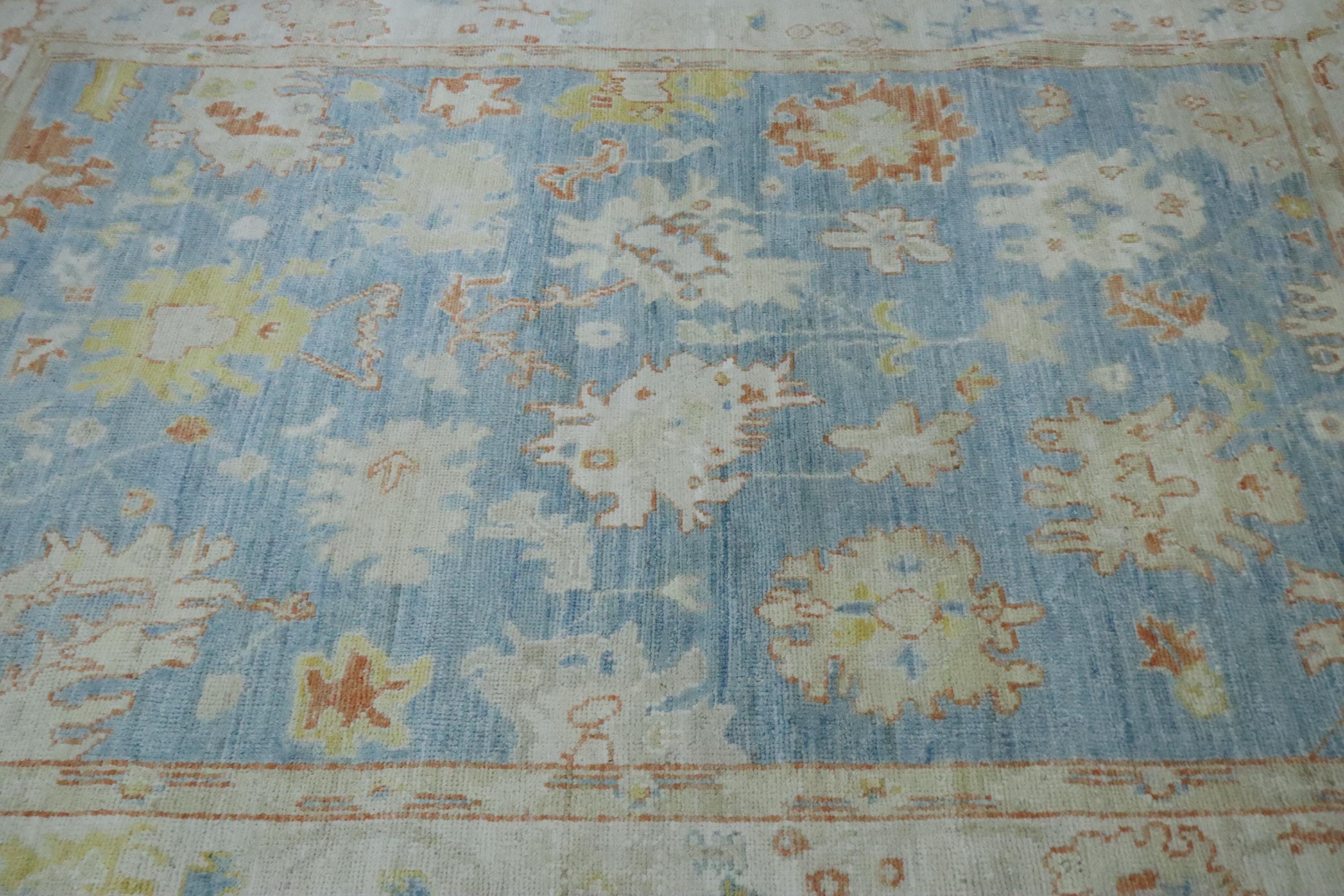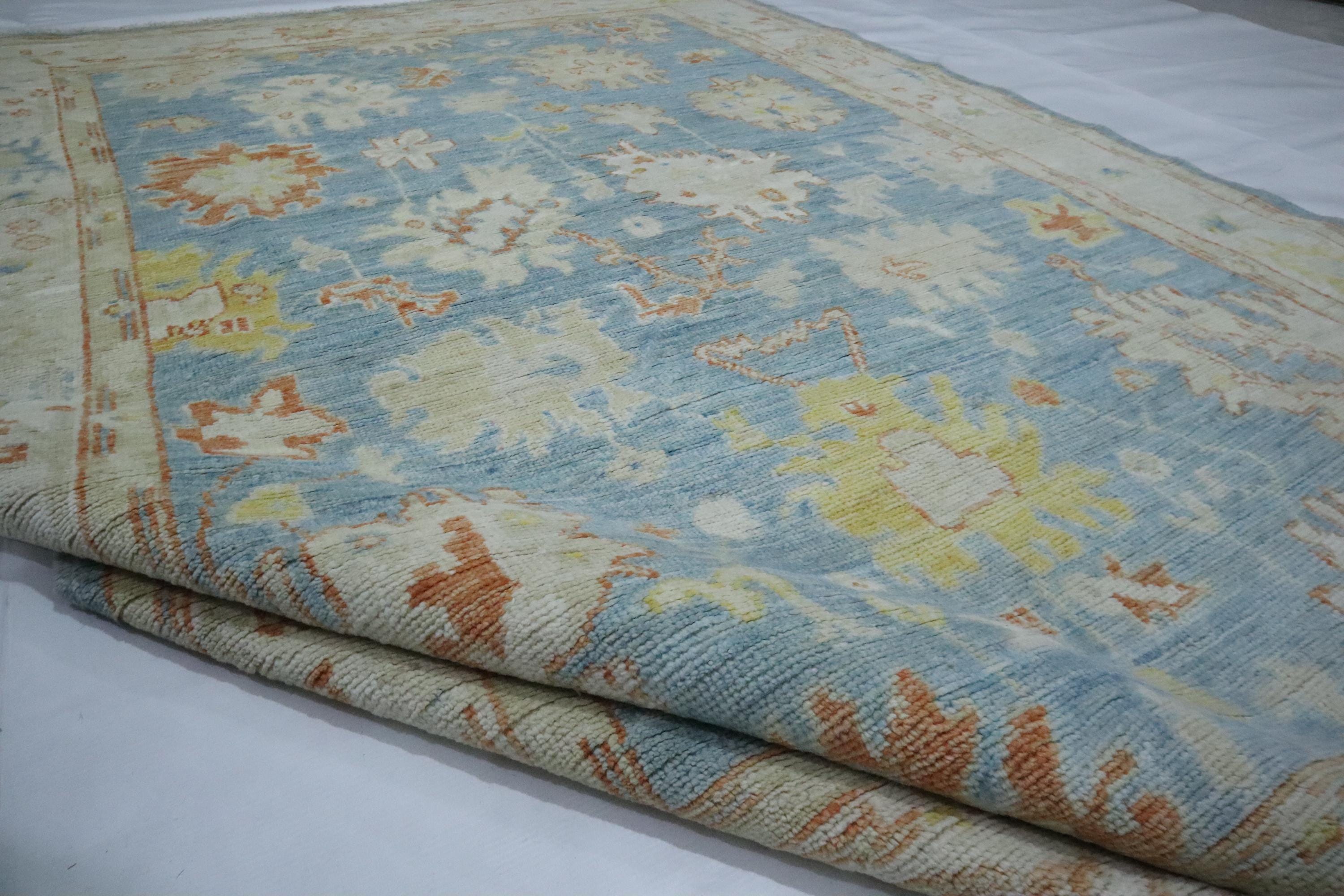 5x7 Oushak Area Rug - Soft Blue Turkish Handmade Floral Soft Wool Rug - Oriental Rug - Traditional Rug - Pastel Color Rug - Kitchen Rug