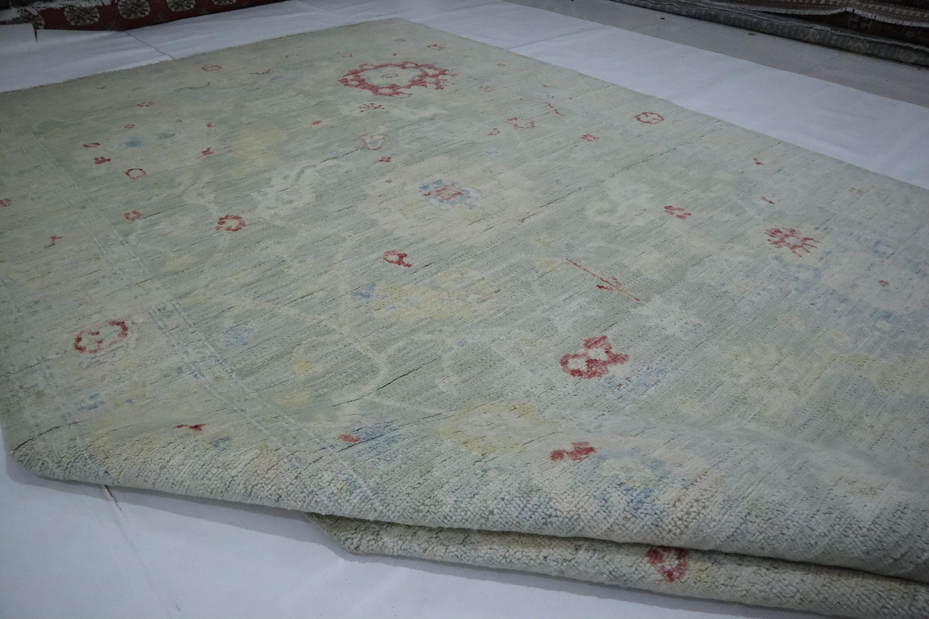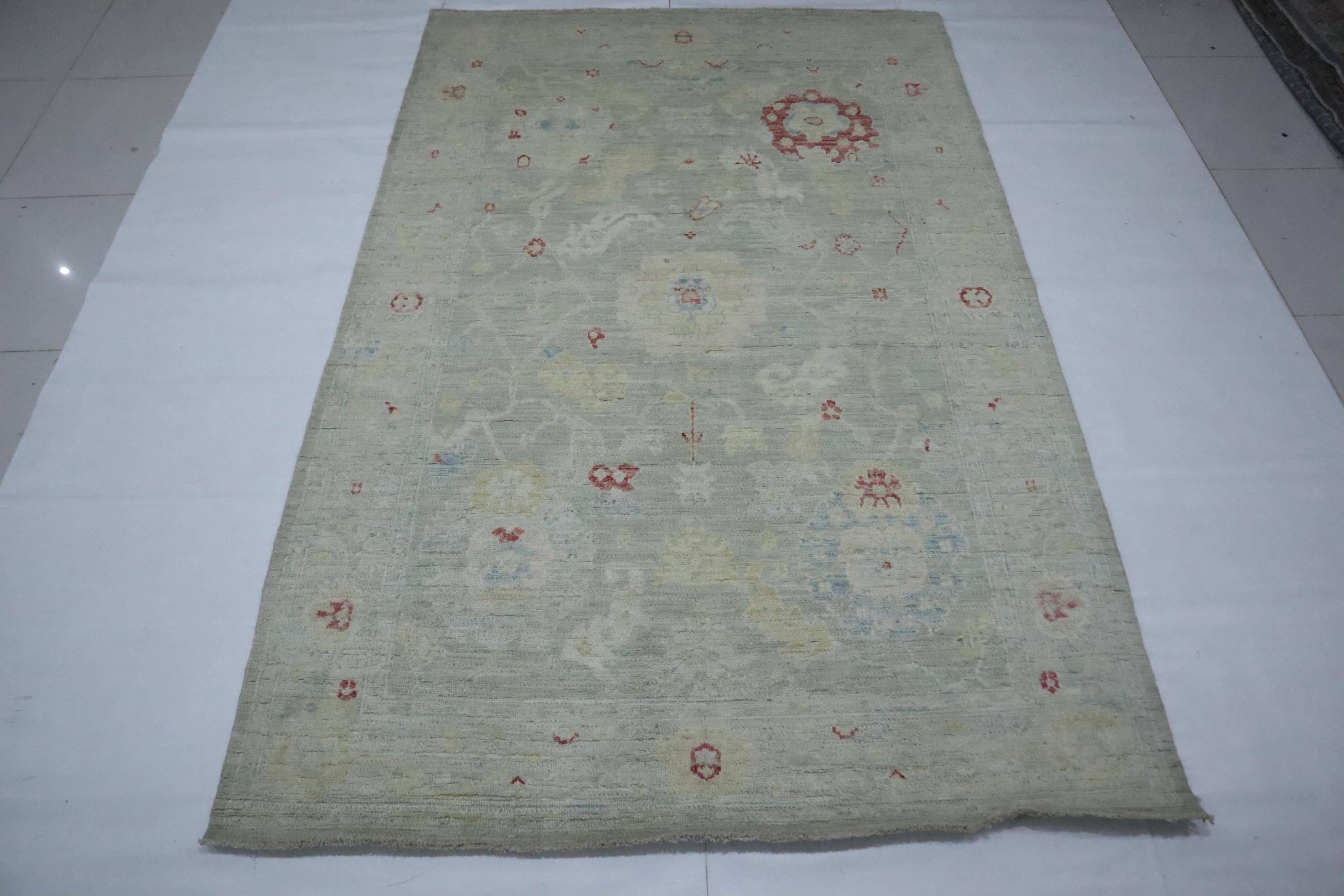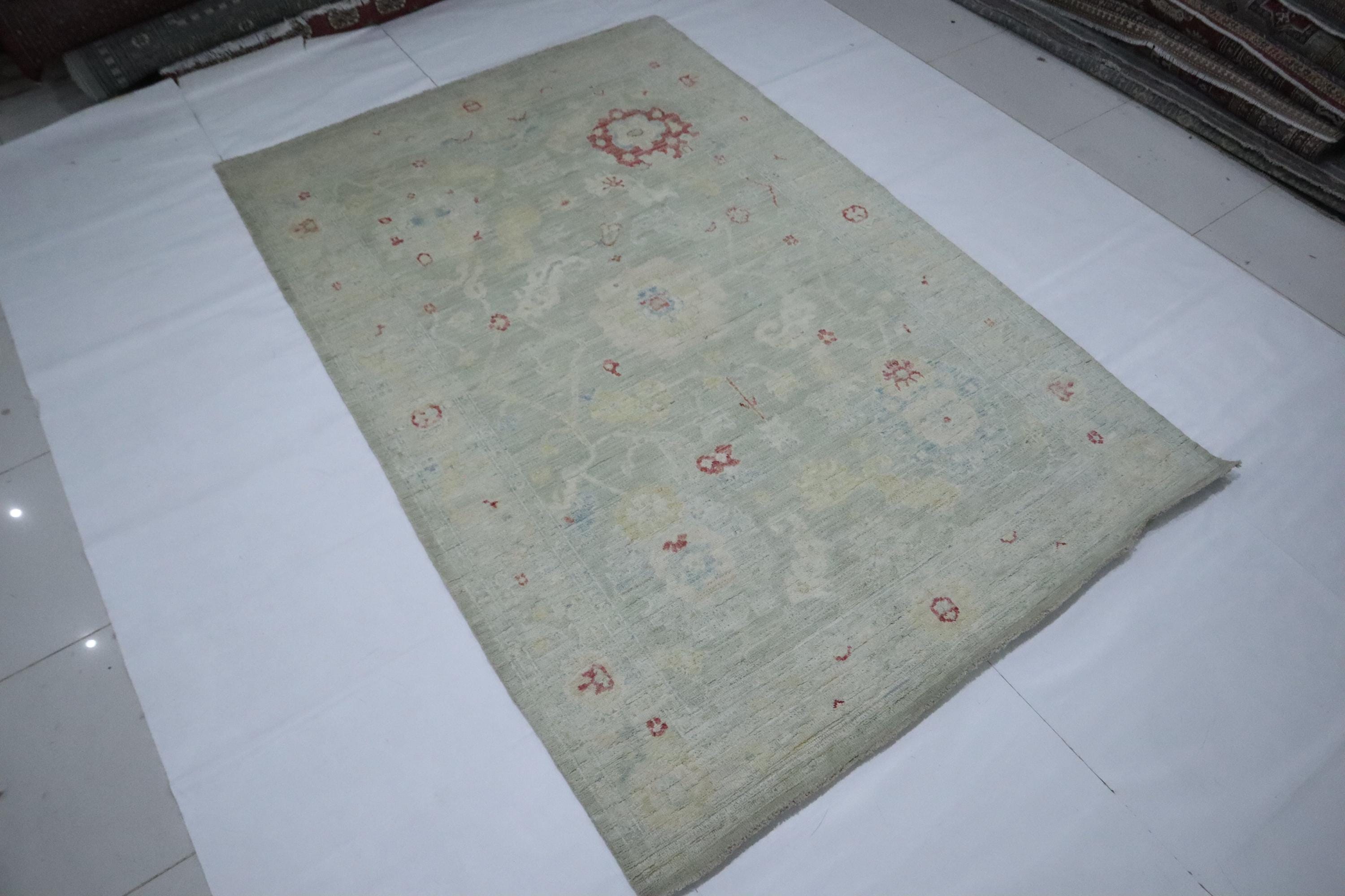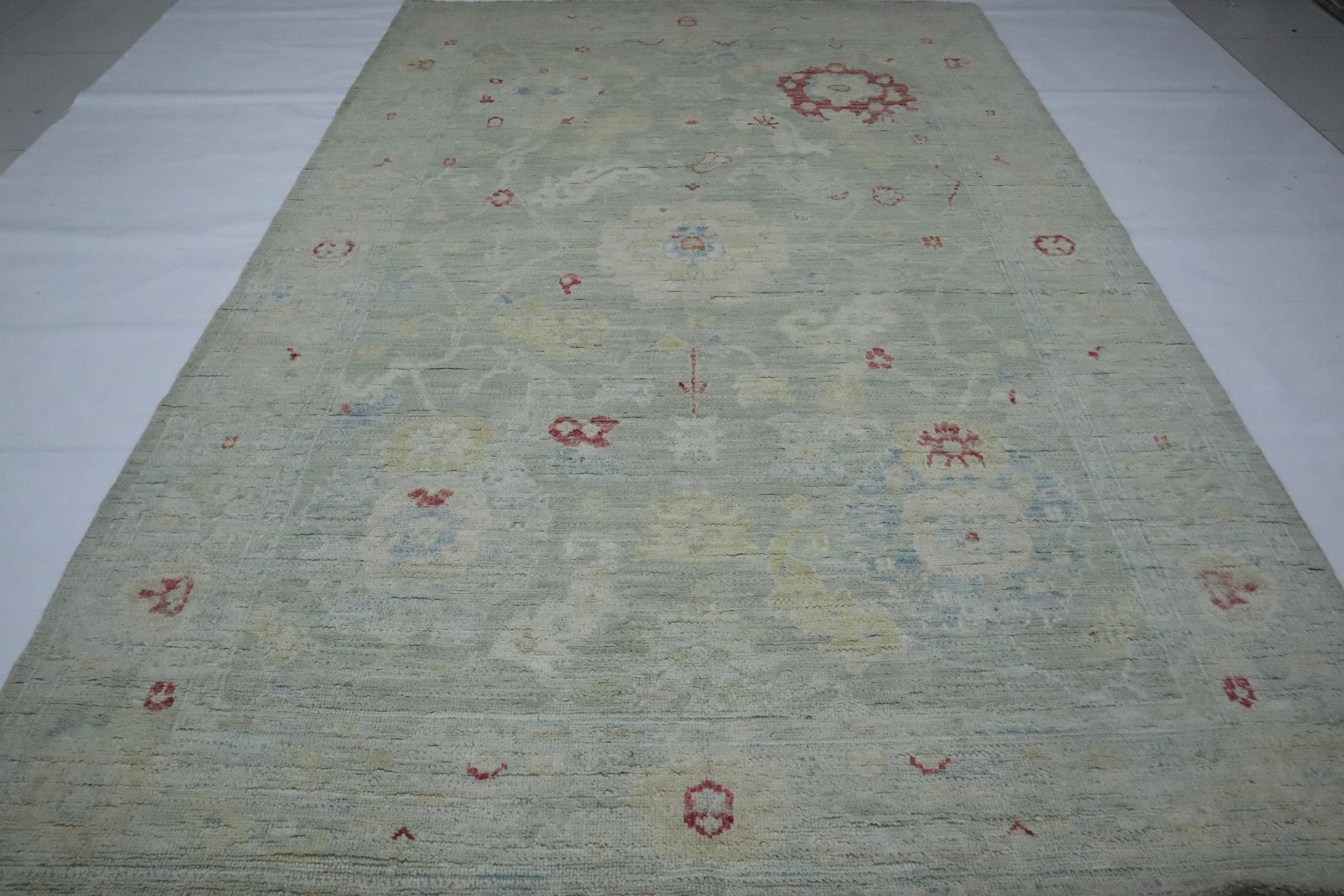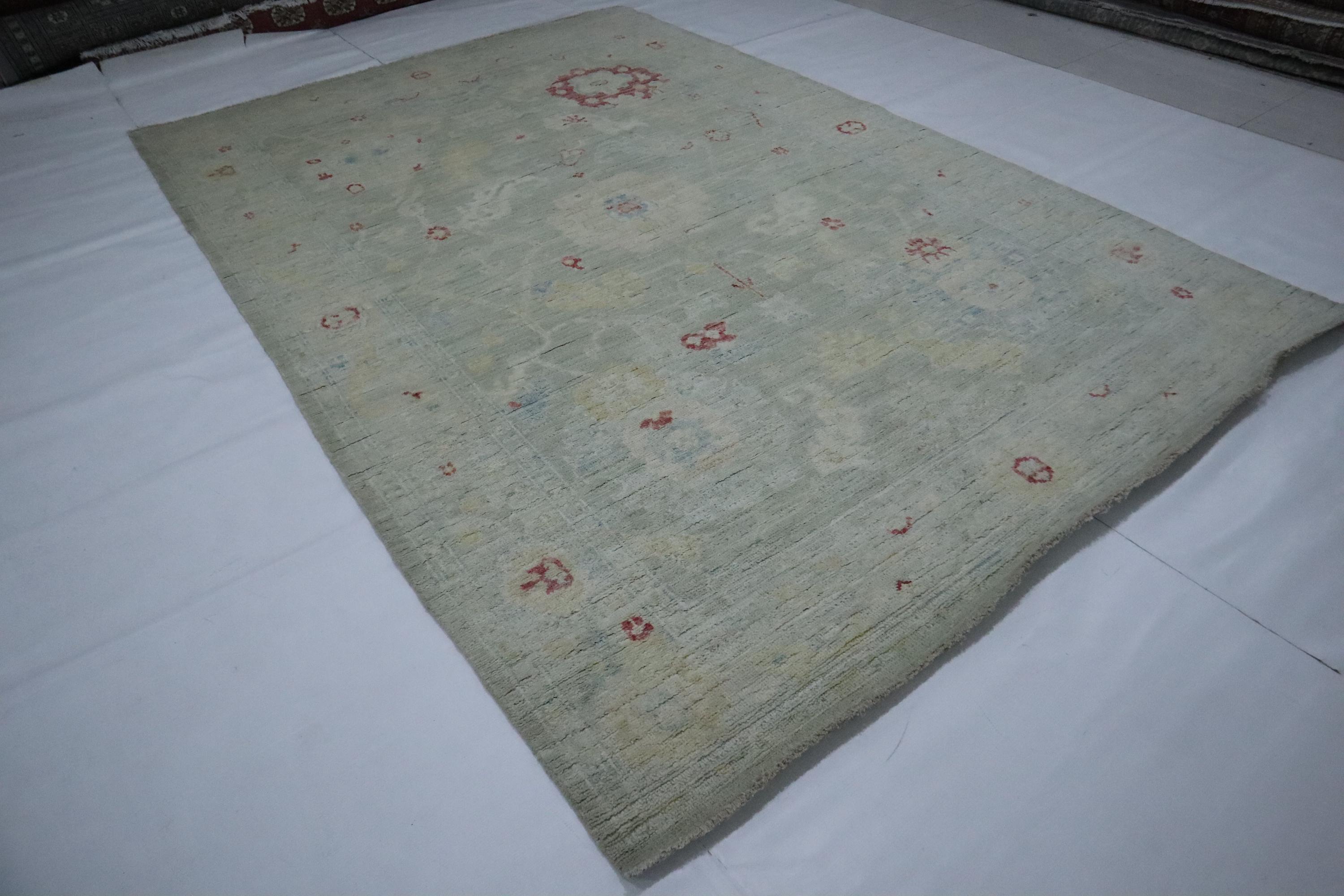 6x9 Ft Muted Oushak Area Rug - Muted Greenish Gray Turkish Handmade Oriental Soft Wool Rug - Traditional Rug - Bedroom Rug - Living Room Rug