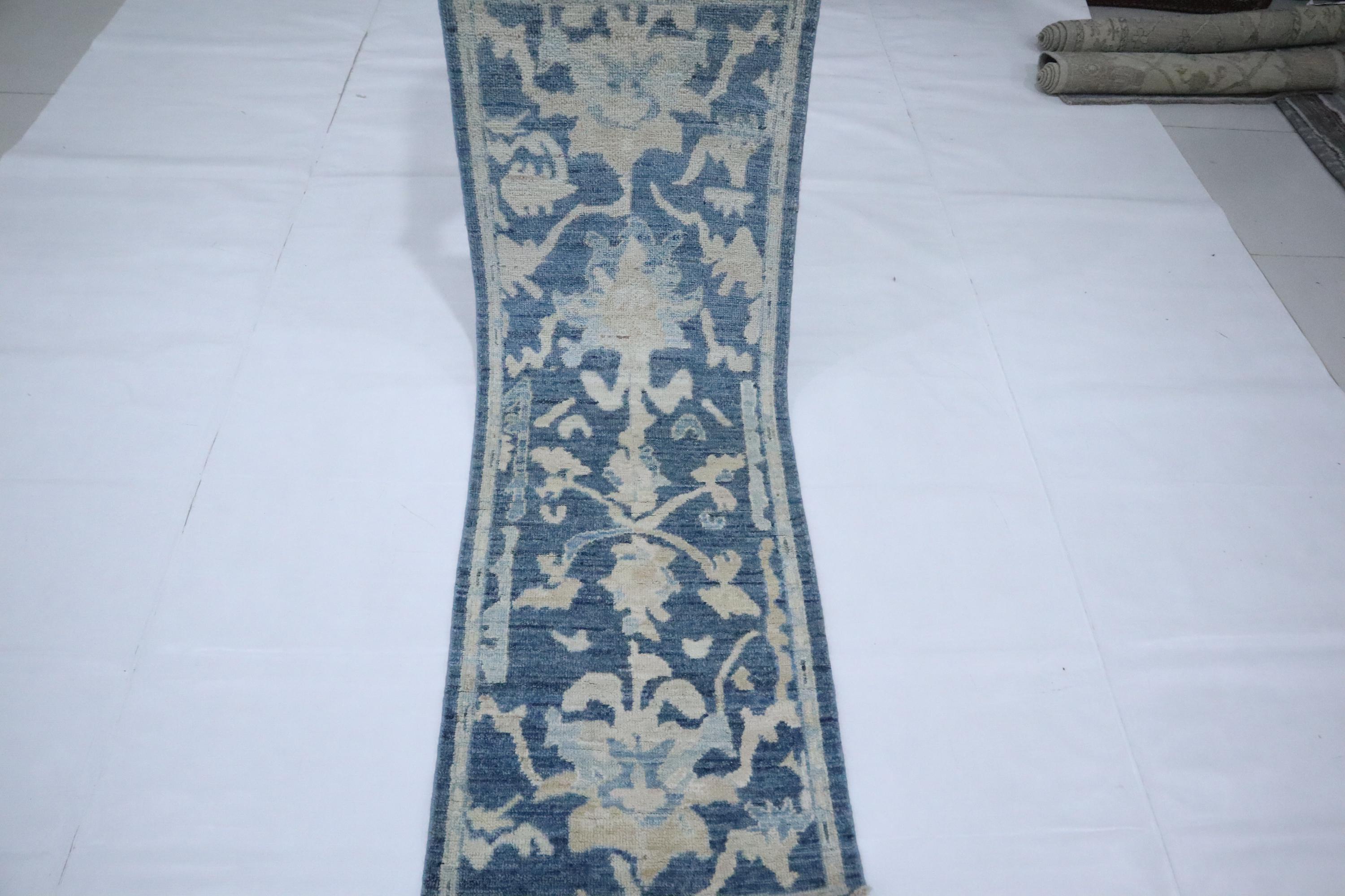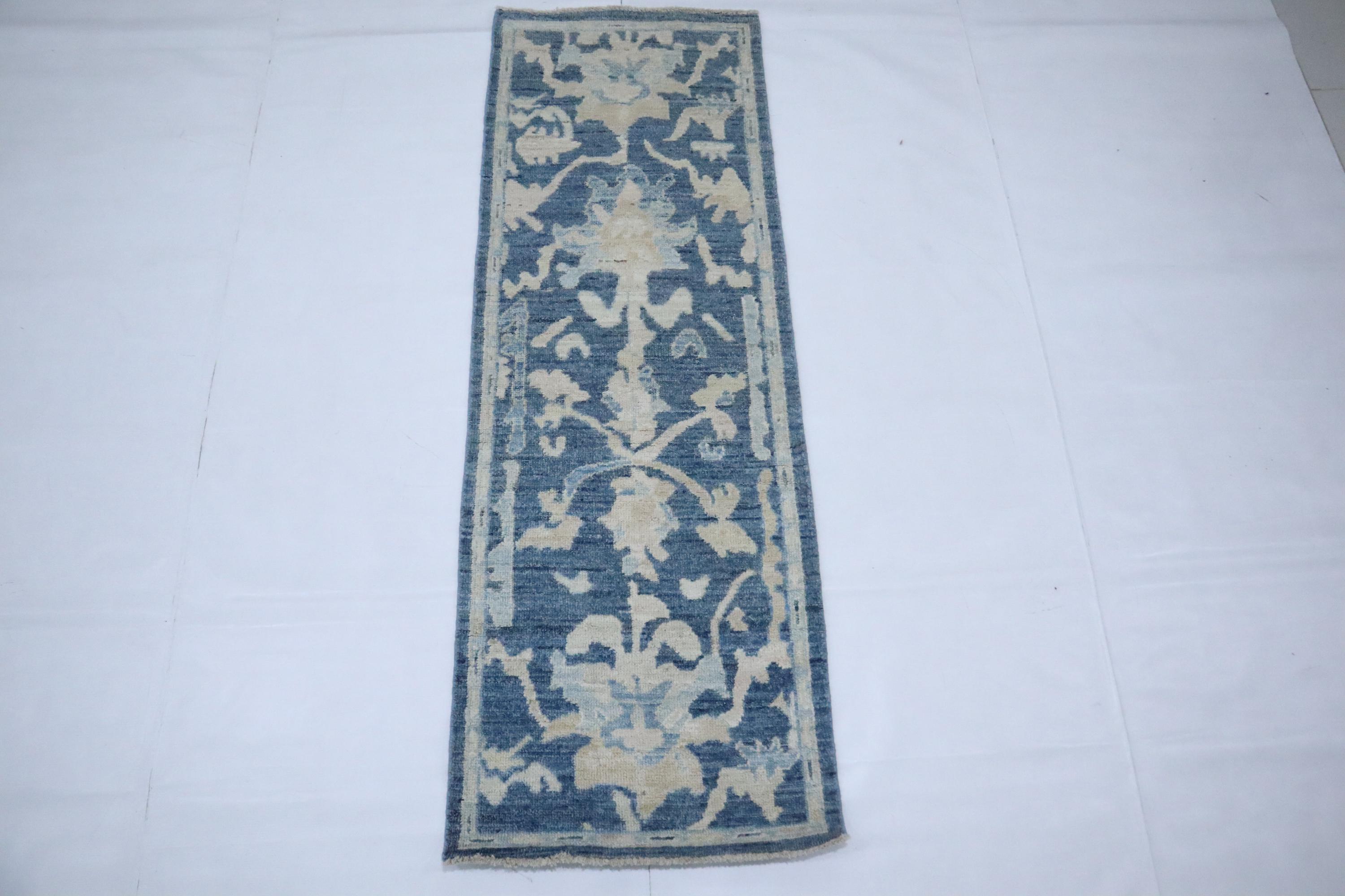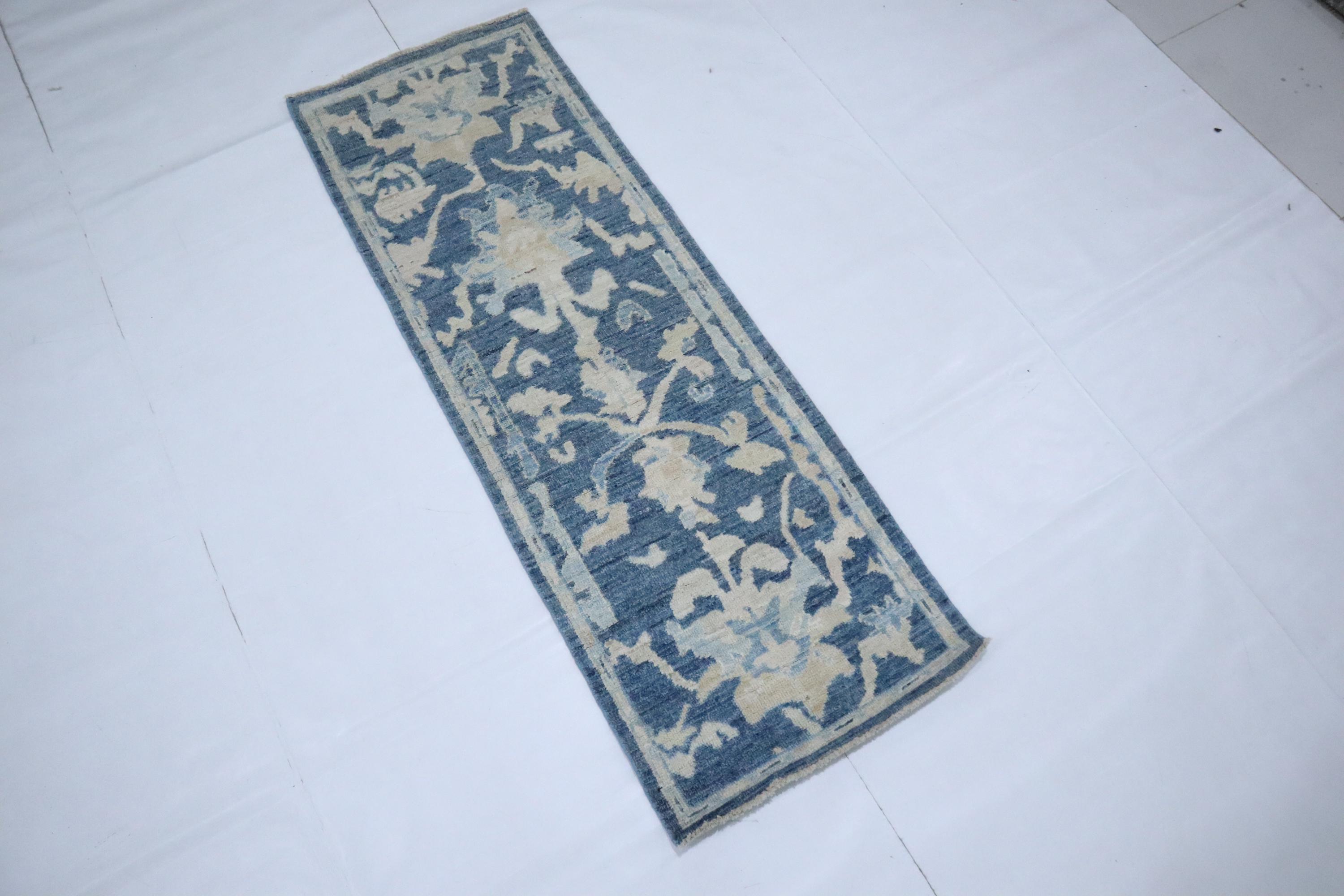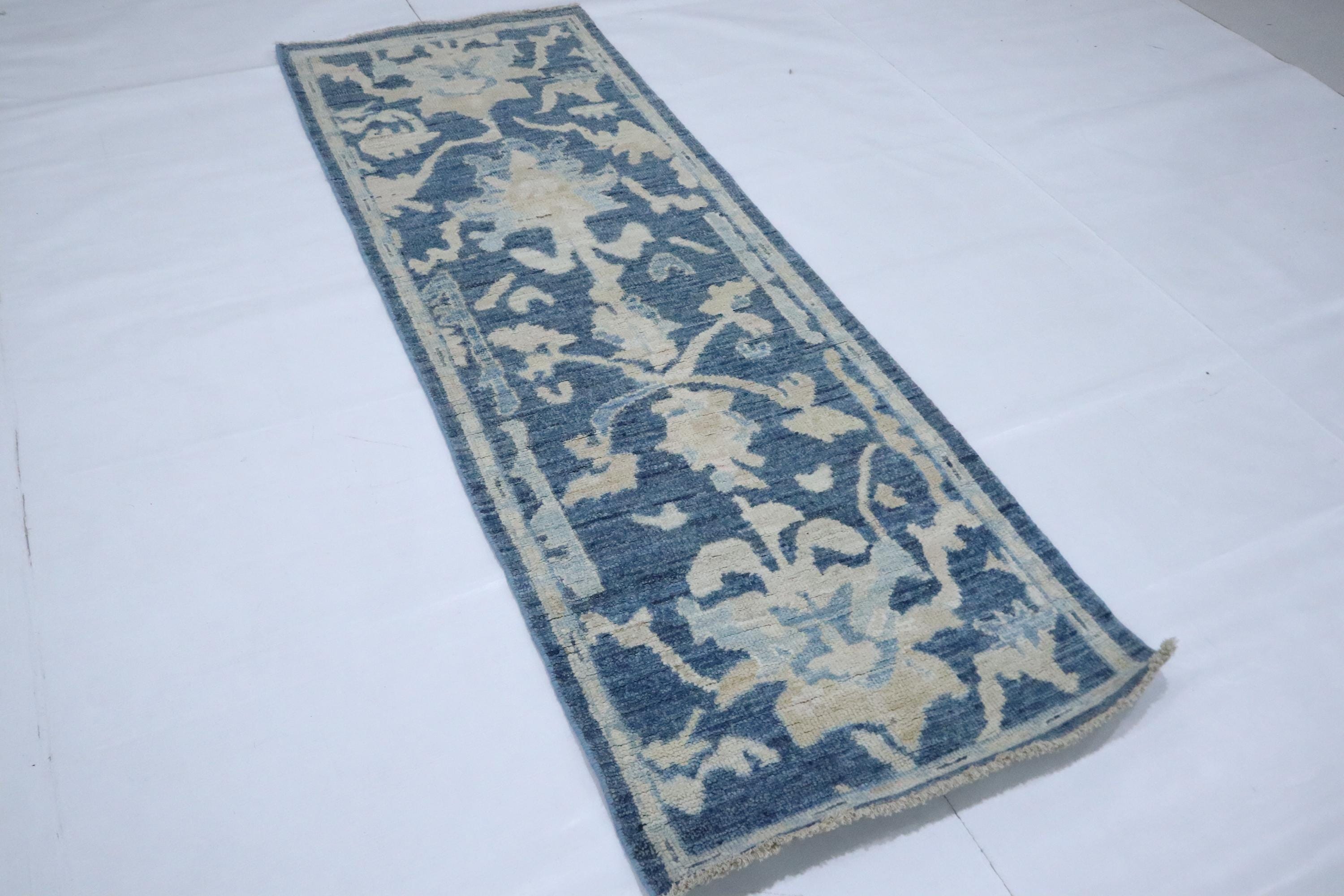 6 Ft Oushak Runner Rug - Blue Turkish Hand Knotted Traditional Soft Wool Runner - Oriental Runner - Entryway Runner - Kitchen Runner
