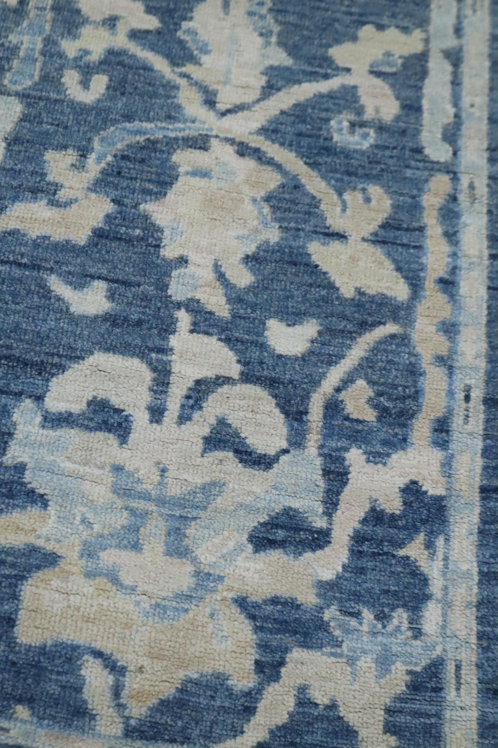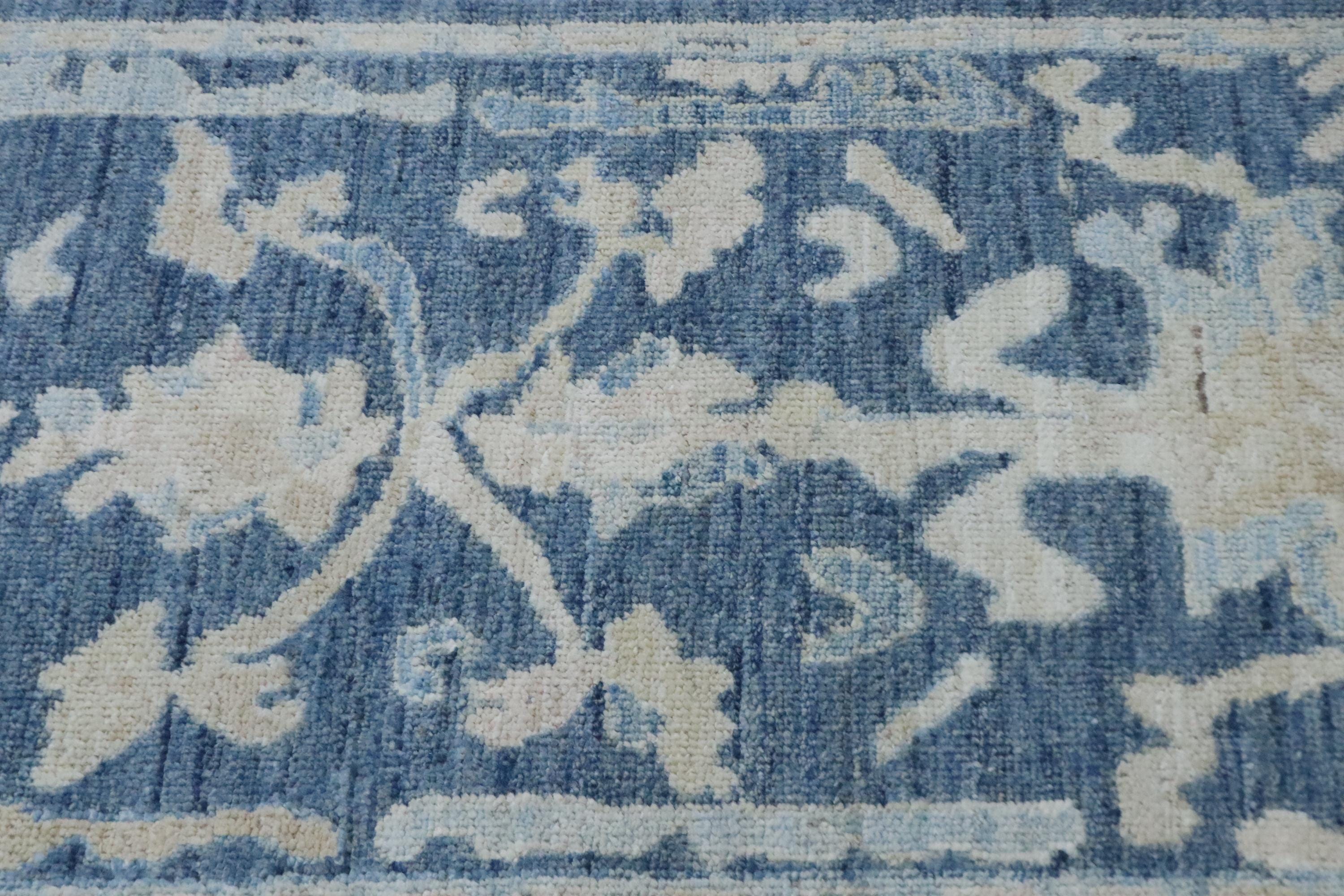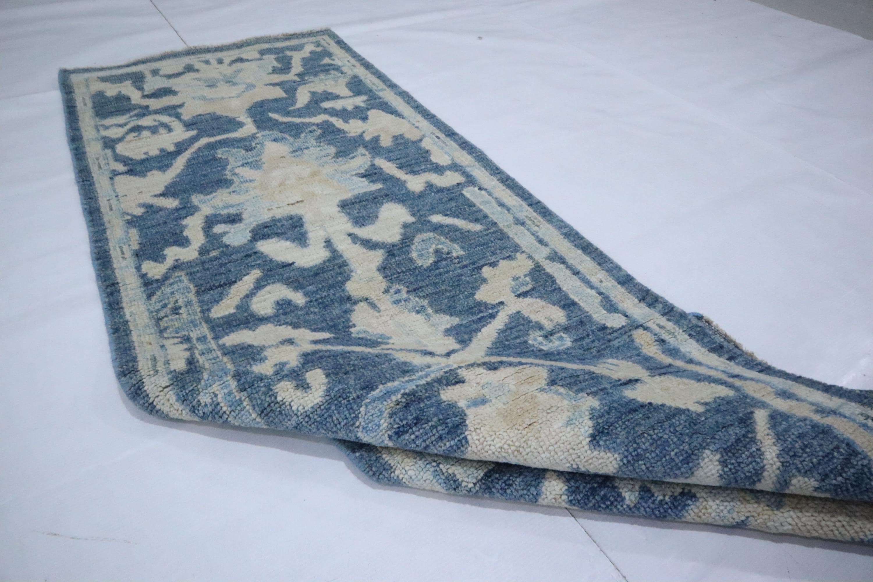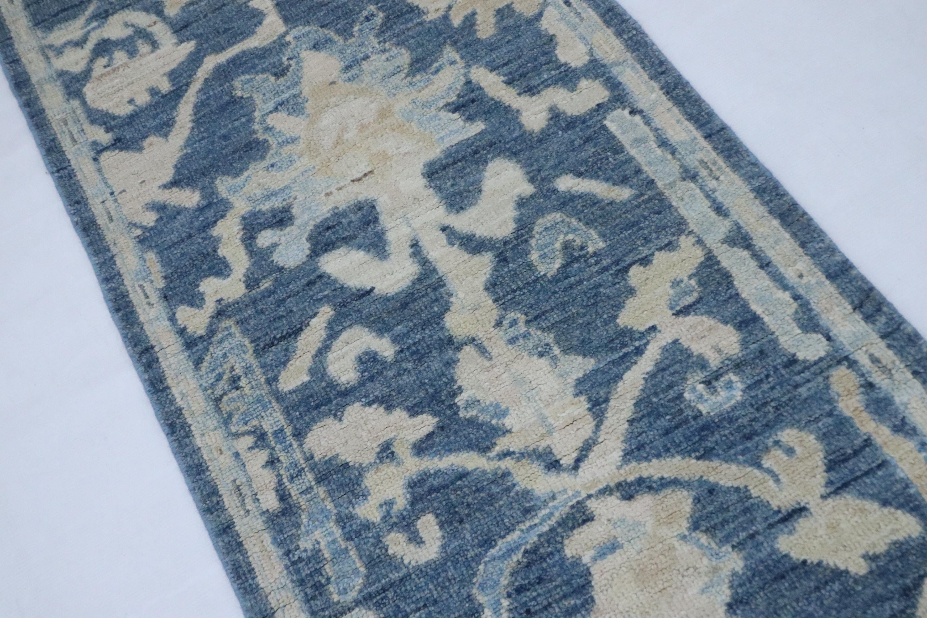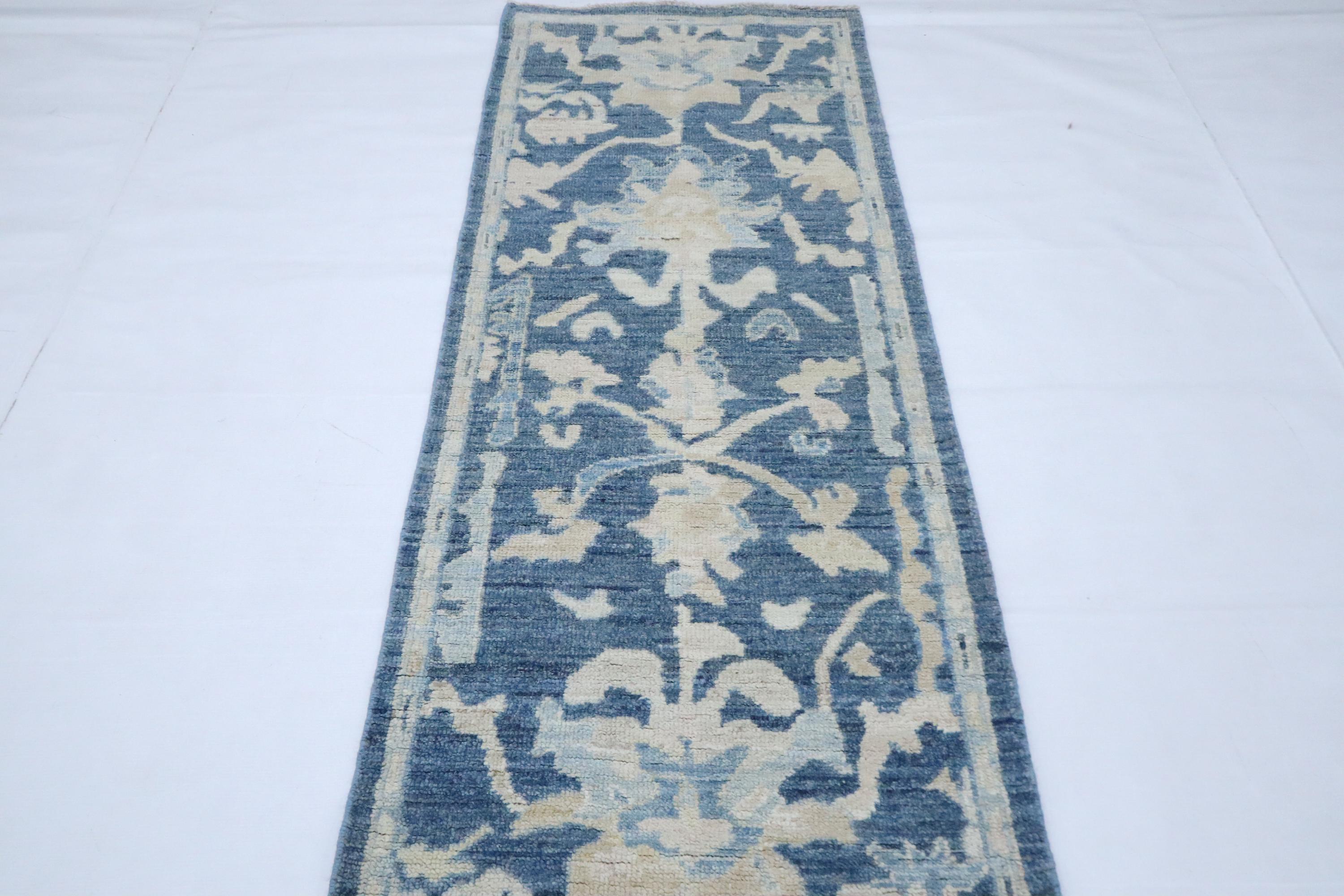 6 Ft Oushak Runner Rug - Blue Turkish Hand Knotted Traditional Soft Wool Runner - Oriental Runner - Entryway Runner - Kitchen Runner