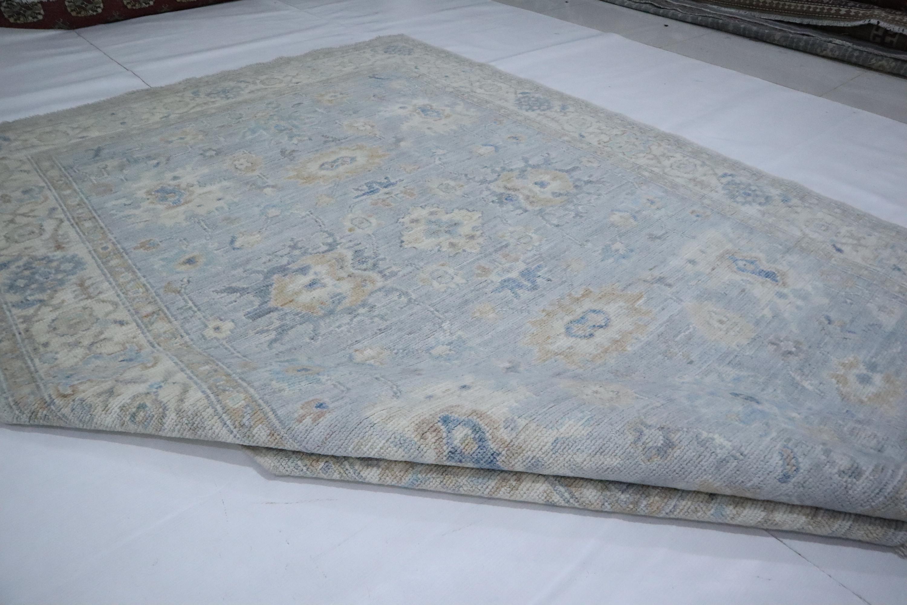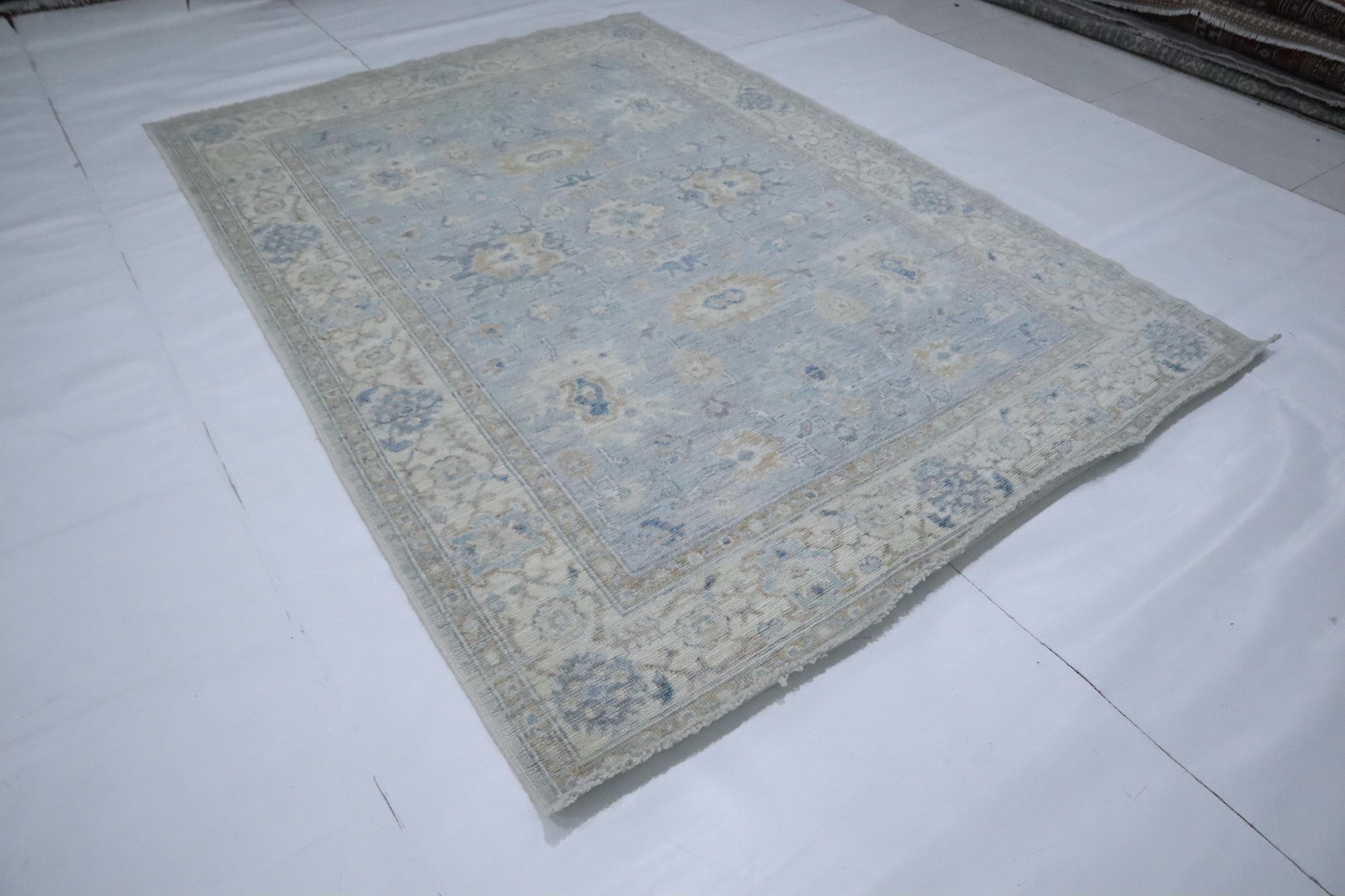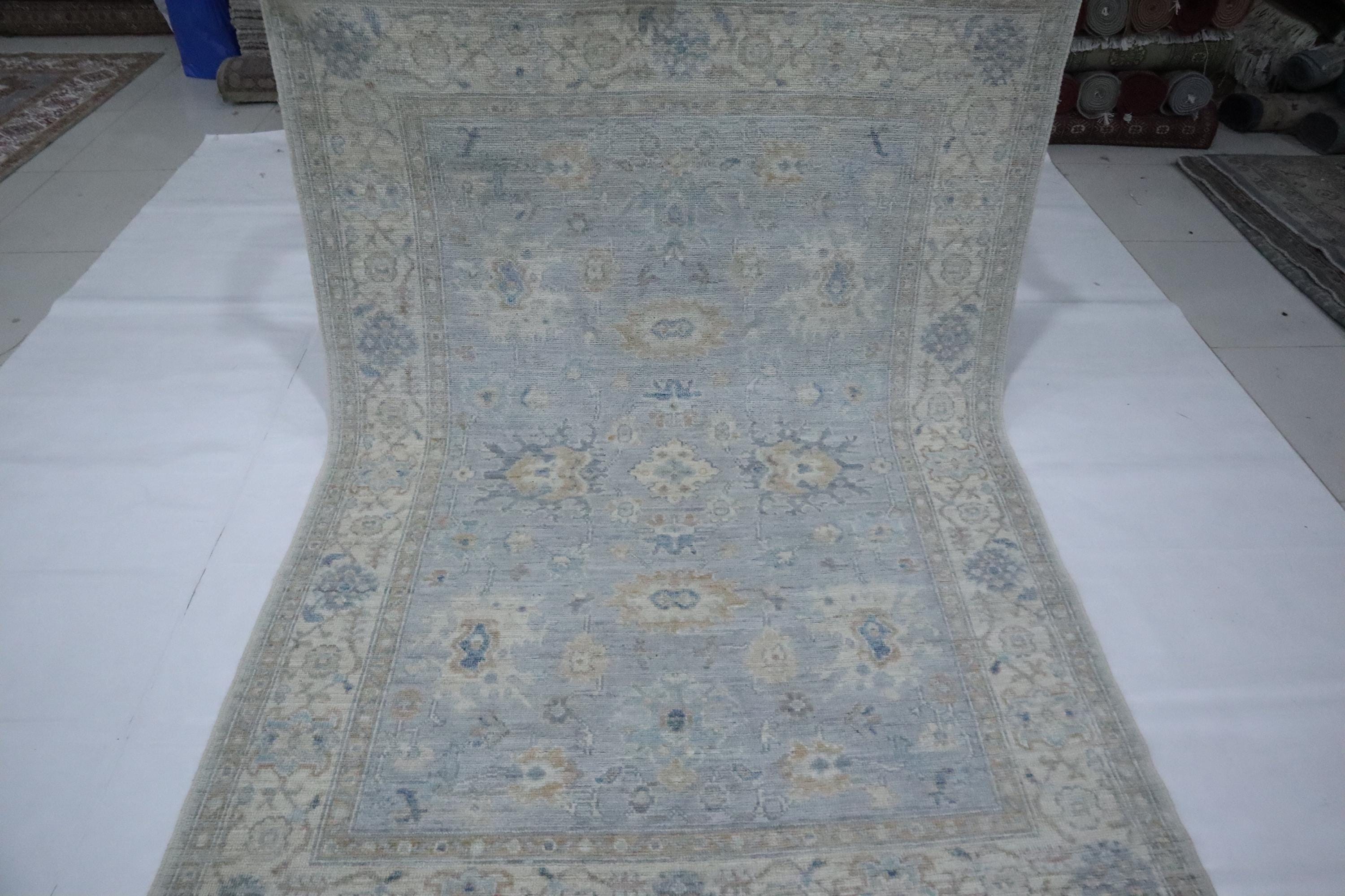 5x7 Muted Oushak Area Rug - Blue Gray Turkish Handmade Traditional Soft Wool Rug - Oriental Rug - Bedroom Rug - Foyer Rug - Kitchen Rug