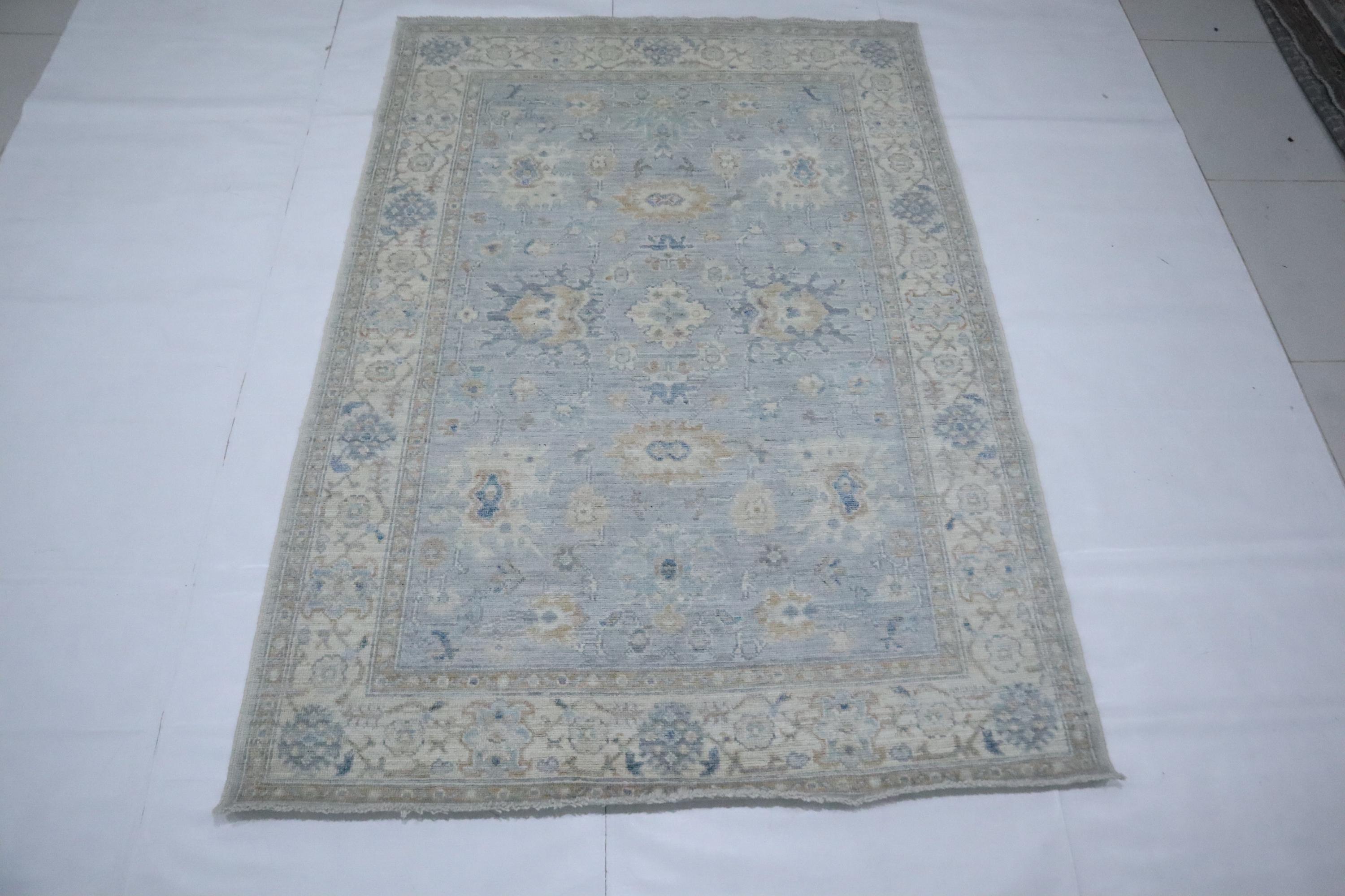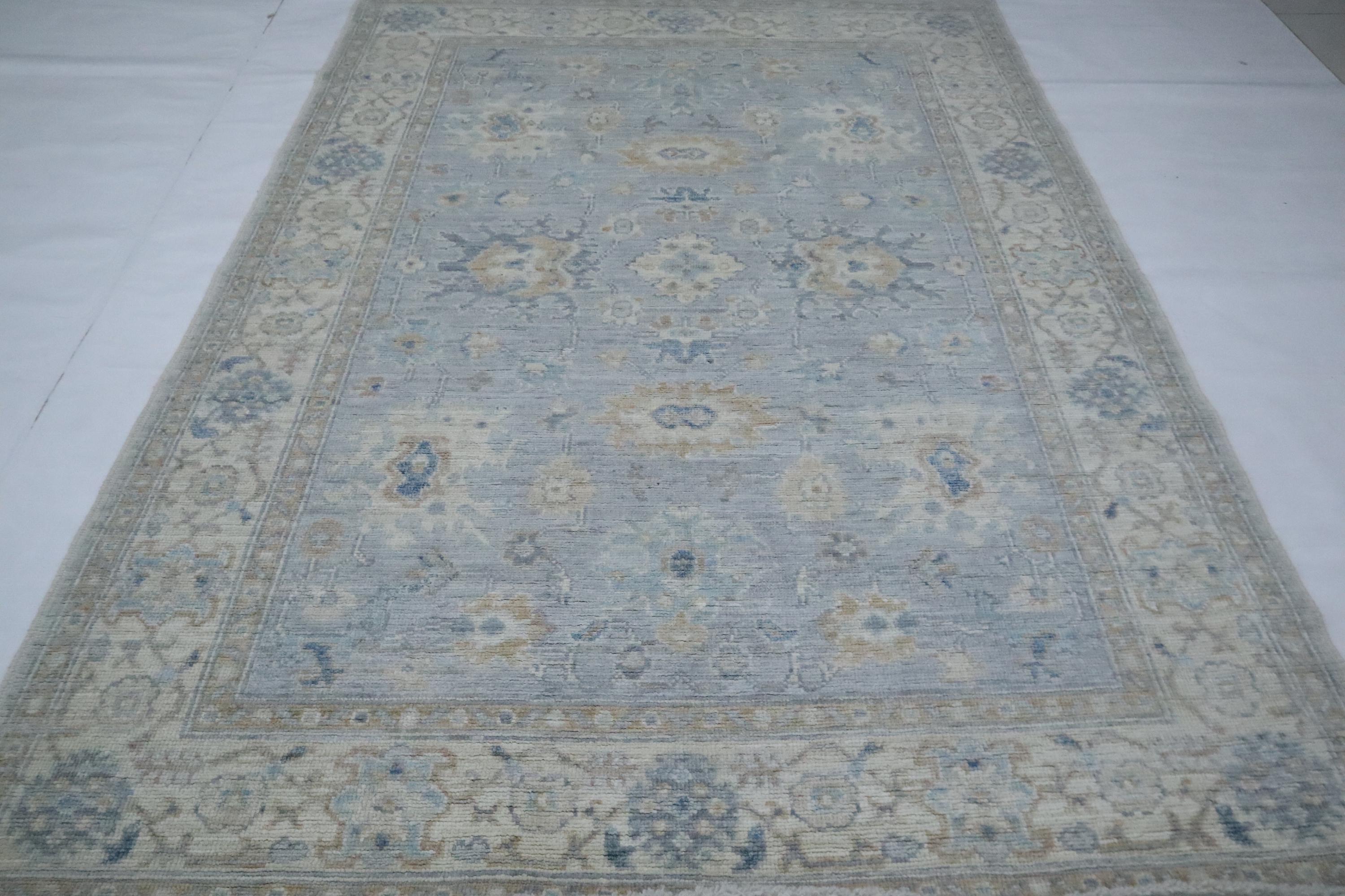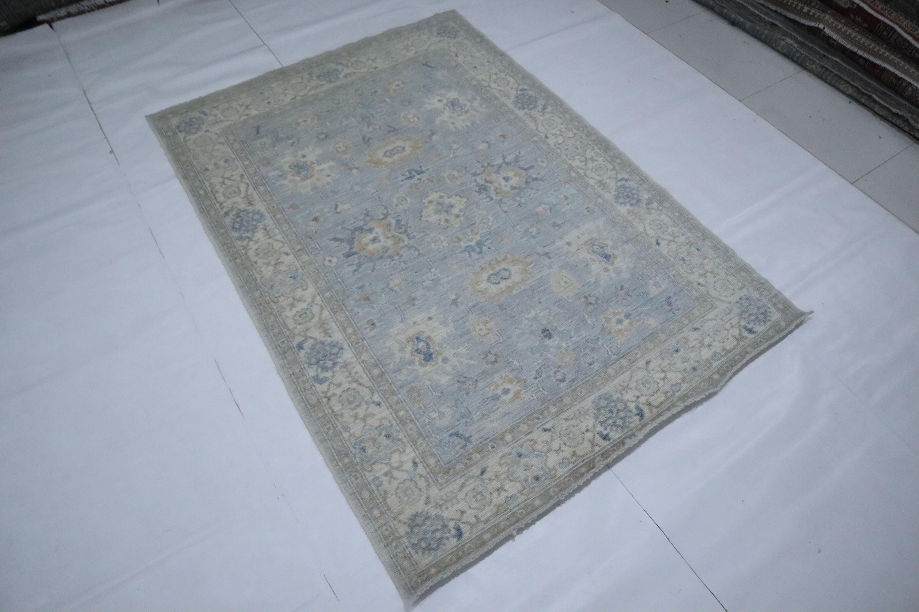 5x7 Muted Oushak Area Rug - Blue Gray Turkish Handmade Traditional Soft Wool Rug - Oriental Rug - Bedroom Rug - Foyer Rug - Kitchen Rug