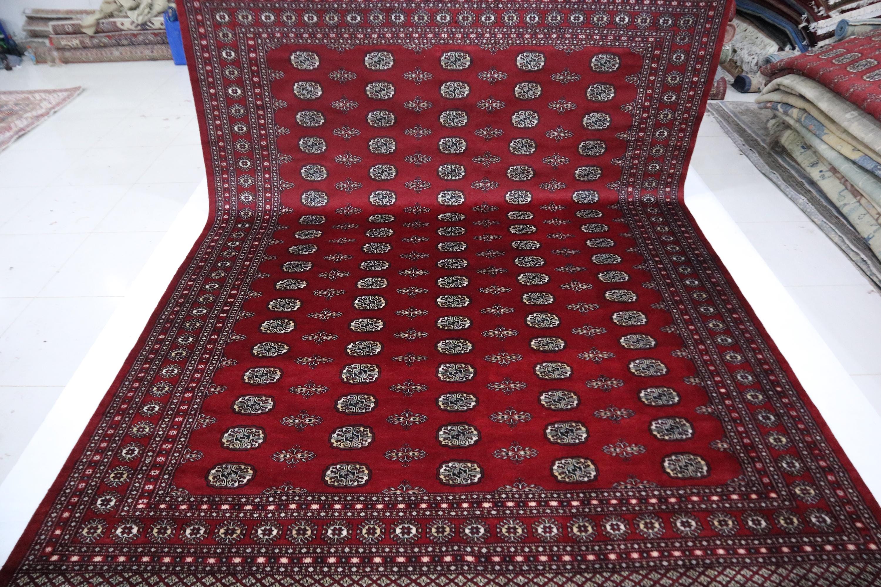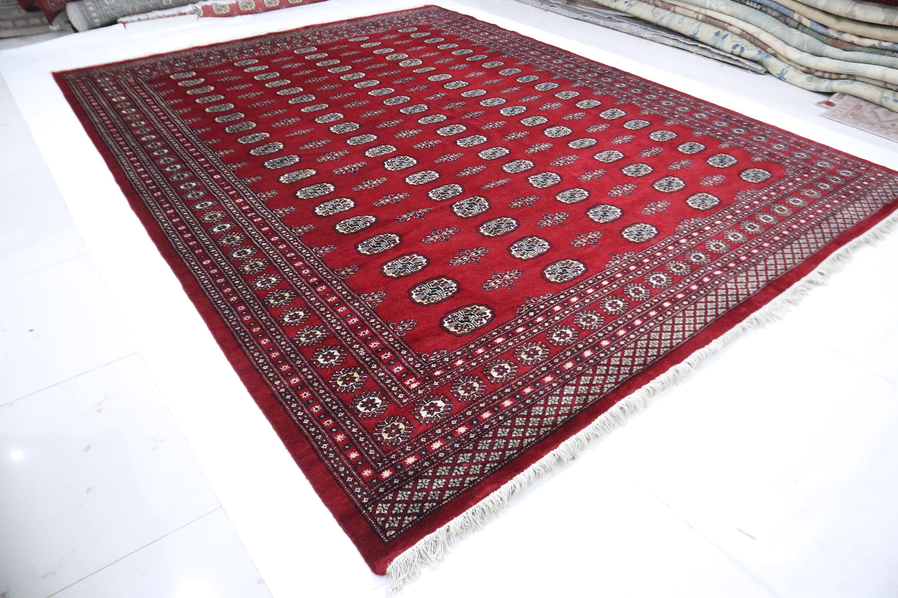 9x12 Mori Bokhara Area Rug - Red Rug - Jaldaar Rug - Turkmen Rug - Handmade Rug - Geometric Rug - Living Room Rug - Dining Room Rug - Rugs