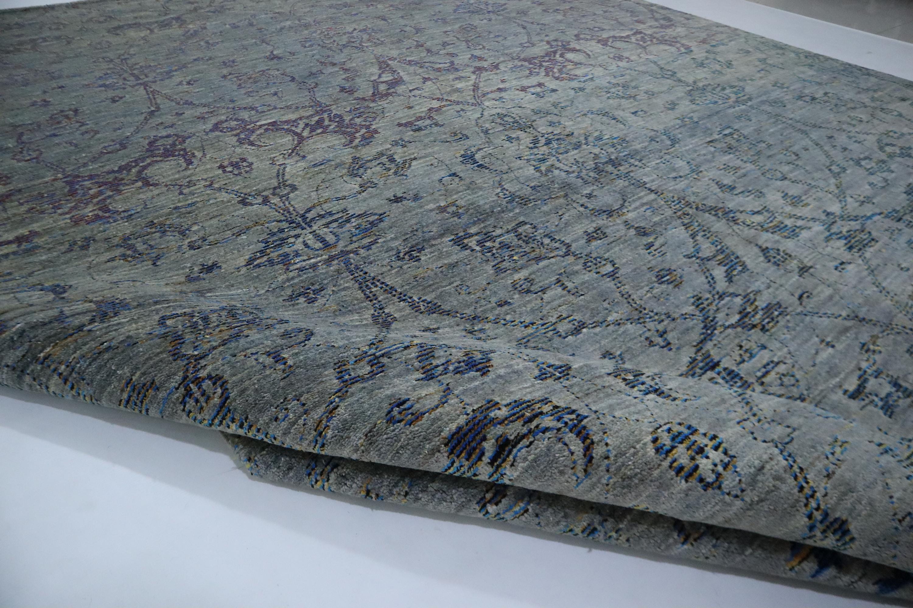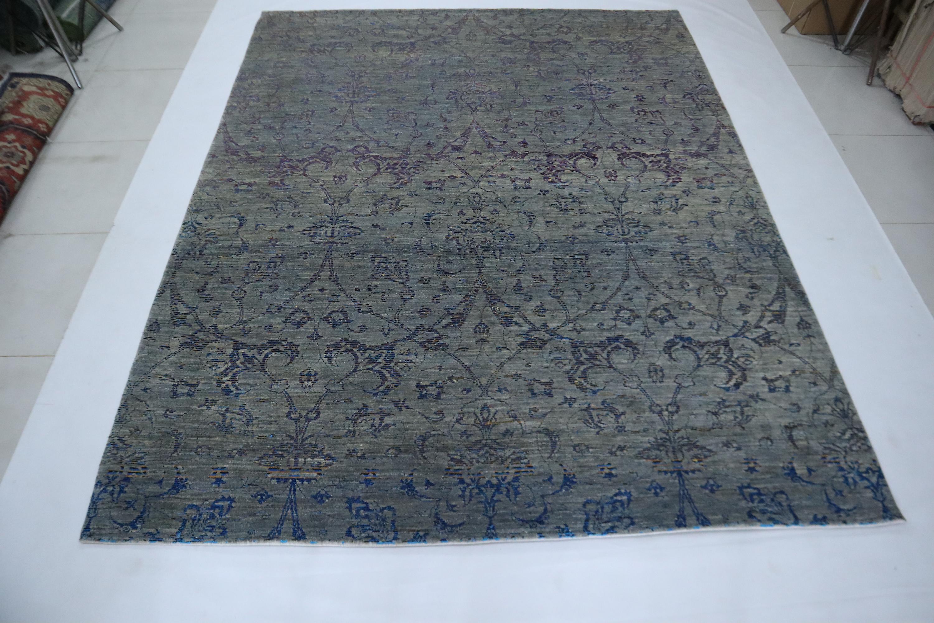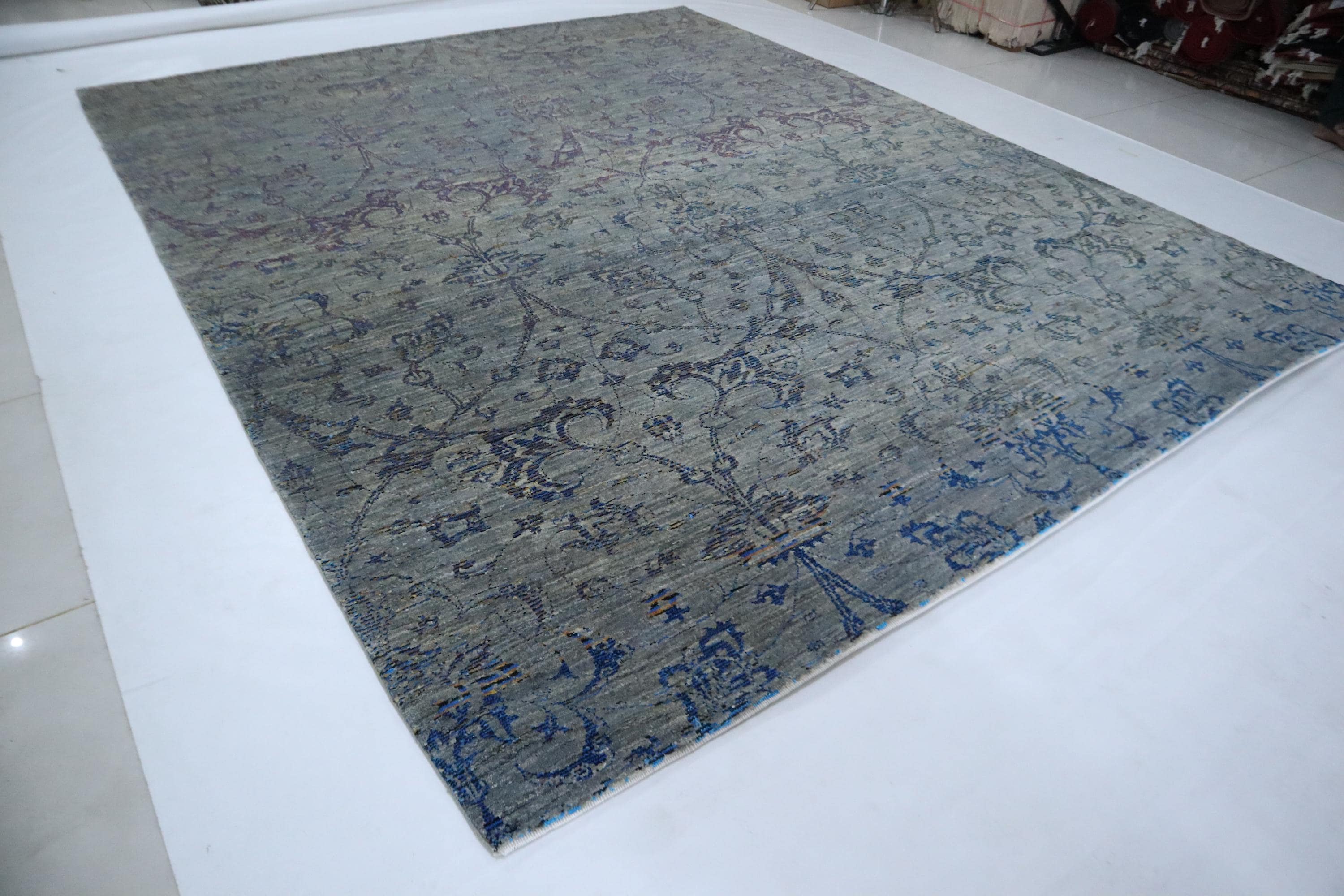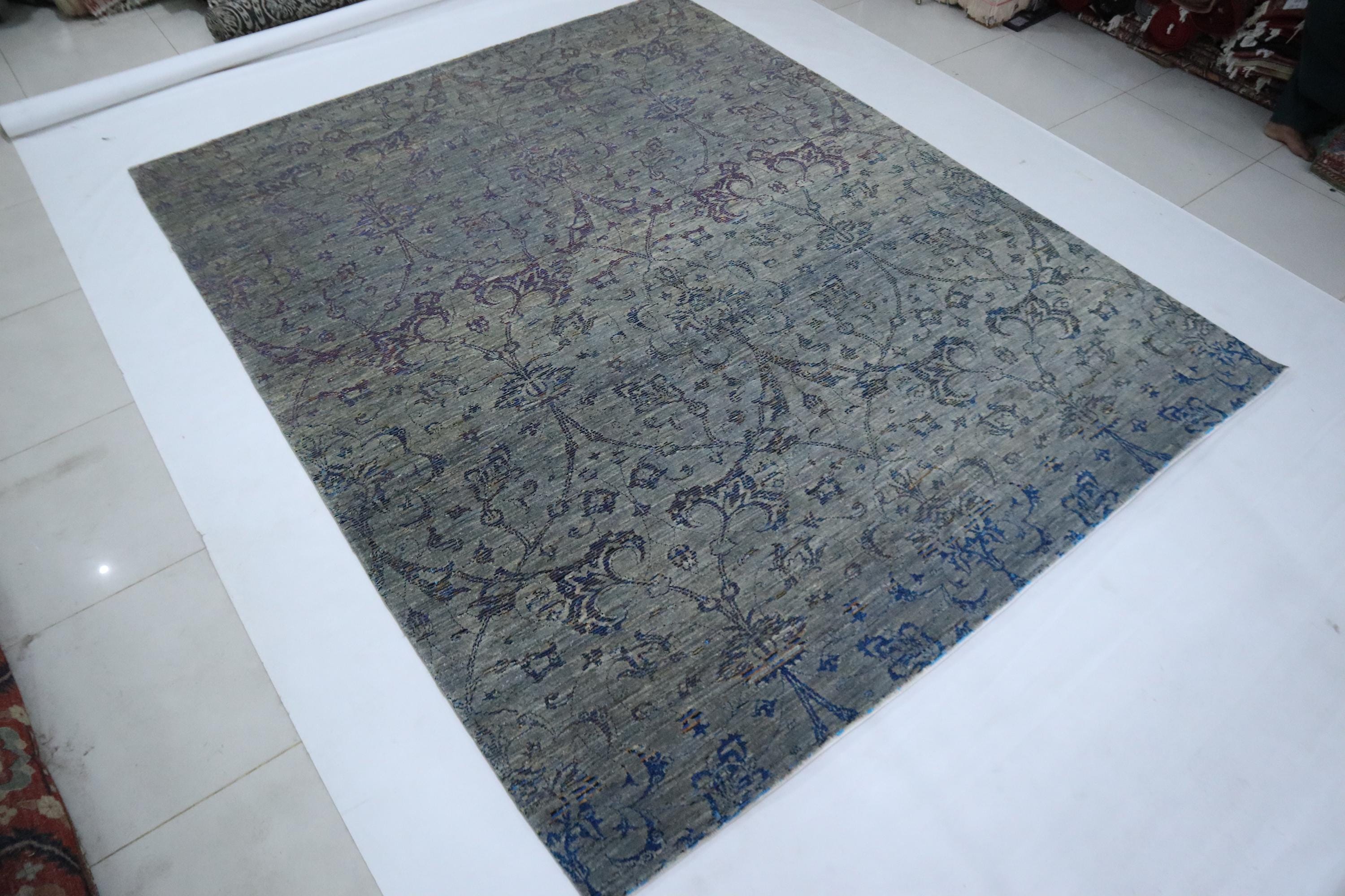 8x10 Modern Area Rug - Gray Blue Afghan Hand Knotted Floral Silk Touch Wool Rug - Traditional Rug - Living Room Rug - Dining Room Rug - Rugs