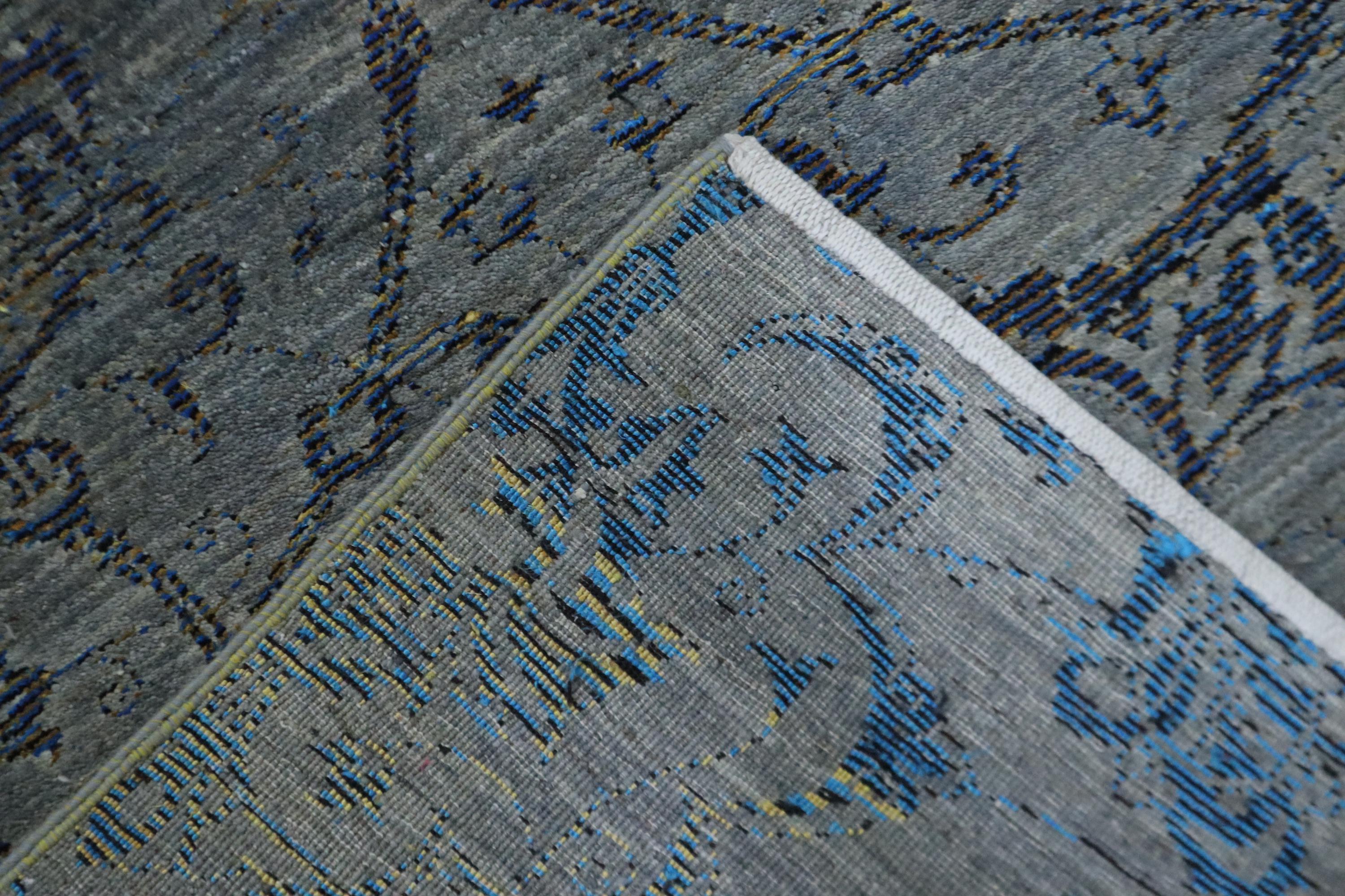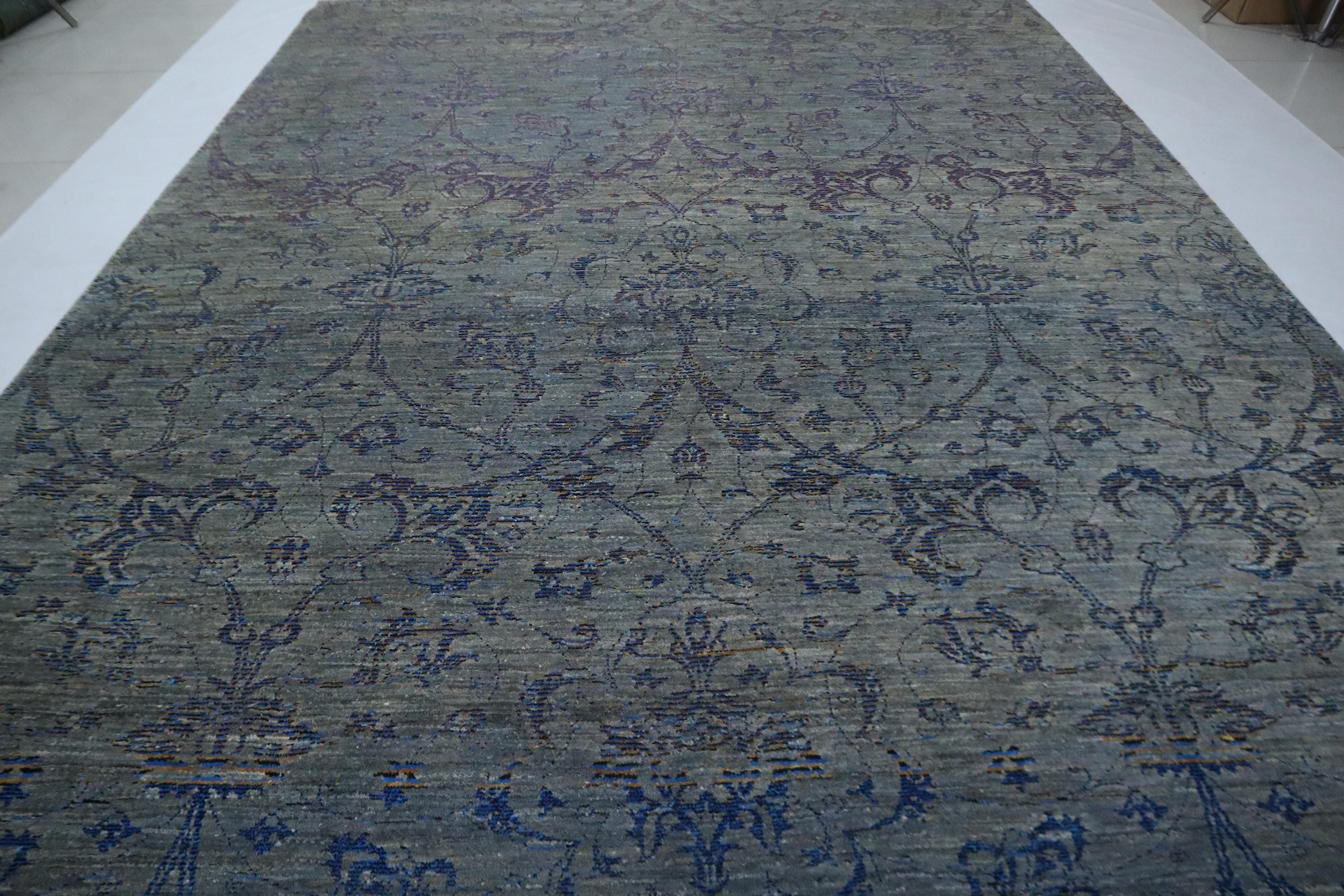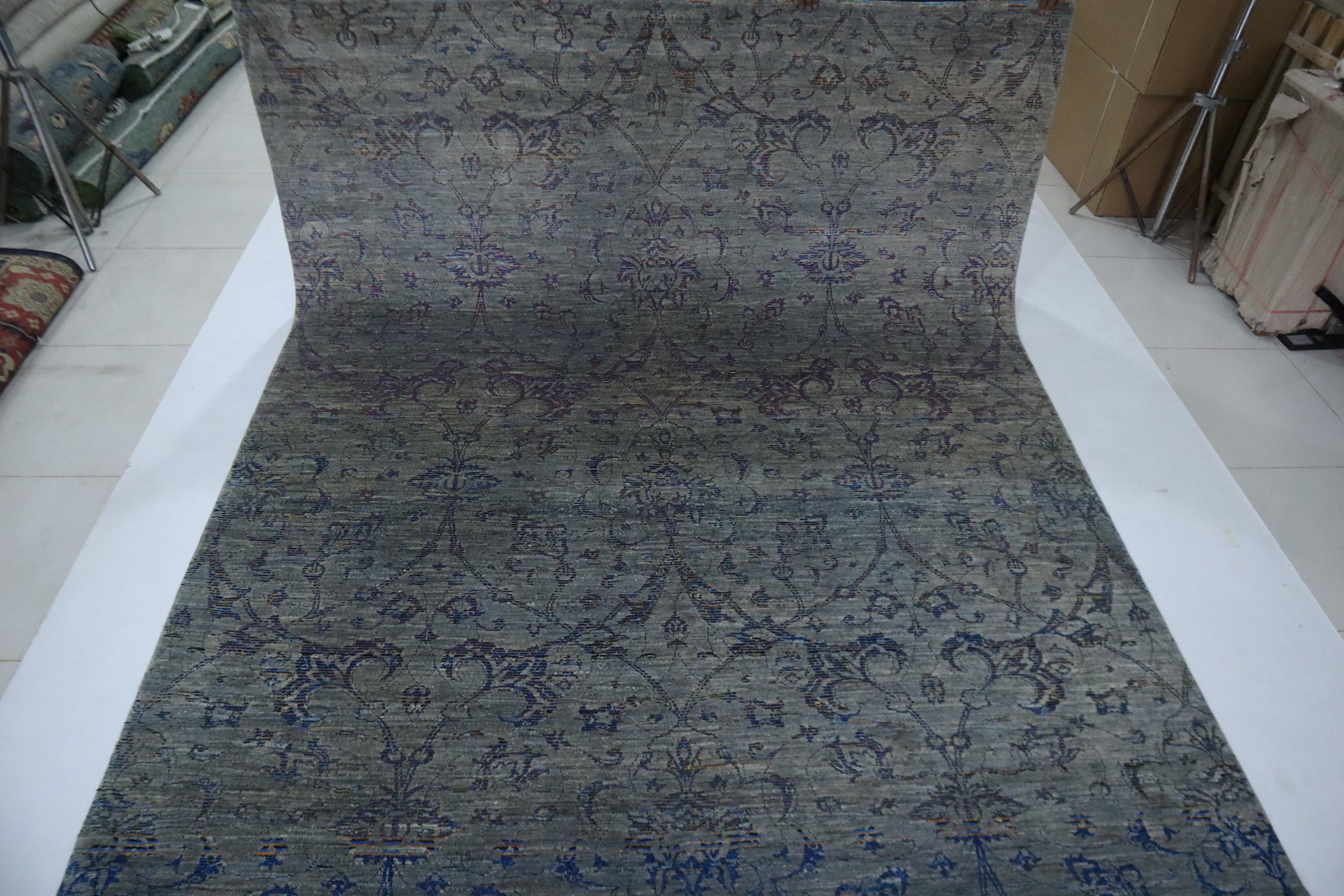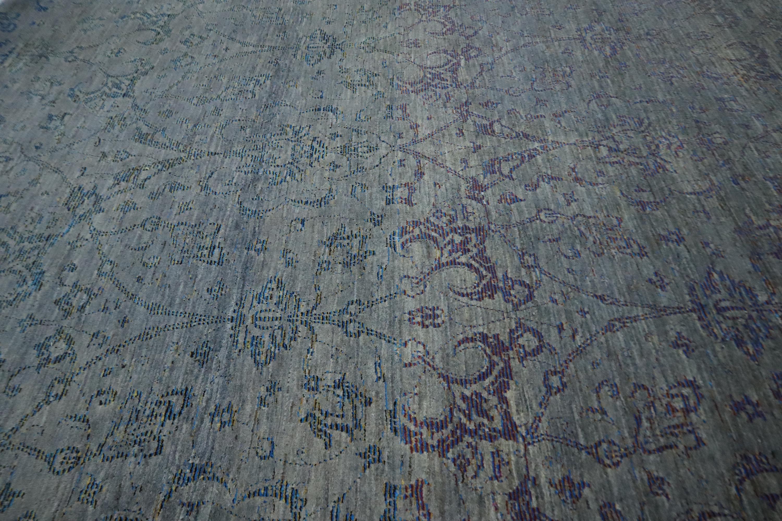 8x10 Modern Area Rug - Gray Blue Afghan Hand Knotted Floral Silk Touch Wool Rug - Traditional Rug - Living Room Rug - Dining Room Rug - Rugs