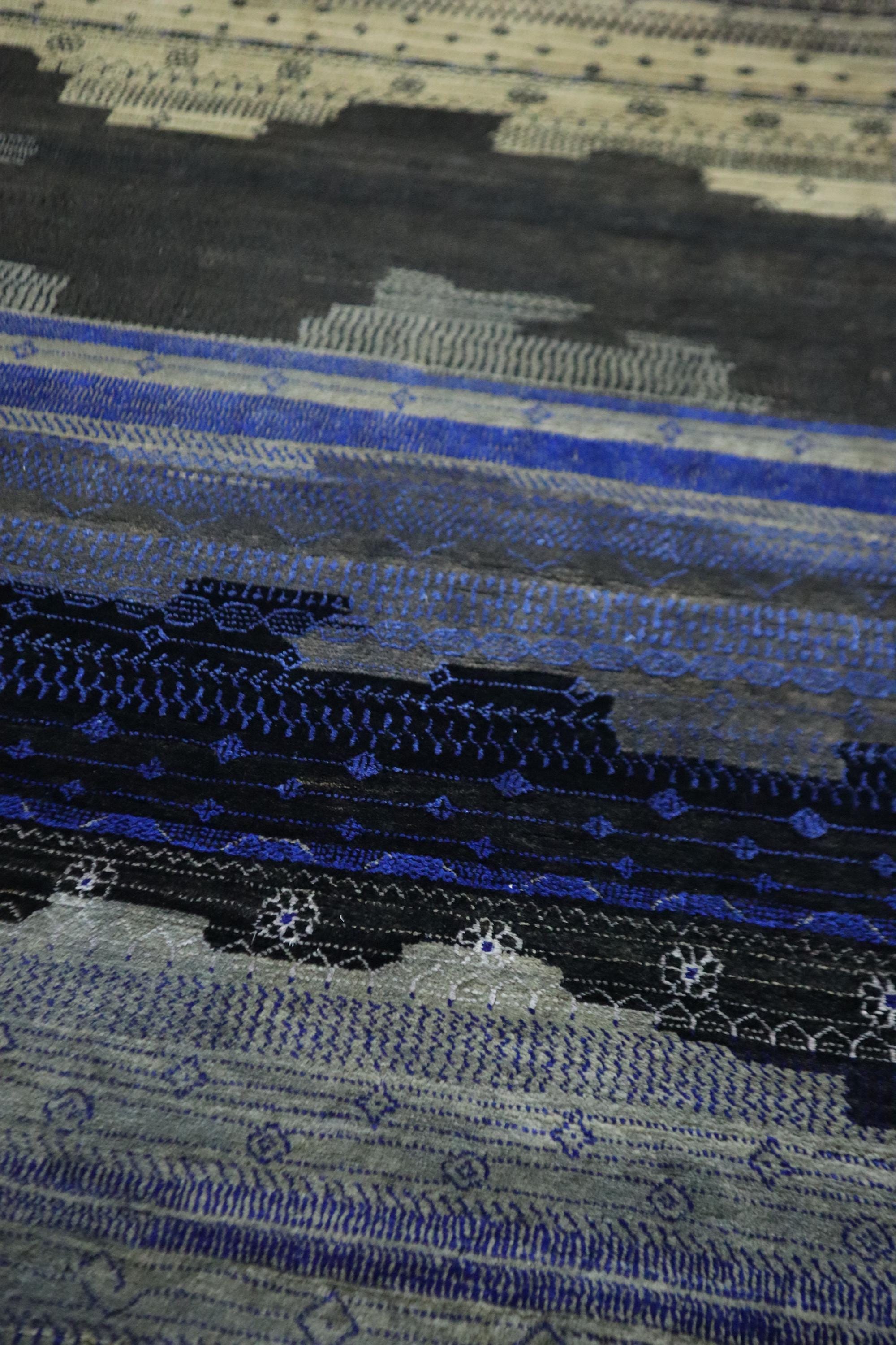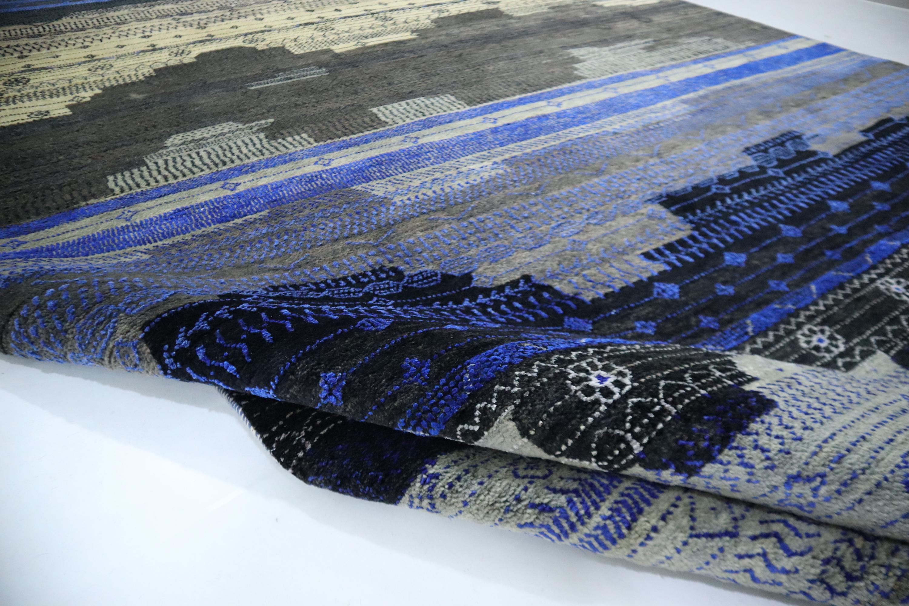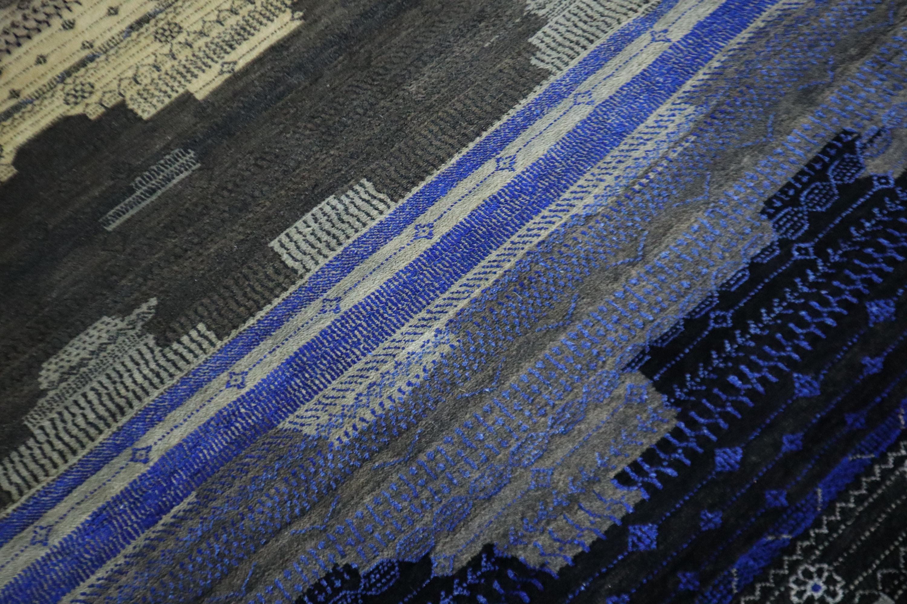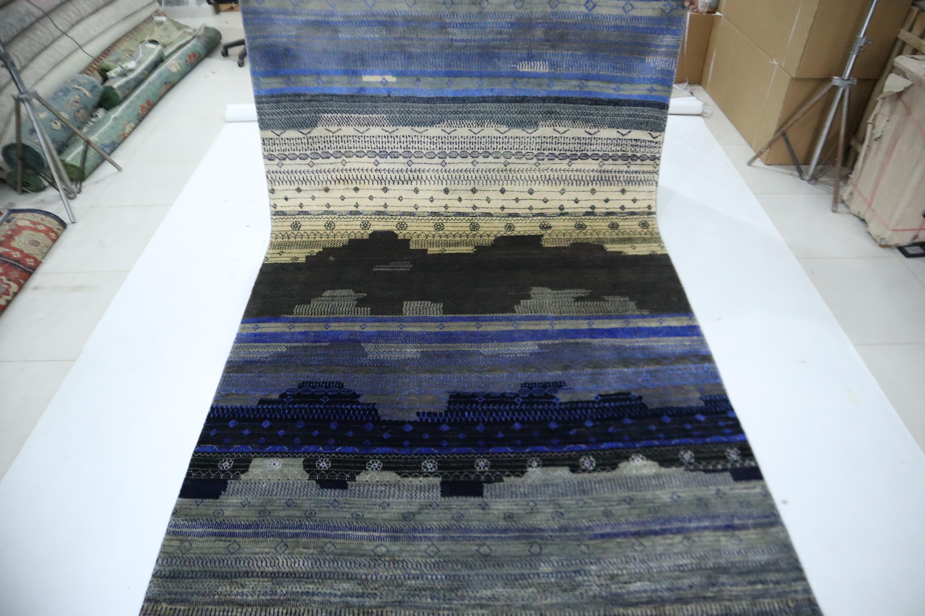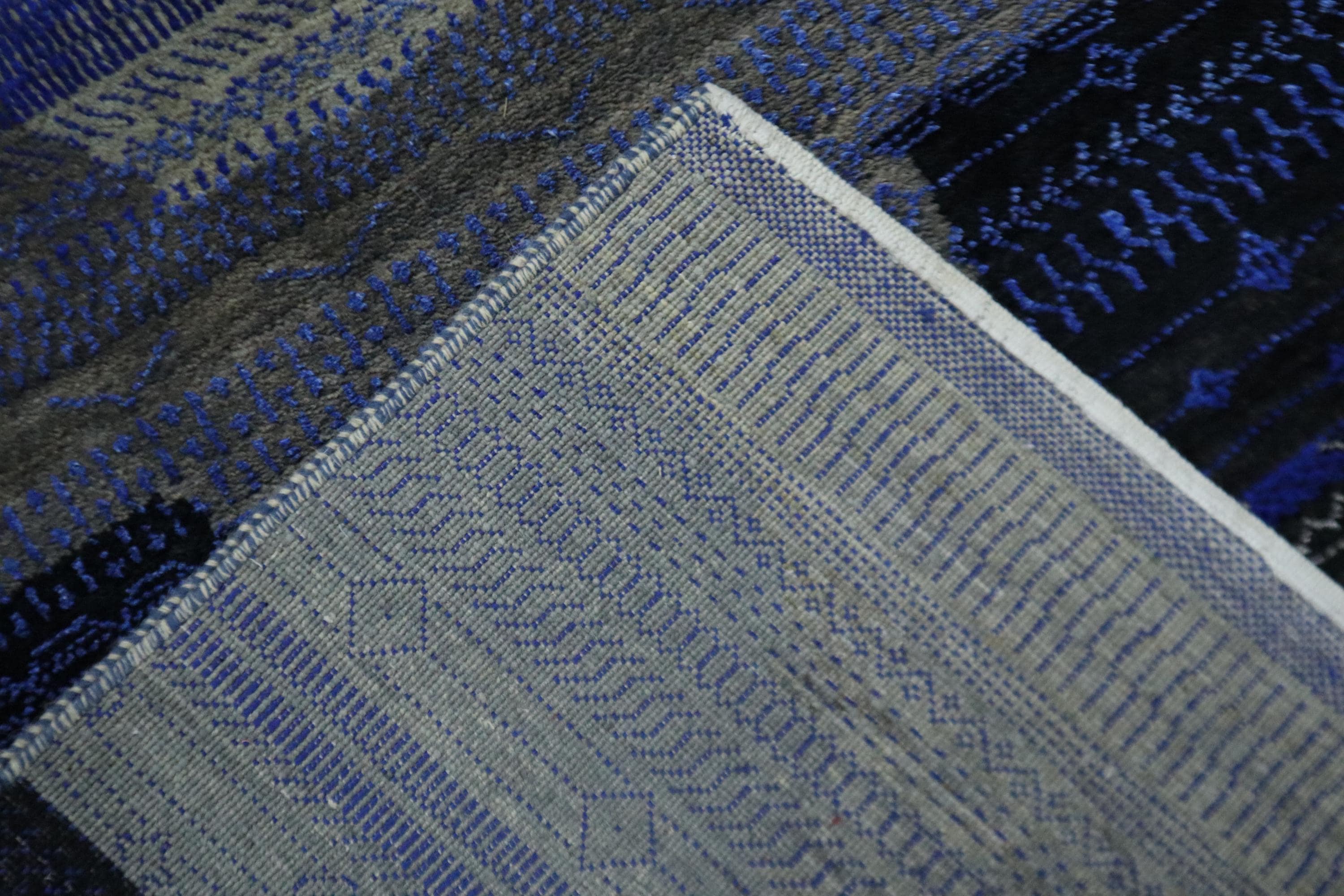 7x10 Abstract Area Rug - Blue Gray Rug - Afghan Hand Knotted Striped Silk Touch Wool Rug - Boho Rug - Bedroom Rug - Living Room Rug - Rugs