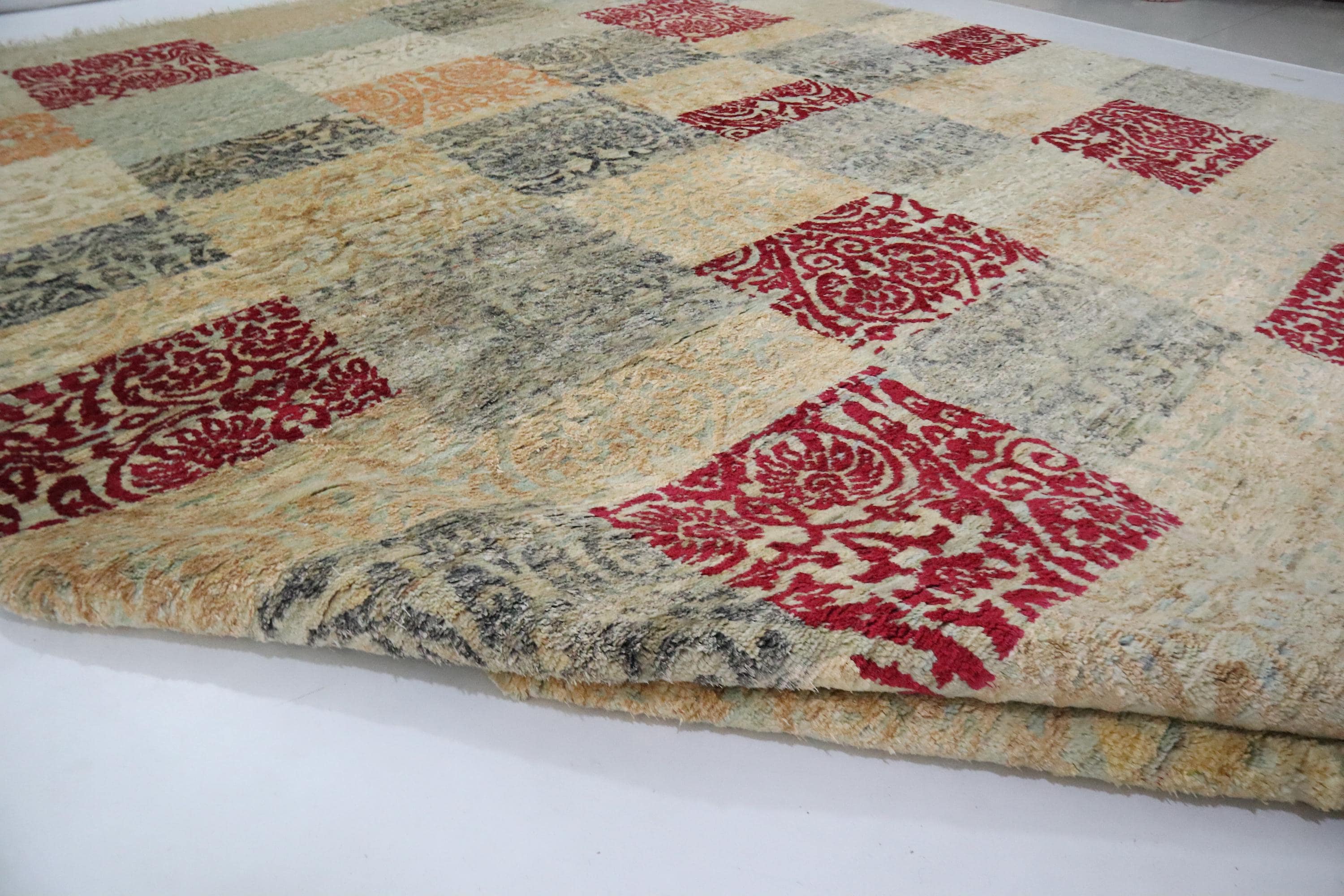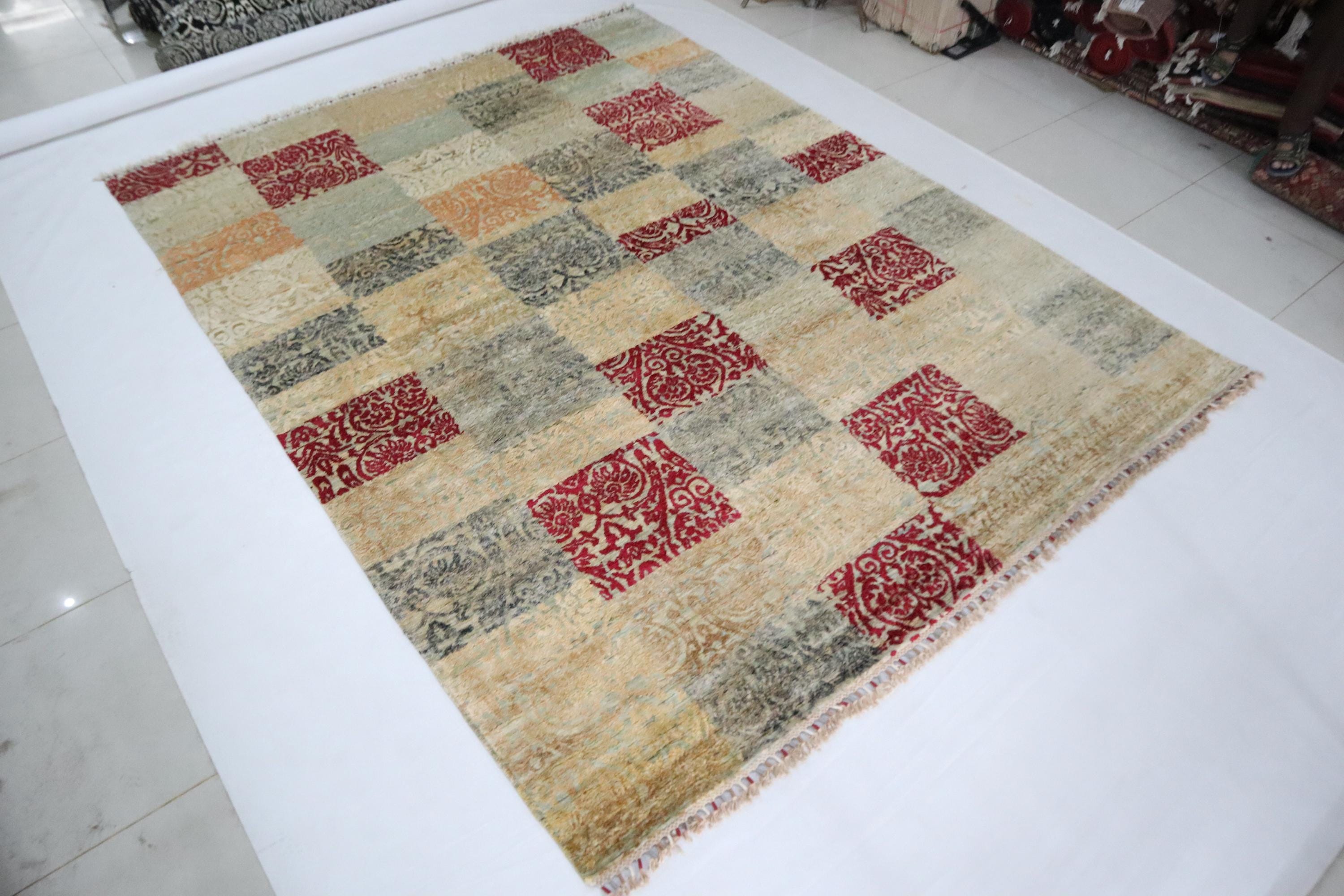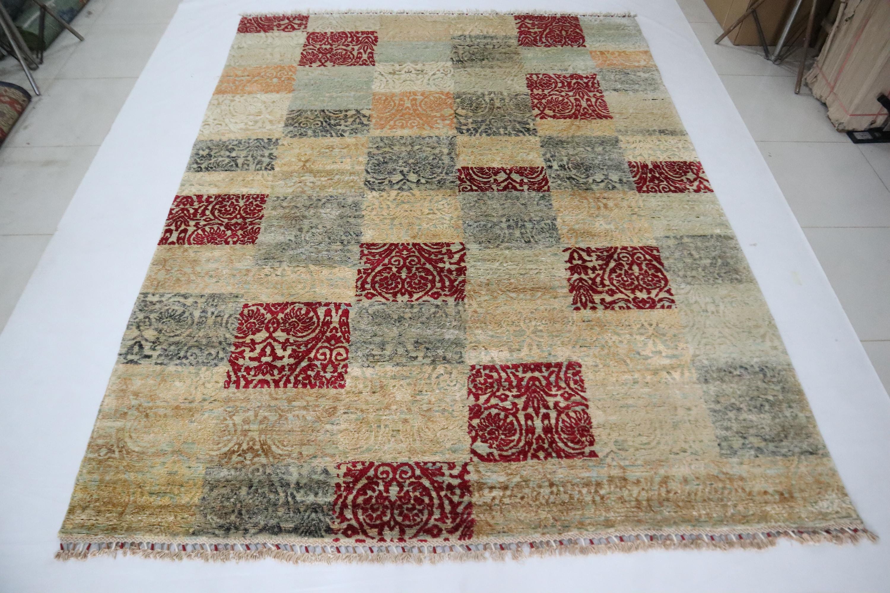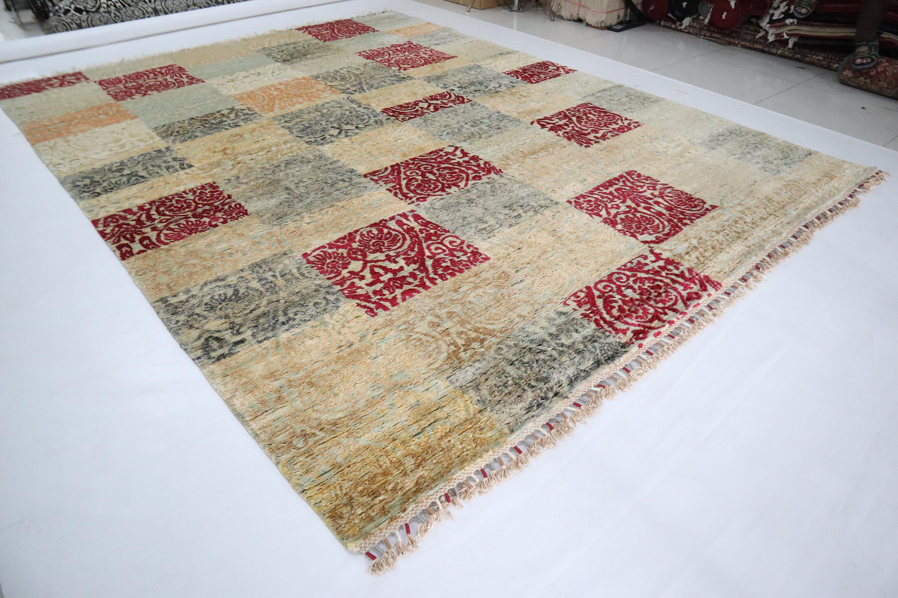 8 x10 Modern Rug - Multicolor Rug - Afghan Hand Knotted Silk Touch Wool Rug - Checkered Rug - Contemporary Rug - Check Design Rug - Wool Rug