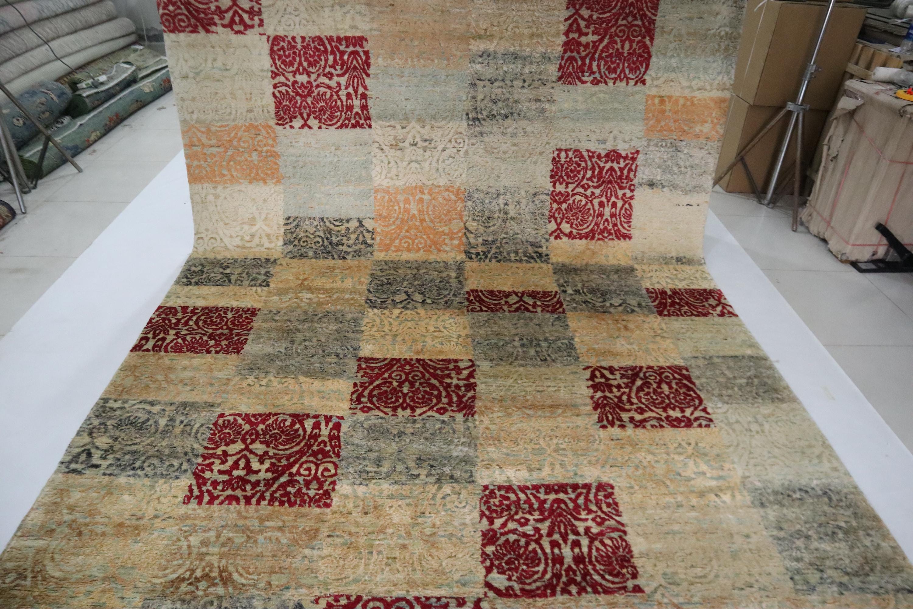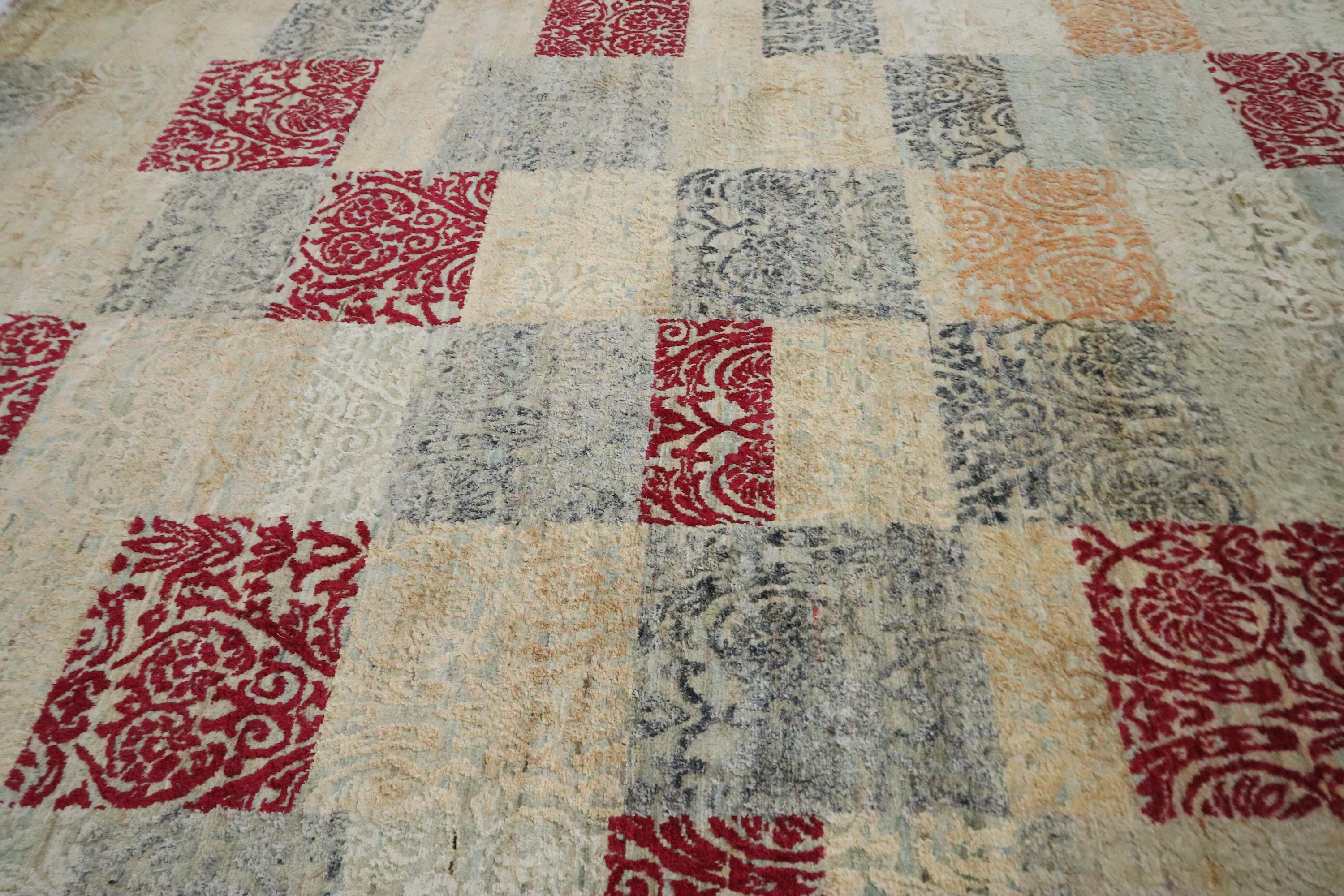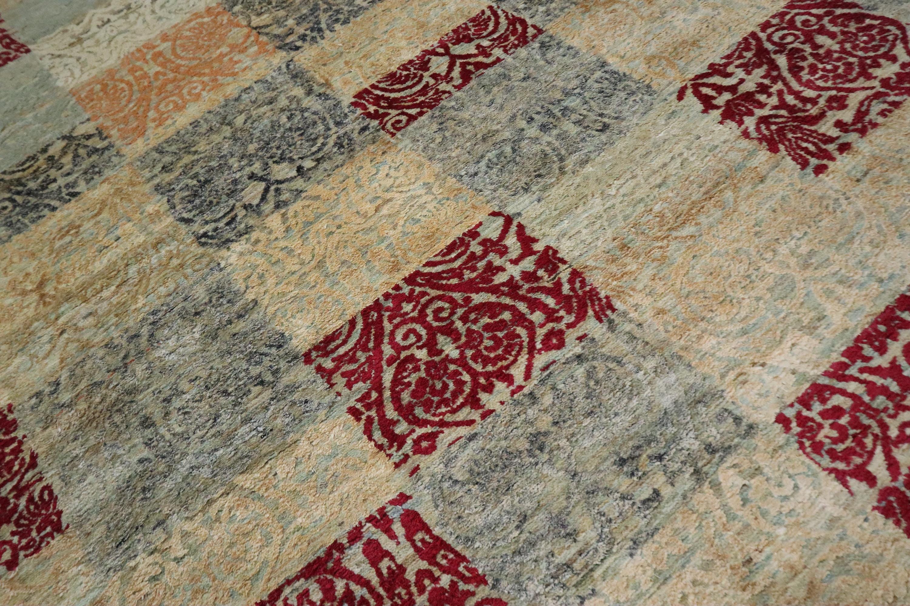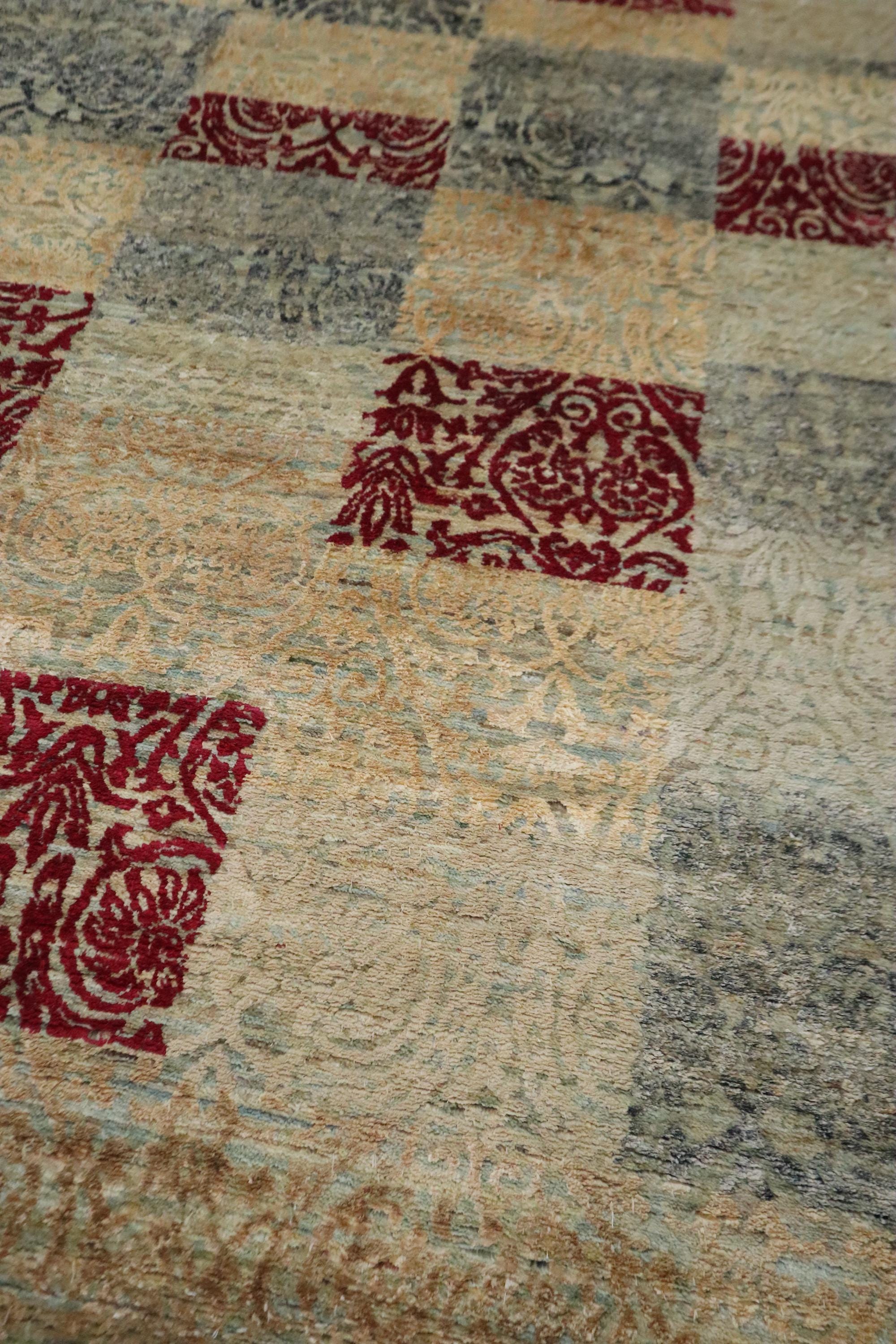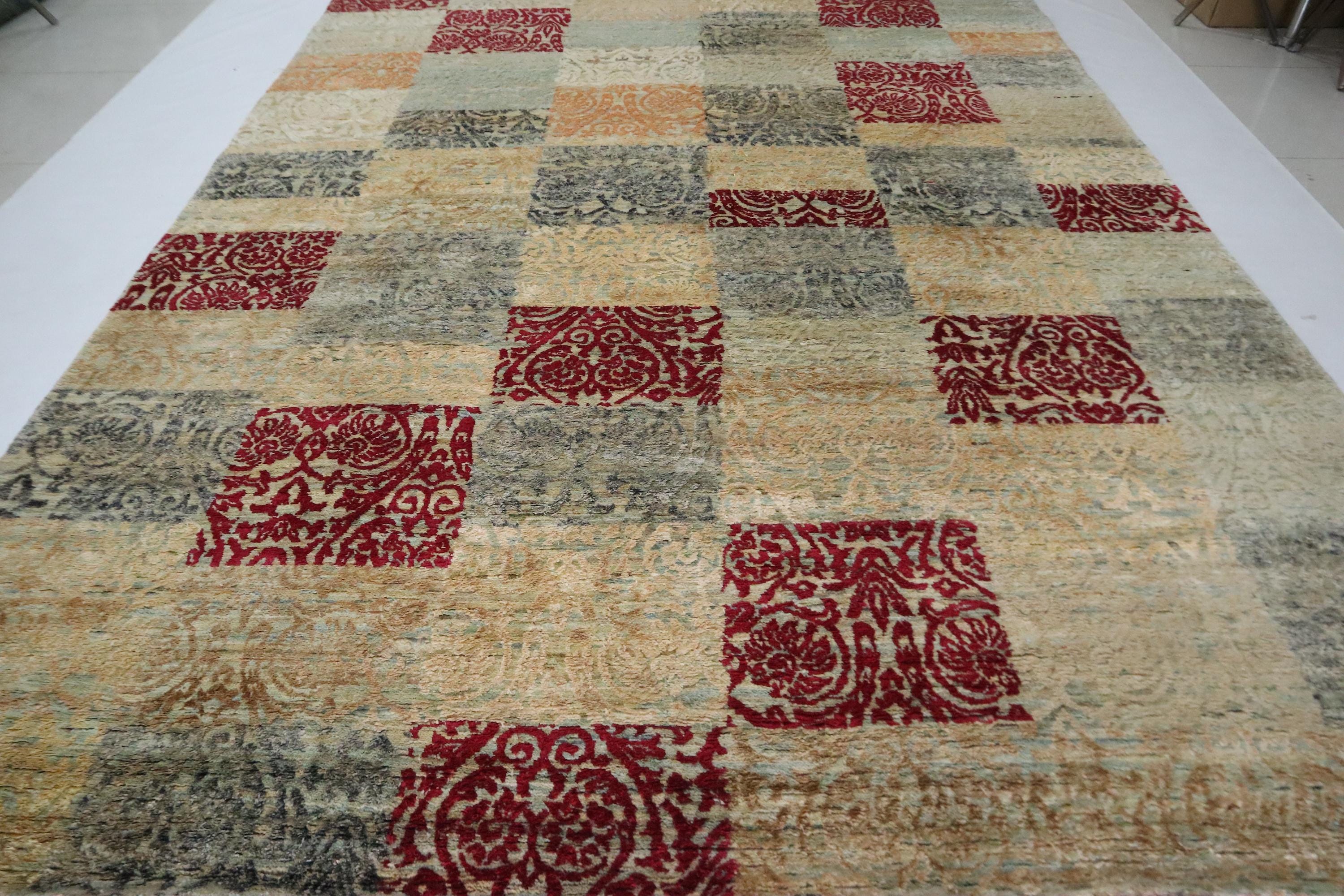 8 x10 Modern Rug - Multicolor Rug - Afghan Hand Knotted Silk Touch Wool Rug - Checkered Rug - Contemporary Rug - Check Design Rug - Wool Rug