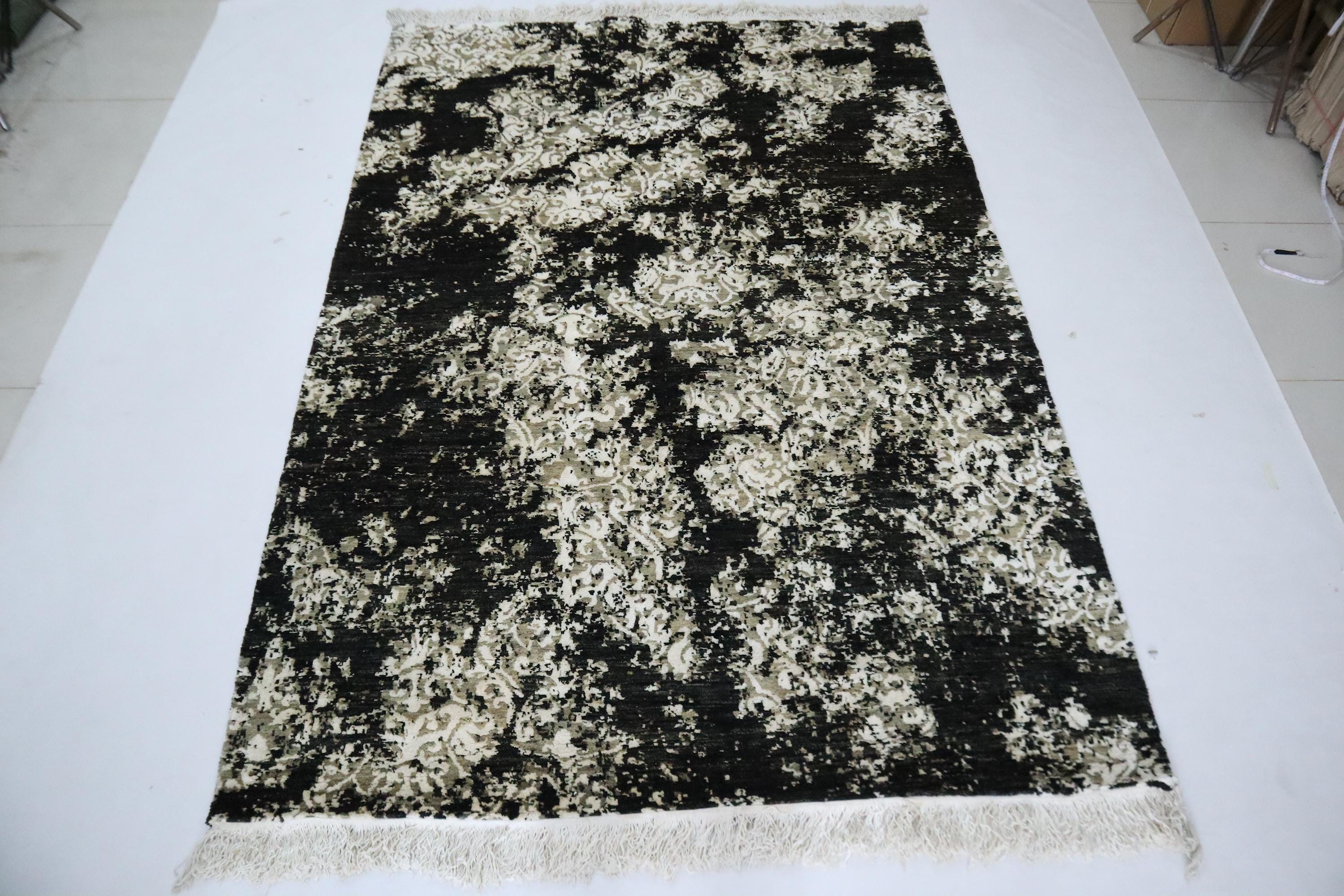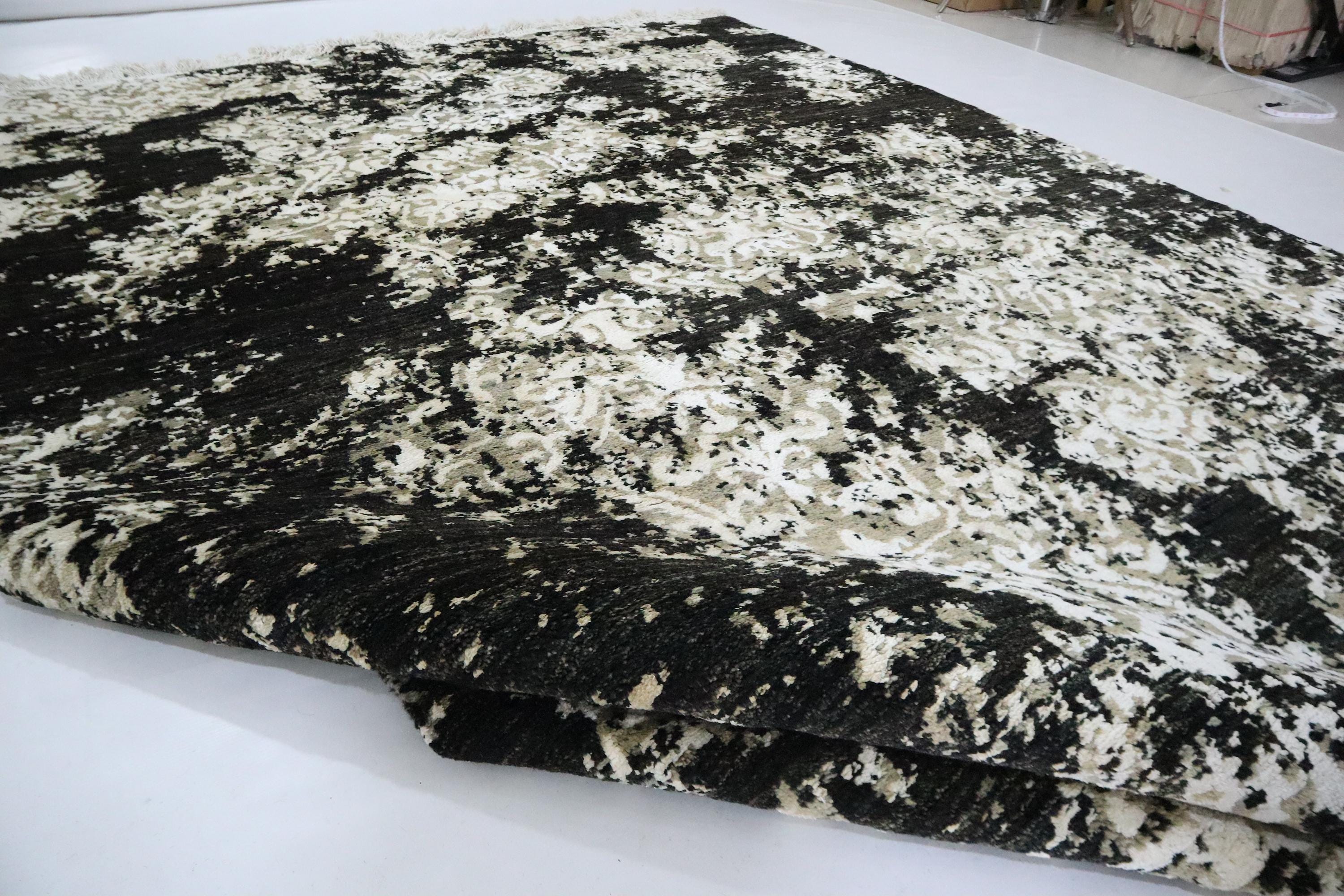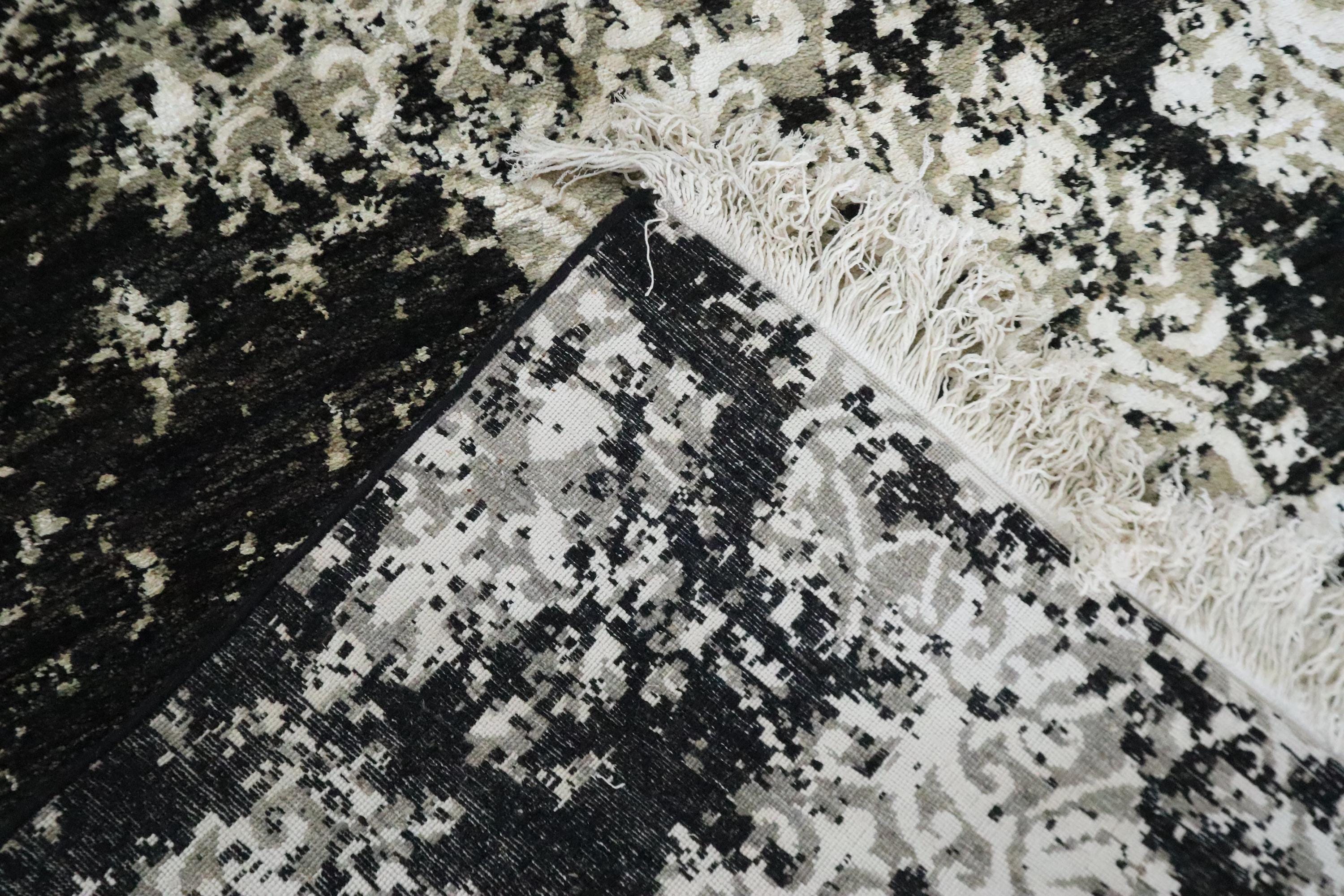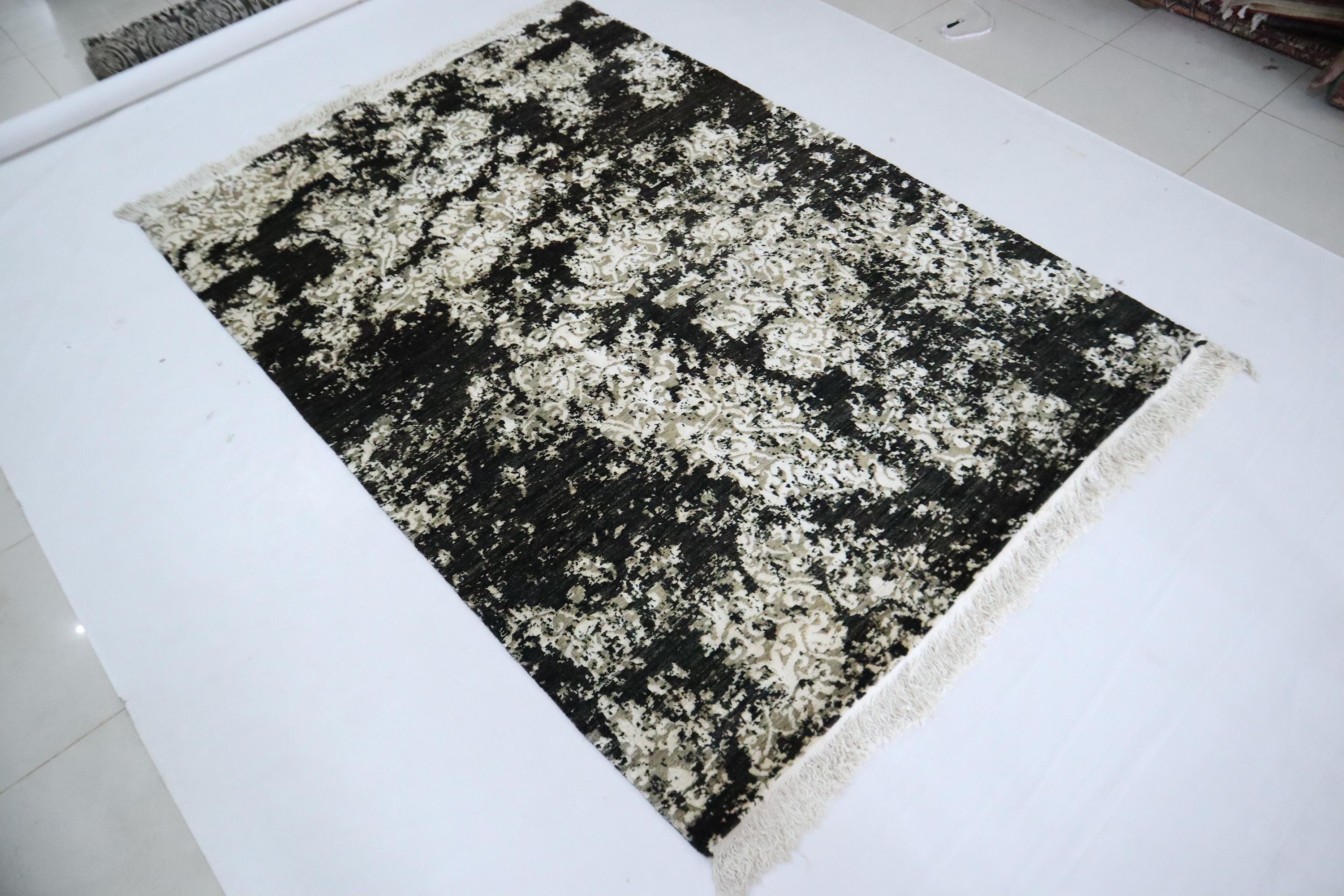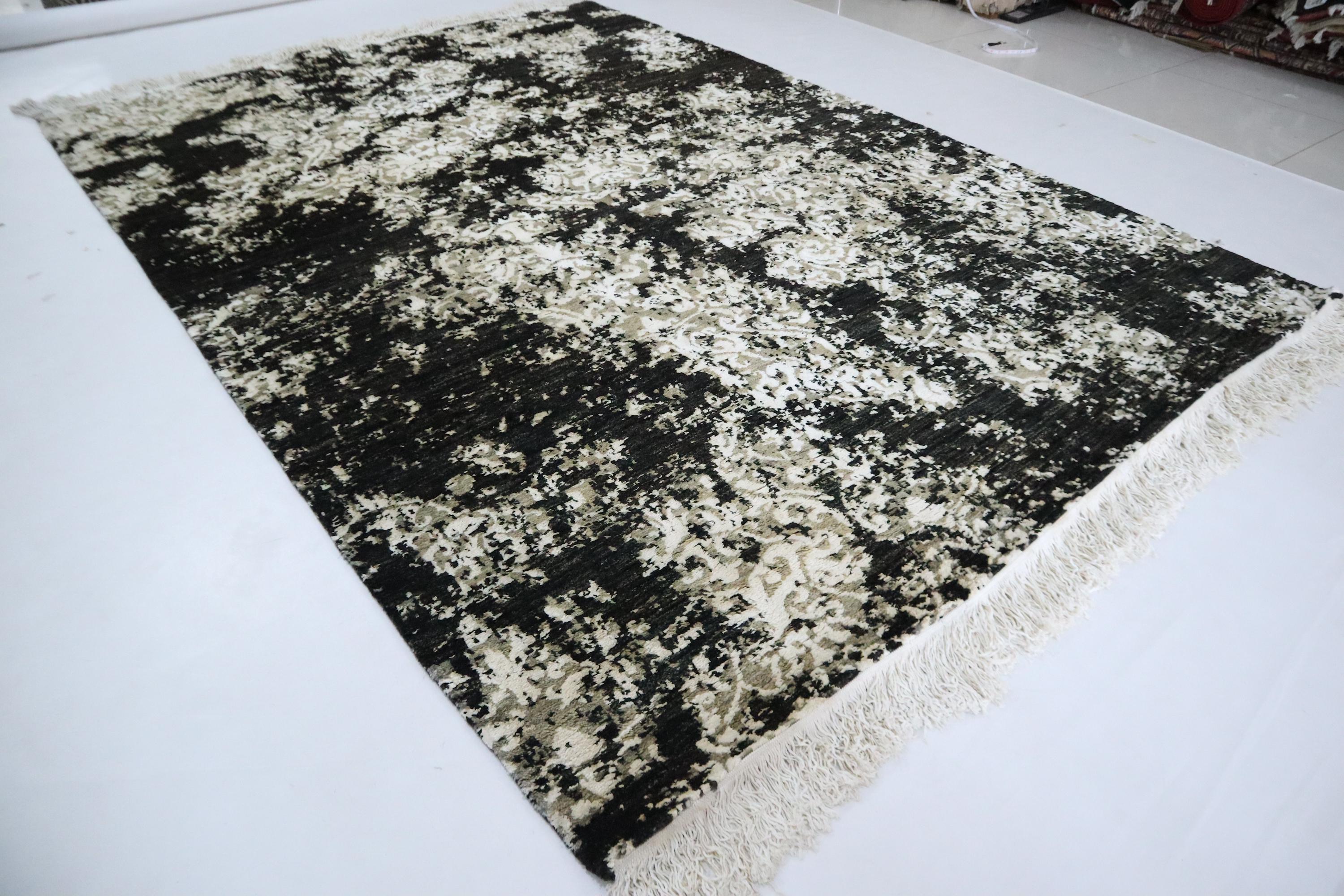 6x9 Ft Abstract Area Rug, Black White Turkish Hand Knotted Modern Silk Touch Wool Rug, Contemporary Rug, Art Rug, Bedroom Rug, Office Rug