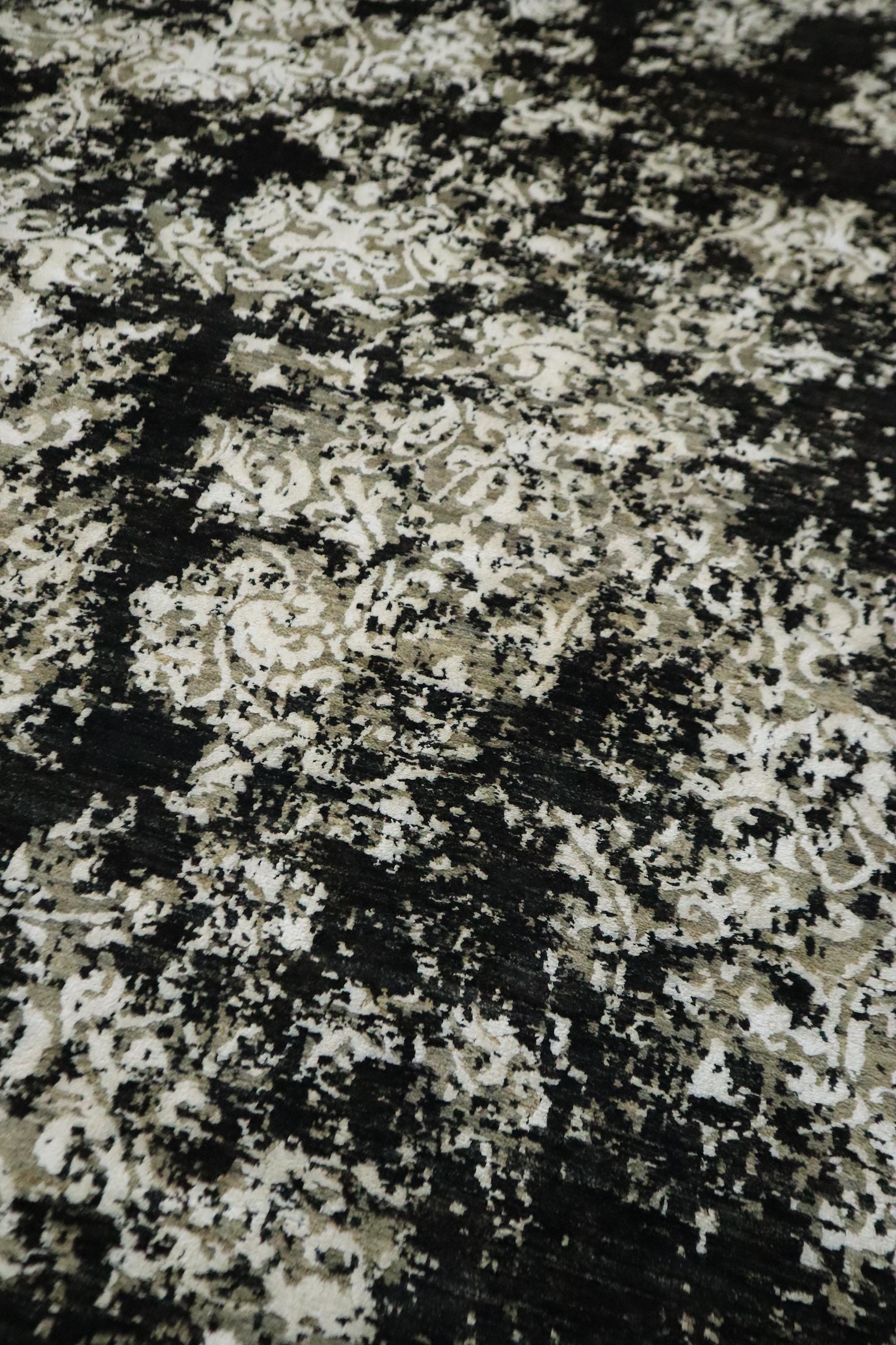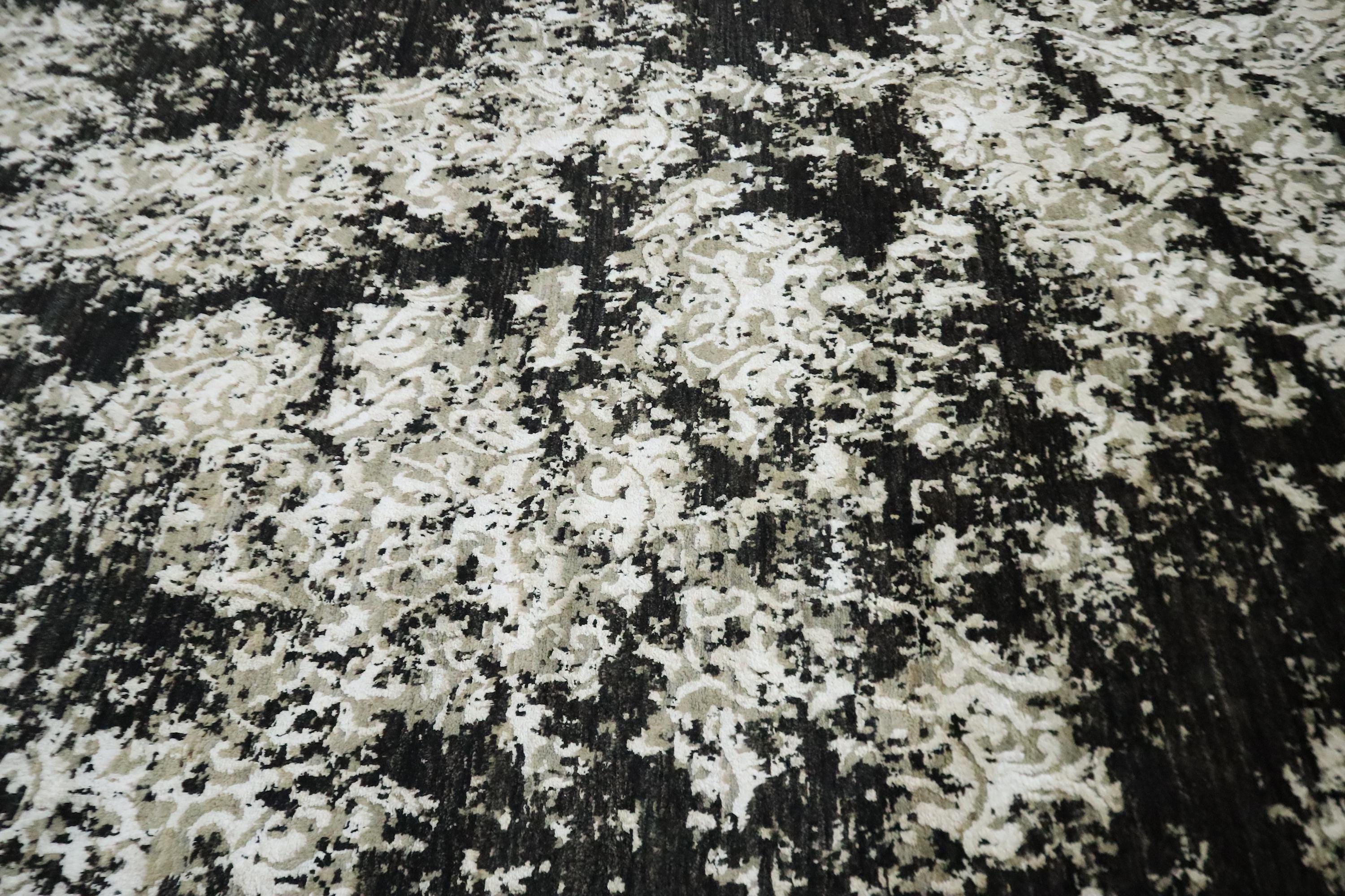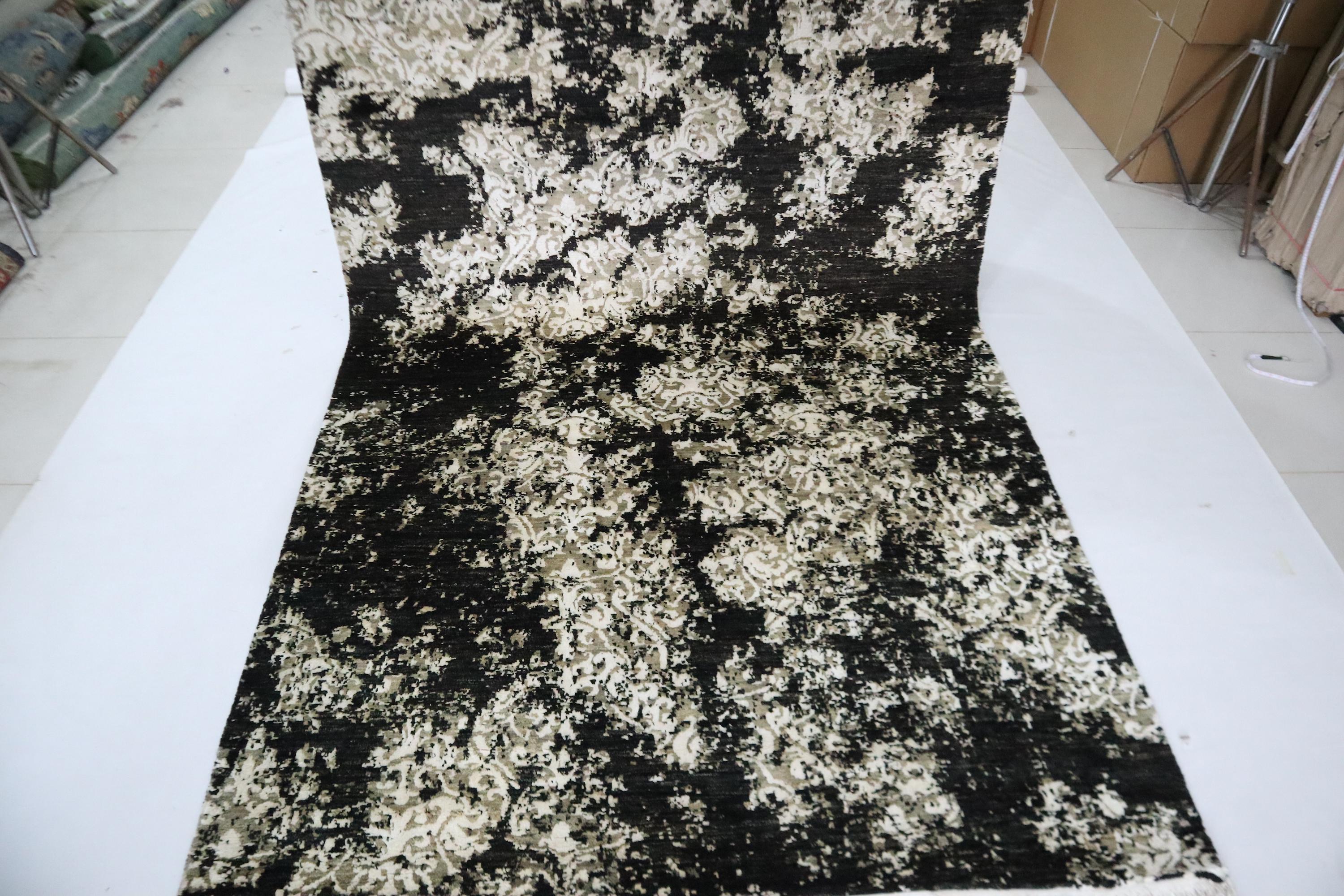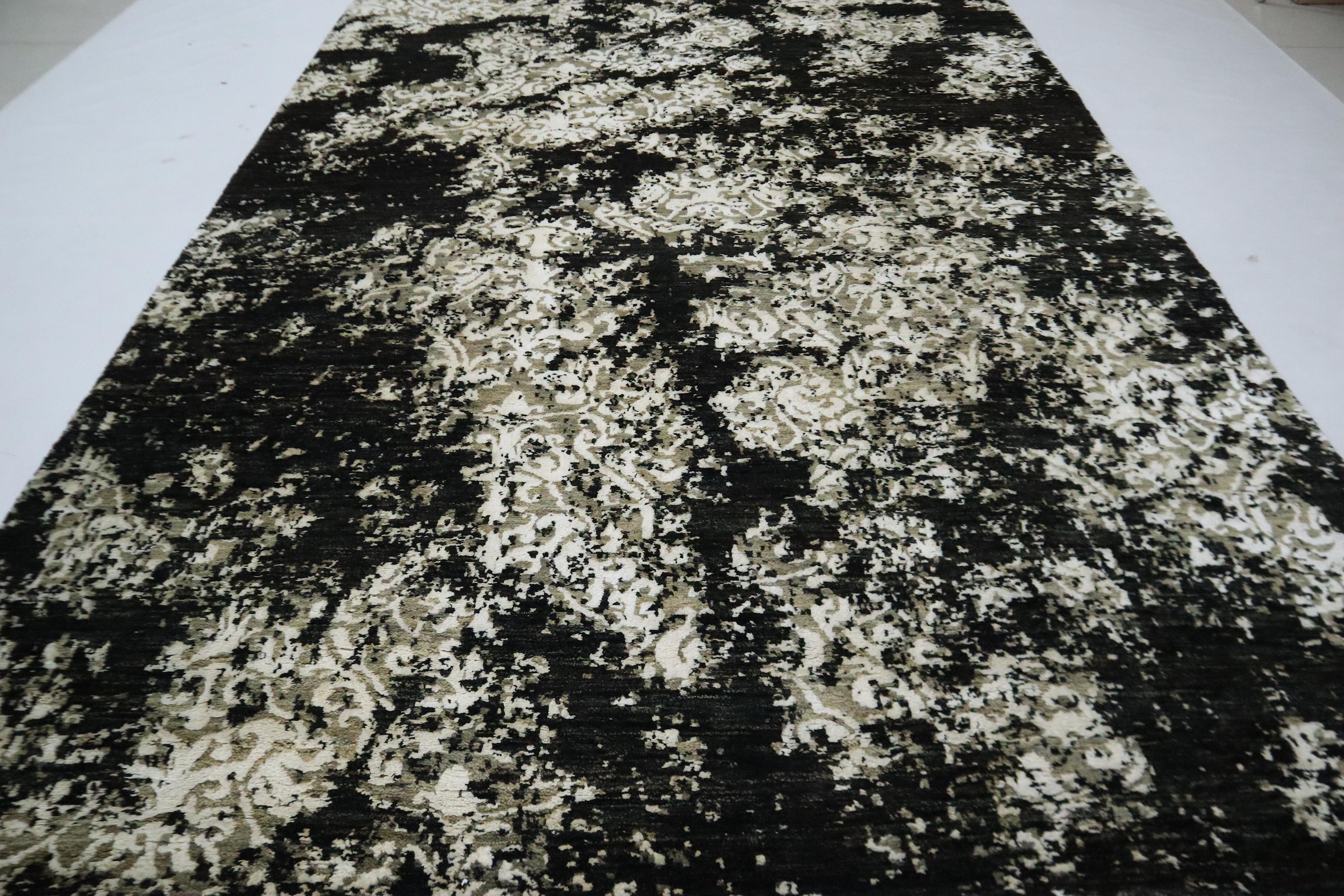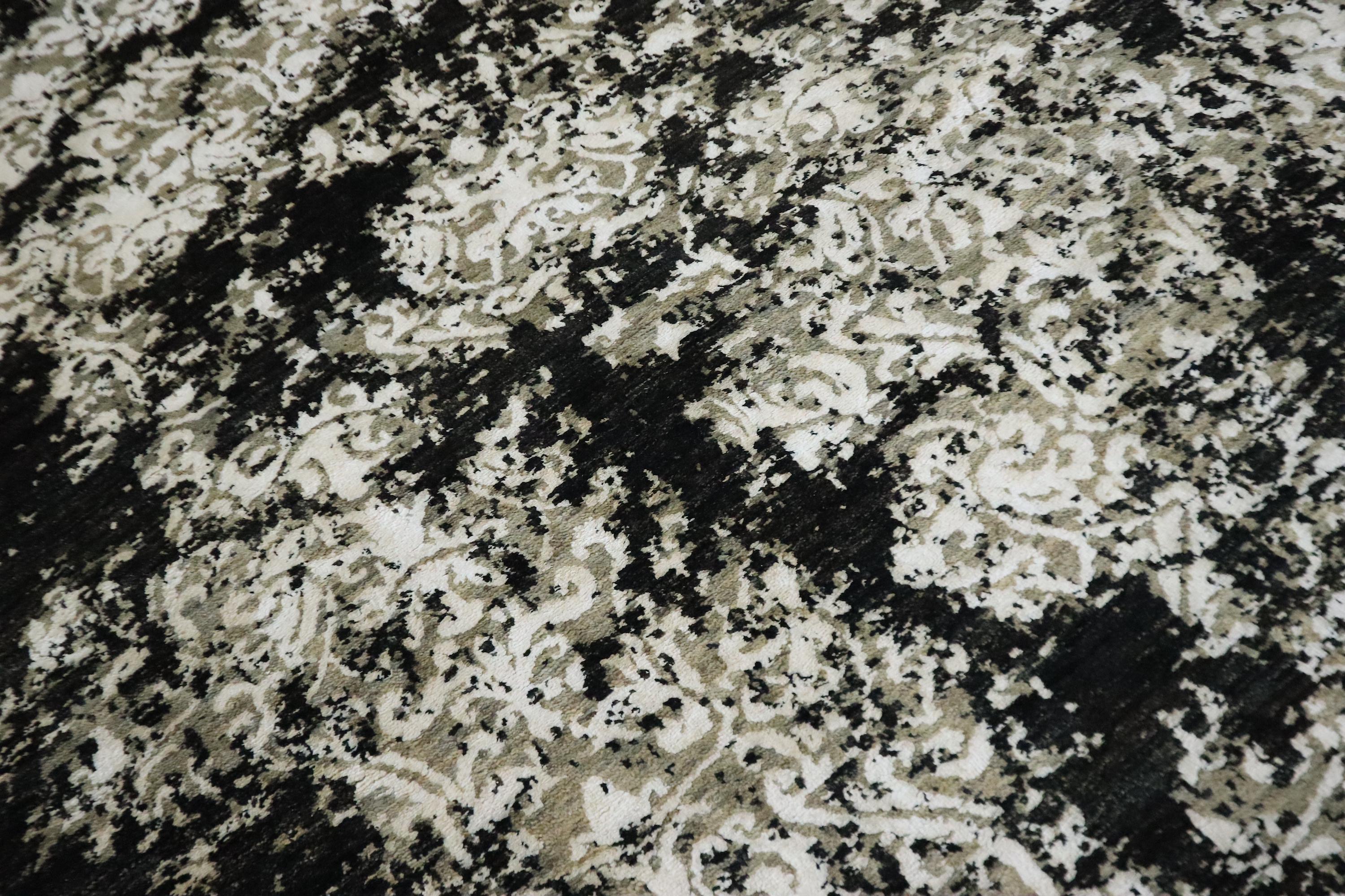 6x9 Ft Abstract Area Rug, Black White Turkish Hand Knotted Modern Silk Touch Wool Rug, Contemporary Rug, Art Rug, Bedroom Rug, Office Rug