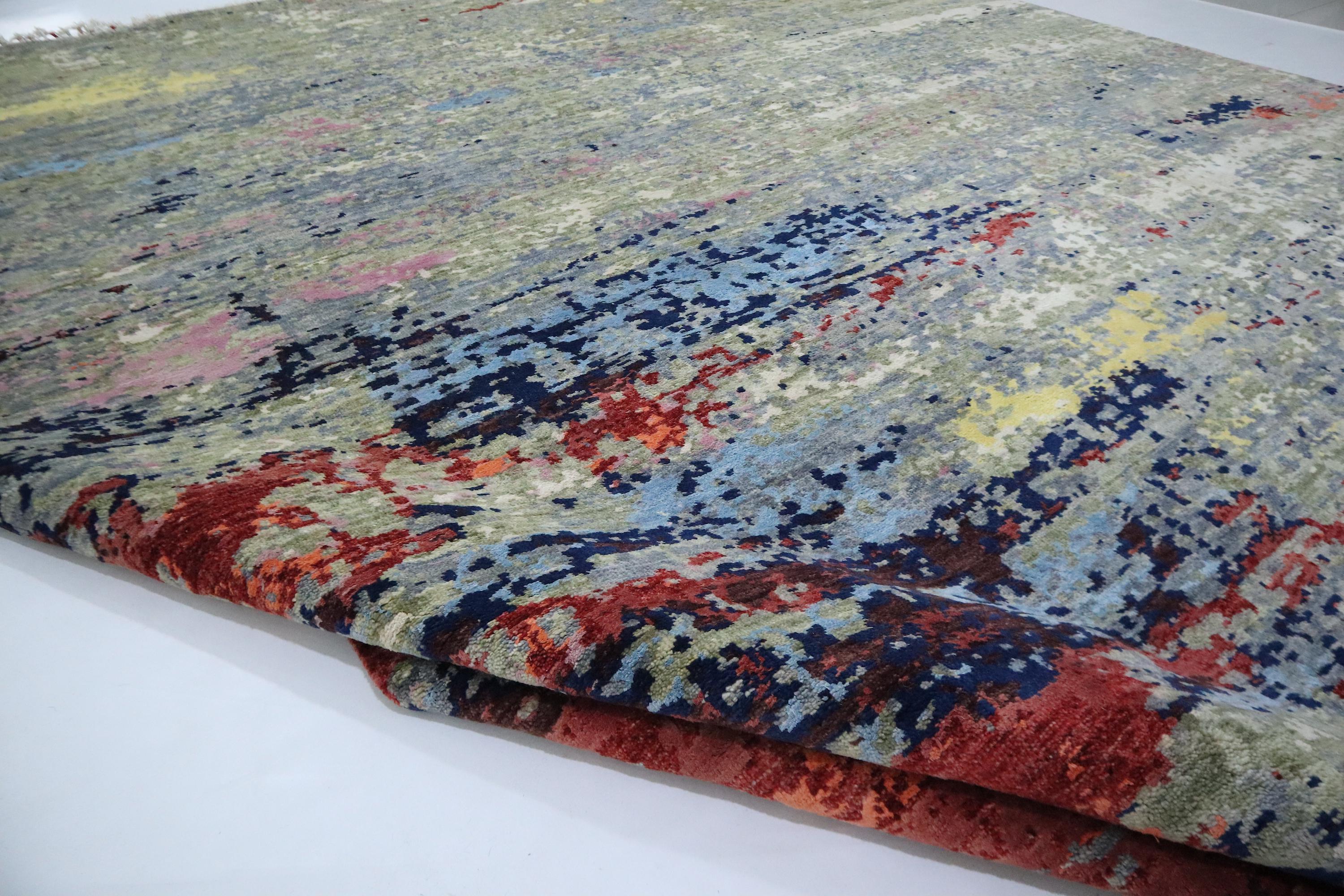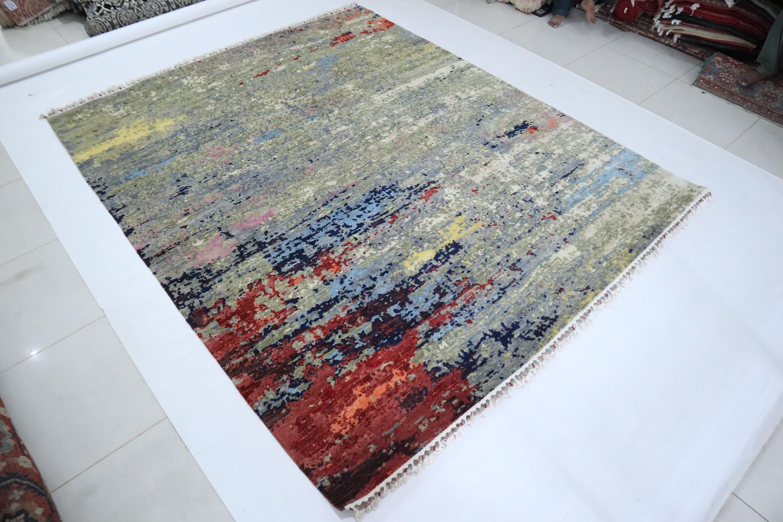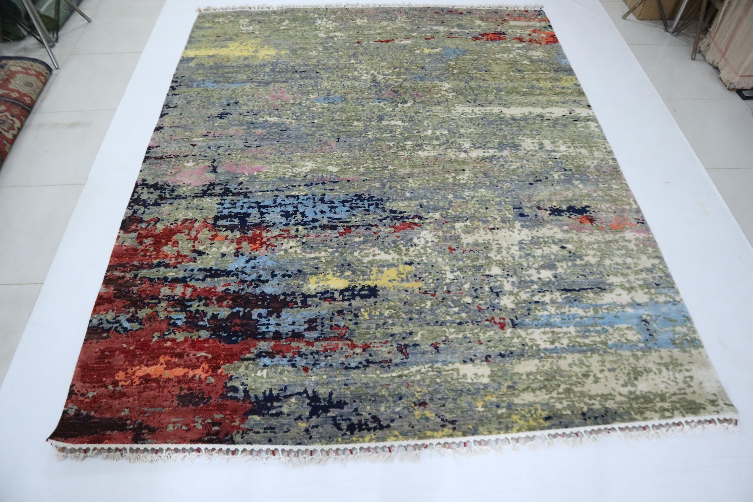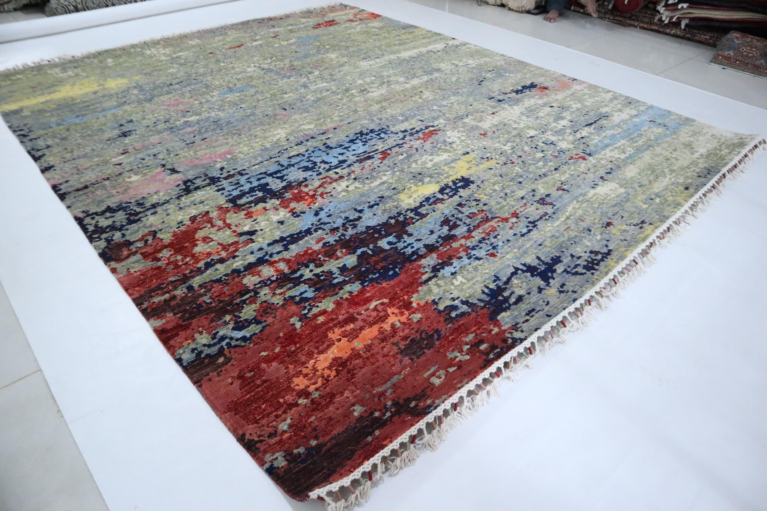 8x10 Abstract Area Rug - Multicolor Afghan Hand Knotted Artistic Silk Touch Wool Rug - Modern Rug - Abrash Rug - Contemporary Rug - Wool Rug