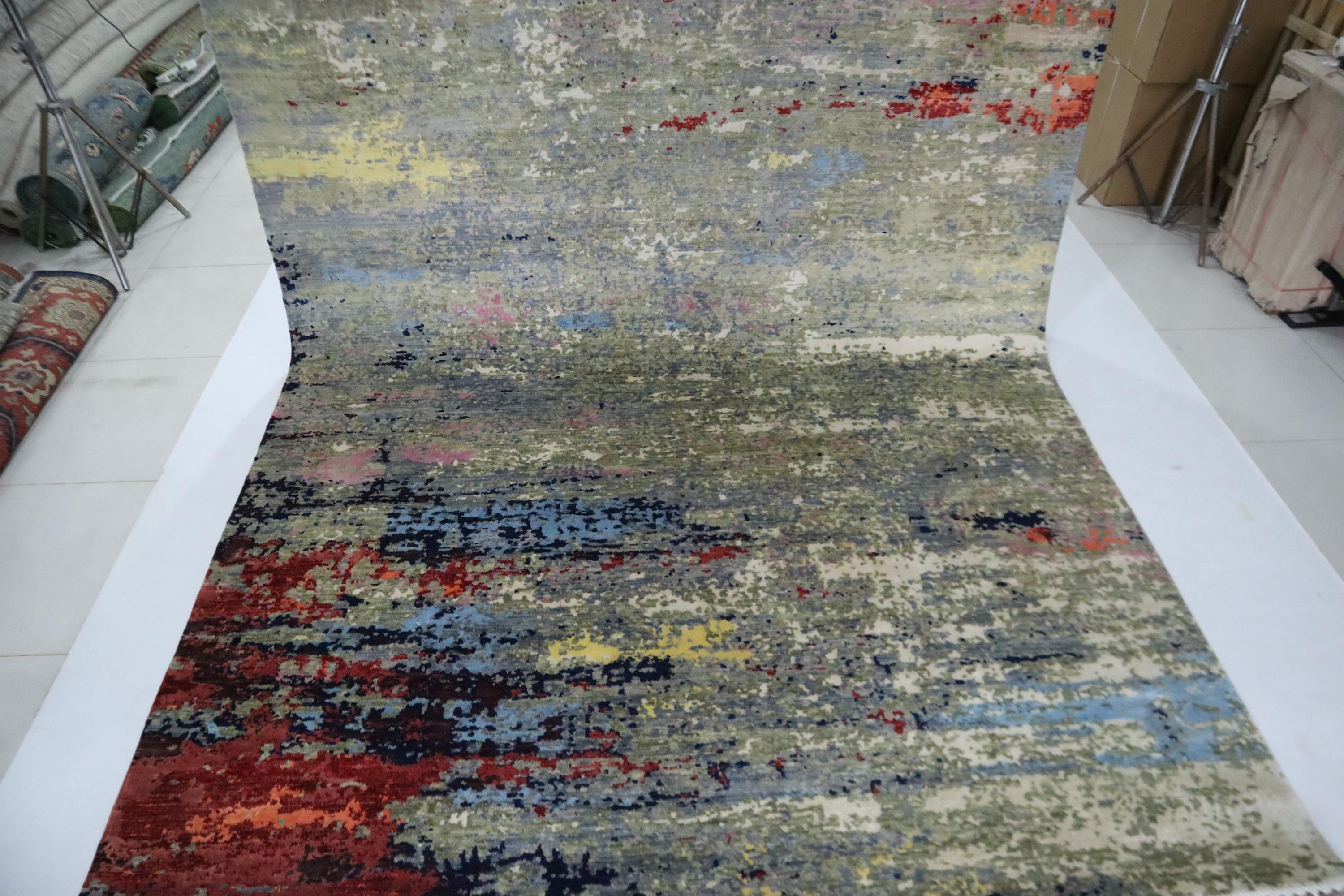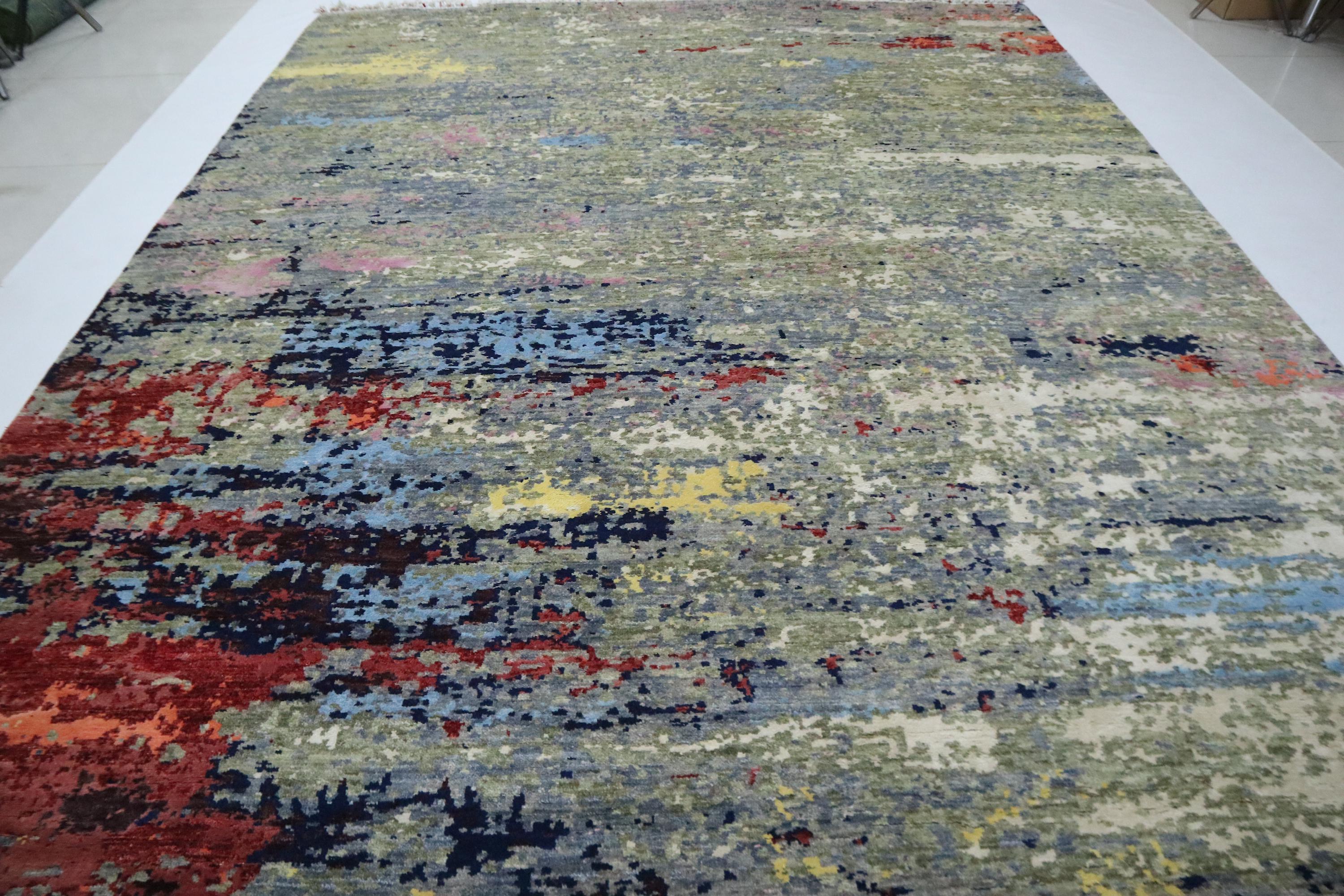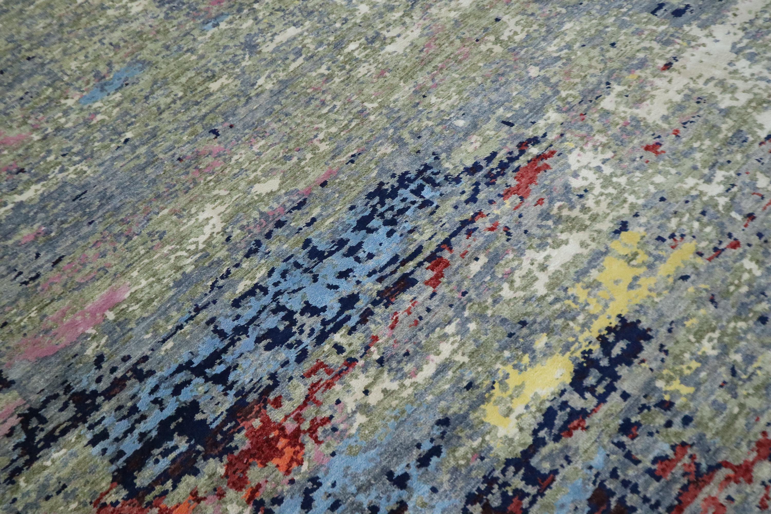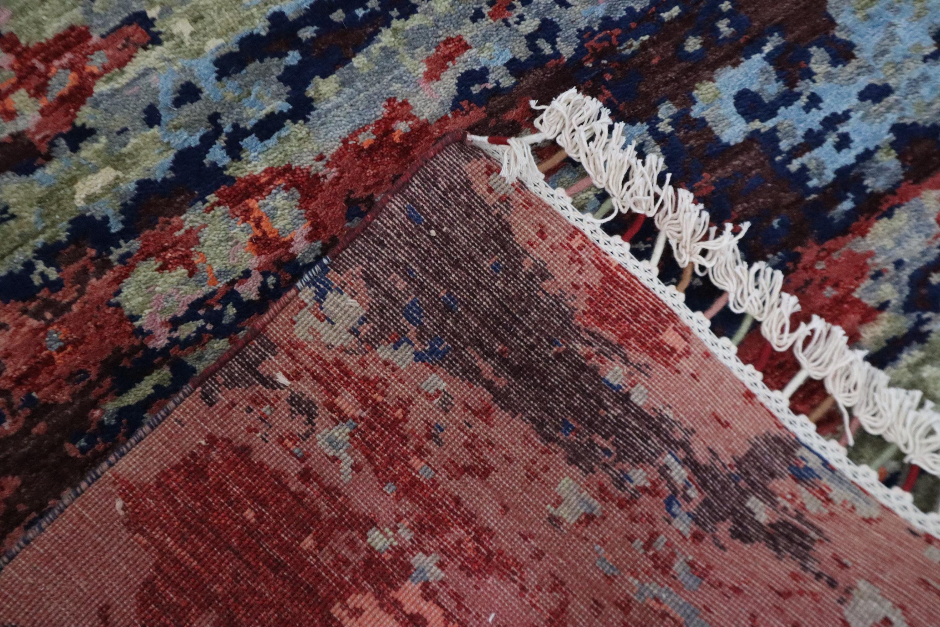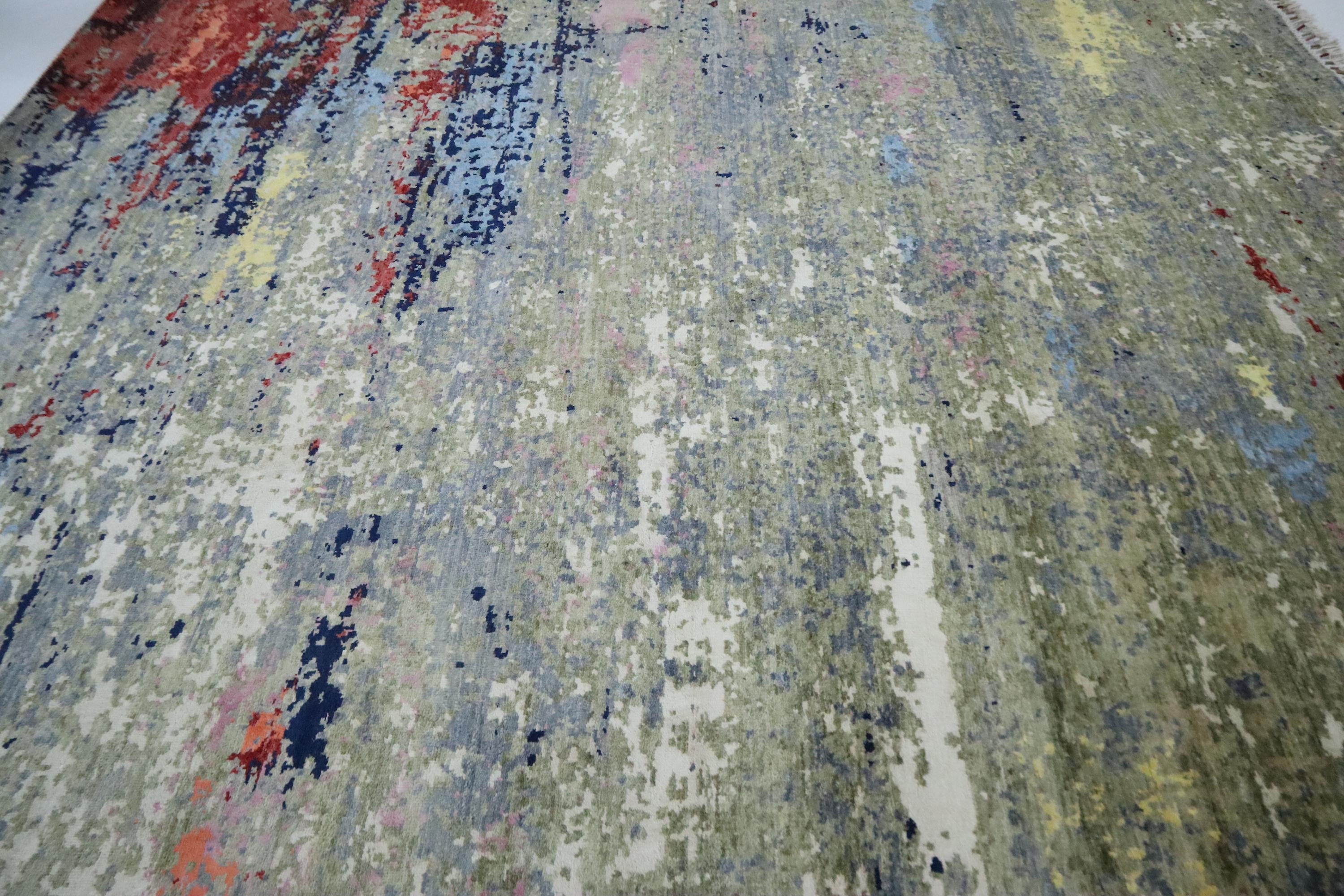 8x10 Abstract Area Rug - Multicolor Afghan Hand Knotted Artistic Silk Touch Wool Rug - Modern Rug - Abrash Rug - Contemporary Rug - Wool Rug