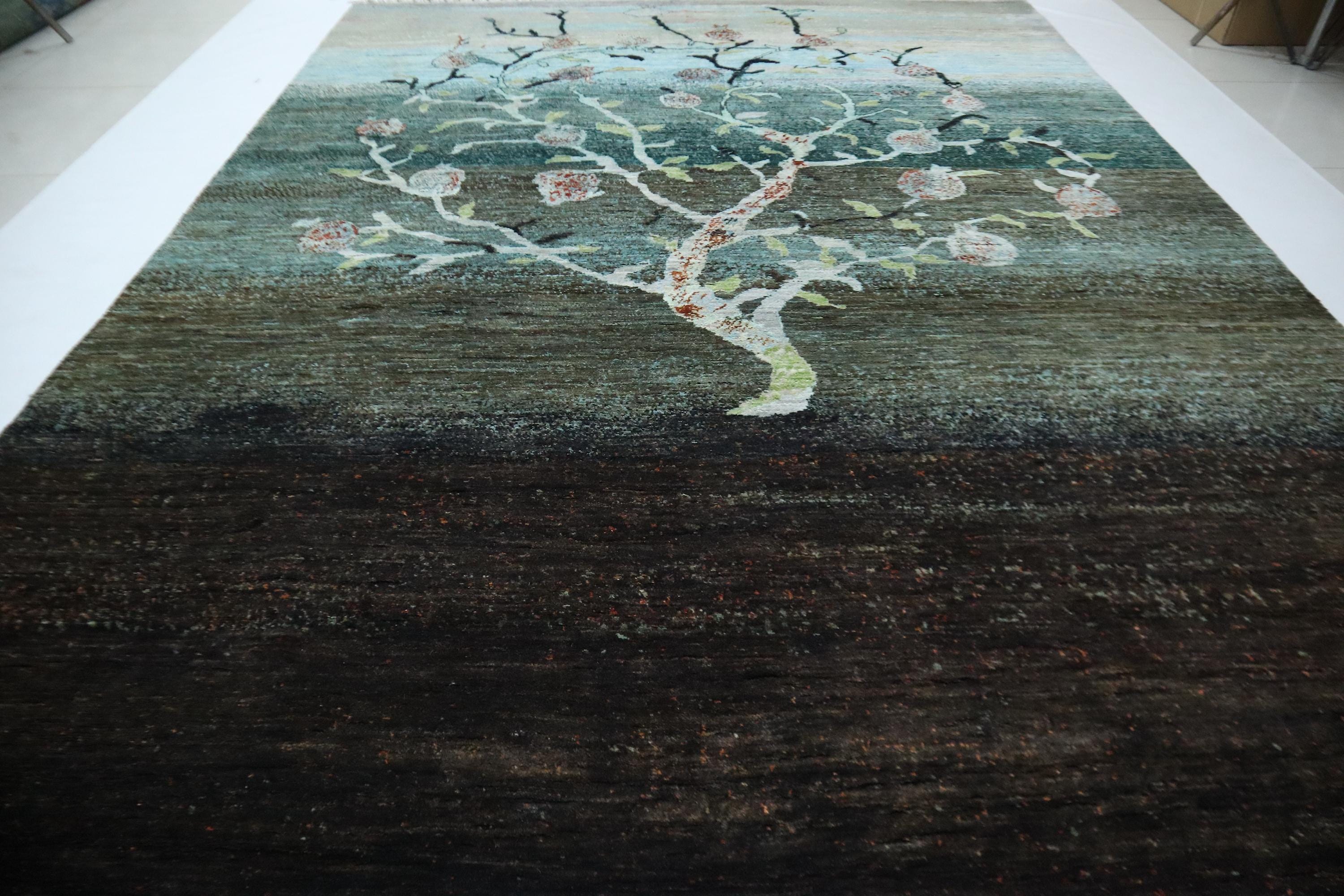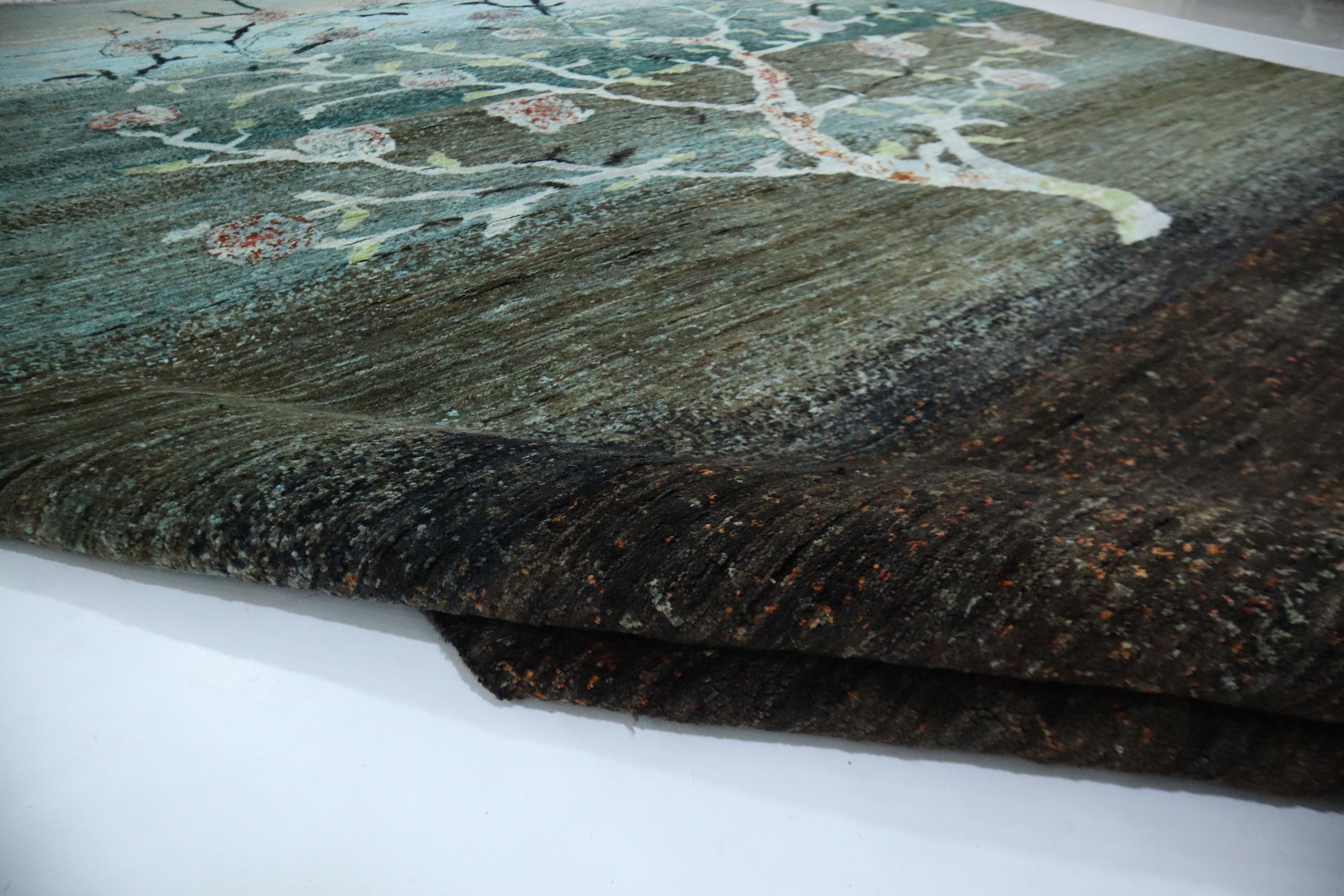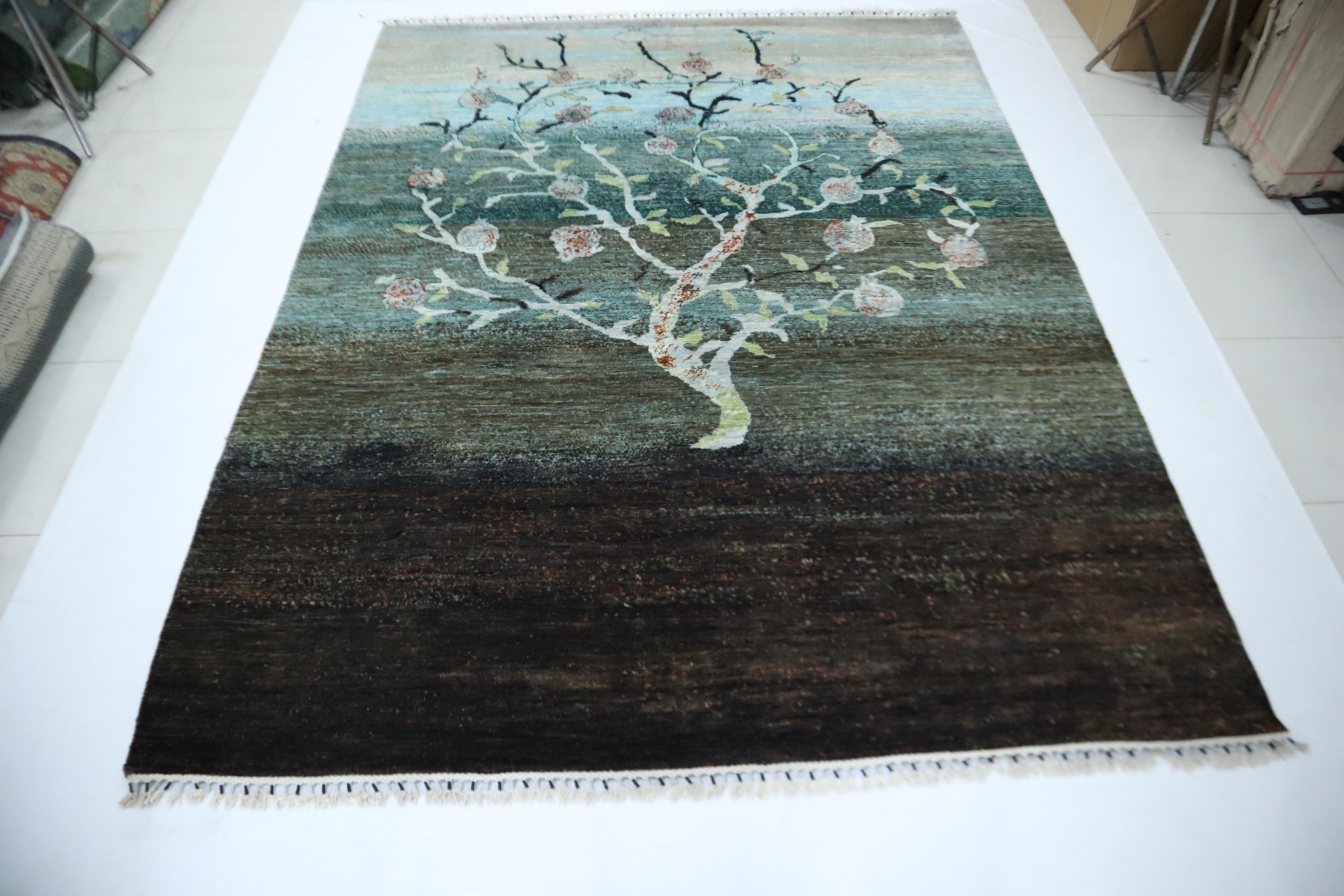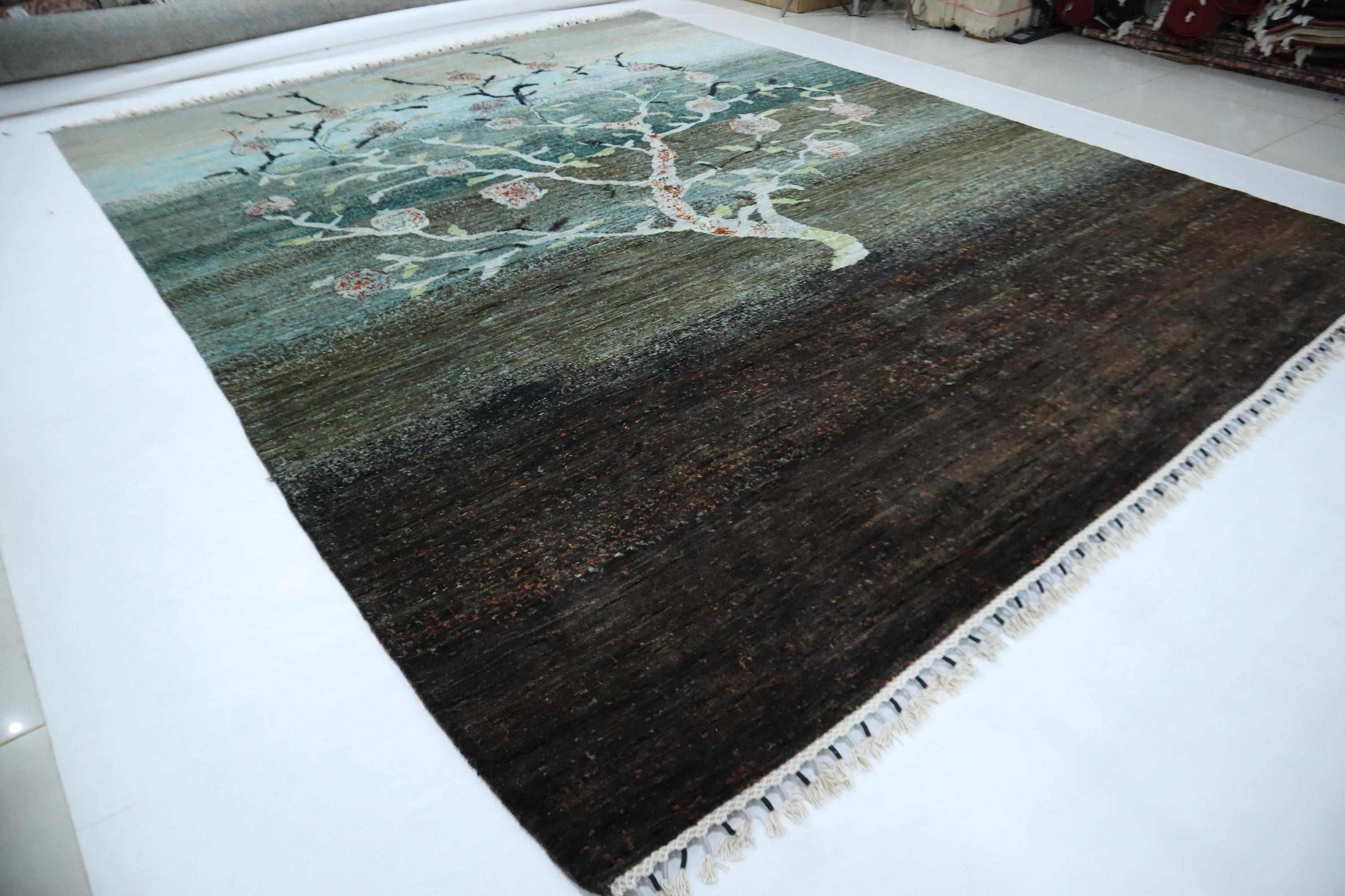 8x11 Modern Area Rug - Green Tone Rug - Afghan Hand Knotted Pomegranate Tree Silk Touch Wool Rug - Contemporary Rug - Bedroom Rug - Wool Rug
