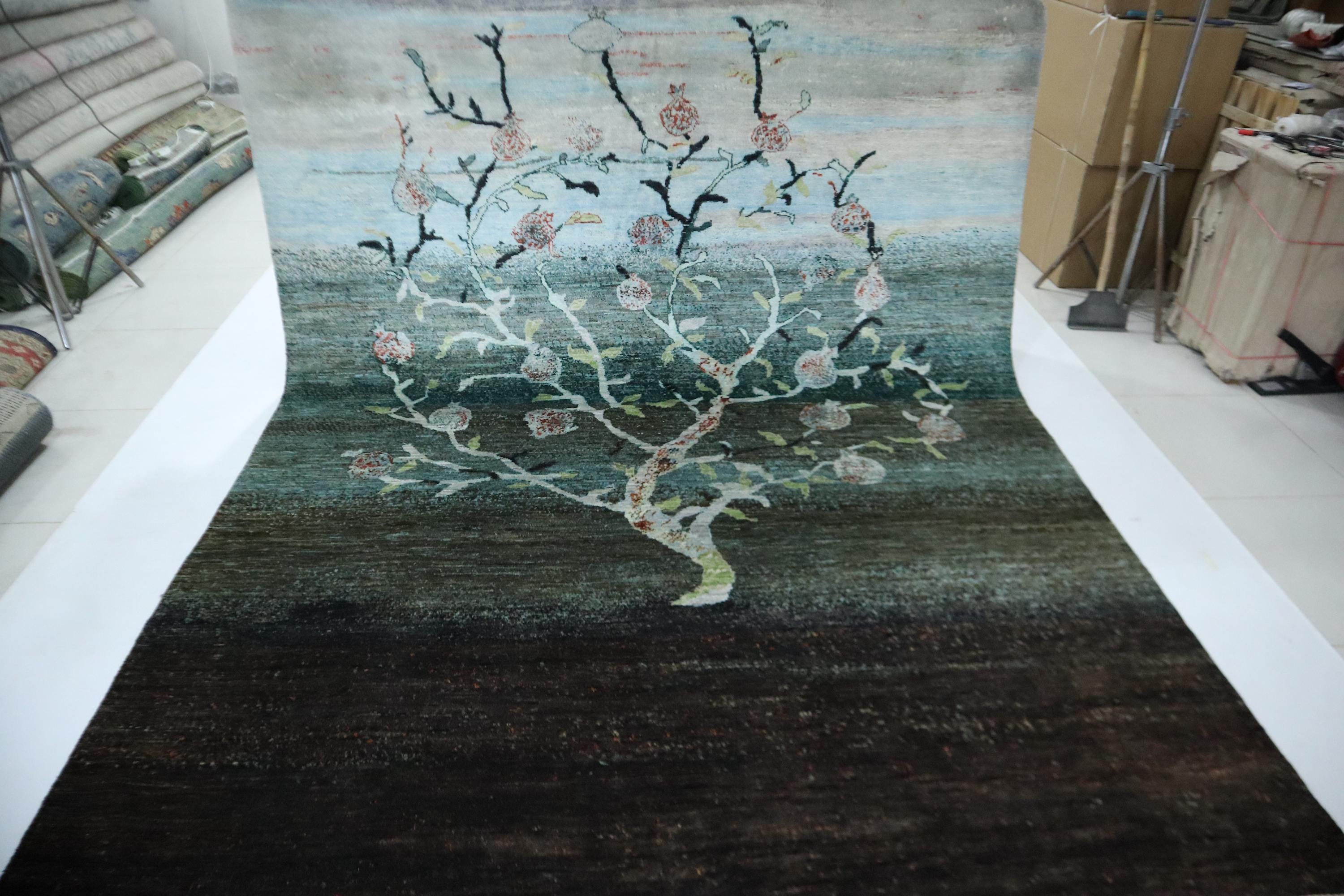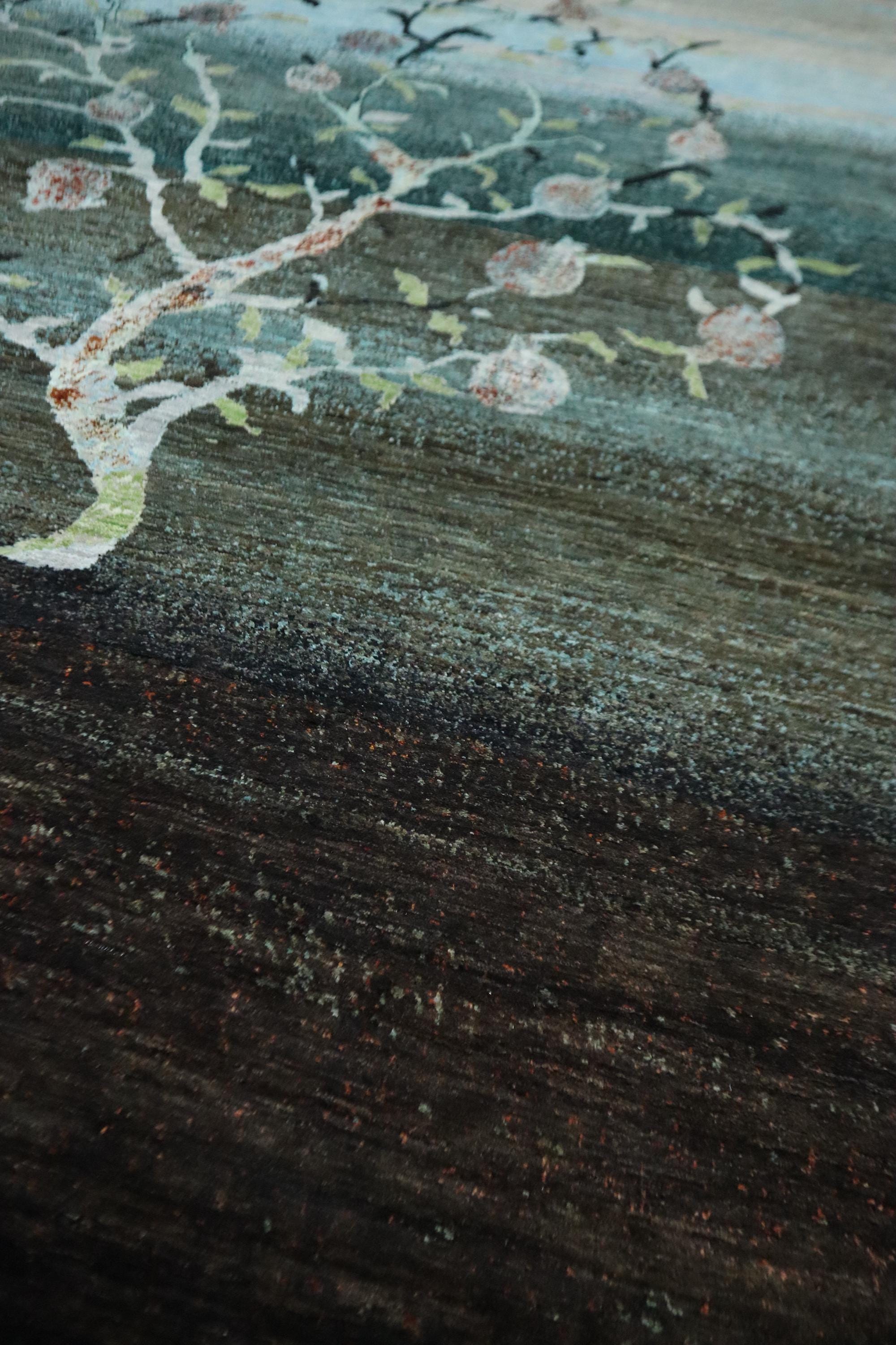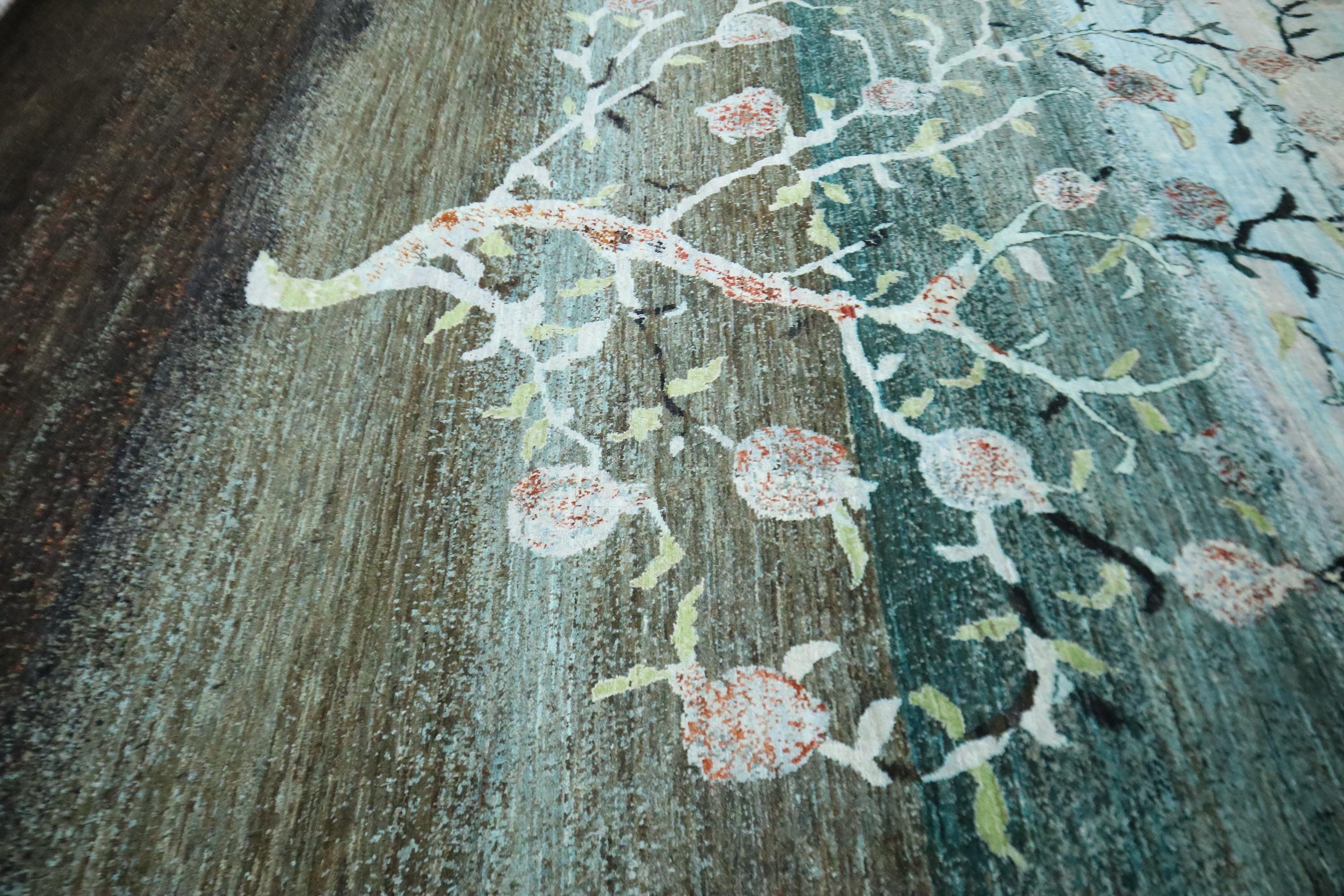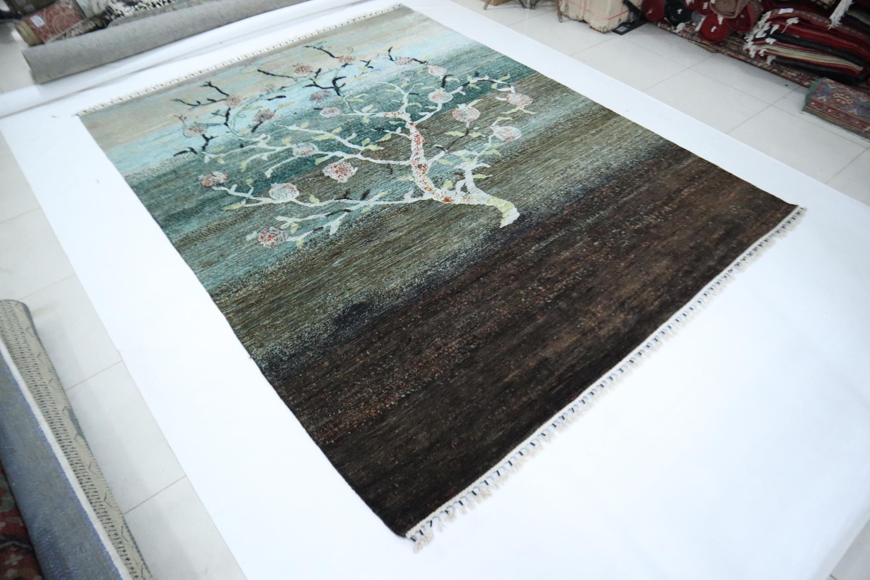 8x11 Modern Area Rug - Green Tone Rug - Afghan Hand Knotted Pomegranate Tree Silk Touch Wool Rug - Contemporary Rug - Bedroom Rug - Wool Rug