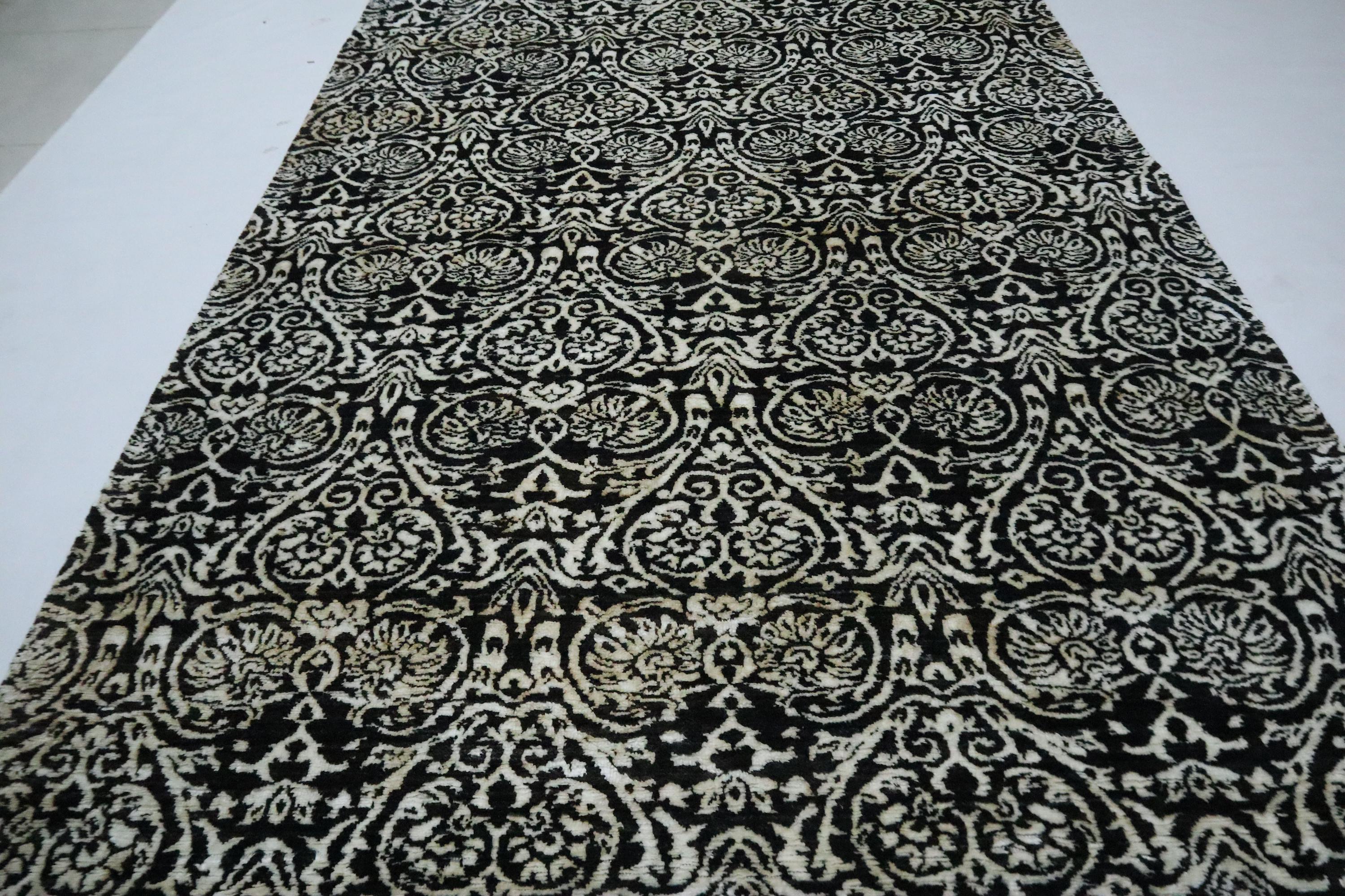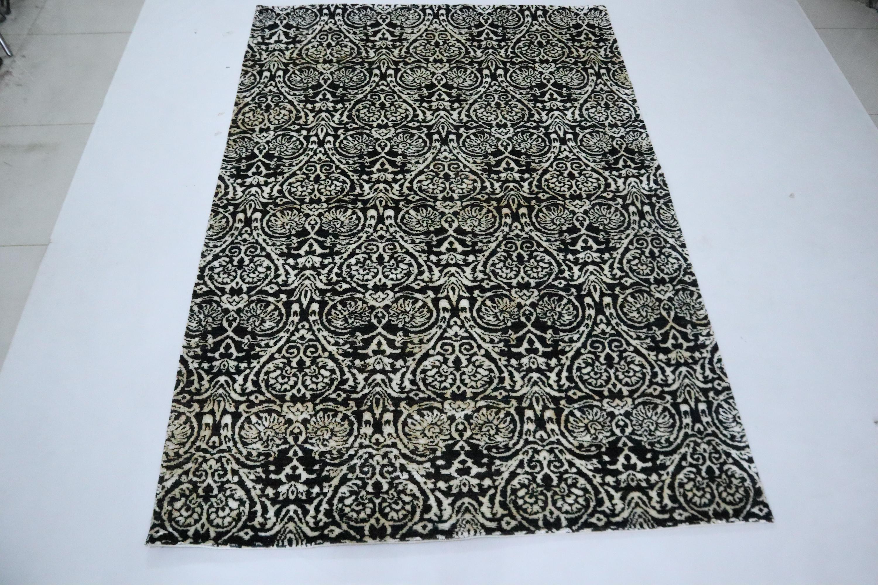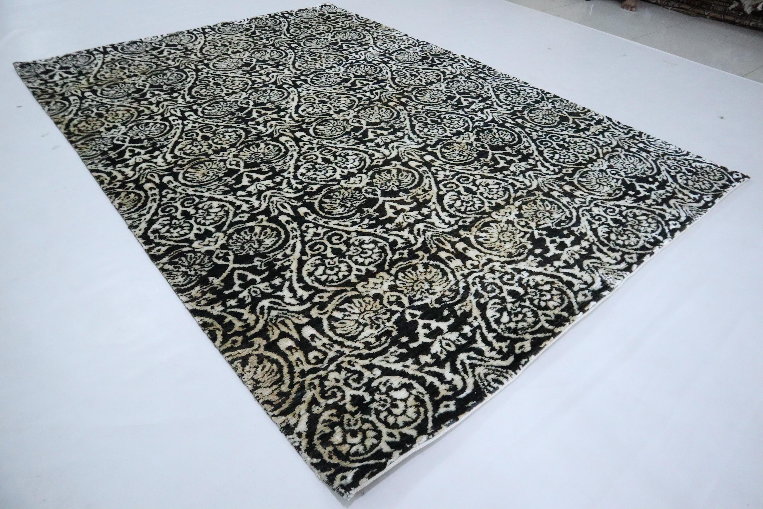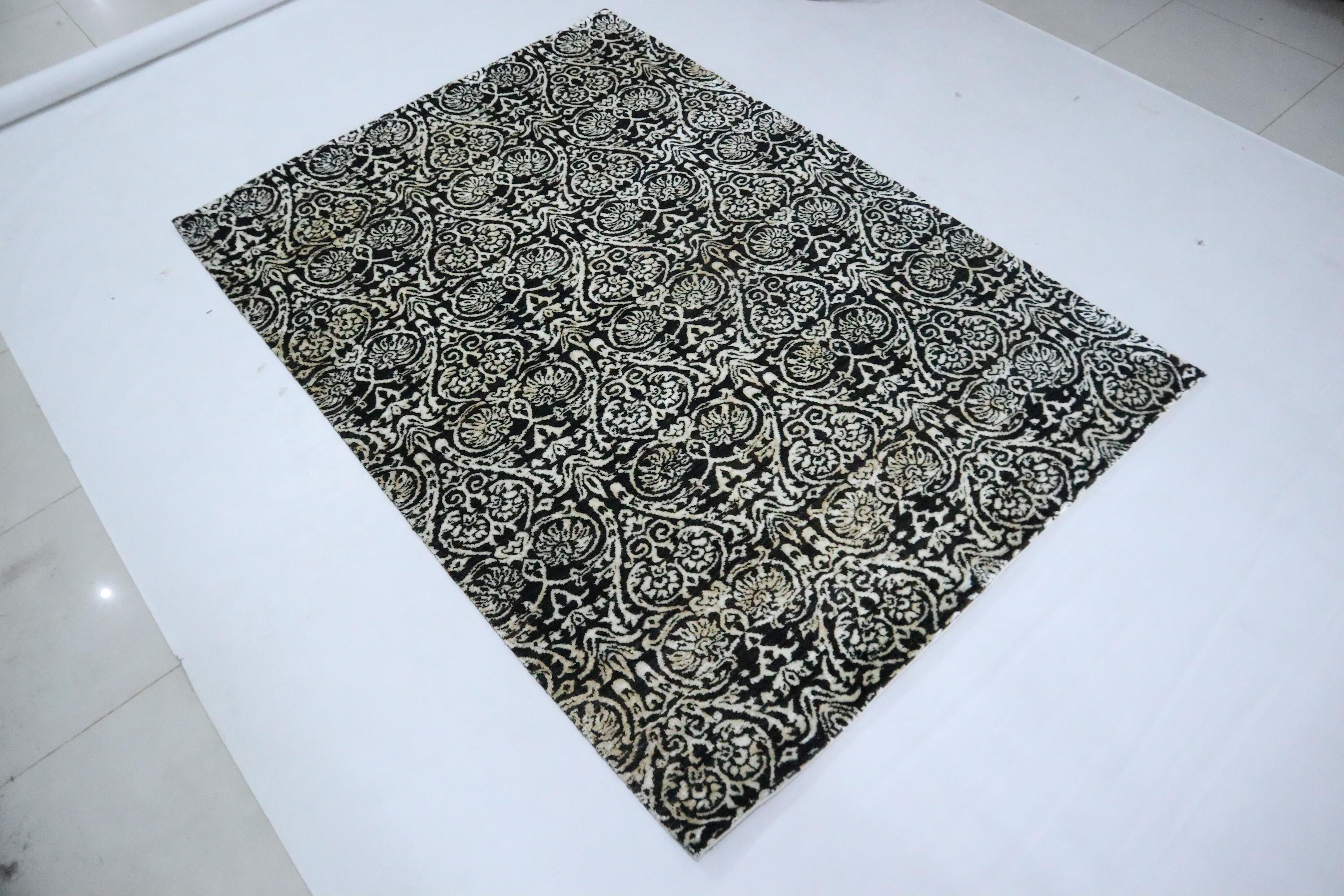5'4x7'7 Floral Area Rug, Black White Rug, Hand Knotted Silk Touch Wool Rug, Modern Rug, Contemporary Rug, Bedroom Rug, Living Room Rug